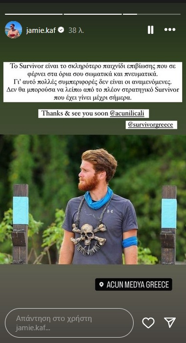 Σε ανάρτησή που έκανε στα social media, επισημαίνει ότι δεν θα μπορούσε να λείπει «από το πλέον στρατηγικό Survivor που έχει γίνει μέχρι σήμερα». «Ευχαριστώ και τα λέμε σύντομα Ατζούν Ιλιτζαλί», πρόσθεσε.