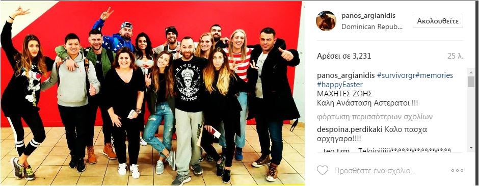 Ανάσταση στην Ελλάδα μαζί με τους δικούς του ανθρώπους θα κάνει σε λίγες ώρες ο Πάνος Αργιανίδης, ωστόσο το μυαλό του, είναι στον Άγιο Δομίνικο και σε όσα έζησε αυτούς τους 2,5 μήνες στο Survivor.Ο μάνατζερ ράγκμπι, όπως τον μάθαμε στο παιχνίδι, ανέβασε μία φωτογραφία στον προσωπικό του λογαριασμό στο instagram, από τις πρώτες συναντήσεις της ομάδας των “Μαχητών” πριν ακόμα δουν την… παραλία στον Άγιο Δομίνικο. Χαρακτηριστικό είναι η μεγάλη διαφορά που έχουν αρκετοί από τους παίκτες, οι οποίοι μετά από σχεδόν τρεις μήνες στην Καραϊβική, έχουν χάσει κιλά και έχουν μακρύνει τα μαλλιά τους και τα γένια τους.Δείτε τη φωτογραφία: