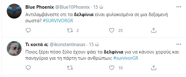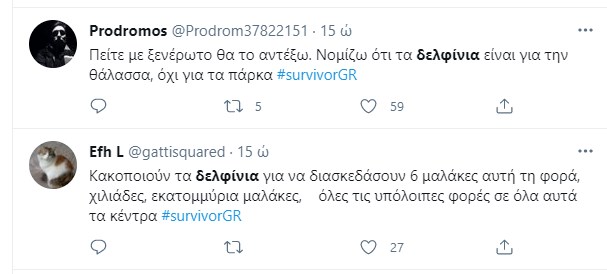 Το Twitter όμως αντέδρασε στο έπαθλο, καθώς όπως ανέφεραν αρκετοί χρήστες τα δελφίνια πρέπει να είναι ελεύθερα και όχι φυλακισμένα ως τουριστική ατραξιόν.