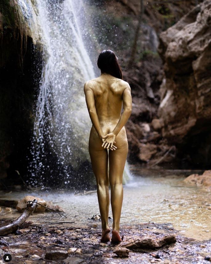 Η ηθοποιός έχει έναν εντυπωσιακό λογαριασμό στο Instagram και με την πρώτη ματιά μπορεί κανείς να διαπιστώσει την αγάπη της για τη φύση. Μερικές από τις φωτογραφίες που ξεχωρίζουν είναι όταν η Μυριέλλα Κουρεντή πόζαρε ολόγυμνη μπροστά σε έναν καταρράκτη έχοντας χρυσό body painting.