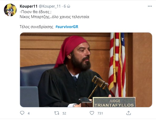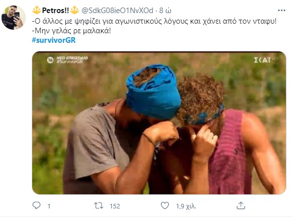«Αφού με θεωρούν αδύναμο αγωνιστικά, αποφάσισα σήμερα να μην αγωνιστώ» δήλωσε ο Κρις, στον Γιώργο Λιανό, με τον συμπαίκτη του Αλέξη να προσθέτει «Συμφωνώ κι επαυξάνω με τον Κρις». Φυσικά, στο Twitter έγινε “πάρτι” και τα σχόλια έπεφταν “βροχή”.