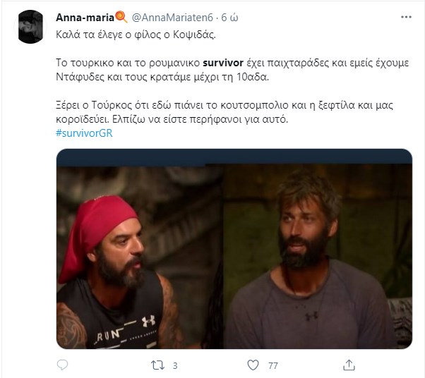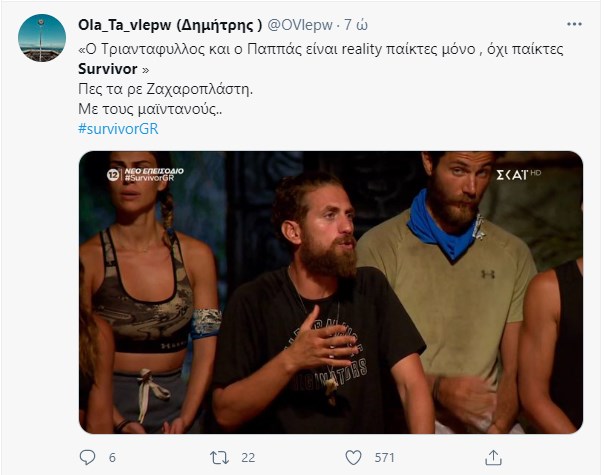 O Hλιας εκφράζει όλο το τουιτερ ακούγοντας το γλύψιμο του ύπουλου Σάκη προς τον Τριαντάφυλλο. ΕΊΣΑΙ ΕΊΔΩΛΟ ΛΈΜΕ. ΔΌΞΑ!!!!!#survivorGR pic.twitter.com/5nOW8MddAJ
