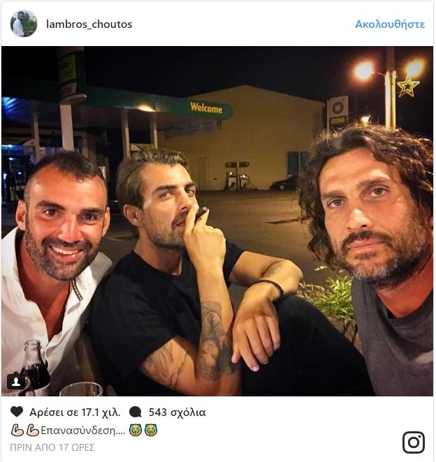 Κάποιοι followers του όμως, παρατήρησαν ότι οι τρεις φίλοι πόζαραν με φόντο ένα βενζινάδικο, και θεώρησαν πως οι τρεις πρώην παίκτες των “Διασήμων”, έκαναν μία έμμεση αναφορά στον Γιώργο Αγγελόπουλο, ο οποίος εκτός από δάσκαλος θαλάσσιου σκι, εργάζεται και σε πρατήριο βενζίνης στη Σκιάθο.