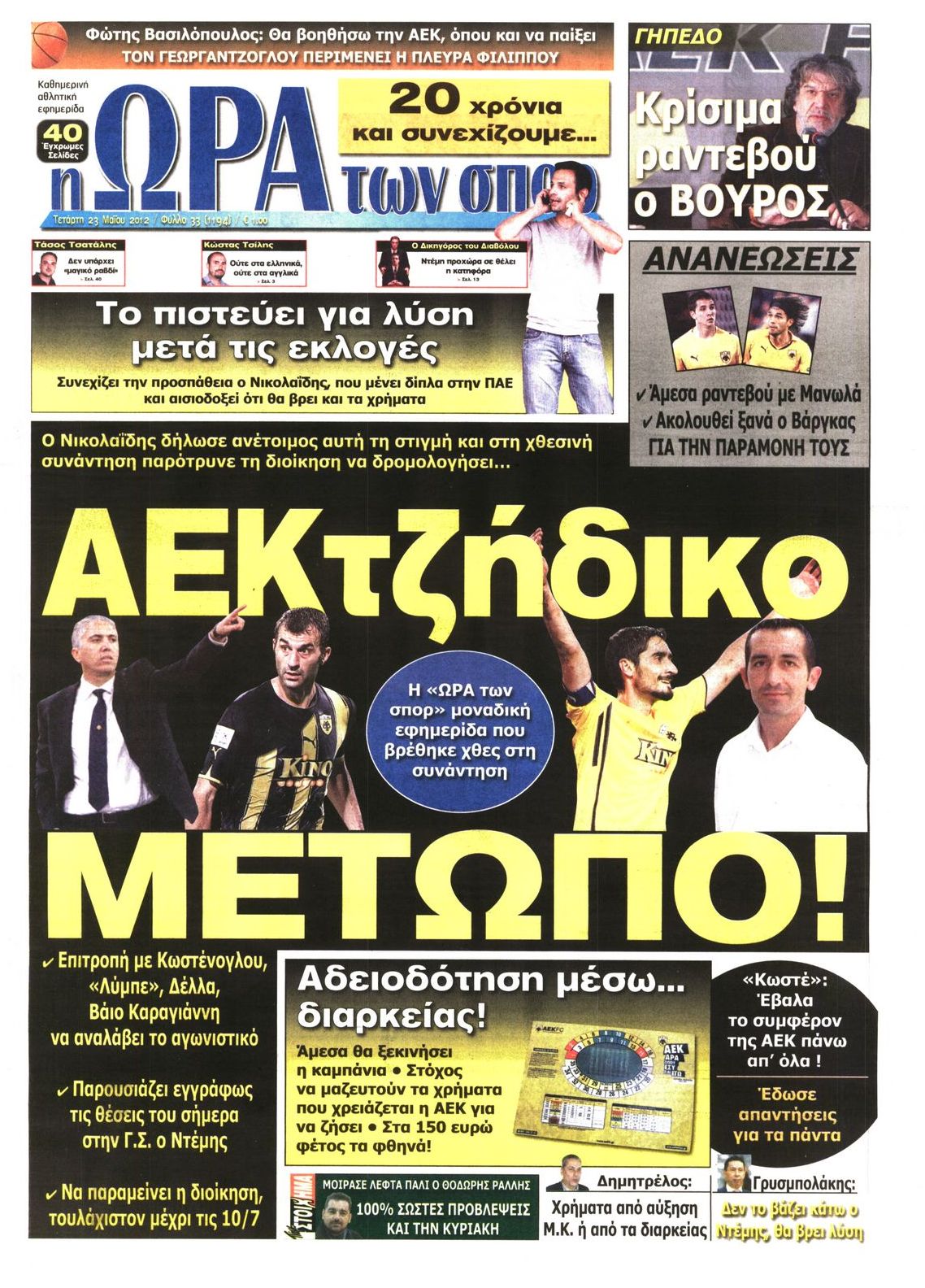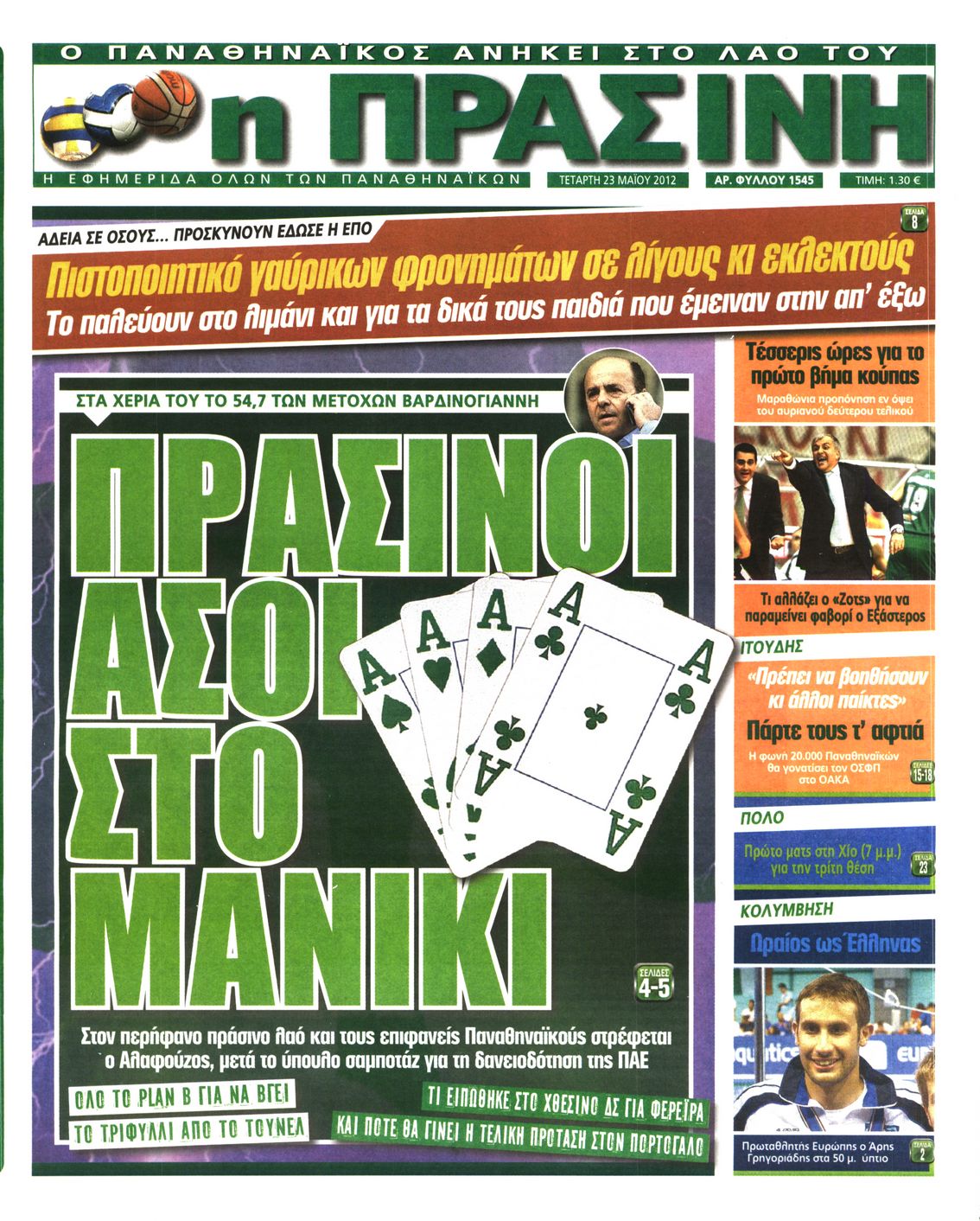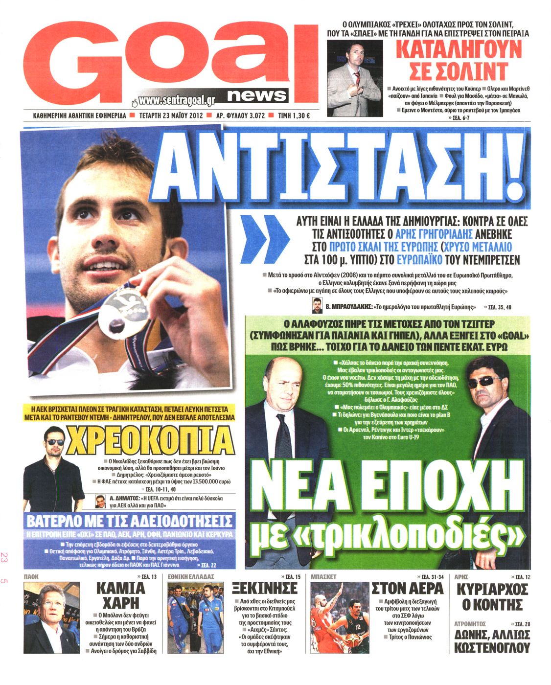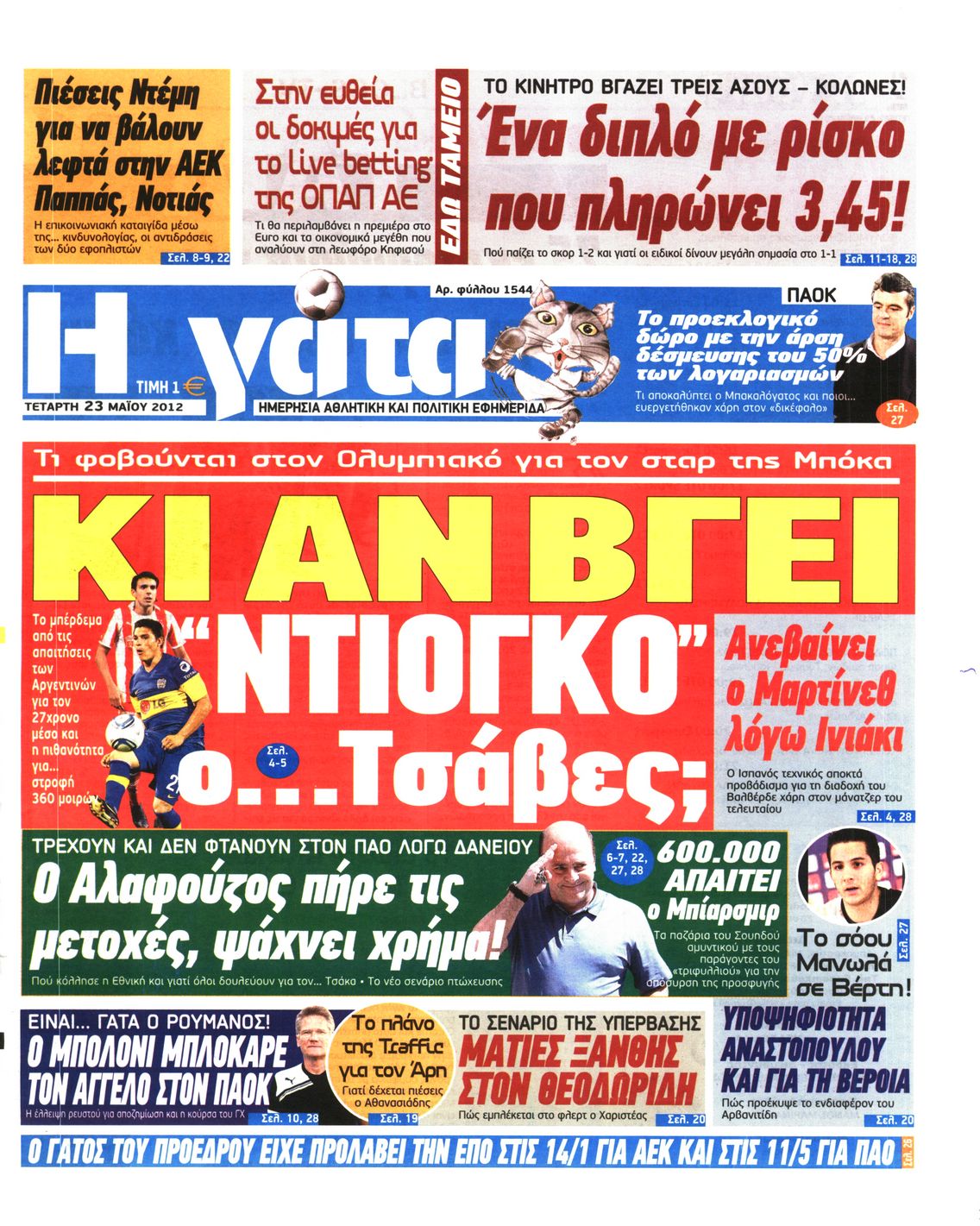 Τα αθλητικά πρωτοσέλιδα Enikos Newsroom 07:49, Τετάρτη 23 Μαΐου 2012 Media ΕΦΗΜΕΡΙΔΕΣ ΠΡΩΤΟΣΕΛΙΔΑ Μοιράσου το: σχολίασε κι εσύ (0 σχόλια) Ακολουθήστε το enikos.gr στο Google News και μάθετε πρώτοι όλες τις ειδήσεις Δείτε όλες τις τελευταίες ειδήσεις από την Ελλάδα και τον Κόσμο στο enikos.gr Ειδήσεις Ροή Ειδήσεων 9 ώρες πριν Reuters: Οι ΗΠΑ προετοιμάζονται στρατιωτικά για επιχειρήσεις εβδομάδων κατά του Ιράν σε περίπτωση που δεν επιτευχθεί συμφωνία 3 ώρες πριν Η Τουρκία πλασάρει το μαχητικό της ΚΑΑΝ ως εναλλακτικό μαχητικό 5ης γενιάς – Αποκλειστικές εικόνες 2 ώρες πριν Ζιζέλ Πελικό: Ένιωσα συντετριμμένη από τον τρόμο, αλλά δεν νιώθω θυμό – Η συνέντευξη στο BBC 3 ώρες πριν Συντάξεις Μαρτίου 2026: Αυτή είναι η απόφαση του e-ΕΦΚΑ για τις πληρωμές – Όλες οι ημερομηνίες 2 ώρες πριν Λίντσεϊ Βον: Ο χειρουργός της μιλάει εν μέσω φόβων για ακρωτηριασμό – Η κατάστασή της μετά το τρομακτικό ατύχημα στους Χειμερινούς Ολυμπιακούς Αγώνες 4 ώρες πριν Οπτική ψευδαίσθηση: Μόνο το 1% των ανθρώπων θα βρει το φίδι σε 15 δευτερόλεπτα 2 ώρες πριν Ανακαλύφθηκε το αρχαίο μυστικό της Τραπεζούντας – Το άγνωστο λιμάνι κάτω από τη σύγχρονη αγορά 1 ώρα πριν Η μητέρα της πρέπει να κάνει μεταμόσχευση νεφρού και δεν θέλει να γίνει δότρια – «Μου φέρθηκε απαίσια, ποτέ δεν νοιάστηκε για μένα» 28 λεπτά πριν Τα 3 ζώδια που θα ζήσουν τον απόλυτο έρωτα την Ημέρα του Αγίου Βαλεντίνου – «Μην αφήσετε αυτή τη στιγμή να πάει χαμένη» 11 λεπτά πριν Χειμερινοί Ολυμπιακοί Αγώνες: Ο βουδιστής μοναχός του… σνόουμπορντ στο προσκήνιο μετά τα 3 μετάλλια της Νότιας Κορέας 19 λεπτά πριν Την Κυριακή με τη Realnews: Ό,τι και αν αγοράσεις, σκανάρεις και κερδίζεις! 28 λεπτά πριν Τα 3 ζώδια που θα ζήσουν τον απόλυτο έρωτα την Ημέρα του Αγίου Βαλεντίνου – «Μην αφήσετε αυτή τη στιγμή να πάει χαμένη» 29 λεπτά πριν Γαλλία: Εκτεταμένες πλημμύρες σε όλη τη χώρα – Εκκενώσεις σπιτιών και καταστροφές 37 λεπτά πριν Grand Hotel: Ο Ρήγας συγκρούεται έντονα με την Κυβέλη – Η Αλίκη λυγίζει στην αγκαλιά του Πέτρου ENIKOS NETWORK Ένα στα 100 παιδιά γεννιέται με κάποια μορφή συγγενούς καρδιοπάθειας Επίμονη καούρα: Η κοινή ενόχληση που μπορεί να είναι σύμπτωμα σοβαρής νόσου – Πότε να ανησυχήσετε Άγιος Βαλεντίνος 2026: Πόσο κοστίζουν φέτος τα τριαντάφυλλα – Πού κυμαίνεται η τιμή του «βασιλιά των λουλουδιών» Αντίστροφη μέτρηση για τις φορολογικές δηλώσεις – Τι πρέπει να ελέγξουν οι φορολογούμενοι στα προσυμπληρωμένα στοιχεία Ευπάθεια στο moltbook ai αποκαλύπτει email, tokens σύνδεσης και api keys Αυτός είναι ο ρόλος της μικρής τρύπας στους νυχοκόπτες – «Είμαι ο μόνος που δεν το ήξερε;»» περισσότερα 10:00 , Σάββατο 14 Φεβρουαρίου 2026 Grand Hotel: Ο Ρήγας συγκρούεται έντονα με την Κυβέλη – Η Αλίκη λυγίζει στην αγκαλιά του Πέτρου Καθηλώνουν οι εξελίξεις στα νέα επεισόδια της σειράς «Grand Hotel» που θα προβληθούν από Δευτέ... 08:45 , Σάββατο 14 Φεβρουαρίου 2026 Άγιος έρωτας: Η Χριστίνα αποφυλακίζεται – Καταιγιστικές εξελίξεις στα επόμενα επεισόδια Ο Χάρης είναι επιτέλους ελεύθερος να συνεχίσει τη ζωή του με την Αναστασία στα νέα επεισόδια τ... 05:48 , Σάββατο 14 Φεβρουαρίου 2026 Οι οικονομικές εφημερίδες 14/2/2026 Διαβάστε τα πρωτοσέλιδα από τις οικονομικές εφημερίδες, σήμερα 14/2/2026. 02:10 , Σάββατο 14 Φεβρουαρίου 2026 Sing for Greece – Eurovision 2026: H σειρά εμφάνισης των 14 φιναλίστ στον τελικό Αυλαία έπεσε λίγο πριν από τα μεσάνυχτα της Παρασκευής για τον Β’ Ημιτελικό Sing For Greece τη... ΤΕΛΕΥΤΑΙΕΣ ΕΙΔΗΣΕΙΣ 11 λεπτά πριν Χειμερινοί Ολυμπιακοί Αγ