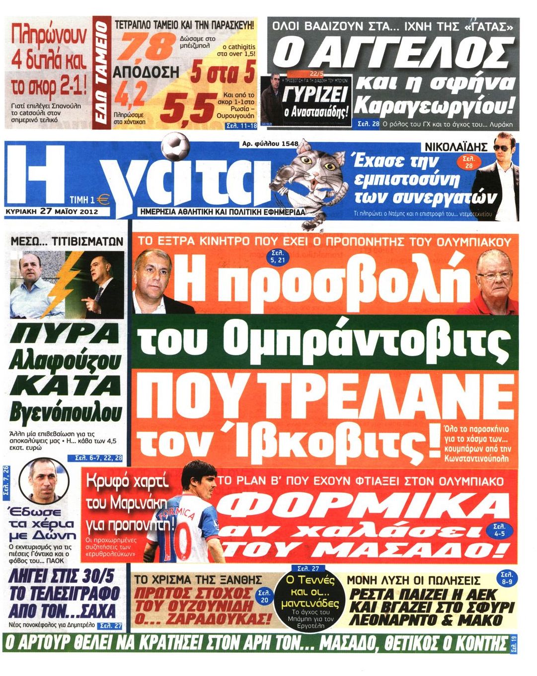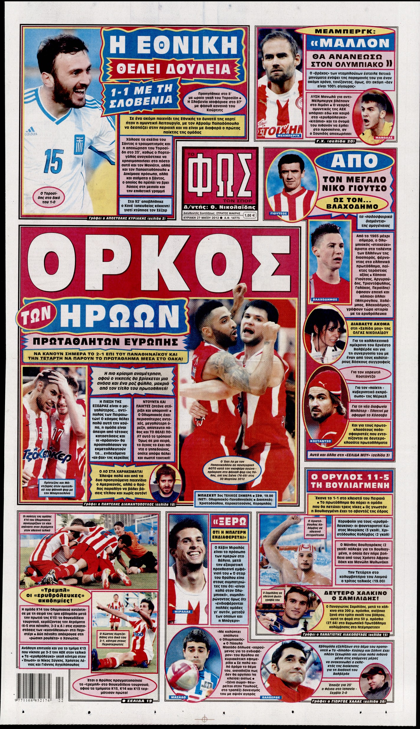 Τα αθλητικά πρωτοσέλιδα Enikos Newsroom 08:40, Κυριακή 27 Μαΐου 2012 Media ΕΦΗΜΕΡΙΔΕΣ ΠΡΩΤΟΣΕΛΙΔΑ Μοιράσου το: σχολίασε κι εσύ (0 σχόλια) Ακολουθήστε το enikos.gr στο Google News και μάθετε πρώτοι όλες τις ειδήσεις Δείτε όλες τις τελευταίες ειδήσεις από την Ελλάδα και τον Κόσμο στο enikos.gr Ειδήσεις Ροή Ειδήσεων 1 ώρα πριν Μητσοτάκης για αγρότες: Ελπίζω πως θα απομακρυνθούν σύντομα από τα μπλόκα 3 ώρες πριν Έρευνα MRB: Η πρόθεση ψήφου και τα σημαντικότερα προβλήματα – Οι «λέξεις» που εκφράζουν τους πολίτες 21 λεπτά πριν Αγρότες: Επ’ αόριστον μπλόκο στον σταθμό στον Προμαχώνα για τα φορτηγά – Κλείνει το ρεύμα εισόδου στα Μάλγαρα 26 λεπτά πριν Μισέλ Ομπάμα: Εμφανώς αδυνατισμένη στην εκπομπή του Τζίμι Κίμελ – Οι φήμες για τη χρήση Ozempic και η «φιλία» της με τον Ρομπ Ράινερ 3 ώρες πριν Αλαλούμ με τις πληρωμές στους αγρότες: Δεν καταβλήθηκε η Βασική Ενίσχυση, αλλά έγινε παρακράτηση της εισφοράς στον ΕΛΓΑ – Τι απαντά η κυβέρνηση 3 ώρες πριν Τα 4 ζώδια που ξαναβρίσκουν τον εαυτό τους – «Μπαίνετε επιτέλους στην ουσία των πραγμάτων» 4 ώρες πριν 20 χρόνια τα Χριστούγεννα ξεκινούν στα Public με μεγάλη ποικιλία σε δώρα! 2 ώρες πριν «Δεν είχα κλάψει από τότε που διαγνώστηκα με καρκίνο, ώσπου ένα τηλεφώνημα με έκανε να λυγίσω» – Η συγκλονιστική εξομολόγηση ενός άνδρα 1 ώρα πριν Τα 7 σπάνια χαρακτηριστικά που κάνουν κάποιους ανθρώπους ακαταμάχητους 4 λεπτά πριν Ο Δημήτρης Μαύρος στον Realfm 97,8 για τις τάσεις της MRB 9 λεπτά πριν Αγρίνιο: Στο νοσοκομείο 9χρονος που έλαβε φάρμακο σε challenge με συμμαθητή του 15 λεπτά πριν Λευκορωσία: «Ο πόλεμος στην Ουκρανία πρέπει να σταματήσει», λέει ο Λουκασένκο – «Πολλά εξαρτώνται από τον Τραμπ» 19 λεπτά πριν Τασούλας σε Μητσοτάκη: Όλα μπορούν να λυθούν εν πολλοίς όχι συγκρουσιακά αλλά με διαδικασίες καταλλαγής και διαλόγου 21 λεπτά πριν Αγρότες: Επ’ αόριστον μπλόκο στον σταθμό στον Προμαχώνα για τα φορτηγά – Κλείνει το ρεύμα εισόδου στα Μάλγαρα ENIKOS NETWORK Ανησυχητική αύξηση της υπέρτασης στα παιδιά – Πώς θα τα προστατέψουμε; Αδενώματα Υπόφυσης: Μια πάθηση καλοήθης, αλλά όχι αθώα Διευκρινίσεις από το ΥΠΑΑΤ και τον ΟΠΕΚΕΠΕ για την εξόφληση της βασικής ενίσχυσης στους αγρότες Προϋπολογισμός: Στα 12,6 δισ. ευρώ το πρωτογενές πλεόνασμα το 11μηνο-Δείτε αναλυτικά τα στοιχεία Σύγχρονος Νοστράδαμος: Προειδοποιεί για «μεγάλο γεγονός» τους επόμενους μήνες που θα συγκλονίσει τη Βρετανία και τον κόσμο Τεστ παρατηρητικότητας: Μπορείτε να βρείτε τις 3 διαφορές στις εικόνες με έναν πιγκουίνο σε 14 δευτερόλεπτα περισσότερα 12:35 , Τετάρτη 17 Δεκεμβρίου 2025 Μίρκα Παπακωνσταντίνου: «Δεν ήμουν αισιόδοξη για τα νούμερα – Είμαι ρεαλίστρια» Στα γυρίσματα του εορταστικού επεισοδίου της αγαπημένης σειράς “Το Σόι Σου”, βρέθηκε η κάμερα ... 12:12 , Τετάρτη 17 Δεκεμβρίου 2025 Ακούστε την εκπομπή του Νίκου Χατζηνικολάου 17/12/2025 Ακούστε την εκπομπή του Νίκου Χατζηνικολάου στον ραδιοφωνικό σταθμό RealFm 97,8, την Τετάρτη 1... 11:35 , Τετάρτη 17 Δεκεμβρίου 2025 Home Alone: Το σπίτι της ταινίας θα ανακαινιστεί – Επιστροφή στην αισθητική της δεκαετίας του ’90 Οι νέοι ιδιοκτήτες του πραγματικού σπιτιού που παρουσιάζεται στην κλασική ταινία του 1990 «Hom... 11:25 , Τετάρτη 17 Δεκεμβρίου 2025 Grand Hotel: Απόψε το τελευταίο επεισόδιο της χρονιάς – Όλα τα μυστικά μένουν εδώ Το τελευταίο επεισόδιο της χρονιάς της σειράς «Grand Hotel» θα προβληθεί απόψε στις 21:00. Ο Ά... ΤΕΛΕΥΤΑΙΕΣ ΕΙΔΗΣΕΙΣ 4 λεπτά πριν Ο Δημήτρης Μαύρος στον Realfm 97,8 για τις τάσεις της MRB 