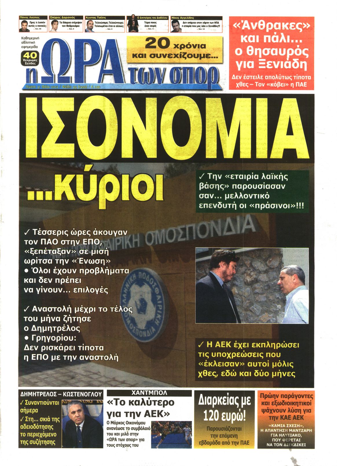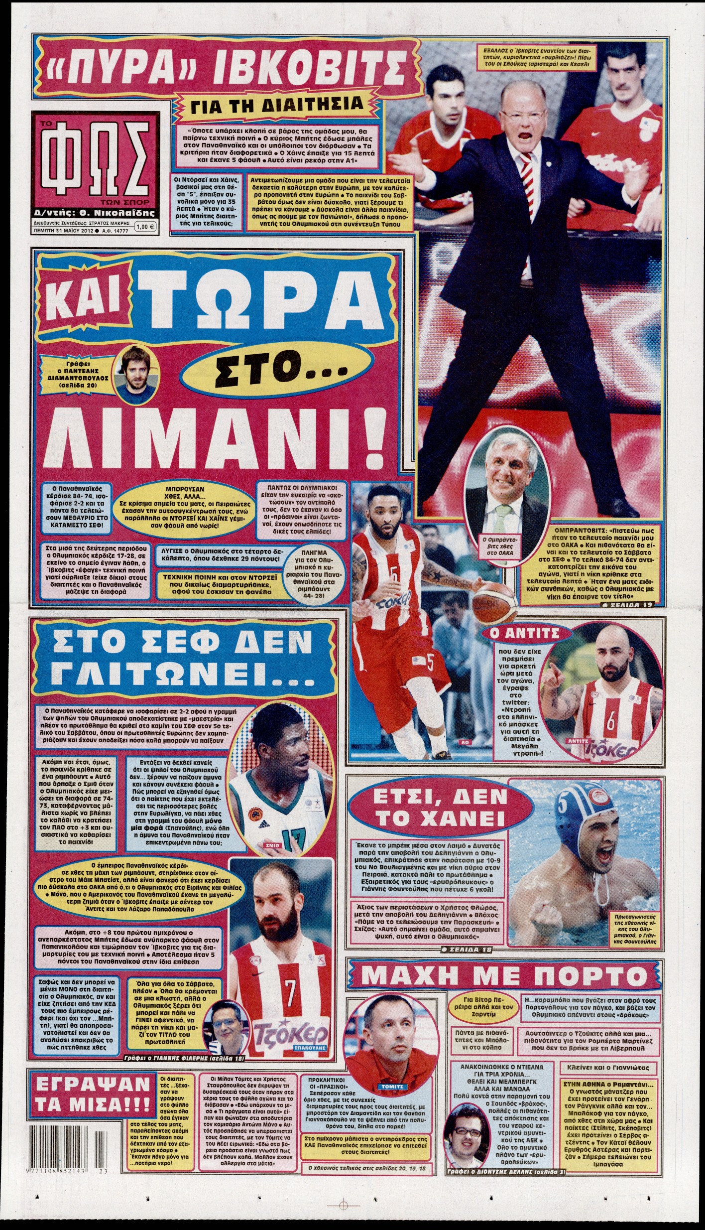 Τα αθλητικά πρωτοσέλιδα Enikos Newsroom 07:45, Πέμπτη 31 Μαΐου 2012 Media ΕΦΗΜΕΡΙΔΕΣ ΠΡΩΤΟΣΕΛΙΔΑ Μοιράσου το: σχολίασε κι εσύ (0 σχόλια) Ακολουθήστε το enikos.gr στο Google News και μάθετε πρώτοι όλες τις ειδήσεις Δείτε όλες τις τελευταίες ειδήσεις από την Ελλάδα και τον Κόσμο στο enikos.gr Ειδήσεις Ροή Ειδήσεων 3 ώρες πριν Αγρότες: «Όχι στον διάλογο, μας εμπαίζει η κυβέρνηση» – Αποφάσισαν κλιμάκωση των κινητοποιήσεων, τι θα γίνει τα Χριστούγεννα 3 ώρες πριν Την πρώτη Belharra παρέλαβε η χώρα μας, υψώθηκε η ελληνική σημαία στη φρεγάτα «Κίμων» – Δένδιας: «Το ισχυρότερο Πολεμικό Ναυτικό που είχε ποτέ ο ελληνισμός» 1 ώρα πριν Γιώργος Μαζωνάκης: «Έχει υποστεί ένα σωρό εκβιαστικές πρακτικές – Του είπαν ότι θα του βάλουν τον συγκεκριμένο άνθρωπο να τον καταγγείλει» 3 ώρες πριν Μιχάλης Χουρδάκης: «Είμαι διαθέσιμος να συμβάλω στην προσωρινή κάλυψη του ιατρείου της Ψερίμου» – Η επιστολή στον Άδωνι Γεωργιάδη 3 ώρες πριν Εξώδικο Γεωργιάδη στην Κωνσταντοπούλου – «Με κατηγόρησε ότι έχω καταδικαστεί για παιδεραστία» 40 λεπτά πριν Γάμος: 11 ψυχρές αλλά ευγενικές φράσεις, που λέει ένας άνδρας όταν σκέφτεται τον χωρισμό 4 ώρες πριν Τα 5 ζώδια που θα ευνοηθούν στα οικονομικά τους το 2026 – «Τραβούν το χρήμα σαν μαγνήτες» 5 ώρες πριν Αυτό που κρύβεται κάτω από τη Γροιλανδία θα μπορούσε να ανατρέψει όσα γνωρίζουμε για την άνοδο της στάθμης των θαλασσών 1 ημέρα πριν 20 χρόνια τα Χριστούγεννα ξεκινούν στα Public με μεγάλη ποικιλία σε δώρα! 6 λεπτά πριν Σοκ στη Σουηδία: 12χρονος πληρωμένος δολοφόνος σκότωσε λάθος άτομο 11 λεπτά πριν FIFA: Έτοιμη να… επανεντάξει τη Ρωσία από το 2026 15 λεπτά πριν Live η κίνηση: Στο «κόκκινο» Κηφισός, Κηφισίας και οι δρόμοι στο κέντρο – Καθυστερήσεις και στην Αττική Οδό 20 λεπτά πριν Εξεταστική για ΟΠΕΚΕΠΕ: Νέο επεισόδιο Κωνσταντοπούλου με Λαζαρίδη και Συρεγγέλα – ΒΙΝΤΕΟ 26 λεπτά πριν Συνάντηση Γεραπετρίτη με την Βρετανή ομόλογό του – Έθεσε και το θέμα των Γλυπτών του Παρθενώνα ENIKOS NETWORK Ξεκίνησε η «επέλαση» της γρίπης στην Ελλάδα-Ποιοι κινδυνεύουν ΕΟΔΥ: Δωρεάν τεστ για HIV, Ηπατίτιδες, Σύφιλη, Χλαμύδια, Γονόρροια Κλιμάκωση των κινητοποιήσεων αποφάσισαν οι αγρότες, κλείνουν παρακαμπτήριους την Παρασκευή – Τι απαντά η κυβέρνηση Ευλογιά αιγοπροβάτων: Νέες αποζημιώσεις ύψους 26,02 εκατ. ευρώ σε κτηνοτρόφους – Η κατανομή ανά Περιφέρεια Χαρτογραφώντας το «σημείο χωρίς επιστροφή»: Για πρώτη φορά αποκαλύπτεται με λεπτομέρεια το ακανθώδες όριο της ατμόσφαιρας τ... Η Google καταργεί τη λειτουργία «dark web report» – Πώς θα μπορούν οι χρήστες να διαγράφουν τα δεδομένα τους περισσότερα 17:45 , Πέμπτη 18 Δεκεμβρίου 2025 ROUK ZOUK: Εορταστικό επεισόδιο με καλεσμένους τους πρωταγωνιστές του «Γιατί ρε πατέρα» Το Σάββατο 20 Δεκεμβρίου στις 21:00, η Ζέτα Μακρυπούλια υποδέχεται εκλεκτούς ηθοποιούς που όλο... 17:20 , Πέμπτη 18 Δεκεμβρίου 2025 Άγιος έρωτας: Η Χριστίνα εξομολογείται στον πατέρα Νικόλαο, απόψε στις 21:00 στον Alpha Η Νότα αποφασίζει να εκδικηθεί τον Πέτρο και τον Στέφανο, για χάρη του Λούη, όμως τα πράγματα ... 16:50 , Πέμπτη 18 Δεκεμβρίου 2025 Να μ’ αγαπάς: Ζωή και Φωτεινή συμφιλιώνονται ως μάνα με κόρη, απόψε στις 20:00 Η ταυτότητα του Άγγελου αποκαλύπτεται στο νέο επεισόδιο της σειράς “Να μ’ αγαπάς... 15:52 , Πέμπτη 18 Δεκεμβρίου 2025 Το Σπίτι Δίπλα Στο Ποτάμι: Το καθηλωτικό τελευταίο επεισόδιο για το 2025 απόψε στις 22:30 Καθηλώνει το σημερινό επεισόδιο της σειράς “Το Σπίτι Δίπλα Στο Ποτάμι” που έρχεται... ΤΕΛΕΥΤΑΙΕΣ ΕΙΔΗΣΕΙΣ 6 λεπτ