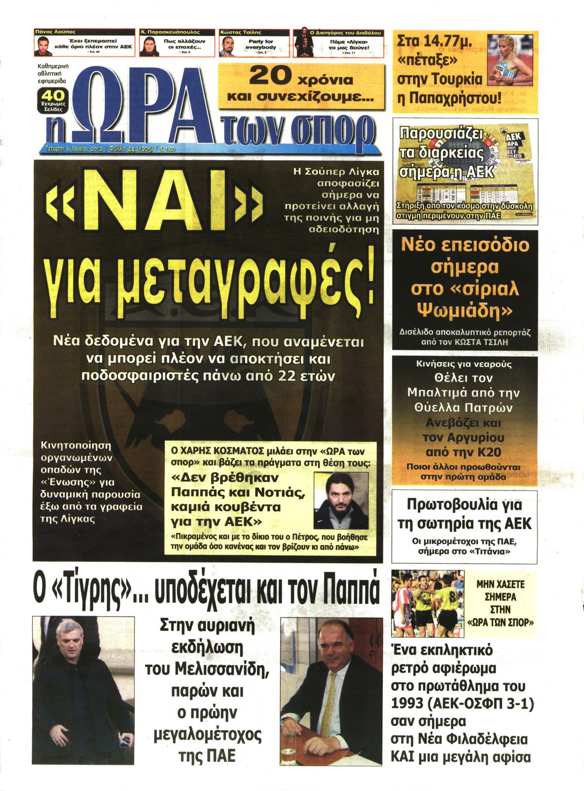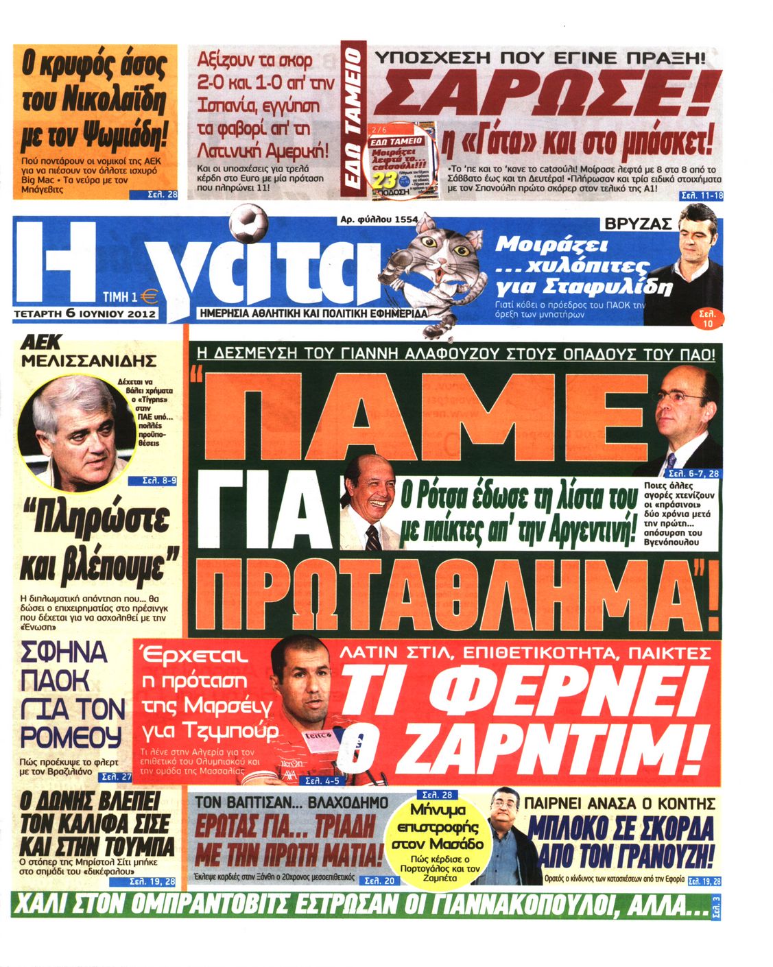 Τα αθλητικά πρωτοσέλιδα Enikos Newsroom 07:46, Τετάρτη 06 Ιουνίου 2012 Media ΕΦΗΜΕΡΙΔΕΣ ΠΡΩΤΟΣΕΛΙΔΑ Μοιράσου το: σχολίασε κι εσύ (0 σχόλια) Ακολουθήστε το enikos.gr στο Google News και μάθετε πρώτοι όλες τις ειδήσεις Δείτε όλες τις τελευταίες ειδήσεις από την Ελλάδα και τον Κόσμο στο enikos.gr Ειδήσεις Ροή Ειδήσεων 26 λεπτά πριν Ο Κυριάκος Μητσοτάκης ανοίγει τα χαρτιά του για τη Συνταγματική Αναθεώρηση – Στο τραπέζι και η μονιμότητα των δημοσίων υπαλλήλων 1 ώρα πριν Νέα Πέραμος: Τραύματα από πυροβόλο όπλο φέρει η σορός του άνδρα που εντοπίστηκε σε ρέμα – Εκτιμάται πως ανήκει σε 27χρονο αγνοούμενο 4 ώρες πριν Κακοκαιρία – Αγιόκαμπος: Πλημμύρισαν 10 σπίτια και μία επιχείρηση λόγω υπερχείλισης ρέματος – «Είχαμε κατολισθήσεις σε αρκετά σημεία του δήμου Αγιάς» 10 ώρες πριν Live η πορεία της κακοκαιρίας: Γέμισαν λασπόνερα δρόμοι και σοκάκια στα νησιά – Δεκάδες κλήσεις στην Πυροσβεστική στην Κεντρική Μακεδονία 1 ώρα πριν Ξέσπασμα Γιαννακόπουλου μετά την ήττα του Παναθηναϊκού: Να παραιτηθείτε όλοι σας, είστε ξεφτιλισμένοι 5 ώρες πριν Τα 3 ζώδια που προσελκύουν οικονομική επιτυχία έως τις 8 Φεβρουαρίου – «Το σύμπαν εξοφλεί χρέη 8 ετών και οι προσπάθειές σας αναγνωρίζονται» 10 ώρες πριν Γυναίκα που έχασε 14 κιλά σε 4 μήνες αποκαλύπτει: «Αυτές οι 5 συμβουλές με βοήθησαν να απαλλαγώ από το τοπικό πάχος» 2 ώρες πριν Κουζίνα: Πώς να οργανώσετε τον χώρο σας χωρίς να πετάξετε τίποτα – Έξυπνες αλλαγές που περιορίζουν την ακαταστασία 1 ώρα πριν Τα 11 ψέματα που λένε πάντα οι άνδρες για να σας πείσουν ότι έχετε εσείς το πρόβλημα 4 λεπτά πριν Αριθμολογία: Οι 3 «καταραμένες» διευθύνσεις σπιτιού – «Τα νούμερα αυτά συνδέονται με αναταραχές και αρνητική ενέργεια» 12 λεπτά πριν Ο Κασσελάκης στέλνει στην επιτροπή δεοντολογίας τον Θανάση Οικονόμου – Η ανάρτηση που οδήγησε στη σύγκρουση 19 λεπτά πριν Κακοκαιρία – Θεσσαλονίκη: Έπεσαν δέντρα και υπερχείλισαν χείμαρροι στη Θέρμη – Αποκλείστηκαν οι ιρλανδικές διαβάσεις 26 λεπτά πριν Ο Κυριάκος Μητσοτάκης ανοίγει τα χαρτιά του για τη Συνταγματική Αναθεώρηση – Στο τραπέζι και η μονιμότητα των δημοσίων υπαλλήλων 39 λεπτά πριν Συγκλονιστικές στιγμές στο ΠΑΟΚ – Πανσερραϊκός: Δάκρυα και εκατοντάδες στεφάνια – Δόνησε την Τούμπα το «αδέλφια ζείτε, εσείς μας οδηγείτε» ENIKOS NETWORK Γελάτε, κλαίτε ή ανοίγει η μύτη σας μετά τον οργασμό – Πού οφείλεται, σύμφωνα με μελέτη; Πώς να ξεφορτωθείτε τις σακούλες κάτω από τα μάτια – Tips που δουλεύουν ΔΕΗ: Σταθερό το πράσινο τιμολόγιο της για τον Φεβρουάριο – Τι λέει για τα κυμαινόμενα Πορτοκαλί τιμολόγια ρεύματος: Σήμερα η πρεμιέρα-Ποιους αφορά, τι δήλωσε ο Παπασταύρου Σπαζοκεφαλιά: Βρες πόσα 9 υπάρχουν στην εικόνα σε 8 δευτερόλεπτα Τεστ IQ: Μπορείς να εντοπίσεις τον αριθμό 999 ανάμεσα στα 99Q σε 15 δευτερόλεπτα; περισσότερα 17:13 , Κυριακή 01 Φεβρουαρίου 2026 Σία Κοσιώνη: Το πρώτο μήνυμα μετά την περιπέτεια με την υγεία της – «Τα καταφέραμε» Για έναν δύσκολο Ιανουάριο που της φάνηκε σαν ένας ολόκληρος χρόνος κάνει λόγο η Σία Κοσιώνη σ... 15:05 , Κυριακή 01 Φεβρουαρίου 2026 Από Ήλιο σε Ήλιο: Πότε κάνει τελικά πρεμιέρα η νέα σειρά της ΕΡΤ1; Το αρχικό πλάνο και η μετακίνηση της προβολής. Της Νάντιας Ρηγάτου Μπορεί η Μεγάλη Χίμαιρα να ... 15:04 , Κυριακή 01 Φεβρουαρίου 2026 Στο real taste & style που κυκλοφορεί με τη Realnews Στο real taste & style που κυκλοφορεί με τη Realnews. Τον Φεβρουάριο, η πατάτα βγαίνει μπρ... 13:47 , Κυριακή 01 Φεβρουαρίου 2026 Άγιος Έρωτας: Ο πατέρας Νικόλαος και