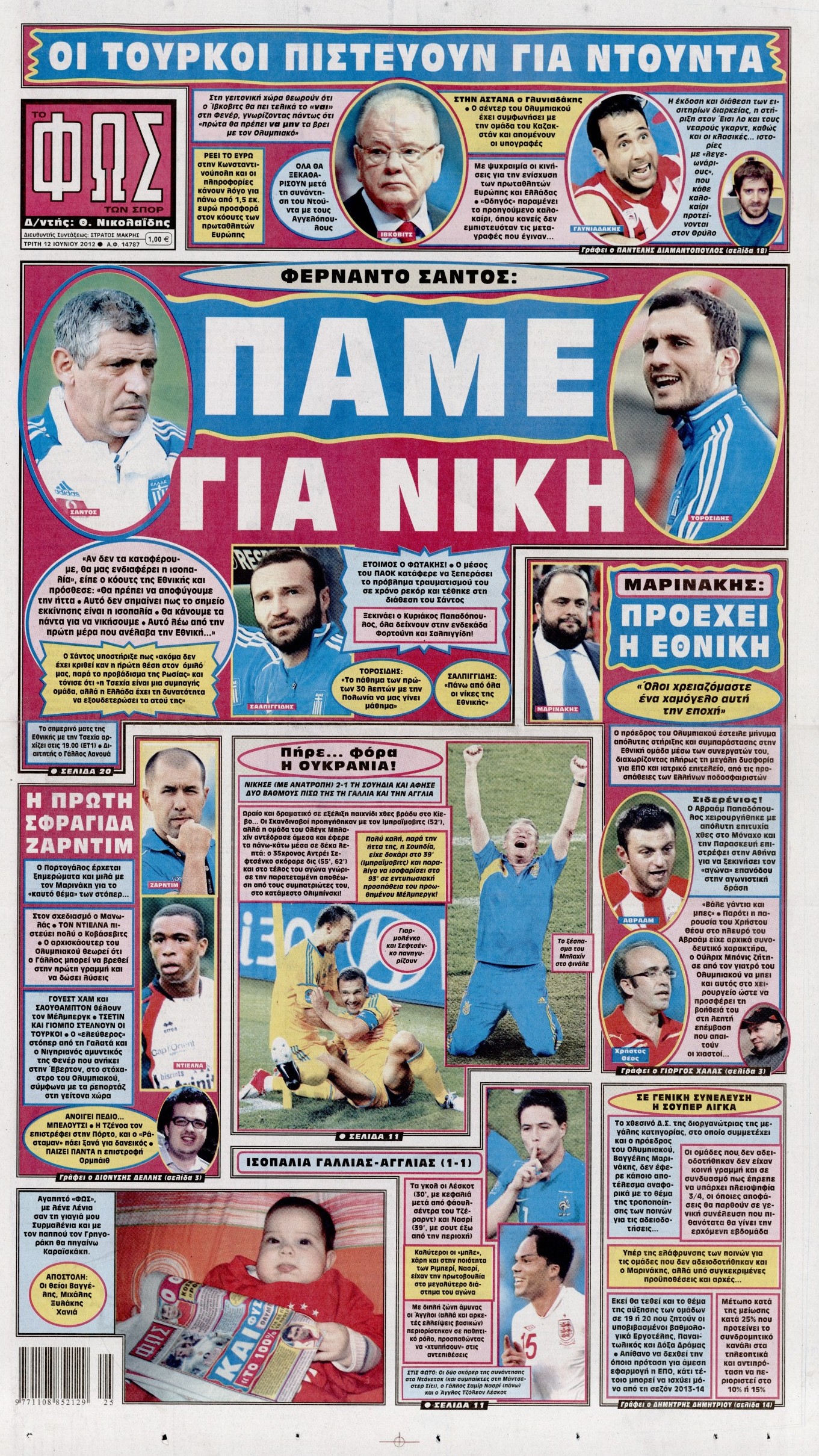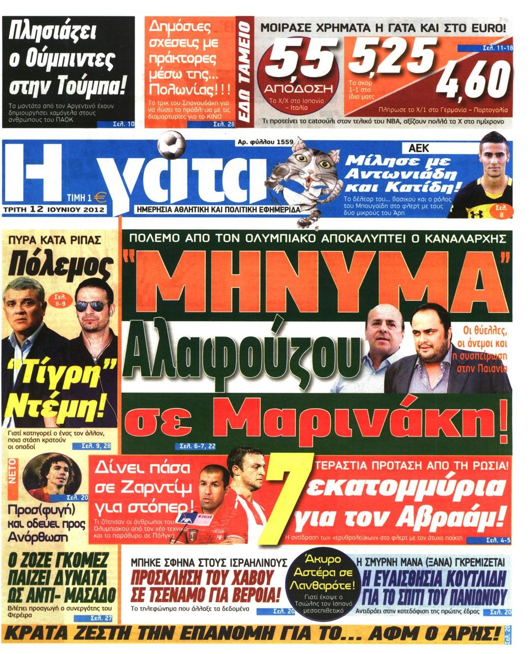 Τα αθλητικά πρωτοσέλιδα Enikos Newsroom 07:30, Τρίτη 12 Ιουνίου 2012 Media ΕΦΗΜΕΡΙΔΕΣ ΠΡΩΤΟΣΕΛΙΔΑ Μοιράσου το: σχολίασε κι εσύ (0 σχόλια) Ακολουθήστε το enikos.gr στο Google News και μάθετε πρώτοι όλες τις ειδήσεις Δείτε όλες τις τελευταίες ειδήσεις από την Ελλάδα και τον Κόσμο στο enikos.gr Ειδήσεις Ροή Ειδήσεων 2 ώρες πριν Πούτιν: «Ανοησίες» και «υστερίες» οι ισχυρισμοί της Ευρώπης για πιθανή σύγκρουση με τη Ρωσία – «Κάνουν πλύση εγκεφάλου» 6 ώρες πριν Έρευνα MRB: Η πρόθεση ψήφου και τα σημαντικότερα προβλήματα – Οι «λέξεις» που εκφράζουν τους πολίτες 3 ώρες πριν Αμοργός: «Θα προσπαθήσω να το κάνω κάθε μέρα» – Ποιος είναι ο αγρότης που έστησε μόνος του το πρώτο μπλόκο στο νησί 53 λεπτά πριν Τραγωδία στην Αλεξανδρούπολη: Παιδάκι 3 ετών μεταφέρθηκε νεκρό από τη μητέρα του στο νοσοκομείο 2 ώρες πριν Συνάντηση Μητσοτάκη με την Κ.Ο. της ΝΔ: Οι αφίξεις των βουλευτών, τα γλυκά και τα «πηγαδάκια» 6 ώρες πριν Τα 4 ζώδια που ξαναβρίσκουν τον εαυτό τους – «Μπαίνετε επιτέλους στην ουσία των πραγμάτων» 7 ώρες πριν 20 χρόνια τα Χριστούγεννα ξεκινούν στα Public με μεγάλη ποικιλία σε δώρα! 5 ώρες πριν «Δεν είχα κλάψει από τότε που διαγνώστηκα με καρκίνο, ώσπου ένα τηλεφώνημα με έκανε να λυγίσω» – Η συγκλονιστική εξομολόγηση ενός άνδρα 4 ώρες πριν Τα 7 σπάνια χαρακτηριστικά που κάνουν κάποιους ανθρώπους ακαταμάχητους 4 λεπτά πριν Τα 3 ζώδια που θα δουν τη ζωή τους να αλλάζει ριζικά το 2026 – «Όλα γίνονται καλύτερα σταδιακά» 8 λεπτά πριν Νέο επεισόδιο στην Εξεταστική ανάμεσα σε Κωνσταντοπούλου και Συρεγγέλα – Διακόπηκε προσωρινά η συνεδρίαση 14 λεπτά πριν Εξαφάνιση 33χρονου γιατρού στην Κρήτη: Για απάτη κατηγορείται ο ιδιωτικός ερευνητής που συνελήφθη 20 λεπτά πριν Εξεταστική για ΟΠΕΚΕΠΕ-Μυλωνάκης: Διαχρονικές, διακομματικές οι παθογένειες – Τι είπε για Μπουκώρο και Βάρρα 26 λεπτά πριν Παναθηναϊκός: Θέλει τον Κέπα της Άρσεναλ δανεικό για 6 μήνες ENIKOS NETWORK 5 πράγματα που αποφεύγει γαστρεντερολόγος για να μειώσει τον κίνδυνο καρκίνου του εντέρου Ανησυχητική αύξηση της υπέρτασης στα παιδιά – Πώς θα τα προστατέψουμε; Συντάξεις Ιανουαρίου 2026: Σε ποιους θα πιστωθούν την Πέμπτη τα χρήματα και τι αυξήσεις θα δοθούν – Δείτε αναλυτικά παραδεί... ΕΛΕΤΑΕΝ: Πόσα χρήματα θα δοθούν σε δήμους και νοικοκυριά από τις ΑΠΕ Σύγχρονος Νοστράδαμος: Προειδοποιεί για «μεγάλο γεγονός» τους επόμενους μήνες που θα συγκλονίσει τη Βρετανία και τον κόσμο Τεστ παρατηρητικότητας: Μπορείτε να βρείτε τις 3 διαφορές στις εικόνες με έναν πιγκουίνο σε 14 δευτερόλεπτα περισσότερα 12:35 , Τετάρτη 17 Δεκεμβρίου 2025 Μίρκα Παπακωνσταντίνου: «Δεν ήμουν αισιόδοξη για τα νούμερα – Είμαι ρεαλίστρια» Στα γυρίσματα του εορταστικού επεισοδίου της αγαπημένης σειράς “Το Σόι Σου”, βρέθηκε η κάμερα ... 12:12 , Τετάρτη 17 Δεκεμβρίου 2025 Ακούστε την εκπομπή του Νίκου Χατζηνικολάου 17/12/2025 Ακούστε την εκπομπή του Νίκου Χατζηνικολάου στον ραδιοφωνικό σταθμό RealFm 97,8, την Τετάρτη 1... 11:35 , Τετάρτη 17 Δεκεμβρίου 2025 Home Alone: Το σπίτι της ταινίας θα ανακαινιστεί – Επιστροφή στην αισθητική της δεκαετίας του ’90 Οι νέοι ιδιοκτήτες του πραγματικού σπιτιού που παρουσιάζεται στην κλασική ταινία του 1990 «Hom... 11:25 , Τετάρτη 17 Δεκεμβρίου 2025 Grand Hotel: Απόψε το τελευταίο επεισόδιο της χρονιάς – Όλα τα μυστικά μένουν εδώ Το τελευταίο επεισόδιο της χρονιάς της σειράς «Grand Hotel» θα προβληθεί απόψε στις 21:00. Ο Ά... ΤΕΛΕΥΤΑΙΕΣ ΕΙΔΗΣΕΙΣ 8 λεπτά πριν Νέο επεισόδιο στην Εξεταστική ανάμεσα σε... 1