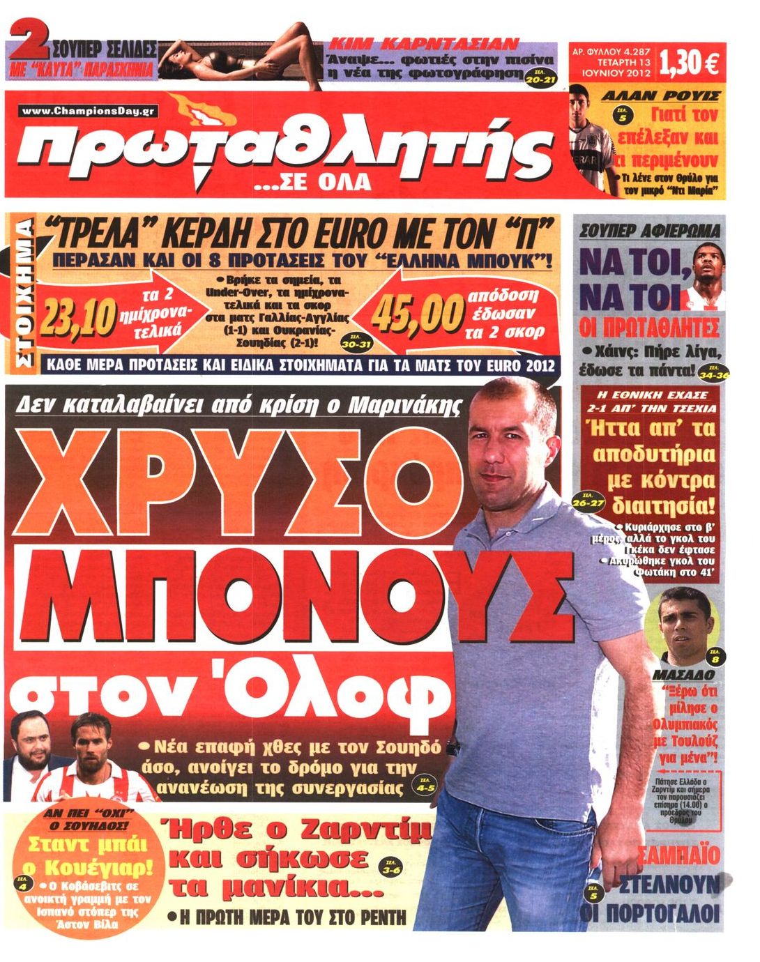 Τα αθλητικά πρωτοσέλιδα Enikos Newsroom 07:42, Τετάρτη 13 Ιουνίου 2012 Media ΕΦΗΜΕΡΙΔΕΣ ΠΡΩΤΟΣΕΛΙΔΑ Μοιράσου το: σχολίασε κι εσύ (0 σχόλια) Ακολουθήστε το enikos.gr στο Google News και μάθετε πρώτοι όλες τις ειδήσεις Δείτε όλες τις τελευταίες ειδήσεις από την Ελλάδα και τον Κόσμο στο enikos.gr Ειδήσεις Ροή Ειδήσεων 2 ώρες πριν Στεγαστικό: Όλο το σχέδιο για περισσότερα και φθηνότερα ενοικιαζόμενα σπίτια 36 λεπτά πριν Προϋπολογισμός 2026: Τα μηνύματα από την ομιλία Μητσοτάκη και τα «καρφιά» με πολλαπλούς αποδέκτες 1 ώρα πριν Αγρότες: Ορισμένοι ζητούν πιο σκληρή μορφή κινητοποιήσεων – Κρίσιμη η αυριανή σύσκεψη στις Σέρρες 37 λεπτά πριν Ρομπ Ράινερ: Το δείπνο με τους Ομπάμα που δεν έγινε ποτέ και νέα στοιχεία για τον «καβγά» στο πάρτι – Βίντεο με τον γιο του να περιφέρεται κοντά στο σπίτι της τραγωδίας 2 ώρες πριν Κανόνια λέιζερ σε φρεγάτες – Το επόμενο άλμα στις ναυτικές επιχειρήσεις – Δείτε βίντεο 3 ώρες πριν Οπτική ψευδαίσθηση: Μόνο αν είσαι ο Σέρλοκ Χολμς θα βρεις τον σκύλο σε 15 δευτερόλεπτα 3 ώρες πριν Υγεία του εντέρου: Προσθέστε 1 superfood στα scrambled eggs για καλύτερη πέψη και ευεξία 4 ώρες πριν Τα ζώδια σήμερα, Τετάρτη 17 Δεκεμβρίου: Κριοί, η αυτοπεποίθησή σας ενισχύεται 57 λεπτά πριν Νεολιθικός σκύλος βρέθηκε προσεκτικά θαμμένος στον βυθό λίμνης – Δίπλα του βρέθηκε ένα στιλέτο 2 λεπτά πριν Έλαβε τελεσίγραφο από τη σύντροφό του – «Μου είπε πως ή θα της κάνω πρόταση στα δύο χρόνια σχέσης ή θα με χωρίσει» 12 λεπτά πριν Αγγελική Ηλιάδη: «Έχω βιώσει άρρωστη και κακοποιητική ζήλεια, δεν θα ήθελα ποτέ στη ζωή μου να το ξαναπεράσω αυτό» 20 λεπτά πριν Θεσσαλονίκη: Διέρρηξαν το σπίτι του προέδρου του δημοτικού συμβουλίου, Σπύρου Βούγια 27 λεπτά πριν Καρυστιανού: Δεν θα αυτοπροταθώ ως ηγέτης, παραποιούν τα λόγια μου για να με αποδομήσουν 32 λεπτά πριν Η μοναδική συνταγή της Μάρθα Στιούαρτ για gingerbread cookies ENIKOS NETWORK Δύο συστατικά που είναι καλό να βάλετε στον πρωινό σας καφέ – Βοηθούν στην απώλεια βάρους και τη ρύθμιση του σακχάρου Πρωτοποριακή θεραπεία για το Αλτσχάιμερ: Φως και ήχος μπορεί να επιβραδύνουν την εξέλιξη της νόσου Έρχεται «νοικοκύρεμα » στα ακίνητα- Τι πρέπει να γνωρίζουν οι πολίτες Στεγαστικό: Όλο το σχέδιο για περισσότερα και φθηνότερα ενοικιαζόμενα σπίτια Σύγχρονος Νοστράδαμος: Προειδοποιεί για «μεγάλο γεγονός» τους επόμενους μήνες που θα συγκλονίσει τη Βρετανία και τον κόσμο Τεστ παρατηρητικότητας: Μπορείτε να βρείτε τις 3 διαφορές στις εικόνες με έναν πιγκουίνο σε 14 δευτερόλεπτα περισσότερα 08:00 , Τετάρτη 17 Δεκεμβρίου 2025 Την Κυριακή με τη Realnews: Δωροεπιταγή 10€ Δωροεπιταγή αξίας 10€ για αγορές άνω των 60€ από τα πολυκαταστήματα FactoryOutlet H προσφορά ι... 07:00 , Τετάρτη 17 Δεκεμβρίου 2025 Την Κυριακή με τη Realnews: Ό,τι και αν αγοράσεις, σκανάρεις και κερδίζεις! Την Κυριακή με τη Realnews: Ό,τι και αν αγοράσεις, σκανάρεις και κερδίζεις! Με το PADU app, το... 05:48 , Τετάρτη 17 Δεκεμβρίου 2025 Οι οικονομικές εφημερίδες 17/12/2025 Διαβάστε τα πρωτοσέλιδα από τις οικονομικές εφημερίδες, σήμερα 17/12/2025. 05:43 , Τετάρτη 17 Δεκεμβρίου 2025 Οι αθλητικές εφημερίδες 17/12/2025 Διαβάστε τα πρωτοσέλιδα από τις αθλητικές εφημερίδες, σήμερα 17/12/2025. ΤΕΛΕΥΤΑΙΕΣ ΕΙΔΗΣΕΙΣ 2 λεπτά πριν Έλαβε τελεσίγραφο από τη σύντροφό του – «Μου είπε... 12 λεπτά πριν Αγγελική Ηλιάδη: «Έχω βιώσει άρρωστη και κακοποιητική... 20 λεπτά πριν Θεσσαλονίκη: Διέρρηξαν το σπίτι του προέδρου του... 27 λεπτά πριν Καρυστιανού: Δεν θα αυτοπροταθώ ως ηγέτης, παραποιούν... 32 λεπτ