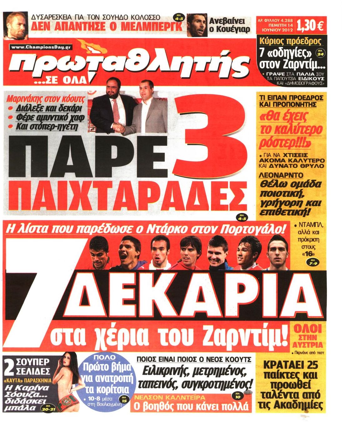 Τα αθλητικά πρωτοσέλιδα Enikos Newsroom 07:43, Πέμπτη 14 Ιουνίου 2012 Media ΕΦΗΜΕΡΙΔΕΣ ΠΡΩΤΟΣΕΛΙΔΑ Μοιράσου το: σχολίασε κι εσύ (0 σχόλια) Ακολουθήστε το enikos.gr στο Google News και μάθετε πρώτοι όλες τις ειδήσεις Δείτε όλες τις τελευταίες ειδήσεις από την Ελλάδα και τον Κόσμο στο enikos.gr Ειδήσεις Ροή Ειδήσεων 4 ώρες πριν Εκτός ευρωομάδας ΣΥΡΙΖΑ ο Νίκος Παππάς μετά την επίθεση στον δημοσιογράφο Νίκο Γιαννόπουλο – Η μήνυση και οι νέες δηλώσεις 5 ώρες πριν «Αγριεύουν» οι αγρότες: «Δεν συντρέχει λόγος συνάντησης με τον πρωθυπουργό» – Ώρα αποφάσεων στη σύσκεψη της Πέμπτης 5 ώρες πριν Κυψέλη: Χωρίς την οικογένειά της δίπλα της απολογήθηκε η 16χρονη – «Της είχε επιτεθεί κάποιος για να την βιάσει, φοβήθηκε και κυκλοφορούσε με μαχαίρι» 4 ώρες πριν Politico: Το πρόβλημα της Ευρώπης δεν είναι το Βέλγιο αλλά ο Ντόναλντ Τραμπ 6 ώρες πριν Αλεξανδρούπολη: Πολυοργανική ανεπάρκεια λόγω υποσιτισμού η αιτία θανάτου του 3χρονου αγοριού 5 ώρες πριν Μυστήριο με τεράστιες κυκλικές πέτρες 200 κιλών – Ανακαλύφθηκαν τυχαία κατά τη διάρκεια οδικών έργων και κανείς δεν ξέρει από πού προέρχονται 6 ώρες πριν Ύπνος: Ειδικός εξηγεί τον πραγματικό λόγο που ξυπνάτε στις 4 τα ξημερώματα – Ο ρόλος των ορμονών και του κιρκάδιου ρυθμού 7 ώρες πριν Αριθμολογία: Οι άνθρωποι που έχουν γεννηθεί αυτές τις 4 ημερομηνίες, είναι τρυφεροί και αγαπούν ανιδιοτελώς 18 ώρες πριν 20 χρόνια τα Χριστούγεννα ξεκινούν στα Public με μεγάλη ποικιλία σε δώρα! 16 λεπτά πριν Βραζιλία: Το Κογκρέσο ενέκρινε σχέδιο νόμου για τη μείωση της ποινής του πρώην προέδρου Μπολσονάρου 30 λεπτά πριν Ένταση στο περιφερειακό συμβούλιο Δυτικής Μακεδονίας: Φωνές, σπρωξιές και διακοπή – Δείτε βίντεο 45 λεπτά πριν Σουδάν: Επιδρομή drone σε χωριό του Νότιου Κορντοφάν – Οκτώ νεκροί 1 ώρα πριν Αλ Τσαντίρι Νιουζ: Η κόρη της Πάολα στο κοινό – Η ατάκα Λαζόπουλου που την έκανε να «κοκκινήσει» 1 ώρα πριν Ρωσία: Ουκρανικές δυνάμεις έπληξαν πλοίο στο λιμάνι του Ροστόφ – Αναφορές για θύματα ENIKOS NETWORK Αϋπνία: Το κόλπο που θα σας βοηθήσει να κοιμηθείτε απόψε – Είναι απλό και έχει αποτέλεσμα 2,6 εκατομμύρια πολίτες έχουν ήδη εμβολιαστεί κατά της γρίπης ΕΛΣΤΑΤ: Τι δείχνουν τα νέα στοιχεία για τις ηλεκτρονικές παραγγελίες των επιχειρήσεων ΚΕΠΕ: Οι 3 διακριτές συμβολές των ΜμΕ και της μεταποίησης στην ελληνική οικονομία Χαρτογραφώντας το «σημείο χωρίς επιστροφή»: Για πρώτη φορά αποκαλύπτεται με λεπτομέρεια το ακανθώδες όριο της ατμόσφαιρας τ... Η Google καταργεί τη λειτουργία «dark web report» – Πώς θα μπορούν οι χρήστες να διαγράφουν τα δεδομένα τους περισσότερα 02:30 , Πέμπτη 18 Δεκεμβρίου 2025 Αλ Τσαντίρι Νιουζ: Η κόρη της Πάολα στο κοινό – Η ατάκα Λαζόπουλου που την έκανε να «κοκκινήσει» Γιορτινή διάθεση και ευχάριστες στιγμές γέμισε η αποψινή, τελευταία για το 2025, εκπομπή του «... 22:24 , Τετάρτη 17 Δεκεμβρίου 2025 Το Σπίτι Δίπλα Στο Ποτάμι: Σε κίνδυνο η υγεία του Απόστολου – Τι θα δούμε απόψε “Το Σπίτι Δίπλα στο Ποτάμι” ξετυλίγει το νήμα της ζωής των πέντε αδελφών με καταισ... 21:14 , Τετάρτη 17 Δεκεμβρίου 2025 Παιχνίδια Εκδίκησης: Θα καταφέρει ο Χρήστος να κλονίσει την εμπιστοσύνη της Μάγιας απέναντι στον Άγη; Τα «Παιχνίδια Εκδίκησης» έρχονται απόψε στις 22:30, στον Αντ1, με το τελευταίο επεισόδιο της χ... 20:57 , Τετάρτη 17 Δεκεμβρίου 2025 Άγιος Έρωτας: Η Χλόη καταθέτει εναντίον του πατέρα της και ο Χάρης αποκαλύπτει στον Κλεάνθη ότι δεν είναι ο βιολογικός του πατέρας. Γεμάτο αποκαλύψεις είναι το νέο επ