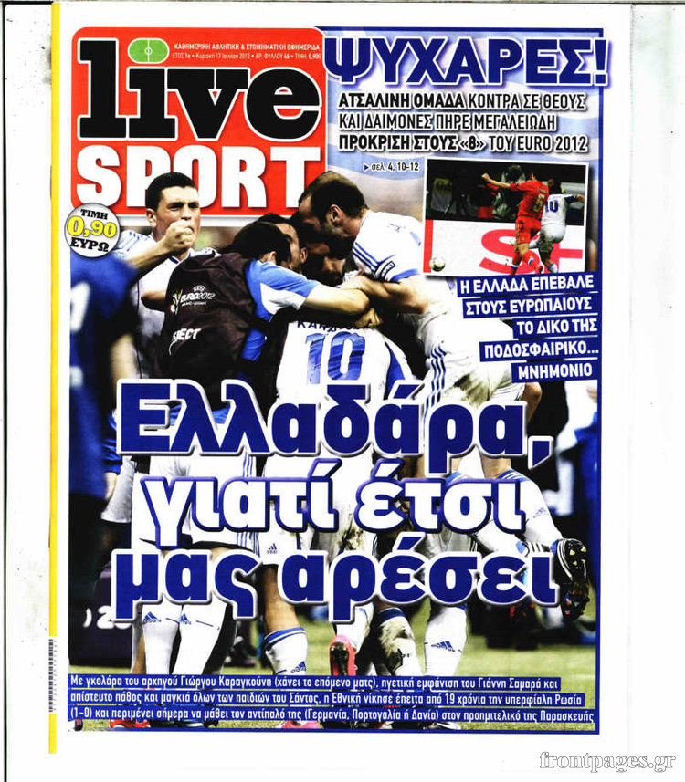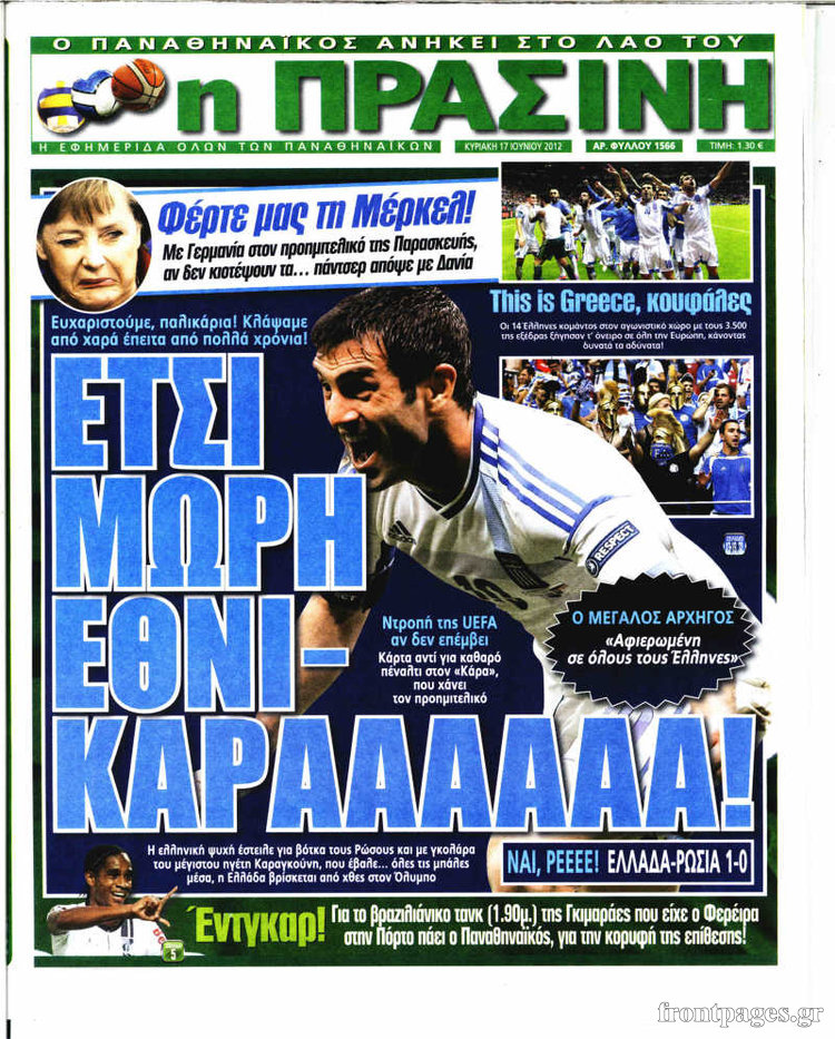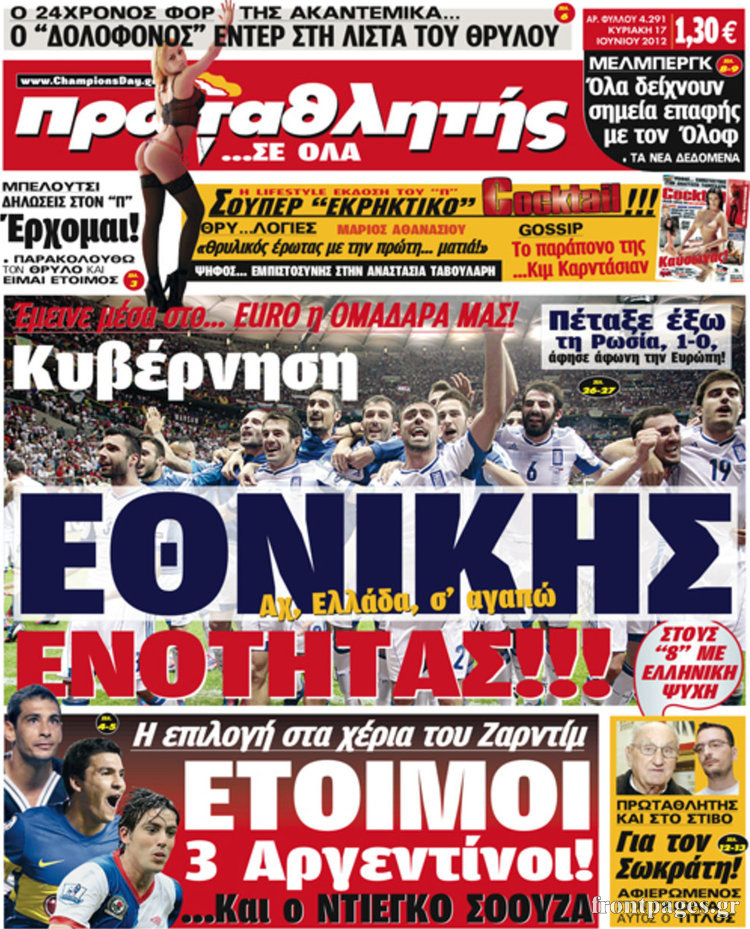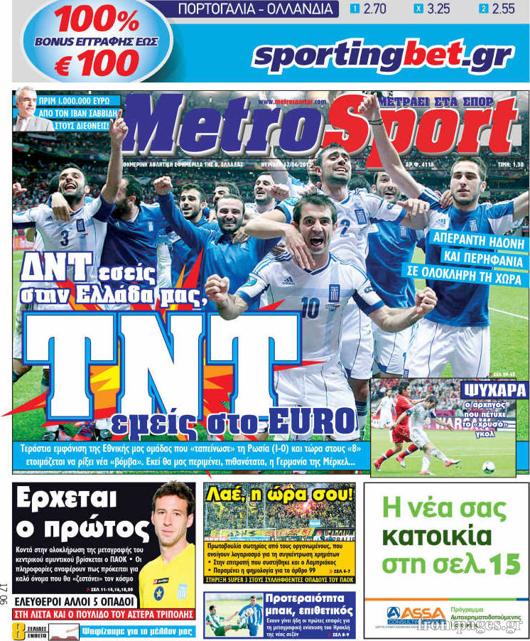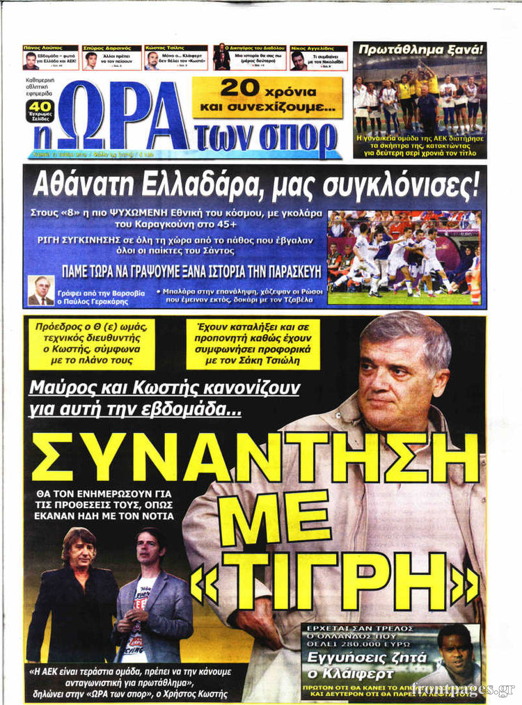 Τα αθλητικά πρωτοσέλιδα Enikos Newsroom 09:47, Κυριακή 17 Ιουνίου 2012 Media ΕΦΗΜΕΡΙΔΕΣ Μοιράσου το: σχολίασε κι εσύ (0 σχόλια) Ακολουθήστε το enikos.gr στο Google News και μάθετε πρώτοι όλες τις ειδήσεις Δείτε όλες τις τελευταίες ειδήσεις από την Ελλάδα και τον Κόσμο στο enikos.gr Ειδήσεις Ροή Ειδήσεων 34 λεπτά πριν Αγρότες: «Όχι στον διάλογο, μας εμπαίζει η κυβέρνηση» – Αποφάσισαν κλιμάκωση των κινητοποιήσεων 1 ώρα πριν Την πρώτη Belharra παρέλαβε η χώρα μας, υψώθηκε η ελληνική σημαία στη φρεγάτα «Κίμων» – Δένδιας: «Το ισχυρότερο Πολεμικό Ναυτικό που είχε ποτέ ο ελληνισμός» 4 ώρες πριν Γιώργος Μαζωνάκης: «Δεν ζήτησα χρήματα, παρά μόνο ηθική δικαίωση» – Οι πρώτες δηλώσεις του 21χρονου μετά την κατάθεση της μήνυσης 19 λεπτά πριν Μιχάλης Χουρδάκης: «Είμαι διαθέσιμος να συμβάλω στην προσωρινή κάλυψη του ιατρείου της Ψερίμου» – Η επιστολή στον Άδωνι Γεωργιάδη 43 λεπτά πριν Εξώδικο Γεωργιάδη στην Κωνσταντοπούλου – «Με κατηγόρησε ότι έχω καταδικαστεί για παιδεραστία» 1 ώρα πριν Τα 5 ζώδια που θα ευνοηθούν στα οικονομικά τους το 2026 – «Τραβούν το χρήμα σαν μαγνήτες» 6 ώρες πριν Αν κάνετε συνεχώς αυτά τα 8 πράγματα με τα κατοικίδιά σας, σας λείπει η ανθρώπινη επαφή 2 ώρες πριν Αυτό που κρύβεται κάτω από τη Γροιλανδία θα μπορούσε να ανατρέψει όσα γνωρίζουμε για την άνοδο της στάθμης των θαλασσών 1 ημέρα πριν 20 χρόνια τα Χριστούγεννα ξεκινούν στα Public με μεγάλη ποικιλία σε δώρα! 3 λεπτά πριν Σμαράγδα Καρύδη για την περούκα της «Ντάλιας»: «Την είχα 20 χρόνια και τώρα μπήκε ξανά σε κουτί» 8 λεπτά πριν Άγιος έρωτας: Η Χριστίνα εξομολογείται στον πατέρα Νικόλαο, απόψε στις 21:00 στον Alpha 13 λεπτά πριν ΕΛΚ – Κωστής Χατζηδάκης: Παρεμβάσεις σε 9 τομείς για την ανταγωνιστικότητα 19 λεπτά πριν Μιχάλης Χουρδάκης: «Είμαι διαθέσιμος να συμβάλω στην προσωρινή κάλυψη του ιατρείου της Ψερίμου» – Η επιστολή στον Άδωνι Γεωργιάδη 24 λεπτά πριν Κουίζ για την παλιά Αθήνα: Αναγνωρίζετε την περιοχή; Είναι από τις πιο γνωστές ENIKOS NETWORK 100 χρόνια ΠΙΣ: Ένας αιώνας προσφοράς στην Ιατρική και την κοινωνία Ένα ποτήρι την ημέρα από αυτόν τον χυμό μειώνει τη χοληστερίνη, τη φλεγμονή και την πίεση Χριστούγεννα και Πρωτοχρονιά: Δείτε πόσα χρήματα θα πάρουν ως αμοιβή όσοι εργαστούν Κρατική επιχορήγηση έως 14.500 ευρώ: Ποιοι θα λάβουν από σήμερα την προκαταβολή στον τραπεζικό λογαριασμό τους Χαρτογραφώντας το «σημείο χωρίς επιστροφή»: Για πρώτη φορά αποκαλύπτεται με λεπτομέρεια το ακανθώδες όριο της ατμόσφαιρας τ... Η Google καταργεί τη λειτουργία «dark web report» – Πώς θα μπορούν οι χρήστες να διαγράφουν τα δεδομένα τους περισσότερα 17:20 , Πέμπτη 18 Δεκεμβρίου 2025 Άγιος έρωτας: Η Χριστίνα εξομολογείται στον πατέρα Νικόλαο, απόψε στις 21:00 στον Alpha Η Νότα αποφασίζει να εκδικηθεί τον Πέτρο και τον Στέφανο, για χάρη του Λούη, όμως τα πράγματα ... 16:50 , Πέμπτη 18 Δεκεμβρίου 2025 Να μ’ αγαπάς: Ζωή και Φωτεινή συμφιλιώνονται ως μάνα με κόρη, απόψε στις 20:00 Η ταυτότητα του Άγγελου αποκαλύπτεται στο νέο επεισόδιο της σειράς “Να μ’ αγαπάς... 15:52 , Πέμπτη 18 Δεκεμβρίου 2025 Το Σπίτι Δίπλα Στο Ποτάμι: Το καθηλωτικό τελευταίο επεισόδιο για το 2025 απόψε στις 22:30 Καθηλώνει το σημερινό επεισόδιο της σειράς “Το Σπίτι Δίπλα Στο Ποτάμι” που έρχεται... 15:20 , Πέμπτη 18 Δεκεμβρίου 2025 Άγιος έρωτας – Η Ελευθερία Αρβανιτάκη τραγουδά και ο Γιάννης Τσορτέκης καθηλώνει με τον χορό του Ο Κλεάνθης χορεύει στους ήχους της Ελευθερίας Αρβανιτάκη στη σειρά “Άγιος Έρωτας“.... ΤΕΛΕΥΤΑΙΕΣ