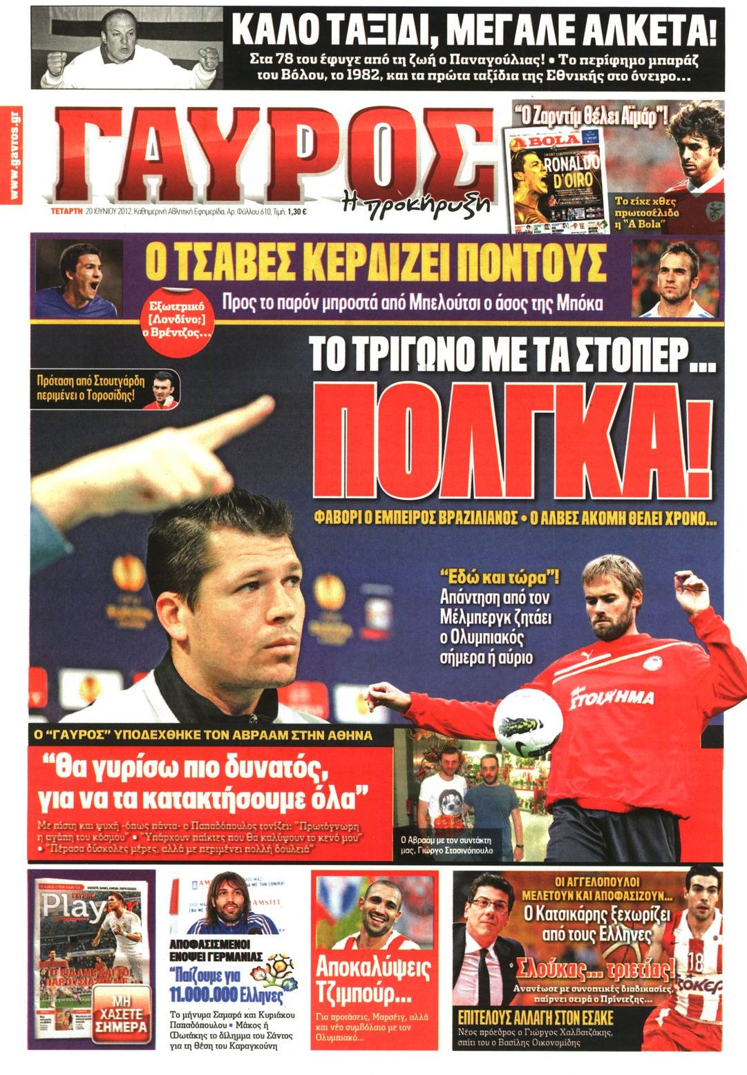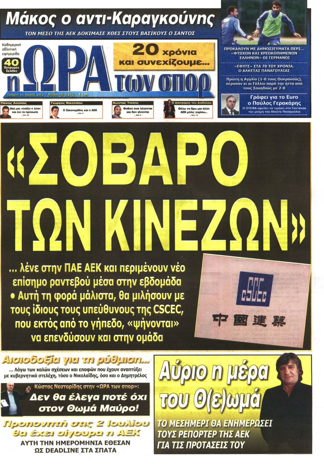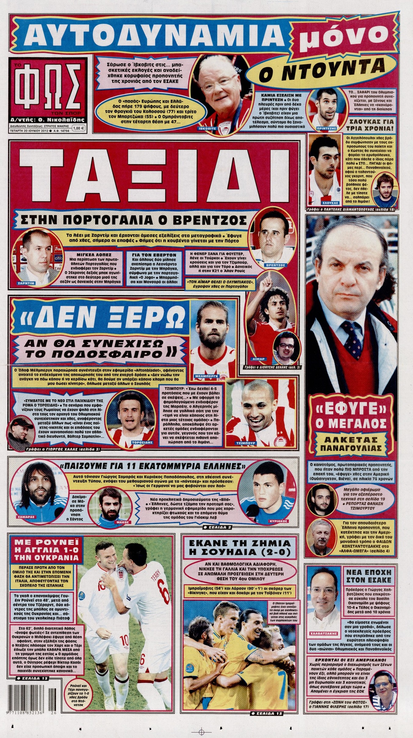 Τα αθλητικά πρωτοσέλιδα Enikos Newsroom 07:33, Τετάρτη 20 Ιουνίου 2012 Media ΕΦΗΜΕΡΙΔΕΣ ΠΡΩΤΟΣΕΛΙΔΑ Μοιράσου το: σχολίασε κι εσύ (0 σχόλια) Ακολουθήστε το enikos.gr στο Google News και μάθετε πρώτοι όλες τις ειδήσεις Δείτε όλες τις τελευταίες ειδήσεις από την Ελλάδα και τον Κόσμο στο enikos.gr Ειδήσεις Ροή Ειδήσεων 8 ώρες πριν Μητσοτάκης: Αναγκαία η μεταρρύθμιση του πρωτογενούς τομέα – Τα 6 νέα μέτρα για το στεγαστικό και οι αναφορές σε «Ιθάκη» και «πολιτικούς του καναπέ» 7 ώρες πριν Δάνεια σε ελβετικό φράγκο: Τα βασικά σημεία της ρύθμισης – ανάσας για 40.000 δανειολήπτες – Αναλυτικός οδηγός με ερωτήσεις και απαντήσεις 7 ώρες πριν Κυψέλη: Εξιτήριο πήρε η 14χρονη μαθήτρια που μαχαιρώθηκε από την 16χρονη σε σχολείο – «Θέλω να βοηθήσω το παιδί, έχει μπλέξει με κακές παρέες» 6 ώρες πριν Τραμπ: Γιατί κατέθεσε τώρα την αγωγή κατά του BBC – Πώς η κίνησή του εξυπηρετεί το νέο δόγμα του για «αντίσταση» στην Ευρώπη, υπέρ των συντηρητικών 7 ώρες πριν ΟΠΕΚΕΠΕ – Παράνομες επιδοτήσεις: Ελεύθεροι με περιοριστικούς όρους και οι 7 κατηγορούμενοι που απολογήθηκαν σήμερα 7 ώρες πριν Ανακαλύφθηκε βυθισμένη πέτρινη κατασκευή ανοιχτά της Κριμαίας – Αποτελεί μέρος αρχαίας ελληνικής αποικίας 8 ώρες πριν Ύπνος: Αυτό μπορεί να είναι το χειρότερο λάθος για το βιολογικό ρολόι σας, σύμφωνα με ειδικό 9 ώρες πριν Αριθμολογία: Οι άνθρωποι που έχουν γεννηθεί αυτές τις 3 ημερομηνίες, προσελκύουν μεγάλη τύχη πριν από το τέλος του 2025 11 ώρες πριν Οι 7 συμπεριφορές που μαρτυρούν ότι ένας άνδρας επενδύει μακροπρόθεσμα σε μια σχέση 2 λεπτά πριν Τα ζώδια σήμερα, Τετάρτη 17 Δεκεμβρίου: Κριοί, η αυτοπεποίθησή σας ενισχύεται 9 λεπτά πριν Εφημερεύοντα φαρμακεία σε Αθήνα και Θεσσαλονίκη (17/12) 15 λεπτά πριν Κόστα Ρίκα: Το Κογκρέσο απέρριψε το αίτημα για άρση της ασυλίας του προέδρου Τσάβες 23 λεπτά πριν Κολομβία: Νεκροί τέσσερις αστυνομικοί σε βομβιστικές επιθέσεις ανταρτών 31 λεπτά πριν Στάση εργασίας 11:00 – 17:00 σήμερα στα λεωφορεία του ΟΑΣΑ – Ποιες γραμμές θα λειτουργήσουν ENIKOS NETWORK Αίτημα ΙΣΑ για την εξαίρεση των προσωπικών γιατρών από τις κατ’ οίκον επισκέψεις Η σκανδιναβική μέθοδος στον ύπνο που μπορεί να σώσει έναν γάμο Πιερρακάκης: Ο προϋπολογισμός συμβάλλει ουσιαστικά στην ενίσχυση της αγοραστικής δύναμης της πλειονότητας των εργαζομένων e-ΕΦΚΑ: Παρατείνεται η προθεσμία για την υποβολή ΑΠΔ – Ποιους αφορά Σύγχρονος Νοστράδαμος: Προειδοποιεί για «μεγάλο γεγονός» τους επόμενους μήνες που θα συγκλονίσει τη Βρετανία και τον κόσμο Τεστ παρατηρητικότητας: Μπορείτε να βρείτε τις 3 διαφορές στις εικόνες με έναν πιγκουίνο σε 14 δευτερόλεπτα περισσότερα 20:06 , Τρίτη 16 Δεκεμβρίου 2025 Ο ΣΚΑΙ καταγγέλλει τον ΕΚΚΟΜΕΔ Επιστολή με την οποία καταγράφει την έντονη διαμαρτυρία του προς τον διευθύνοντα σύμβουλο του... 17:40 , Τρίτη 16 Δεκεμβρίου 2025 Eurovision: Στις 4 Ιανουαρίου αποκαλύπτονται τα 28 τραγούδια του ελληνικού τελικού Η αγωνία τελειώνει, η γιορτή της Eurovision αρχίζει στην ΕΡΤ από τις πρώτες ημέρες της νέας χρ... 17:09 , Τρίτη 16 Δεκεμβρίου 2025 Alter Ego Media: Βαθύτατη θλίψη και ειλικρινή συλλυπητήρια για την απώλεια της Ειρήνης Μαρινάκη Τη βαθύτατη θλίψη και τα ειλικρινή συλλυπητήριά της εκφράζει η Alter Ego Media για τον θάνατο ... 13:00 , Τρίτη 16 Δεκεμβρίου 2025 «Στο Παρά Πέντε – 20 Χρόνια Μετά»: Κυκλοφόρησε το τρέιλερ του επετειακού επεισοδίου της θρυλικής σειράς – Πότε θα προβληθεί Η αντίστροφη μέτρηση για το πλέον αναμενόμενο και νοσταλγικό Reunion της ελλη