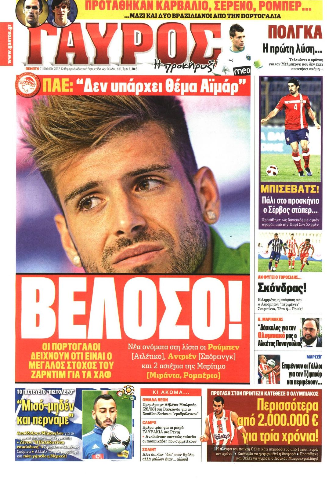 Τα αθλητικά πρωτοσέλιδα Enikos Newsroom 07:33, Πέμπτη 21 Ιουνίου 2012 Media ΕΦΗΜΕΡΙΔΕΣ ΠΡΩΤΟΣΕΛΙΔΑ Μοιράσου το: σχολίασε κι εσύ (0 σχόλια) Ακολουθήστε το enikos.gr στο Google News και μάθετε πρώτοι όλες τις ειδήσεις Δείτε όλες τις τελευταίες ειδήσεις από την Ελλάδα και τον Κόσμο στο enikos.gr Ειδήσεις Ροή Ειδήσεων 8 ώρες πριν Μητσοτάκης: Αναγκαία η μεταρρύθμιση του πρωτογενούς τομέα – Τα 6 νέα μέτρα για το στεγαστικό και οι αναφορές σε «Ιθάκη» και «πολιτικούς του καναπέ» 7 ώρες πριν Δάνεια σε ελβετικό φράγκο: Τα βασικά σημεία της ρύθμισης – ανάσας για 40.000 δανειολήπτες – Αναλυτικός οδηγός με ερωτήσεις και απαντήσεις 7 ώρες πριν Κυψέλη: Εξιτήριο πήρε η 14χρονη μαθήτρια που μαχαιρώθηκε από την 16χρονη σε σχολείο – «Θέλω να βοηθήσω το παιδί, έχει μπλέξει με κακές παρέες» 6 ώρες πριν Τραμπ: Γιατί κατέθεσε τώρα την αγωγή κατά του BBC – Πώς η κίνησή του εξυπηρετεί το νέο δόγμα του για «αντίσταση» στην Ευρώπη, υπέρ των συντηρητικών 7 ώρες πριν ΟΠΕΚΕΠΕ – Παράνομες επιδοτήσεις: Ελεύθεροι με περιοριστικούς όρους και οι 7 κατηγορούμενοι που απολογήθηκαν σήμερα 6 ώρες πριν Ανακαλύφθηκε βυθισμένη πέτρινη κατασκευή ανοιχτά της Κριμαίας – Αποτελεί μέρος αρχαίας ελληνικής αποικίας 7 ώρες πριν Ύπνος: Αυτό μπορεί να είναι το χειρότερο λάθος για το βιολογικό ρολόι σας, σύμφωνα με ειδικό 8 ώρες πριν Αριθμολογία: Οι άνθρωποι που έχουν γεννηθεί αυτές τις 3 ημερομηνίες, προσελκύουν μεγάλη τύχη πριν από το τέλος του 2025 10 ώρες πριν Οι 7 συμπεριφορές που μαρτυρούν ότι ένας άνδρας επενδύει μακροπρόθεσμα σε μια σχέση 4 λεπτά πριν Κόστα Ρίκα: Το Κογκρέσο απέρριψε το αίτημα για άρση της ασυλίας του προέδρου Τσάβες 12 λεπτά πριν Κολομβία: Νεκροί τέσσερις αστυνομικοί σε βομβιστικές επιθέσεις ανταρτών 20 λεπτά πριν Στάση εργασίας 11:00 – 17:00 σήμερα στα λεωφορεία του ΟΑΣΑ – Ποιες γραμμές θα λειτουργήσουν 36 λεπτά πριν Παλαιστινιακό: «Η λύση των δύο κρατών είναι ο μόνος βιώσιμος δρόμος», τόνισε η Ελλάδα στο Συμβούλιο Ασφαλείας του ΟΗΕ 43 λεπτά πριν Ελένη Καρακάση: «Ένιωθα πολύ αδικημένη, δεν μπορούσα να ελέγξω τον εαυτό μου σε δύσκολες στιγμές» ENIKOS NETWORK Αίτημα ΙΣΑ για την εξαίρεση των προσωπικών γιατρών από τις κατ’ οίκον επισκέψεις Η σκανδιναβική μέθοδος στον ύπνο που μπορεί να σώσει έναν γάμο Πιερρακάκης: Ο προϋπολογισμός συμβάλλει ουσιαστικά στην ενίσχυση της αγοραστικής δύναμης της πλειονότητας των εργαζομένων e-ΕΦΚΑ: Παρατείνεται η προθεσμία για την υποβολή ΑΠΔ – Ποιους αφορά Σύγχρονος Νοστράδαμος: Προειδοποιεί για «μεγάλο γεγονός» τους επόμενους μήνες που θα συγκλονίσει τη Βρετανία και τον κόσμο Τεστ παρατηρητικότητας: Μπορείτε να βρείτε τις 3 διαφορές στις εικόνες με έναν πιγκουίνο σε 14 δευτερόλεπτα περισσότερα 20:06 , Τρίτη 16 Δεκεμβρίου 2025 Ο ΣΚΑΙ καταγγέλλει τον ΕΚΚΟΜΕΔ Επιστολή με την οποία καταγράφει την έντονη διαμαρτυρία του προς τον διευθύνοντα σύμβουλο του... 17:40 , Τρίτη 16 Δεκεμβρίου 2025 Eurovision: Στις 4 Ιανουαρίου αποκαλύπτονται τα 28 τραγούδια του ελληνικού τελικού Η αγωνία τελειώνει, η γιορτή της Eurovision αρχίζει στην ΕΡΤ από τις πρώτες ημέρες της νέας χρ... 17:09 , Τρίτη 16 Δεκεμβρίου 2025 Alter Ego Media: Βαθύτατη θλίψη και ειλικρινή συλλυπητήρια για την απώλεια της Ειρήνης Μαρινάκη Τη βαθύτατη θλίψη και τα ειλικρινή συλλυπητήριά της εκφράζει η Alter Ego Media για τον θάνατο ... 13:00 , Τρίτη 16 Δεκεμβρίου 2025 «Στο Παρά Πέντε – 20 Χρόνια Μετά»: Κυκλοφόρησε το τρέιλερ του επετειακού επεισοδίου της θρυλικής σειράς – Πότε θα 