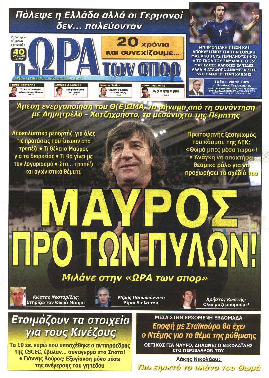 Τα αθλητικά πρωτοσέλιδα Enikos Newsroom 08:15, Σάββατο 23 Ιουνίου 2012 Media ΕΦΗΜΕΡΙΔΕΣ ΠΡΩΤΟΣΕΛΙΔΑ Μοιράσου το: σχολίασε κι εσύ (0 σχόλια) Ακολουθήστε το enikos.gr στο Google News και μάθετε πρώτοι όλες τις ειδήσεις Δείτε όλες τις τελευταίες ειδήσεις από την Ελλάδα και τον Κόσμο στο enikos.gr Ειδήσεις Ροή Ειδήσεων 6 ώρες πριν Μητσοτάκης: Αναγκαία η μεταρρύθμιση του πρωτογενούς τομέα – Τα 6 νέα μέτρα για το στεγαστικό και οι αναφορές σε «Ιθάκη» και «πολιτικούς του καναπέ» 5 ώρες πριν Δάνεια σε ελβετικό φράγκο: Τα βασικά σημεία της ρύθμισης – ανάσας για 40.000 δανειολήπτες – Αναλυτικός οδηγός με ερωτήσεις και απαντήσεις 5 ώρες πριν Κυψέλη: Εξιτήριο πήρε η 14χρονη μαθήτρια που μαχαιρώθηκε από την 16χρονη σε σχολείο – «Θέλω να βοηθήσω το παιδί, έχει μπλέξει με κακές παρέες» 5 ώρες πριν Τραμπ: Γιατί κατέθεσε τώρα την αγωγή κατά του BBC – Πώς η κίνησή του εξυπηρετεί το νέο δόγμα του για «αντίσταση» στην Ευρώπη, υπέρ των συντηρητικών 6 ώρες πριν ΟΠΕΚΕΠΕ – Παράνομες επιδοτήσεις: Ελεύθεροι με περιοριστικούς όρους και οι 7 κατηγορούμενοι που απολογήθηκαν σήμερα 5 ώρες πριν Ανακαλύφθηκε βυθισμένη πέτρινη κατασκευή ανοιχτά της Κριμαίας – Αποτελεί μέρος αρχαίας ελληνικής αποικίας 6 ώρες πριν Ύπνος: Αυτό μπορεί να είναι το χειρότερο λάθος για το βιολογικό ρολόι σας, σύμφωνα με ειδικό 7 ώρες πριν Αριθμολογία: Οι άνθρωποι που έχουν γεννηθεί αυτές τις 3 ημερομηνίες, προσελκύουν μεγάλη τύχη πριν από το τέλος του 2025 9 ώρες πριν Οι 7 συμπεριφορές που μαρτυρούν ότι ένας άνδρας επενδύει μακροπρόθεσμα σε μια σχέση 4 λεπτά πριν Ντόναλντ Τραμπ: Ξένη τρομοκρατική οργάνωση η Βενεζουέλα – Πλήρης αποκλεισμός των δεξαμενόπλοιων από και προς το Καράκας 19 λεπτά πριν Παναγιώτης Μπουγιούρης: «Έχω μια αφέλεια σε σχέση με τη δουλειά μου» 34 λεπτά πριν Παναθηναϊκός: Η έντονη επιθυμία του Ματίας Λεσόρ να επιστρέψει στα γήπεδα – «Μου λείπει πολύ το γ@@@@». 49 λεπτά πριν Νίκος Πλακιάς: Η Μαρία Καρυστιανού πλέον θα κρίνεται ως πολιτικός και όχι ως συγγενής 1 ώρα πριν Ντόναλντ Τραμπ: Κάλυψε απόλυτα την προσωπάρχη του Λευκού Οίκου: «Ναι, έχω προσωπικότητα αλκοολικού» ENIKOS NETWORK Αίτημα ΙΣΑ για την εξαίρεση των προσωπικών γιατρών από τις κατ’ οίκον επισκέψεις Η σκανδιναβική μέθοδος στον ύπνο που μπορεί να σώσει έναν γάμο Πιερρακάκης: Ο προϋπολογισμός συμβάλλει ουσιαστικά στην ενίσχυση της αγοραστικής δύναμης της πλειονότητας των εργαζομένων e-ΕΦΚΑ: Παρατείνεται η προθεσμία για την υποβολή ΑΠΔ – Ποιους αφορά Σύγχρονος Νοστράδαμος: Προειδοποιεί για «μεγάλο γεγονός» τους επόμενους μήνες που θα συγκλονίσει τη Βρετανία και τον κόσμο Τεστ παρατηρητικότητας: Μπορείτε να βρείτε τις 3 διαφορές στις εικόνες με έναν πιγκουίνο σε 14 δευτερόλεπτα περισσότερα 20:06 , Τρίτη 16 Δεκεμβρίου 2025 Ο ΣΚΑΙ καταγγέλλει τον ΕΚΚΟΜΕΔ Επιστολή με την οποία καταγράφει την έντονη διαμαρτυρία του προς τον διευθύνοντα σύμβουλο του... 17:40 , Τρίτη 16 Δεκεμβρίου 2025 Eurovision: Στις 4 Ιανουαρίου αποκαλύπτονται τα 28 τραγούδια του ελληνικού τελικού Η αγωνία τελειώνει, η γιορτή της Eurovision αρχίζει στην ΕΡΤ από τις πρώτες ημέρες της νέας χρ... 17:09 , Τρίτη 16 Δεκεμβρίου 2025 Alter Ego Media: Βαθύτατη θλίψη και ειλικρινή συλλυπητήρια για την απώλεια της Ειρήνης Μαρινάκη Τη βαθύτατη θλίψη και τα ειλικρινή συλλυπητήριά της εκφράζει η Alter Ego Media για τον θάνατο ... 13:00 , Τρίτη 16 Δεκεμβρίου 2025 «Στο Παρά Πέντε – 20 Χρόνια Μετά»: Κυκλοφόρησε το τρέιλερ του επετειακού επεισοδίου της θρυλικής σ
