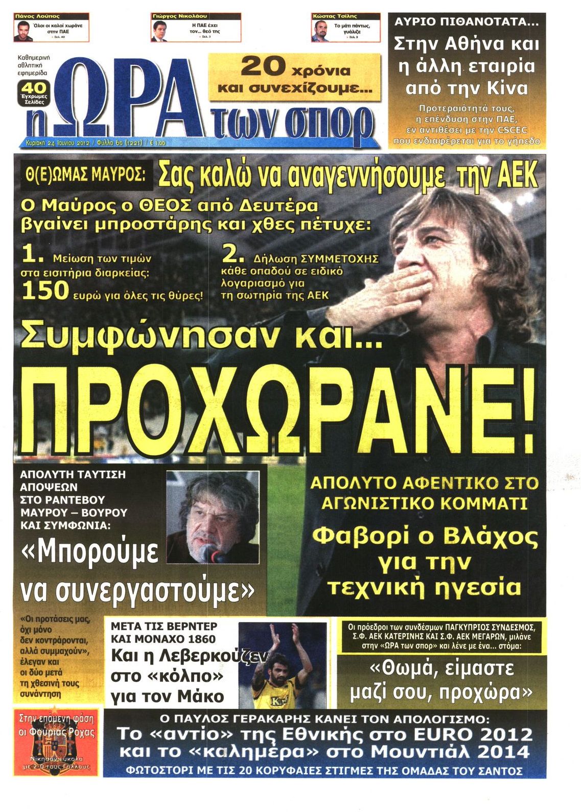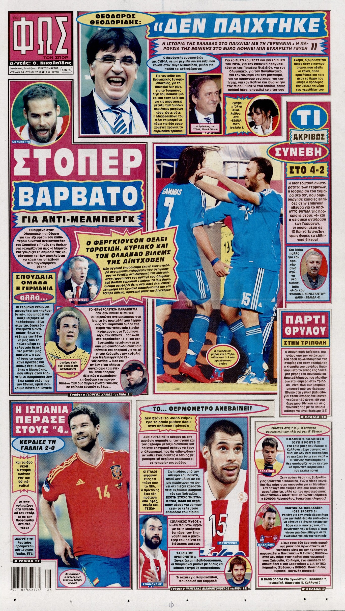 Τα αθλητικά πρωτοσέλιδα Enikos Newsroom 08:37, Κυριακή 24 Ιουνίου 2012 Media ΕΦΗΜΕΡΙΔΕΣ ΠΡΩΤΟΣΕΛΙΔΑ Μοιράσου το: σχολίασε κι εσύ (0 σχόλια) Ακολουθήστε το enikos.gr στο Google News και μάθετε πρώτοι όλες τις ειδήσεις Δείτε όλες τις τελευταίες ειδήσεις από την Ελλάδα και τον Κόσμο στο enikos.gr Ειδήσεις Ροή Ειδήσεων 26 λεπτά πριν Ο Κυριάκος Μητσοτάκης ανοίγει τα χαρτιά του για τη Συνταγματική Αναθεώρηση – Στο τραπέζι και η μονιμότητα των δημοσίων υπαλλήλων 1 ώρα πριν Νέα Πέραμος: Τραύματα από πυροβόλο όπλο φέρει η σορός του άνδρα που εντοπίστηκε σε ρέμα – Εκτιμάται πως ανήκει σε 27χρονο αγνοούμενο 4 ώρες πριν Κακοκαιρία – Αγιόκαμπος: Πλημμύρισαν 10 σπίτια και μία επιχείρηση λόγω υπερχείλισης ρέματος – «Είχαμε κατολισθήσεις σε αρκετά σημεία του δήμου Αγιάς» 10 ώρες πριν Live η πορεία της κακοκαιρίας: Γέμισαν λασπόνερα δρόμοι και σοκάκια στα νησιά – Δεκάδες κλήσεις στην Πυροσβεστική στην Κεντρική Μακεδονία 1 ώρα πριν Ξέσπασμα Γιαννακόπουλου μετά την ήττα του Παναθηναϊκού: Να παραιτηθείτε όλοι σας, είστε ξεφτιλισμένοι 5 ώρες πριν Τα 3 ζώδια που προσελκύουν οικονομική επιτυχία έως τις 8 Φεβρουαρίου – «Το σύμπαν εξοφλεί χρέη 8 ετών και οι προσπάθειές σας αναγνωρίζονται» 10 ώρες πριν Γυναίκα που έχασε 14 κιλά σε 4 μήνες αποκαλύπτει: «Αυτές οι 5 συμβουλές με βοήθησαν να απαλλαγώ από το τοπικό πάχος» 2 ώρες πριν Κουζίνα: Πώς να οργανώσετε τον χώρο σας χωρίς να πετάξετε τίποτα – Έξυπνες αλλαγές που περιορίζουν την ακαταστασία 1 ώρα πριν Τα 11 ψέματα που λένε πάντα οι άνδρες για να σας πείσουν ότι έχετε εσείς το πρόβλημα 4 λεπτά πριν Αριθμολογία: Οι 3 «καταραμένες» διευθύνσεις σπιτιού – «Τα νούμερα αυτά συνδέονται με αναταραχές και αρνητική ενέργεια» 12 λεπτά πριν Ο Κασσελάκης στέλνει στην επιτροπή δεοντολογίας τον Θανάση Οικονόμου – Η ανάρτηση που οδήγησε στη σύγκρουση 19 λεπτά πριν Κακοκαιρία – Θεσσαλονίκη: Έπεσαν δέντρα και υπερχείλισαν χείμαρροι στη Θέρμη – Αποκλείστηκαν οι ιρλανδικές διαβάσεις 26 λεπτά πριν Ο Κυριάκος Μητσοτάκης ανοίγει τα χαρτιά του για τη Συνταγματική Αναθεώρηση – Στο τραπέζι και η μονιμότητα των δημοσίων υπαλλήλων 39 λεπτά πριν Συγκλονιστικές στιγμές στο ΠΑΟΚ – Πανσερραϊκός: Δάκρυα και εκατοντάδες στεφάνια – Δόνησε την Τούμπα το «αδέλφια ζείτε, εσείς μας οδηγείτε» ENIKOS NETWORK Γελάτε, κλαίτε ή ανοίγει η μύτη σας μετά τον οργασμό – Πού οφείλεται, σύμφωνα με μελέτη; Πώς να ξεφορτωθείτε τις σακούλες κάτω από τα μάτια – Tips που δουλεύουν ΔΕΗ: Σταθερό το πράσινο τιμολόγιο της για τον Φεβρουάριο – Τι λέει για τα κυμαινόμενα Πορτοκαλί τιμολόγια ρεύματος: Σήμερα η πρεμιέρα-Ποιους αφορά, τι δήλωσε ο Παπασταύρου Σπαζοκεφαλιά: Βρες πόσα 9 υπάρχουν στην εικόνα σε 8 δευτερόλεπτα Τεστ IQ: Μπορείς να εντοπίσεις τον αριθμό 999 ανάμεσα στα 99Q σε 15 δευτερόλεπτα; περισσότερα 17:13 , Κυριακή 01 Φεβρουαρίου 2026 Σία Κοσιώνη: Το πρώτο μήνυμα μετά την περιπέτεια με την υγεία της – «Τα καταφέραμε» Για έναν δύσκολο Ιανουάριο που της φάνηκε σαν ένας ολόκληρος χρόνος κάνει λόγο η Σία Κοσιώνη σ... 15:05 , Κυριακή 01 Φεβρουαρίου 2026 Από Ήλιο σε Ήλιο: Πότε κάνει τελικά πρεμιέρα η νέα σειρά της ΕΡΤ1; Το αρχικό πλάνο και η μετακίνηση της προβολής. Της Νάντιας Ρηγάτου Μπορεί η Μεγάλη Χίμαιρα να ... 15:04 , Κυριακή 01 Φεβρουαρίου 2026 Στο real taste & style που κυκλοφορεί με τη Realnews Στο real taste & style που κυκλοφορεί με τη Realnews. Τον Φεβρουάριο, η πατάτα βγαίνει μπρ... 13:47 , Κυριακή 01 Φεβρουαρίου 2026 Άγιος Έρωτας: Ο πατέρας Νικόλαος και