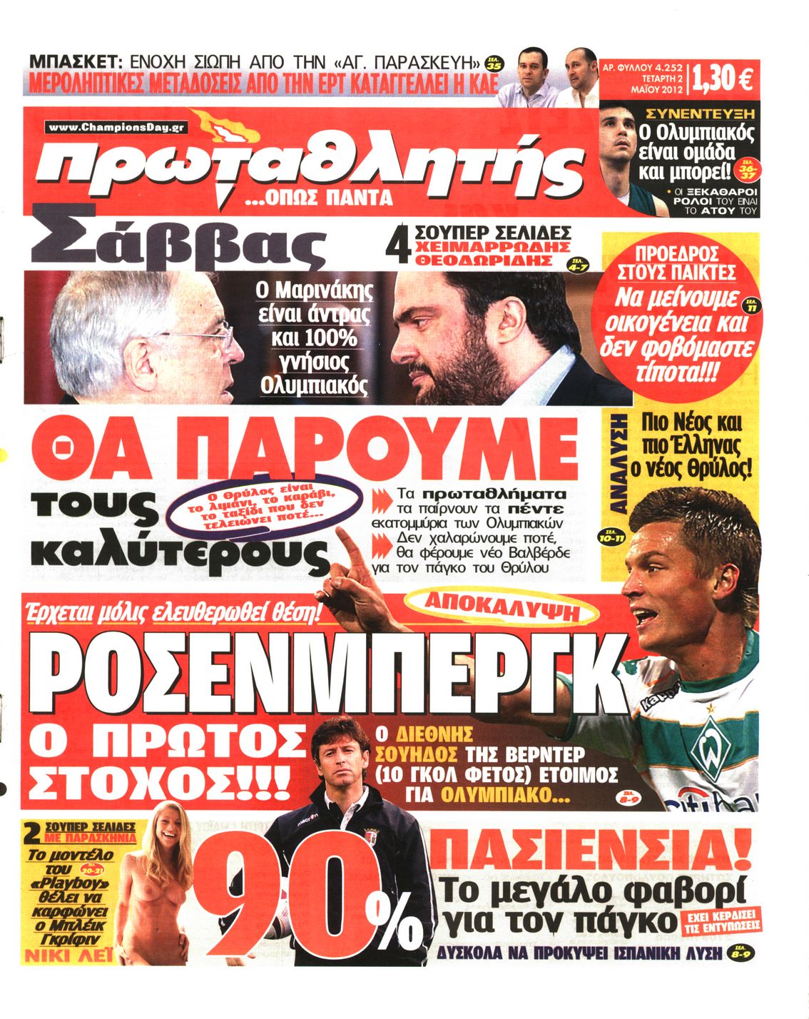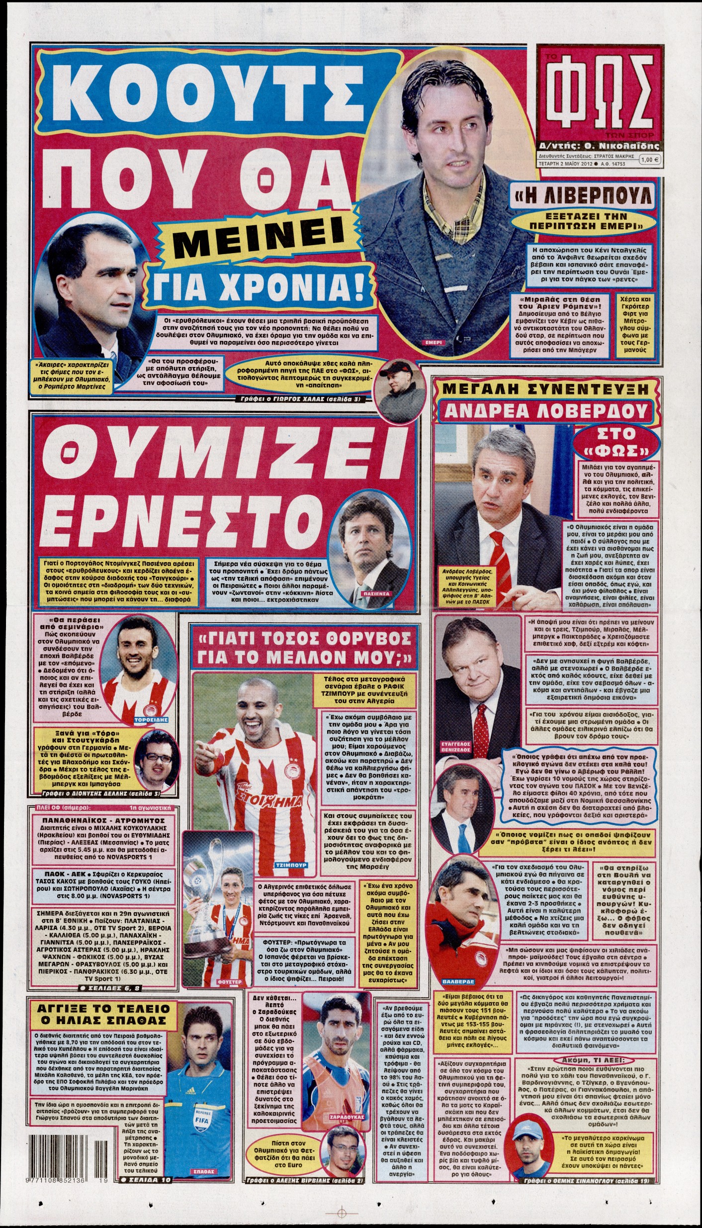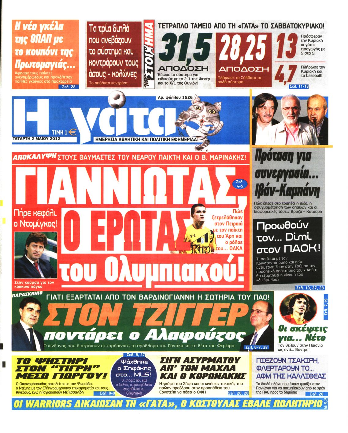 Τα αθλητικά πρωτοσέλιδα Enikos Newsroom 08:17, Τετάρτη 02 Μαΐου 2012 Media ΕΦΗΜΕΡΙΔΕΣ ΠΡΩΤΟΣΕΛΙΔΑ Μοιράσου το: σχολίασε κι εσύ (0 σχόλια) Ακολουθήστε το enikos.gr στο Google News και μάθετε πρώτοι όλες τις ειδήσεις Δείτε όλες τις τελευταίες ειδήσεις από την Ελλάδα και τον Κόσμο στο enikos.gr Ειδήσεις Ροή Ειδήσεων 2 ώρες πριν Στεγαστικό: Όλο το σχέδιο για περισσότερα και φθηνότερα ενοικιαζόμενα σπίτια 1 ώρα πριν Προϋπολογισμός 2026: Τα μηνύματα από την ομιλία Μητσοτάκη και τα «καρφιά» με πολλαπλούς αποδέκτες 2 ώρες πριν Αγρότες: Ορισμένοι ζητούν πιο σκληρή μορφή κινητοποιήσεων – Κρίσιμη η αυριανή σύσκεψη στις Σέρρες 1 ώρα πριν Ρομπ Ράινερ: Το δείπνο με τους Ομπάμα που δεν έγινε ποτέ και νέα στοιχεία για τον «καβγά» στο πάρτι – Βίντεο με τον γιο του να περιφέρεται κοντά στο σπίτι της τραγωδίας 2 ώρες πριν Κανόνια λέιζερ σε φρεγάτες – Το επόμενο άλμα στις ναυτικές επιχειρήσεις – Δείτε βίντεο 3 ώρες πριν Οπτική ψευδαίσθηση: Μόνο αν είσαι ο Σέρλοκ Χολμς θα βρεις τον σκύλο σε 15 δευτερόλεπτα 4 ώρες πριν Τα ζώδια σήμερα, Τετάρτη 17 Δεκεμβρίου: Κριοί, η αυτοπεποίθησή σας ενισχύεται 2 ώρες πριν Νεολιθικός σκύλος βρέθηκε προσεκτικά θαμμένος στον βυθό λίμνης – Δίπλα του βρέθηκε ένα στιλέτο 36 λεπτά πριν Έλαβε τελεσίγραφο από τη σύντροφό του – «Μου είπε πως ή θα της κάνω πρόταση στα δύο χρόνια σχέσης ή θα με χωρίσει» 4 λεπτά πριν Αγρότες: Πολύωροι αποκλεισμοί και σήμερα στα τελωνεία Ευζώνων, Νίκης, Προμαχώνα και Εξοχής 9 λεπτά πριν Σύγκληση του Εθνικού Συμβουλίου Εξωτερικής Πολιτικής για τις εξελίξεις στην Ανατολική Μεσόγειο 14 λεπτά πριν 20 χρόνια τα Χριστούγεννα ξεκινούν στα Public με μεγάλη ποικιλία σε δώρα! 15 λεπτά πριν Βενεζουέλα: Ο Τραμπ σφίγγει τον κλοιό γύρω από τον Μαδούρο με τον «πλήρη αποκλεισμό» δεξαμενόπλοιων – Το «κλεμμένο» πετρέλαιο που τροφοδοτεί τη ρητορική του 19 λεπτά πριν Κυψέλη: Μαθητές κλείδωσαν τους καθηγητές μέσα στο Γυμνάσιο μετά την επίθεση με μαχαίρι ENIKOS NETWORK Δύο συστατικά που είναι καλό να βάλετε στον πρωινό σας καφέ – Βοηθούν στην απώλεια βάρους και τη ρύθμιση του σακχάρου Πρωτοποριακή θεραπεία για το Αλτσχάιμερ: Φως και ήχος μπορεί να επιβραδύνουν την εξέλιξη της νόσου Λεωφορεία: Στάση εργασίας πραγματοποιούν σήμερα οι εργαζόμενοι-Δείτε τις ώρες Έρχεται «νοικοκύρεμα » στα ακίνητα- Τι πρέπει να γνωρίζουν οι πολίτες Σύγχρονος Νοστράδαμος: Προειδοποιεί για «μεγάλο γεγονός» τους επόμενους μήνες που θα συγκλονίσει τη Βρετανία και τον κόσμο Τεστ παρατηρητικότητας: Μπορείτε να βρείτε τις 3 διαφορές στις εικόνες με έναν πιγκουίνο σε 14 δευτερόλεπτα περισσότερα 09:08 , Τετάρτη 17 Δεκεμβρίου 2025 Τηλεθέαση (16/12): Ανακατατάξεις στην πρωινή ψυχαγωγική ζώνη Ξεκάθαρη πρωτιά στην τηλεθέαση για την «Super Κατερίνα» στο δυναμικό κοινό με ποσοστό 18,5%, α... 08:00 , Τετάρτη 17 Δεκεμβρίου 2025 Την Κυριακή με τη Realnews: Δωροεπιταγή 10€ Δωροεπιταγή αξίας 10€ για αγορές άνω των 60€ από τα πολυκαταστήματα FactoryOutlet H προσφορά ι... 07:00 , Τετάρτη 17 Δεκεμβρίου 2025 Την Κυριακή με τη Realnews: Ό,τι και αν αγοράσεις, σκανάρεις και κερδίζεις! Την Κυριακή με τη Realnews: Ό,τι και αν αγοράσεις, σκανάρεις και κερδίζεις! Με το PADU app, το... 05:48 , Τετάρτη 17 Δεκεμβρίου 2025 Οι οικονομικές εφημερίδες 17/12/2025 Διαβάστε τα πρωτοσέλιδα από τις οικονομικές εφημερίδες, σήμερα 17/12/2025. ΤΕΛΕΥΤΑΙΕΣ ΕΙΔΗΣΕΙΣ 4 λεπτά πριν Αγρότες: Πολύωροι αποκλεισμοί και σήμερα στα τελωνεία... 9 λεπτά πριν Σύγκληση του Εθνικού Συμβουλίου Εξωτερικής Πολιτικής... 14 λε