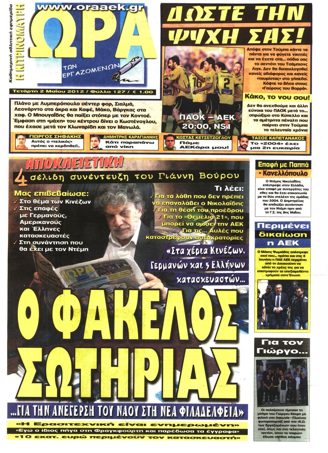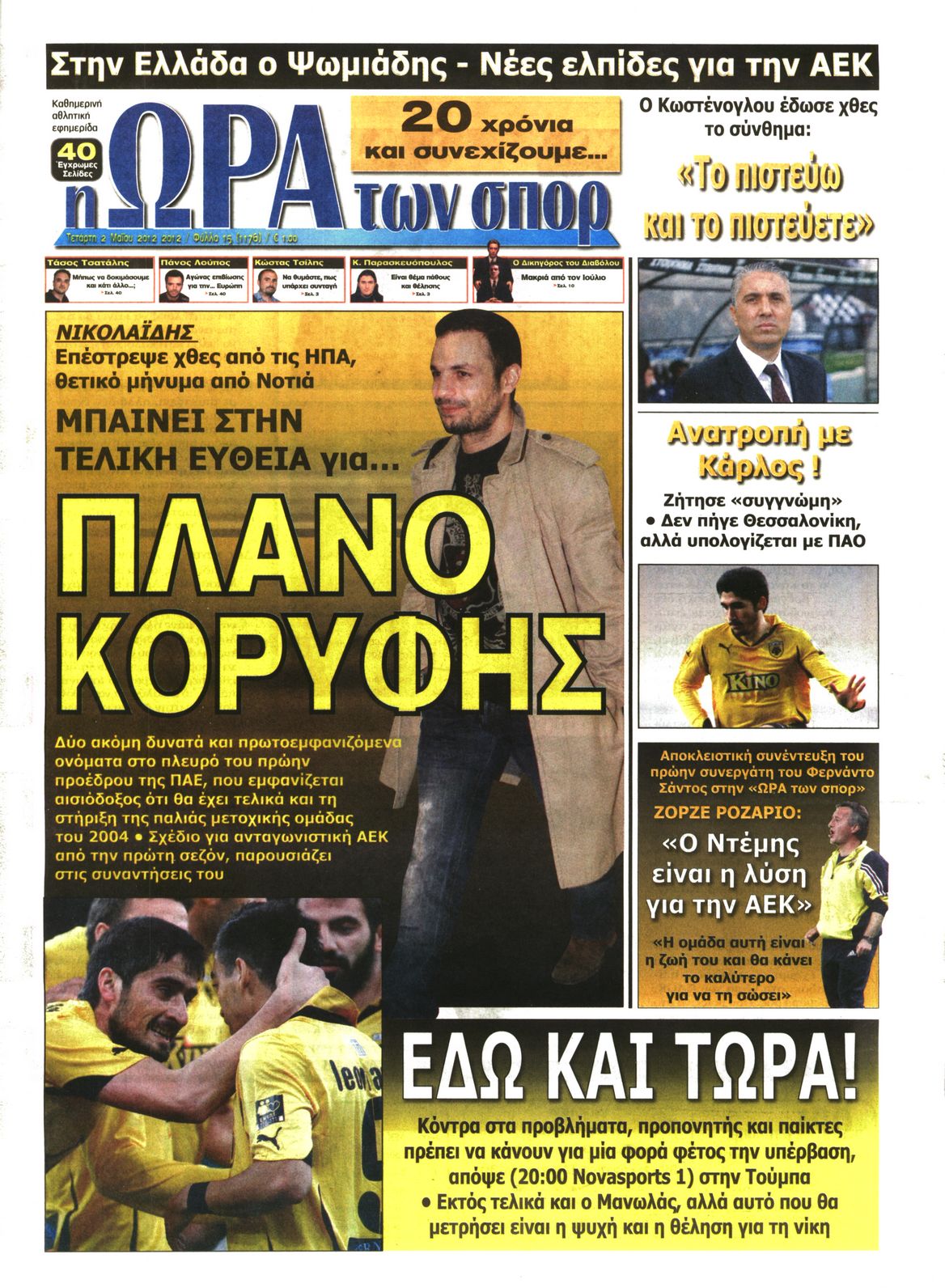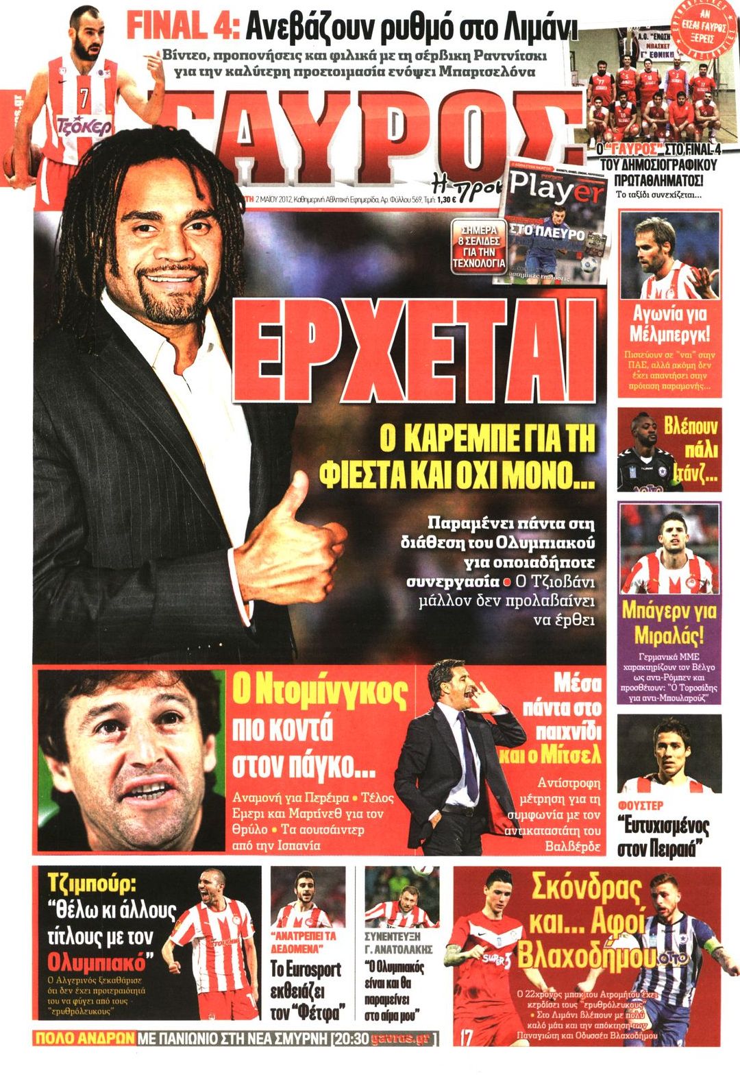 Τα αθλητικά πρωτοσέλιδα Enikos Newsroom 08:17, Τετάρτη 02 Μαΐου 2012 Media ΕΦΗΜΕΡΙΔΕΣ ΠΡΩΤΟΣΕΛΙΔΑ Μοιράσου το: σχολίασε κι εσύ (0 σχόλια) Ακολουθήστε το enikos.gr στο Google News και μάθετε πρώτοι όλες τις ειδήσεις Δείτε όλες τις τελευταίες ειδήσεις από την Ελλάδα και τον Κόσμο στο enikos.gr Ειδήσεις Ροή Ειδήσεων 2 ώρες πριν Στεγαστικό: Όλο το σχέδιο για περισσότερα και φθηνότερα ενοικιαζόμενα σπίτια 1 ώρα πριν Προϋπολογισμός 2026: Τα μηνύματα από την ομιλία Μητσοτάκη και τα «καρφιά» με πολλαπλούς αποδέκτες 2 ώρες πριν Αγρότες: Ορισμένοι ζητούν πιο σκληρή μορφή κινητοποιήσεων – Κρίσιμη η αυριανή σύσκεψη στις Σέρρες 1 ώρα πριν Ρομπ Ράινερ: Το δείπνο με τους Ομπάμα που δεν έγινε ποτέ και νέα στοιχεία για τον «καβγά» στο πάρτι – Βίντεο με τον γιο του να περιφέρεται κοντά στο σπίτι της τραγωδίας 2 ώρες πριν Κανόνια λέιζερ σε φρεγάτες – Το επόμενο άλμα στις ναυτικές επιχειρήσεις – Δείτε βίντεο 3 ώρες πριν Οπτική ψευδαίσθηση: Μόνο αν είσαι ο Σέρλοκ Χολμς θα βρεις τον σκύλο σε 15 δευτερόλεπτα 4 ώρες πριν Τα ζώδια σήμερα, Τετάρτη 17 Δεκεμβρίου: Κριοί, η αυτοπεποίθησή σας ενισχύεται 2 ώρες πριν Νεολιθικός σκύλος βρέθηκε προσεκτικά θαμμένος στον βυθό λίμνης – Δίπλα του βρέθηκε ένα στιλέτο 36 λεπτά πριν Έλαβε τελεσίγραφο από τη σύντροφό του – «Μου είπε πως ή θα της κάνω πρόταση στα δύο χρόνια σχέσης ή θα με χωρίσει» 4 λεπτά πριν Αγρότες: Πολύωροι αποκλεισμοί και σήμερα στα τελωνεία Ευζώνων, Νίκης, Προμαχώνα και Εξοχής 9 λεπτά πριν Σύγκληση του Εθνικού Συμβουλίου Εξωτερικής Πολιτικής για τις εξελίξεις στην Ανατολική Μεσόγειο 14 λεπτά πριν 20 χρόνια τα Χριστούγεννα ξεκινούν στα Public με μεγάλη ποικιλία σε δώρα! 15 λεπτά πριν Βενεζουέλα: Ο Τραμπ σφίγγει τον κλοιό γύρω από τον Μαδούρο με τον «πλήρη αποκλεισμό» δεξαμενόπλοιων – Το «κλεμμένο» πετρέλαιο που τροφοδοτεί τη ρητορική του 19 λεπτά πριν Κυψέλη: Μαθητές κλείδωσαν τους καθηγητές μέσα στο Γυμνάσιο μετά την επίθεση με μαχαίρι ENIKOS NETWORK Δύο συστατικά που είναι καλό να βάλετε στον πρωινό σας καφέ – Βοηθούν στην απώλεια βάρους και τη ρύθμιση του σακχάρου Πρωτοποριακή θεραπεία για το Αλτσχάιμερ: Φως και ήχος μπορεί να επιβραδύνουν την εξέλιξη της νόσου Λεωφορεία: Στάση εργασίας πραγματοποιούν σήμερα οι εργαζόμενοι-Δείτε τις ώρες Έρχεται «νοικοκύρεμα » στα ακίνητα- Τι πρέπει να γνωρίζουν οι πολίτες Σύγχρονος Νοστράδαμος: Προειδοποιεί για «μεγάλο γεγονός» τους επόμενους μήνες που θα συγκλονίσει τη Βρετανία και τον κόσμο Τεστ παρατηρητικότητας: Μπορείτε να βρείτε τις 3 διαφορές στις εικόνες με έναν πιγκουίνο σε 14 δευτερόλεπτα περισσότερα 09:08 , Τετάρτη 17 Δεκεμβρίου 2025 Τηλεθέαση (16/12): Ανακατατάξεις στην πρωινή ψυχαγωγική ζώνη Ξεκάθαρη πρωτιά στην τηλεθέαση για την «Super Κατερίνα» στο δυναμικό κοινό με ποσοστό 18,5%, α... 08:00 , Τετάρτη 17 Δεκεμβρίου 2025 Την Κυριακή με τη Realnews: Δωροεπιταγή 10€ Δωροεπιταγή αξίας 10€ για αγορές άνω των 60€ από τα πολυκαταστήματα FactoryOutlet H προσφορά ι... 07:00 , Τετάρτη 17 Δεκεμβρίου 2025 Την Κυριακή με τη Realnews: Ό,τι και αν αγοράσεις, σκανάρεις και κερδίζεις! Την Κυριακή με τη Realnews: Ό,τι και αν αγοράσεις, σκανάρεις και κερδίζεις! Με το PADU app, το... 05:48 , Τετάρτη 17 Δεκεμβρίου 2025 Οι οικονομικές εφημερίδες 17/12/2025 Διαβάστε τα πρωτοσέλιδα από τις οικονομικές εφημερίδες, σήμερα 17/12/2025. ΤΕΛΕΥΤΑΙΕΣ ΕΙΔΗΣΕΙΣ 4 λεπτά πριν Αγρότες: Πολύωροι αποκλεισμοί και σήμερα στα τελωνεία... 9 λεπτά πριν Σύγκληση του Εθνικού Συμβουλίου Εξωτερικής Πολιτικής... 14 λε