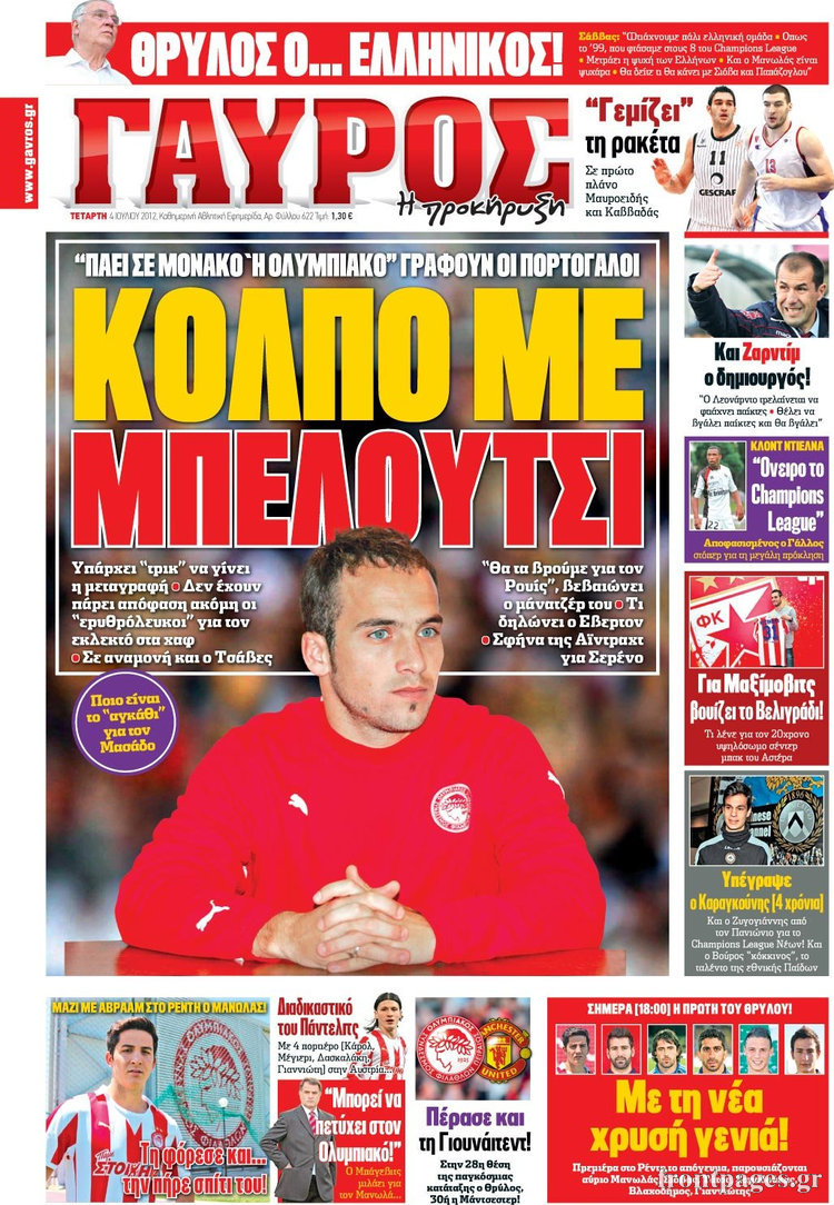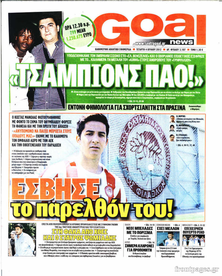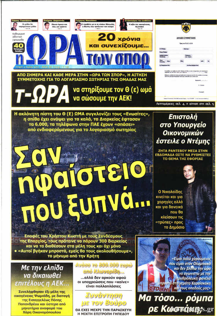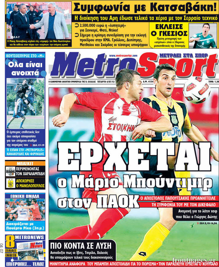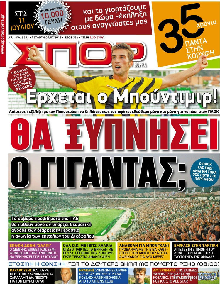 Τα αθλητικά πρωτοσέλιδα Enikos Newsroom 09:53, Τετάρτη 04 Ιουλίου 2012 Media ΕΦΗΜΕΡΙΔΕΣ Μοιράσου το: σχολίασε κι εσύ (0 σχόλια) Ακολουθήστε το enikos.gr στο Google News και μάθετε πρώτοι όλες τις ειδήσεις Δείτε όλες τις τελευταίες ειδήσεις από την Ελλάδα και τον Κόσμο στο enikos.gr Ειδήσεις Ροή Ειδήσεων 43 λεπτά πριν Ευρωπαϊκή Ένωση: Χωρίς συμφωνία, για την μακροπρόθεσμη χρηματοδότηση της Ουκρανίας, ολοκληρώθηκε η Σύνοδος Κορυφής στις Βρυξέλλες 4 ώρες πριν ΟΠΕΚΕΠΕ: Προφυλακιστέος ο φερόμενος αρχηγός και ο λογιστής της εγκληματικής οργάνωσης 5 ώρες πριν Αυξάνουν την πίεση προς την κυβέρνηση οι αγρότες: Κλείνουν παρακαμπτήριους και ανοίγουν διόδια – Τι θα γίνει τις γιορτές 5 ώρες πριν Φοινικούντα: Το Σάββατο απολογείται ο 30χρονος γιος γνωστού επιχειρηματία της Πλάκας που παραδόθηκε – Όσα είπε στους αστυνομικούς και ο ρόλος του στο έγκλημα 4 ώρες πριν ΑΕΚ – Κραϊόβα 3-2: Επική ανατροπή και πρόκριση στους «16» του Conference League η Ένωση 5 ώρες πριν Αρχαιολόγοι ανακάλυψαν ρωμαϊκά τεχνουργήματα από μια πόλη που δεν υπήρξε ποτέ – Τα τρία εντυπωσιακά κτίρια και ο αμφορέας με τις… σαρδέλες 6 ώρες πριν Ύπνος: Η απλή βραδινή ρουτίνα για να προστατεύσετε τα μαλλιά σας από το κρύο κατά τη διάρκεια του χειμώνα 7 ώρες πριν Manifesting: Πώς να συναντήσετε τον σύντροφο της ζωής σας, ανάλογα με τον μήνα γέννησής σας 2 ημέρες πριν 20 χρόνια τα Χριστούγεννα ξεκινούν στα Public με μεγάλη ποικιλία σε δώρα! 3 λεπτά πριν Σίσσυ Τουμάση: «Είμαι ασθενοφοβική πάρα πολύ και με πιάνει μια παράνοια μ’ αυτό» 27 λεπτά πριν Ντόναλντ Τραμπ: Δεν χρειάζομαι την έγκριση του Κογκρέσου για να διατάξω στρατιωτικά πλήγματα στη Βενεζουέλα 43 λεπτά πριν Ευρωπαϊκή Ένωση: Χωρίς συμφωνία, για την μακροπρόθεσμη χρηματοδότηση της Ουκρανίας, ολοκληρώθηκε η Σύνοδος Κορυφής στις Βρυξέλλες 58 λεπτά πριν GNTM: «Κλείδωσαν» οι τέσσερις φιναλίστ – Μεγάλη ανατροπή στις τελευταίες αποχωρήσεις 1 ώρα πριν Γιώργος Μαζωνάκης: Αποθεώθηκε στην πρεμιέρα του στην «Ακτή Πειραιώς» λίγες ώρες μετά τις καταγγελίες – «Είμαι αληθινός», είπε με νόημα ENIKOS NETWORK Σε περίοδο αυξημένης δραστηριότητας η γρίπη στην Ελλάδα-Μέτρα προστασίας από τον ΕΟΔΥ Σκέφτεστε συνέχεια συζητήσεις που έχετε κάνει; Τι σημαίνει αυτό, σύμφωνα με ειδικό Στεγαστικό: Τι λέει η ΠΟΜΙΔΑ για τα νέα μέτρα που ανακοίνωσε ο Κυριάκος Μητσοτάκης Λαγκάρντ: Αισιόδοξη για την ανάπτυξη της Ευρωζώνης, αβέβαιη για τον πληθωρισμό Χαρτογραφώντας το «σημείο χωρίς επιστροφή»: Για πρώτη φορά αποκαλύπτεται με λεπτομέρεια το ακανθώδες όριο της ατμόσφαιρας τ... Η Google καταργεί τη λειτουργία «dark web report» – Πώς θα μπορούν οι χρήστες να διαγράφουν τα δεδομένα τους περισσότερα 02:50 , Παρασκευή 19 Δεκεμβρίου 2025 GNTM: «Κλείδωσαν» οι τέσσερις φιναλίστ – Μεγάλη ανατροπή στις τελευταίες αποχωρήσεις Για προτελευταία φορά εμφανίστηκαν στο πλατό του GNTM οι φιναλίστ του φετινού κύκλου, το βράδυ... 17:45 , Πέμπτη 18 Δεκεμβρίου 2025 ROUK ZOUK: Εορταστικό επεισόδιο με καλεσμένους τους πρωταγωνιστές του «Γιατί ρε πατέρα» Το Σάββατο 20 Δεκεμβρίου στις 21:00, η Ζέτα Μακρυπούλια υποδέχεται εκλεκτούς ηθοποιούς που όλο... 17:20 , Πέμπτη 18 Δεκεμβρίου 2025 Άγιος έρωτας: Η Χριστίνα εξομολογείται στον πατέρα Νικόλαο, απόψε στις 21:00 στον Alpha Η Νότα αποφασίζει να εκδικηθεί τον Πέτρο και τον Στέφανο, για χάρη του Λούη, όμως τα πράγματα ... 16:50 , Πέμπτη 18 Δεκεμβρίου 2025 Να μ’ αγαπάς: Ζωή και Φωτεινή συμφιλιώνονται ως μάνα με κόρη, απόψε στις 20:00 Η ταυτότητα του Άγγελο