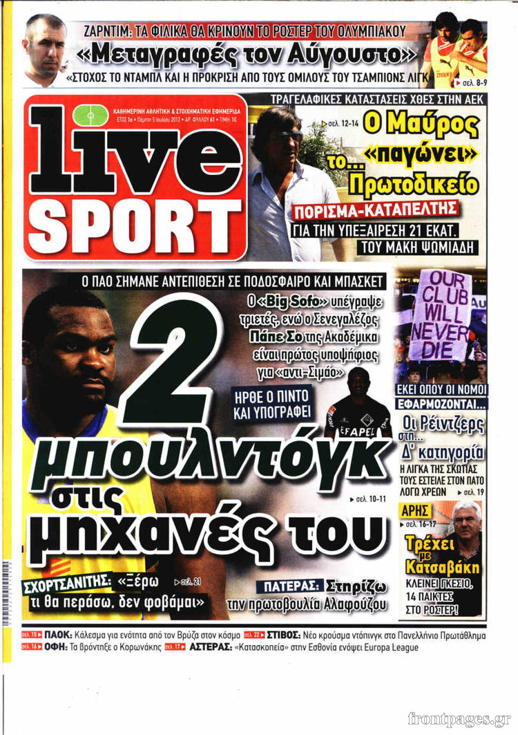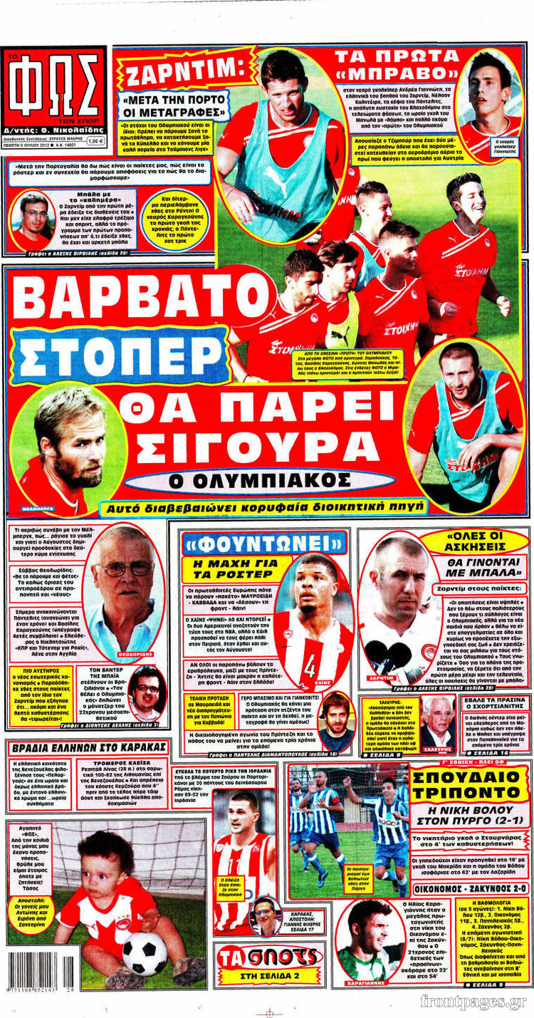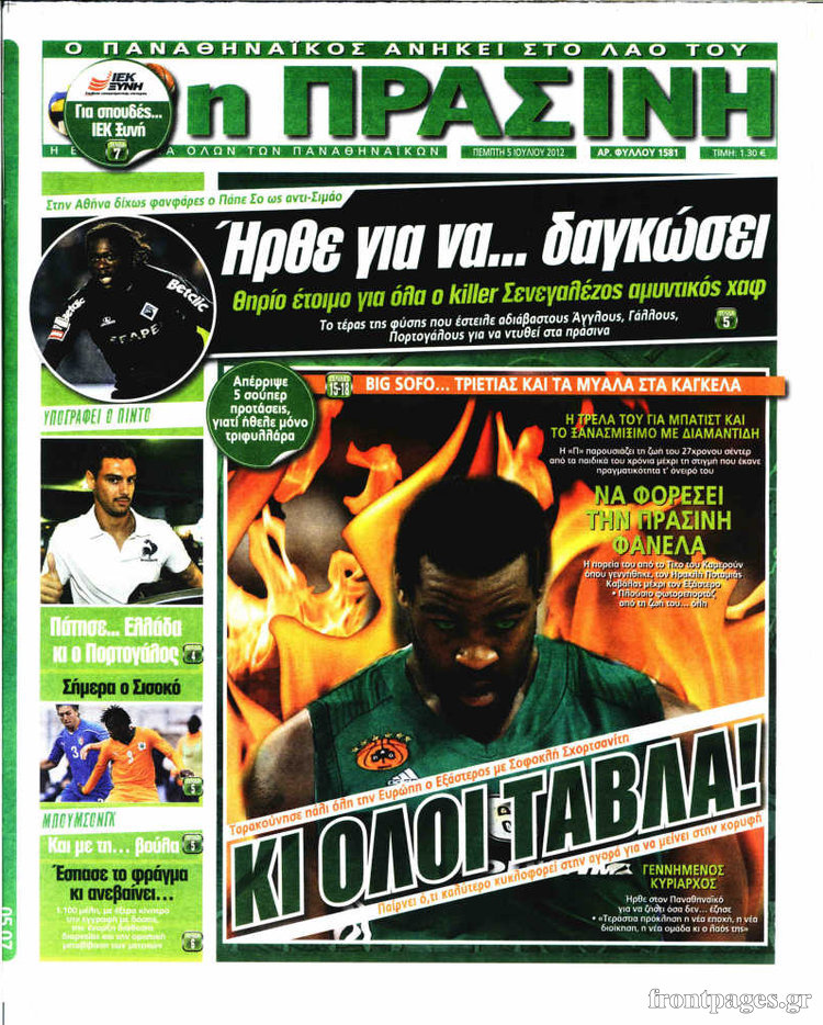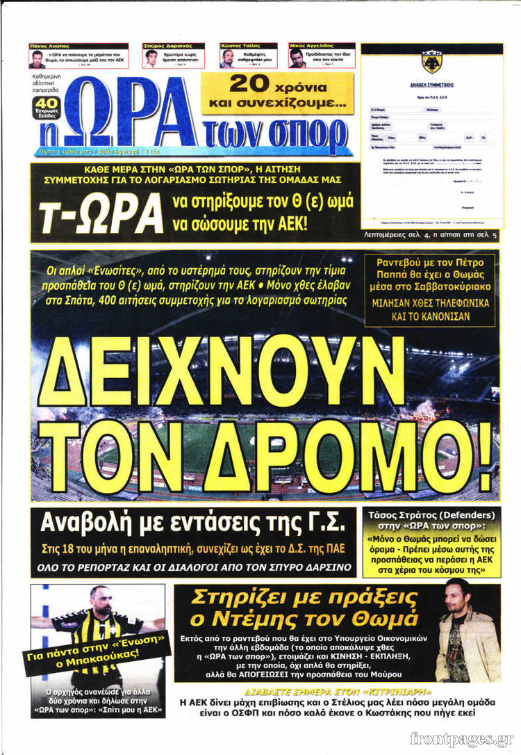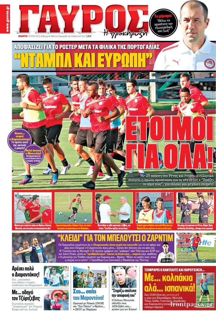Τα αθλητικά πρωτοσέλιδα Enikos Newsroom 09:31, Πέμπτη 05 Ιουλίου 2012 Media ΕΦΗΜΕΡΙΔΕΣ Μοιράσου το: σχολίασε κι εσύ (0 σχόλια) Ακολουθήστε το enikos.gr στο Google News και μάθετε πρώτοι όλες τις ειδήσεις Δείτε όλες τις τελευταίες ειδήσεις από την Ελλάδα και τον Κόσμο στο enikos.gr Ειδήσεις Ροή Ειδήσεων 1 ώρα πριν Ευρωπαϊκή Ένωση: Συμφωνία για δάνειο 90 δισ. ευρώ στην Ουκρανία τη διετία 2026-2027 6 ώρες πριν ΟΠΕΚΕΠΕ: Προφυλακιστέος ο φερόμενος αρχηγός και ο λογιστής της εγκληματικής οργάνωσης 7 ώρες πριν Αυξάνουν την πίεση προς την κυβέρνηση οι αγρότες: Κλείνουν παρακαμπτήριους και ανοίγουν διόδια – Τι θα γίνει τις γιορτές 7 ώρες πριν Φοινικούντα: Το Σάββατο απολογείται ο 30χρονος γιος γνωστού επιχειρηματία της Πλάκας που παραδόθηκε – Όσα είπε στους αστυνομικούς και ο ρόλος του στο έγκλημα 5 ώρες πριν ΑΕΚ – Κραϊόβα 3-2: Επική ανατροπή και πρόκριση στους «16» του Conference League η Ένωση 6 ώρες πριν Αρχαιολόγοι ανακάλυψαν ρωμαϊκά τεχνουργήματα από μια πόλη που δεν υπήρξε ποτέ – Τα τρία εντυπωσιακά κτίρια και ο αμφορέας με τις… σαρδέλες 7 ώρες πριν Ύπνος: Η απλή βραδινή ρουτίνα για να προστατεύσετε τα μαλλιά σας από το κρύο κατά τη διάρκεια του χειμώνα 8 ώρες πριν Manifesting: Πώς να συναντήσετε τον σύντροφο της ζωής σας, ανάλογα με τον μήνα γέννησής σας 2 ημέρες πριν 20 χρόνια τα Χριστούγεννα ξεκινούν στα Public με μεγάλη ποικιλία σε δώρα! 7 λεπτά πριν Η TikTok στις ΗΠΑ πωλείται σε Oracle, Silver Lake και MGX – Οι λεπτομέρειες του «deal» 15 λεπτά πριν Αλεξάντερ Λουκασένκο: Η Λευκορωσία βρίσκεται κοντά στην αποκατάσταση των σχέσεών της με τις ΗΠΑ 30 λεπτά πριν Αυστραλία: Κήρυξε την Κυριακή (21/12) ημέρα εθνικού πένθους για τη φονική επίθεση στην παραλία Μπόνταϊ 40 λεπτά πριν Ρόδος: Δάσκαλος καράτε καταδικάστηκε για ασέλγεια σε ανήλικες αθλήτριες – Μαρτυρίες για αγγίγματα σε ευαίσθητα σημεία 55 λεπτά πριν Γουατεμάλα: Εξαρθρώθηκε κύκλωμα διακίνησης μεταναστών προς τις ΗΠΑ – Συνελήφθησαν 14 άτομα ENIKOS NETWORK Σε περίοδο αυξημένης δραστηριότητας η γρίπη στην Ελλάδα-Μέτρα προστασίας από τον ΕΟΔΥ Σκέφτεστε συνέχεια συζητήσεις που έχετε κάνει; Τι σημαίνει αυτό, σύμφωνα με ειδικό Στεγαστικό: Τι λέει η ΠΟΜΙΔΑ για τα νέα μέτρα που ανακοίνωσε ο Κυριάκος Μητσοτάκης Λαγκάρντ: Αισιόδοξη για την ανάπτυξη της Ευρωζώνης, αβέβαιη για τον πληθωρισμό Χαρτογραφώντας το «σημείο χωρίς επιστροφή»: Για πρώτη φορά αποκαλύπτεται με λεπτομέρεια το ακανθώδες όριο της ατμόσφαιρας τ... Η Google καταργεί τη λειτουργία «dark web report» – Πώς θα μπορούν οι χρήστες να διαγράφουν τα δεδομένα τους περισσότερα 02:50 , Παρασκευή 19 Δεκεμβρίου 2025 GNTM: «Κλείδωσαν» οι τέσσερις φιναλίστ – Μεγάλη ανατροπή στις τελευταίες αποχωρήσεις Για προτελευταία φορά εμφανίστηκαν στο πλατό του GNTM οι φιναλίστ του φετινού κύκλου, το βράδυ... 17:45 , Πέμπτη 18 Δεκεμβρίου 2025 ROUK ZOUK: Εορταστικό επεισόδιο με καλεσμένους τους πρωταγωνιστές του «Γιατί ρε πατέρα» Το Σάββατο 20 Δεκεμβρίου στις 21:00, η Ζέτα Μακρυπούλια υποδέχεται εκλεκτούς ηθοποιούς που όλο... 17:20 , Πέμπτη 18 Δεκεμβρίου 2025 Άγιος έρωτας: Η Χριστίνα εξομολογείται στον πατέρα Νικόλαο, απόψε στις 21:00 στον Alpha Η Νότα αποφασίζει να εκδικηθεί τον Πέτρο και τον Στέφανο, για χάρη του Λούη, όμως τα πράγματα ... 16:50 , Πέμπτη 18 Δεκεμβρίου 2025 Να μ’ αγαπάς: Ζωή και Φωτεινή συμφιλιώνονται ως μάνα με κόρη, απόψε στις 20:00 Η ταυτότητα του Άγγελου αποκαλύπτεται στο νέο επεισόδιο της σειράς “Να μ’ αγαπάς... ΤΕΛΕΥΤΑΙΕΣ ΕΙΔΗΣΕΙΣ 15 λεπτά πριν Αλεξάντερ Λουκασένκο: Η 