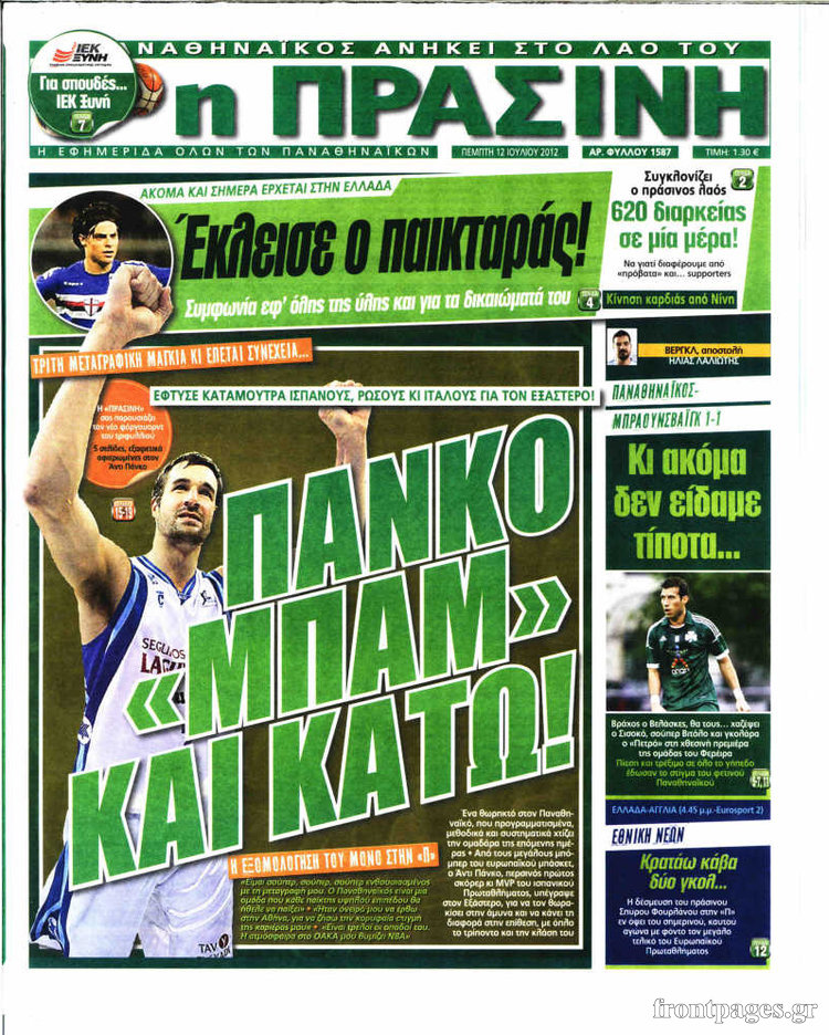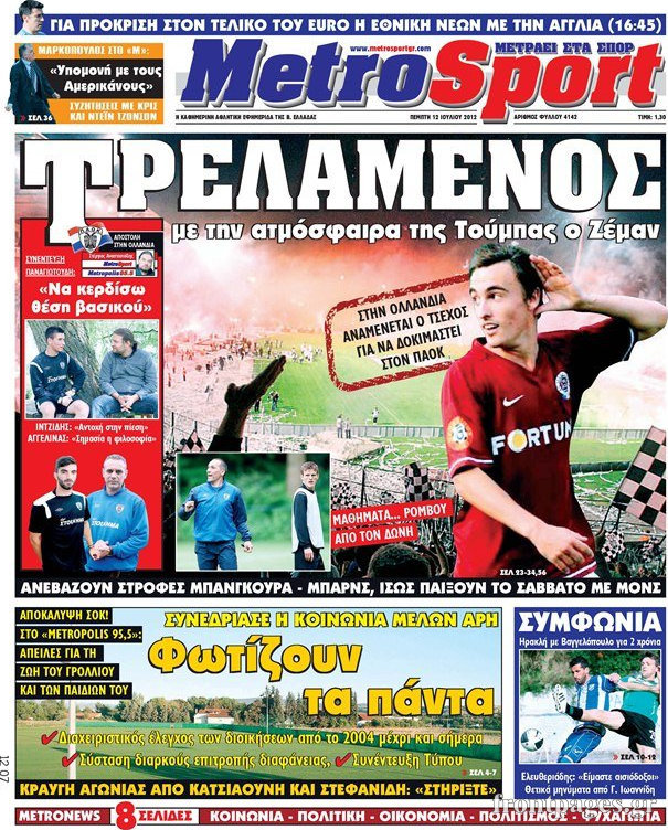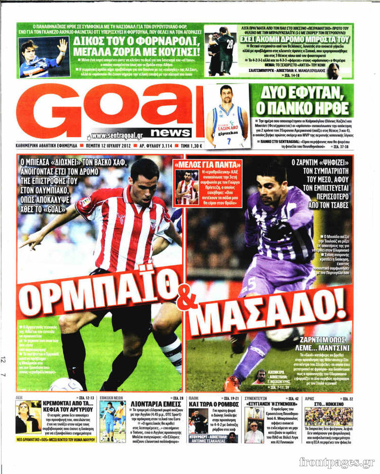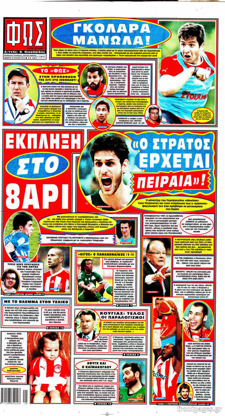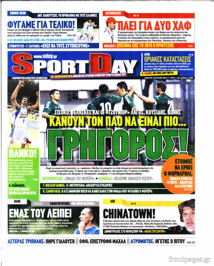 Διαβάστε αναλυτικά τα σημερινά πρωτοσέλιδα των αθλητικών εφημερίδων.