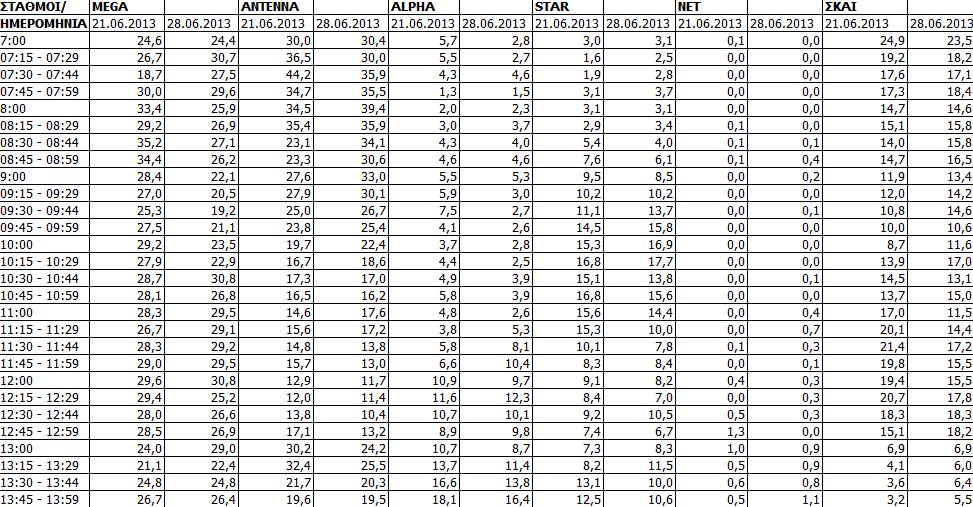 Δείτε τις μετρήσεις τηλεθέασης για την Παρασκευή (28/6) των τηλεοπτικών σταθμών εθνικής εμβέλειας