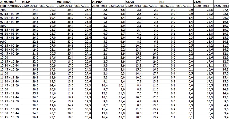 Δείτε τις μετρήσεις τηλεθέασης για την Παρασκευή (08/7) των τηλεοπτικών σταθμών εθνικής εμβέλειας
