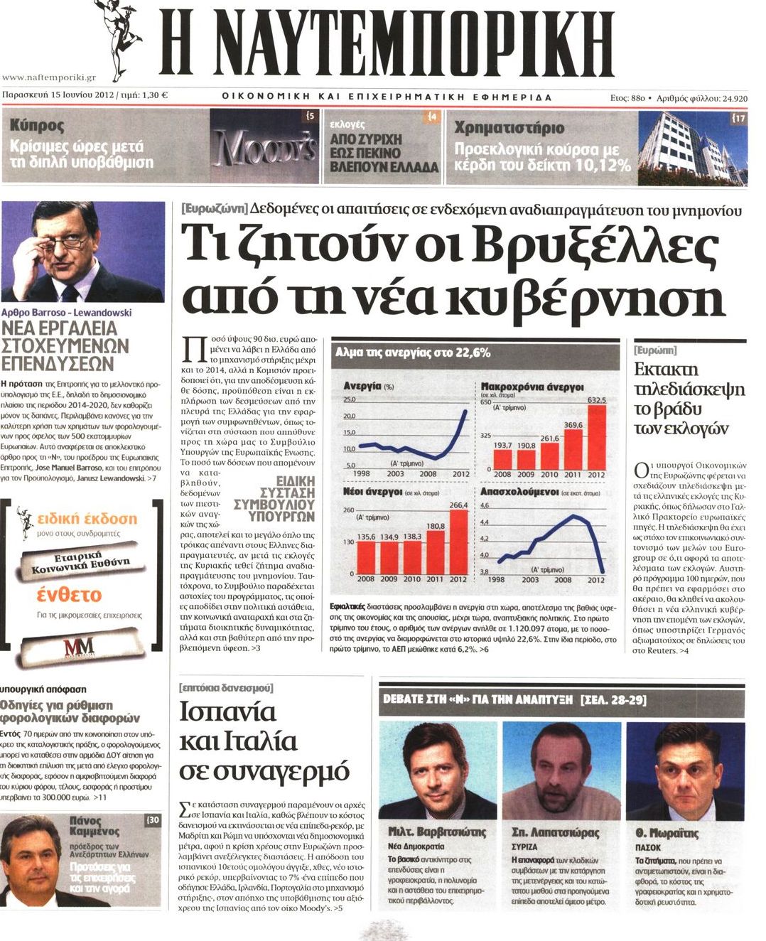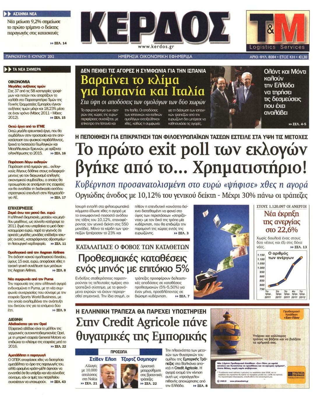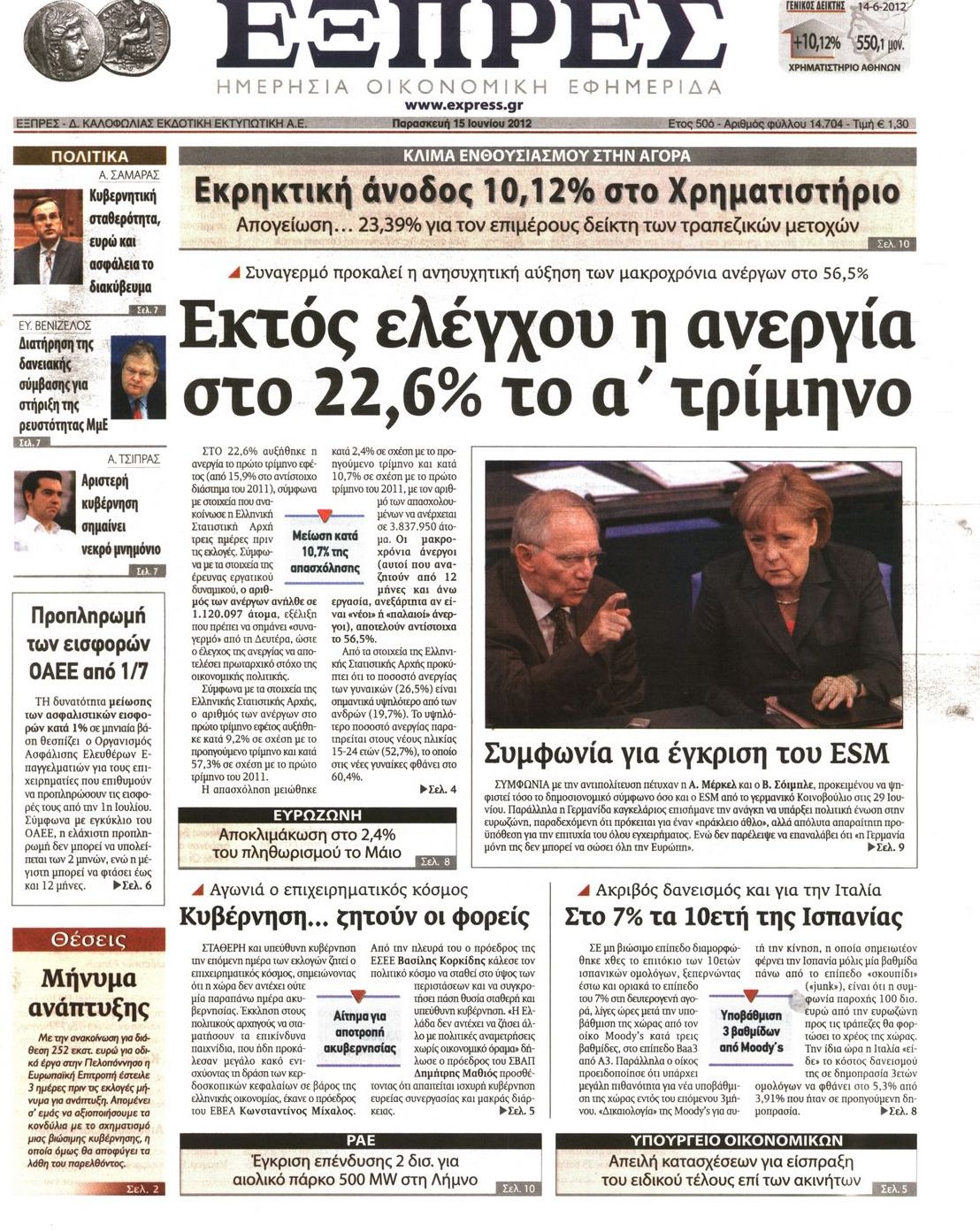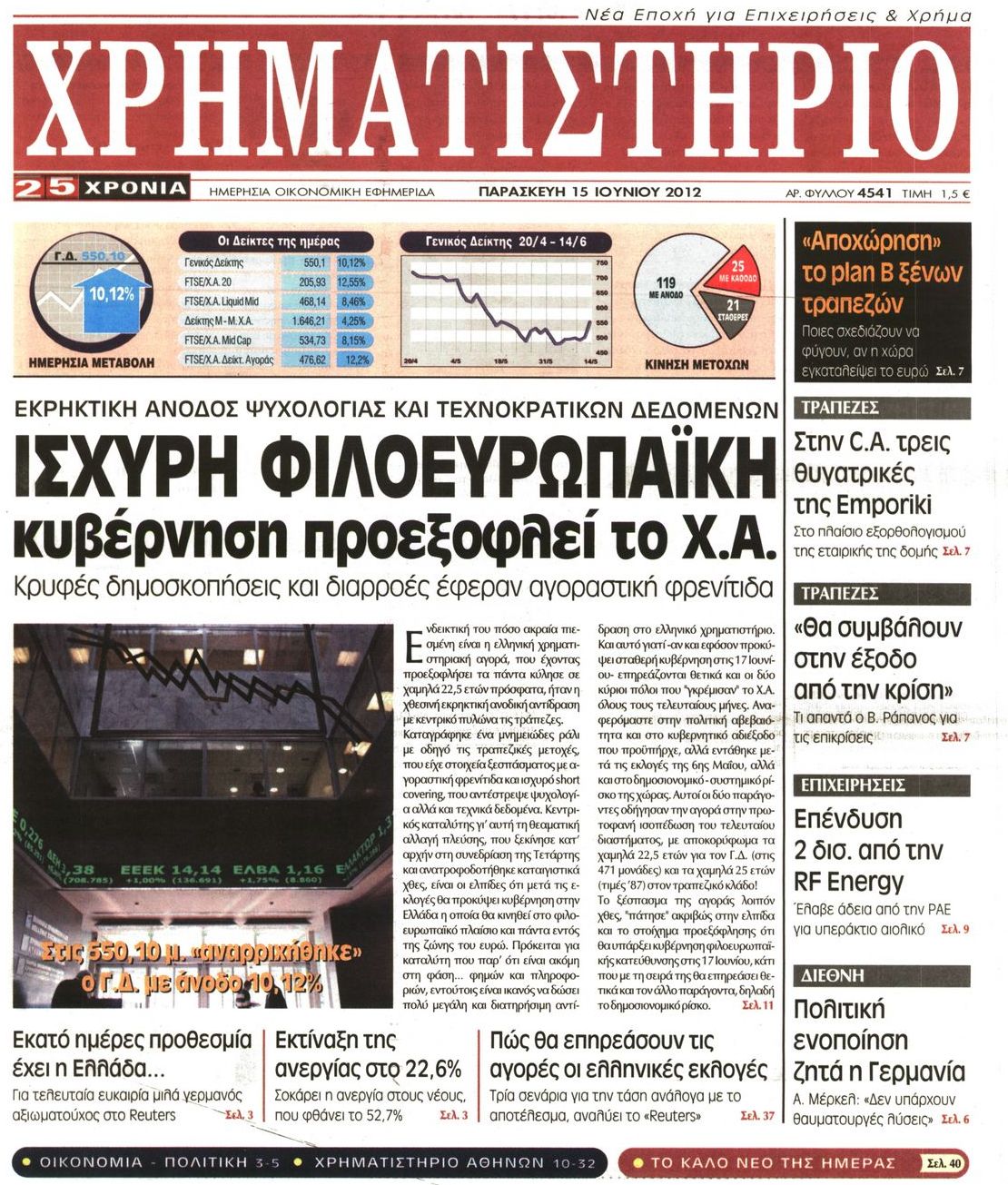 Τα οικονομικά πρωτοσέλιδα Enikos Newsroom 07:47, Παρασκευή 15 Ιουνίου 2012 Media ΕΦΗΜΕΡΙΔΕΣ ΠΡΩΤΟΣΕΛΙΔΑ Μοιράσου το: σχολίασε κι εσύ (0 σχόλια) Ακολουθήστε το enikos.gr στο Google News και μάθετε πρώτοι όλες τις ειδήσεις Δείτε όλες τις τελευταίες ειδήσεις από την Ελλάδα και τον Κόσμο στο enikos.gr Ειδήσεις Ροή Ειδήσεων 6 ώρες πριν Μητσοτάκης: Αναγκαία η μεταρρύθμιση του πρωτογενούς τομέα – Τα 6 νέα μέτρα για το στεγαστικό και οι αναφορές σε «Ιθάκη» και «πολιτικούς του καναπέ» 5 ώρες πριν Δάνεια σε ελβετικό φράγκο: Τα βασικά σημεία της ρύθμισης – ανάσας για 40.000 δανειολήπτες – Αναλυτικός οδηγός με ερωτήσεις και απαντήσεις 5 ώρες πριν Κυψέλη: Εξιτήριο πήρε η 14χρονη μαθήτρια που μαχαιρώθηκε από την 16χρονη σε σχολείο – «Θέλω να βοηθήσω το παιδί, έχει μπλέξει με κακές παρέες» 5 ώρες πριν Τραμπ: Γιατί κατέθεσε τώρα την αγωγή κατά του BBC – Πώς η κίνησή του εξυπηρετεί το νέο δόγμα του για «αντίσταση» στην Ευρώπη, υπέρ των συντηρητικών 6 ώρες πριν ΟΠΕΚΕΠΕ – Παράνομες επιδοτήσεις: Ελεύθεροι με περιοριστικούς όρους και οι 7 κατηγορούμενοι που απολογήθηκαν σήμερα 5 ώρες πριν Ανακαλύφθηκε βυθισμένη πέτρινη κατασκευή ανοιχτά της Κριμαίας – Αποτελεί μέρος αρχαίας ελληνικής αποικίας 6 ώρες πριν Ύπνος: Αυτό μπορεί να είναι το χειρότερο λάθος για το βιολογικό ρολόι σας, σύμφωνα με ειδικό 7 ώρες πριν Αριθμολογία: Οι άνθρωποι που έχουν γεννηθεί αυτές τις 3 ημερομηνίες, προσελκύουν μεγάλη τύχη πριν από το τέλος του 2025 9 ώρες πριν Οι 7 συμπεριφορές που μαρτυρούν ότι ένας άνδρας επενδύει μακροπρόθεσμα σε μια σχέση 6 λεπτά πριν Ντόναλντ Τραμπ: Ξένη τρομοκρατική οργάνωση η Βενεζουέλα – Πλήρης αποκλεισμός των δεξαμενόπλοιων από και προς το Καράκας 21 λεπτά πριν Παναγιώτης Μπουγιούρης: «Έχω μια αφέλεια σε σχέση με τη δουλειά μου» 37 λεπτά πριν Παναθηναϊκός: Η έντονη επιθυμία του Ματίας Λεσόρ να επιστρέψει στα γήπεδα – «Μου λείπει πολύ το γ@@@@». 51 λεπτά πριν Νίκος Πλακιάς: Η Μαρία Καρυστιανού πλέον θα κρίνεται ως πολιτικός και όχι ως συγγενής 1 ώρα πριν Ντόναλντ Τραμπ: Κάλυψε απόλυτα την προσωπάρχη του Λευκού Οίκου: «Ναι, έχω προσωπικότητα αλκοολικού» ENIKOS NETWORK Αίτημα ΙΣΑ για την εξαίρεση των προσωπικών γιατρών από τις κατ’ οίκον επισκέψεις Η σκανδιναβική μέθοδος στον ύπνο που μπορεί να σώσει έναν γάμο Πιερρακάκης: Ο προϋπολογισμός συμβάλλει ουσιαστικά στην ενίσχυση της αγοραστικής δύναμης της πλειονότητας των εργαζομένων e-ΕΦΚΑ: Παρατείνεται η προθεσμία για την υποβολή ΑΠΔ – Ποιους αφορά Σύγχρονος Νοστράδαμος: Προειδοποιεί για «μεγάλο γεγονός» τους επόμενους μήνες που θα συγκλονίσει τη Βρετανία και τον κόσμο Τεστ παρατηρητικότητας: Μπορείτε να βρείτε τις 3 διαφορές στις εικόνες με έναν πιγκουίνο σε 14 δευτερόλεπτα περισσότερα 20:06 , Τρίτη 16 Δεκεμβρίου 2025 Ο ΣΚΑΙ καταγγέλλει τον ΕΚΚΟΜΕΔ Επιστολή με την οποία καταγράφει την έντονη διαμαρτυρία του προς τον διευθύνοντα σύμβουλο του... 17:40 , Τρίτη 16 Δεκεμβρίου 2025 Eurovision: Στις 4 Ιανουαρίου αποκαλύπτονται τα 28 τραγούδια του ελληνικού τελικού Η αγωνία τελειώνει, η γιορτή της Eurovision αρχίζει στην ΕΡΤ από τις πρώτες ημέρες της νέας χρ... 17:09 , Τρίτη 16 Δεκεμβρίου 2025 Alter Ego Media: Βαθύτατη θλίψη και ειλικρινή συλλυπητήρια για την απώλεια της Ειρήνης Μαρινάκη Τη βαθύτατη θλίψη και τα ειλικρινή συλλυπητήριά της εκφράζει η Alter Ego Media για τον θάνατο ... 13:00 , Τρίτη 16 Δεκεμβρίου 2025 «Στο Παρά Πέντε – 20 Χρόνια Μετά»: Κυκλοφόρησε το τρέιλερ του επετειακού επεισοδίου της θρυλικ