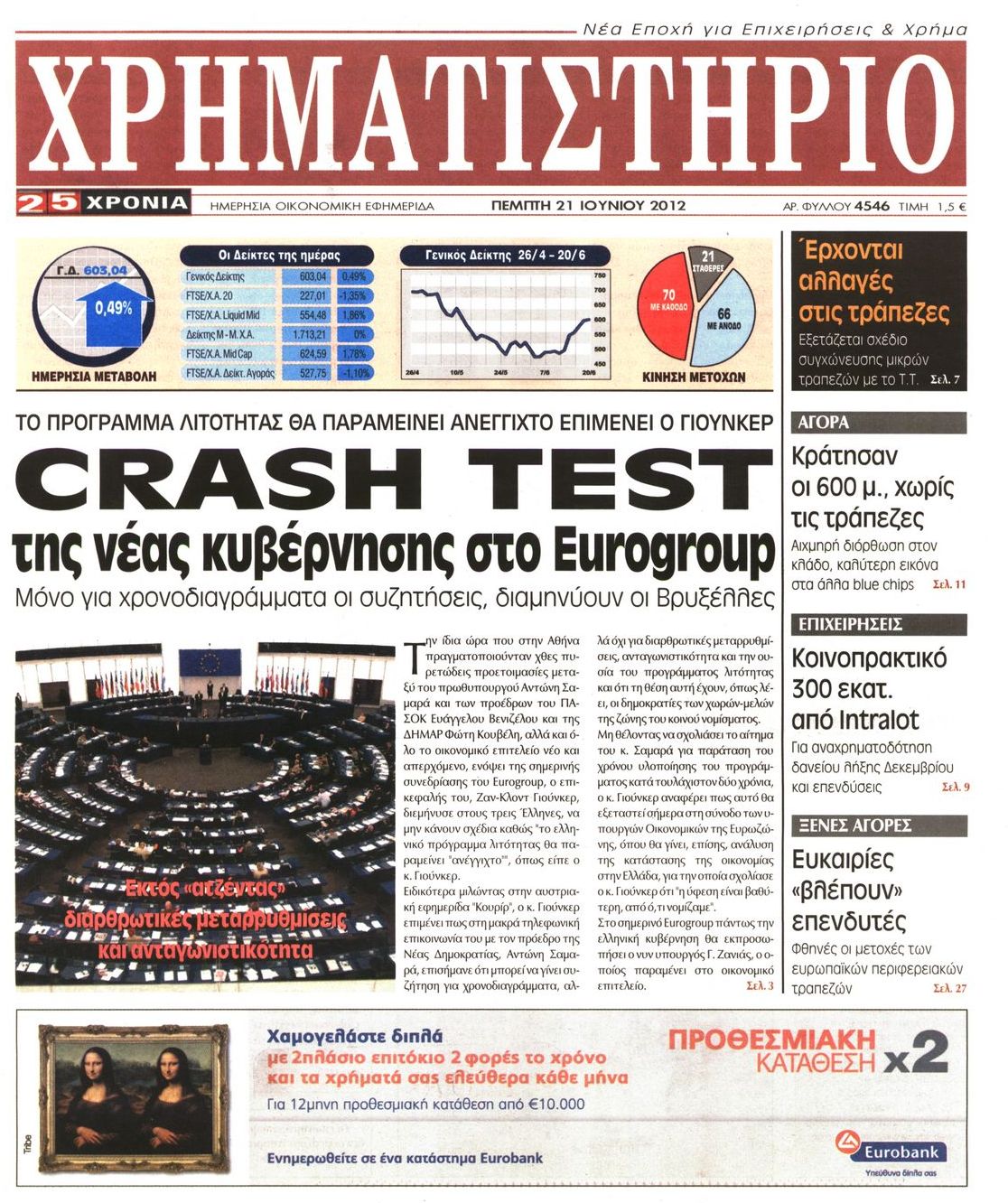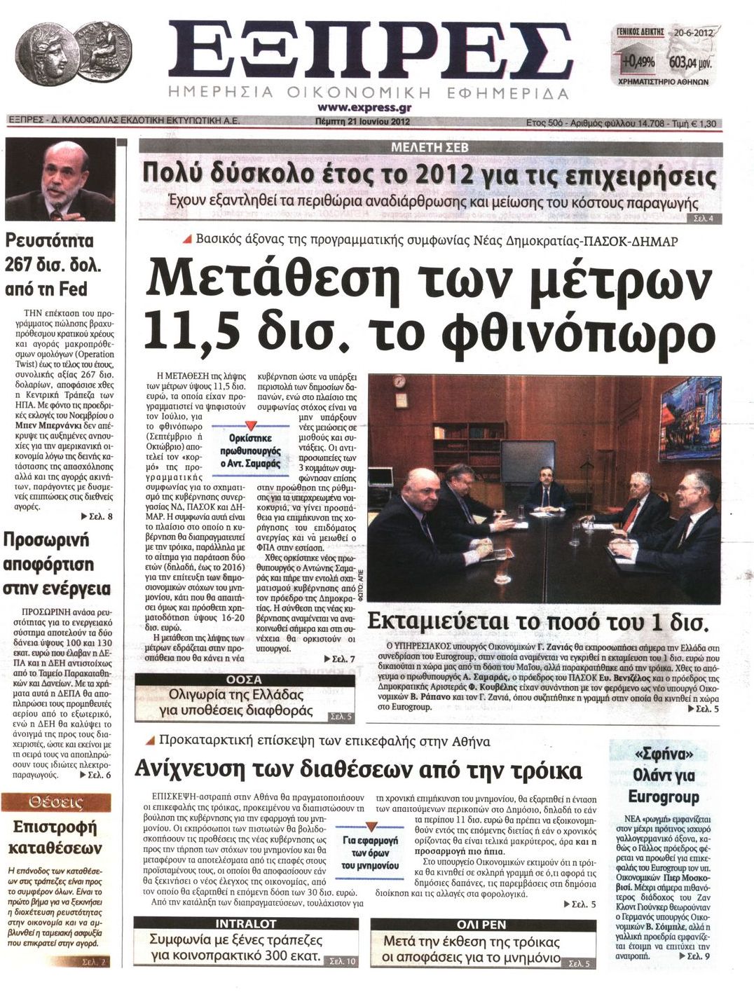 Τα οικονομικά πρωτοσέλιδα Enikos Newsroom 07:38, Πέμπτη 21 Ιουνίου 2012 Media ΕΦΗΜΕΡΙΔΕΣ ΠΡΩΤΟΣΕΛΙΔΑ Μοιράσου το: σχολίασε κι εσύ (0 σχόλια) Ακολουθήστε το enikos.gr στο Google News και μάθετε πρώτοι όλες τις ειδήσεις Δείτε όλες τις τελευταίες ειδήσεις από την Ελλάδα και τον Κόσμο στο enikos.gr Ειδήσεις Ροή Ειδήσεων 26 λεπτά πριν Ο Κυριάκος Μητσοτάκης ανοίγει τα χαρτιά του για τη Συνταγματική Αναθεώρηση – Στο τραπέζι και η μονιμότητα των δημοσίων υπαλλήλων 1 ώρα πριν Νέα Πέραμος: Τραύματα από πυροβόλο όπλο φέρει η σορός του άνδρα που εντοπίστηκε σε ρέμα – Εκτιμάται πως ανήκει σε 27χρονο αγνοούμενο 4 ώρες πριν Κακοκαιρία – Αγιόκαμπος: Πλημμύρισαν 10 σπίτια και μία επιχείρηση λόγω υπερχείλισης ρέματος – «Είχαμε κατολισθήσεις σε αρκετά σημεία του δήμου Αγιάς» 10 ώρες πριν Live η πορεία της κακοκαιρίας: Γέμισαν λασπόνερα δρόμοι και σοκάκια στα νησιά – Δεκάδες κλήσεις στην Πυροσβεστική στην Κεντρική Μακεδονία 1 ώρα πριν Ξέσπασμα Γιαννακόπουλου μετά την ήττα του Παναθηναϊκού: Να παραιτηθείτε όλοι σας, είστε ξεφτιλισμένοι 5 ώρες πριν Τα 3 ζώδια που προσελκύουν οικονομική επιτυχία έως τις 8 Φεβρουαρίου – «Το σύμπαν εξοφλεί χρέη 8 ετών και οι προσπάθειές σας αναγνωρίζονται» 10 ώρες πριν Γυναίκα που έχασε 14 κιλά σε 4 μήνες αποκαλύπτει: «Αυτές οι 5 συμβουλές με βοήθησαν να απαλλαγώ από το τοπικό πάχος» 2 ώρες πριν Κουζίνα: Πώς να οργανώσετε τον χώρο σας χωρίς να πετάξετε τίποτα – Έξυπνες αλλαγές που περιορίζουν την ακαταστασία 1 ώρα πριν Τα 11 ψέματα που λένε πάντα οι άνδρες για να σας πείσουν ότι έχετε εσείς το πρόβλημα 4 λεπτά πριν Αριθμολογία: Οι 3 «καταραμένες» διευθύνσεις σπιτιού – «Τα νούμερα αυτά συνδέονται με αναταραχές και αρνητική ενέργεια» 11 λεπτά πριν Ο Κασσελάκης στέλνει στην επιτροπή δεοντολογίας τον Θανάση Οικονόμου – Η ανάρτηση που οδήγησε στη σύγκρουση 19 λεπτά πριν Κακοκαιρία – Θεσσαλονίκη: Έπεσαν δέντρα και υπερχείλισαν χείμαρροι στη Θέρμη – Αποκλείστηκαν οι ιρλανδικές διαβάσεις 26 λεπτά πριν Ο Κυριάκος Μητσοτάκης ανοίγει τα χαρτιά του για τη Συνταγματική Αναθεώρηση – Στο τραπέζι και η μονιμότητα των δημοσίων υπαλλήλων 38 λεπτά πριν Συγκλονιστικές στιγμές στο ΠΑΟΚ – Πανσερραϊκός: Δάκρυα και εκατοντάδες στεφάνια – Δόνησε την Τούμπα το «αδέλφια ζείτε, εσείς μας οδηγείτε» ENIKOS NETWORK Γελάτε, κλαίτε ή ανοίγει η μύτη σας μετά τον οργασμό – Πού οφείλεται, σύμφωνα με μελέτη; Πώς να ξεφορτωθείτε τις σακούλες κάτω από τα μάτια – Tips που δουλεύουν ΔΕΗ: Σταθερό το πράσινο τιμολόγιο της για τον Φεβρουάριο – Τι λέει για τα κυμαινόμενα Πορτοκαλί τιμολόγια ρεύματος: Σήμερα η πρεμιέρα-Ποιους αφορά, τι δήλωσε ο Παπασταύρου Σπαζοκεφαλιά: Βρες πόσα 9 υπάρχουν στην εικόνα σε 8 δευτερόλεπτα Τεστ IQ: Μπορείς να εντοπίσεις τον αριθμό 999 ανάμεσα στα 99Q σε 15 δευτερόλεπτα; περισσότερα 17:13 , Κυριακή 01 Φεβρουαρίου 2026 Σία Κοσιώνη: Το πρώτο μήνυμα μετά την περιπέτεια με την υγεία της – «Τα καταφέραμε» Για έναν δύσκολο Ιανουάριο που της φάνηκε σαν ένας ολόκληρος χρόνος κάνει λόγο η Σία Κοσιώνη σ... 15:05 , Κυριακή 01 Φεβρουαρίου 2026 Από Ήλιο σε Ήλιο: Πότε κάνει τελικά πρεμιέρα η νέα σειρά της ΕΡΤ1; Το αρχικό πλάνο και η μετακίνηση της προβολής. Της Νάντιας Ρηγάτου Μπορεί η Μεγάλη Χίμαιρα να ... 15:04 , Κυριακή 01 Φεβρουαρίου 2026 Στο real taste & style που κυκλοφορεί με τη Realnews Στο real taste & style που κυκλοφορεί με τη Realnews. Τον Φεβρουάριο, η πατάτα βγαίνει μπρ... 13:47 , Κυριακή 01 Φεβρουαρίου 2026 Άγιος Έρωτας: Ο πατέρας Νικόλαος κα