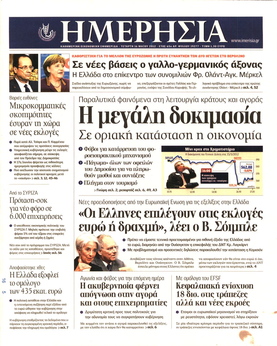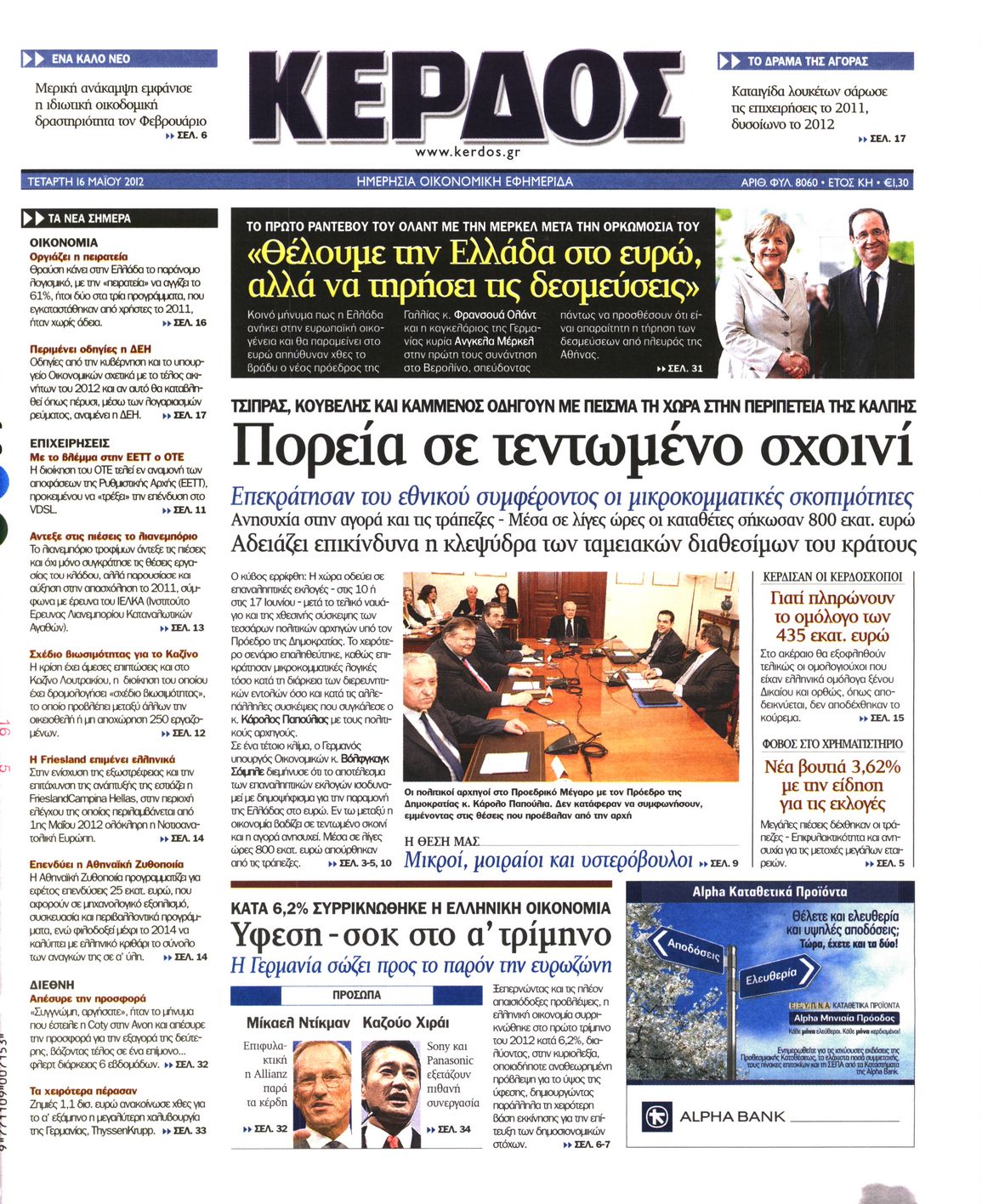 Τα οικονομικά πρωτοσέλιδα Enikos Newsroom 07:55, Τετάρτη 16 Μαΐου 2012 Media ΑΘΛΗΤΙΚΕΣ ΕΦΗΜΕΙΔΕΣ ΠΡΩΤΟΣΕΛΙΔΑ Μοιράσου το: σχολίασε κι εσύ (0 σχόλια) Ακολουθήστε το enikos.gr στο Google News και μάθετε πρώτοι όλες τις ειδήσεις Δείτε όλες τις τελευταίες ειδήσεις από την Ελλάδα και τον Κόσμο στο enikos.gr Ειδήσεις Ροή Ειδήσεων 26 λεπτά πριν ΣΥΡΙΖΑ: Διέγραψε τον ευρωβουλευτή Νίκο Παππά μετά την μήνυση δημοσιογράφου για ξυλοδαρμό 1 ώρα πριν Πώς στήθηκε η επιχείρηση «Ίπαλλος» που οδήγησε στη σύλληψη του «Έλληνα Εσκομπάρ» – «Ο πόλεμος ενάντια στους εμπόρους ναρκωτικών θα συνεχιστεί» 1 ώρα πριν Δίκη Χρυσής Αυγής: Την ενοχή και των 42 κατηγορουμένων ζητά η εισαγγελέας 1 ώρα πριν Κυψέλη: Στη φυλακή η 16χρονη που μαχαίρωσε συμμαθήτριά της 4 ώρες πριν Αμοργός: «Θα προσπαθήσω να το κάνω κάθε μέρα» – Ποιος είναι ο αγρότης που έστησε μόνος του το πρώτο μπλόκο στο νησί 2 ώρες πριν Τα 3 ζώδια που θα δουν τη ζωή τους να αλλάζει ριζικά το 2026 – «Όλα γίνονται καλύτερα σταδιακά» 7 ώρες πριν «Δεν είχα κλάψει από τότε που διαγνώστηκα με καρκίνο, ώσπου ένα τηλεφώνημα με έκανε να λυγίσω» – Η συγκλονιστική εξομολόγηση ενός άνδρα 3 ώρες πριν Ο σπάνιος σεισμός που έλυσε τα χέρια των επιστημόνων – Αποκάλυψε ακριβώς όσα αναζητούσαν 8 ώρες πριν 20 χρόνια τα Χριστούγεννα ξεκινούν στα Public με μεγάλη ποικιλία σε δώρα! 3 λεπτά πριν Ελένη Βασάρα: Ανοιχτό το ενδεχόμενο καθαίρεσης της Καρυστιανού από την προεδρία του Συλλόγου Θυμάτων Τεμπών – Η ανάρτηση του Δημήτρη Πλακιά 8 λεπτά πριν Μαργαρίτα Θεοδωράκη για Γιώργο Χατζιδάκι: Προσβλητικό το εξώδικο – Ο Μίκης έγραψε «απαγορεύεται το απαγορεύεται» 14 λεπτά πριν Ρόδος: Ανήλικος που βρισκόταν σε σχολική εκδρομή μεταφέρθηκε μεθυσμένος στο νοσοκομείο – 2 συλλήψεις 21 λεπτά πριν Γέννησε η Ευάννα Ζουμπούρογλου: «Είμαστε και οι δύο πολύ καλά – Είναι η πιο όμορφη όλου του κόσμου» 26 λεπτά πριν ΣΥΡΙΖΑ: Διέγραψε τον ευρωβουλευτή Νίκο Παππά μετά την μήνυση δημοσιογράφου για ξυλοδαρμό ENIKOS NETWORK Γιατί αναζητούμε τα Χριστούγεννα όλο και νωρίτερα; Ποιοι οι ψυχολογικοί και οι συναισθηματικοί λόγοι Σοβαροί κίνδυνοι από τη λάθος χορήγηση φαρμάκου για τις αιμορραγίες-Συστάσεις προς τους γιατρούς Δάνεια σε ελβετικό φράγκο: Αύριο η κατάθεση της τροπολογίας στη Βουλή – Όλες οι λεπτομέρειες Επίδομα παιδιού: Πότε θα δοθεί η τελευταία δόση για το 2025 από τον ΟΠΕΚΑ και τι πρέπει να γνωρίζετε Χαρτογραφώντας το «σημείο χωρίς επιστροφή»: Για πρώτη φορά αποκαλύπτεται με λεπτομέρεια το ακανθώδες όριο της ατμόσφαιρας τ... Η Google καταργεί τη λειτουργία «dark web report» – Πώς θα μπορούν οι χρήστες να διαγράφουν τα δεδομένα τους περισσότερα 12:35 , Τετάρτη 17 Δεκεμβρίου 2025 Μίρκα Παπακωνσταντίνου: «Δεν ήμουν αισιόδοξη για τα νούμερα – Είμαι ρεαλίστρια» Στα γυρίσματα του εορταστικού επεισοδίου της αγαπημένης σειράς “Το Σόι Σου”, βρέθηκε η κάμερα ... 12:12 , Τετάρτη 17 Δεκεμβρίου 2025 Ακούστε την εκπομπή του Νίκου Χατζηνικολάου 17/12/2025 Ακούστε την εκπομπή του Νίκου Χατζηνικολάου στον ραδιοφωνικό σταθμό RealFm 97,8, την Τετάρτη 1... 11:35 , Τετάρτη 17 Δεκεμβρίου 2025 Home Alone: Το σπίτι της ταινίας θα ανακαινιστεί – Επιστροφή στην αισθητική της δεκαετίας του ’90 Οι νέοι ιδιοκτήτες του πραγματικού σπιτιού που παρουσιάζεται στην κλασική ταινία του 1990 «Hom... 11:25 , Τετάρτη 17 Δεκεμβρίου 2025 Grand Hotel: Απόψε το τελευταίο επεισόδιο της χρονιάς – Όλα τα μυστικά μένουν εδώ Το τελευταίο επεισόδιο της χρονιάς της σειράς «Grand Hotel» θα προβληθεί απ
