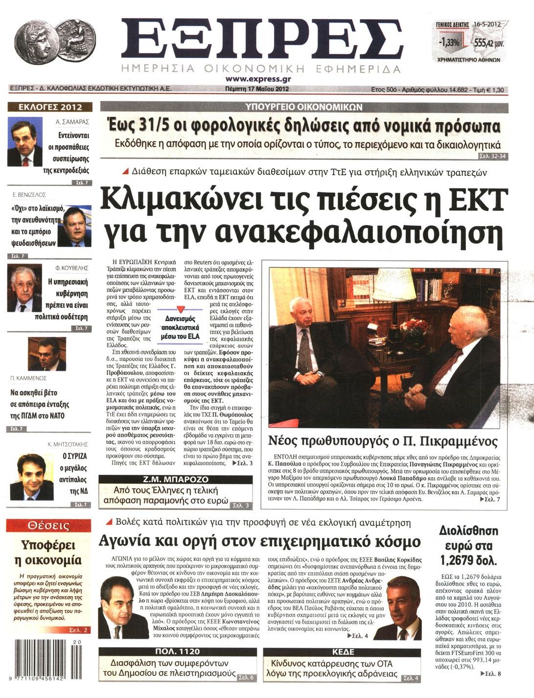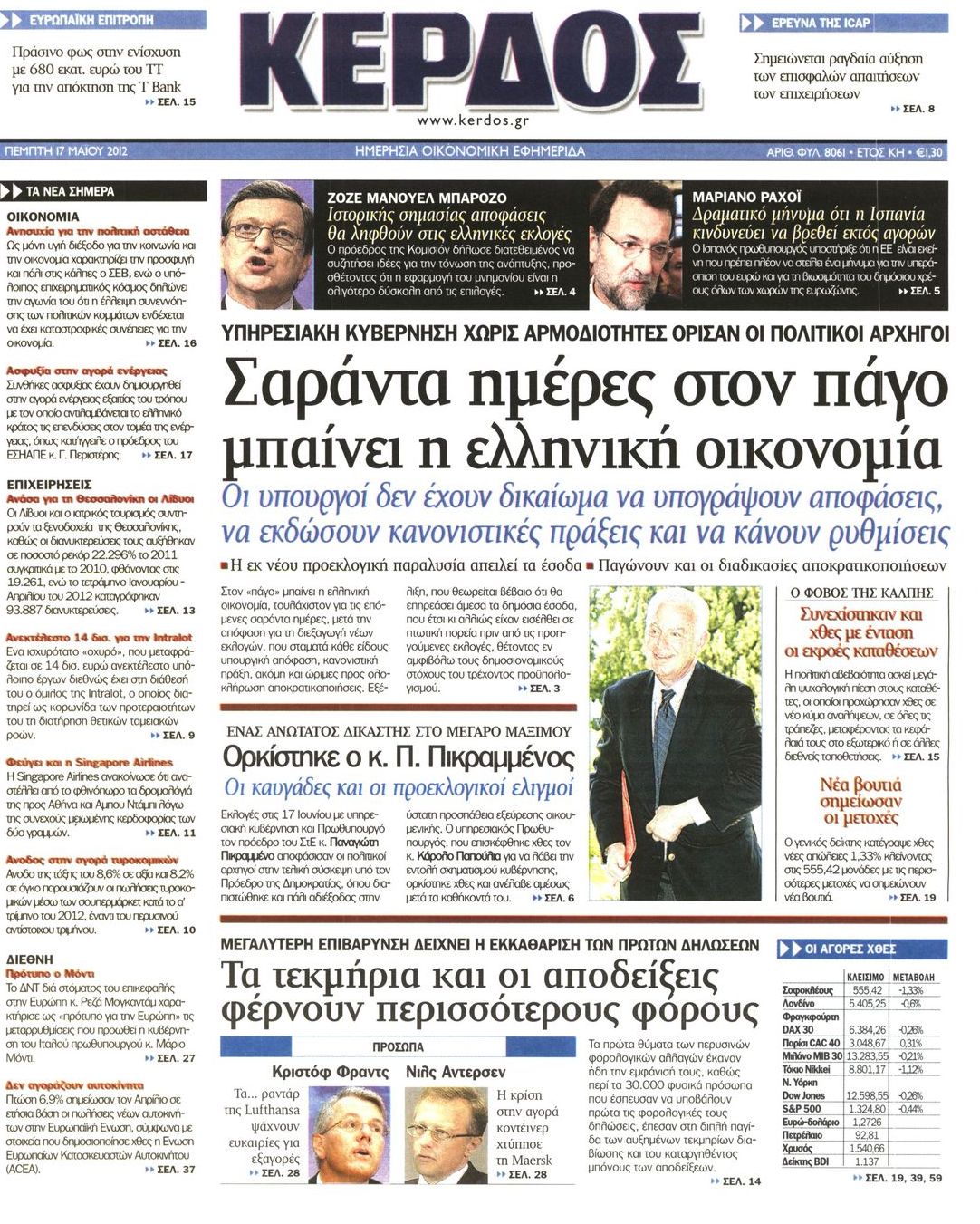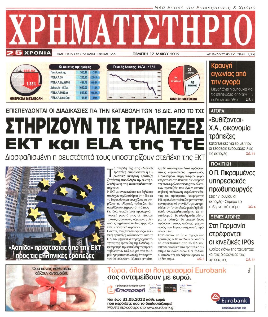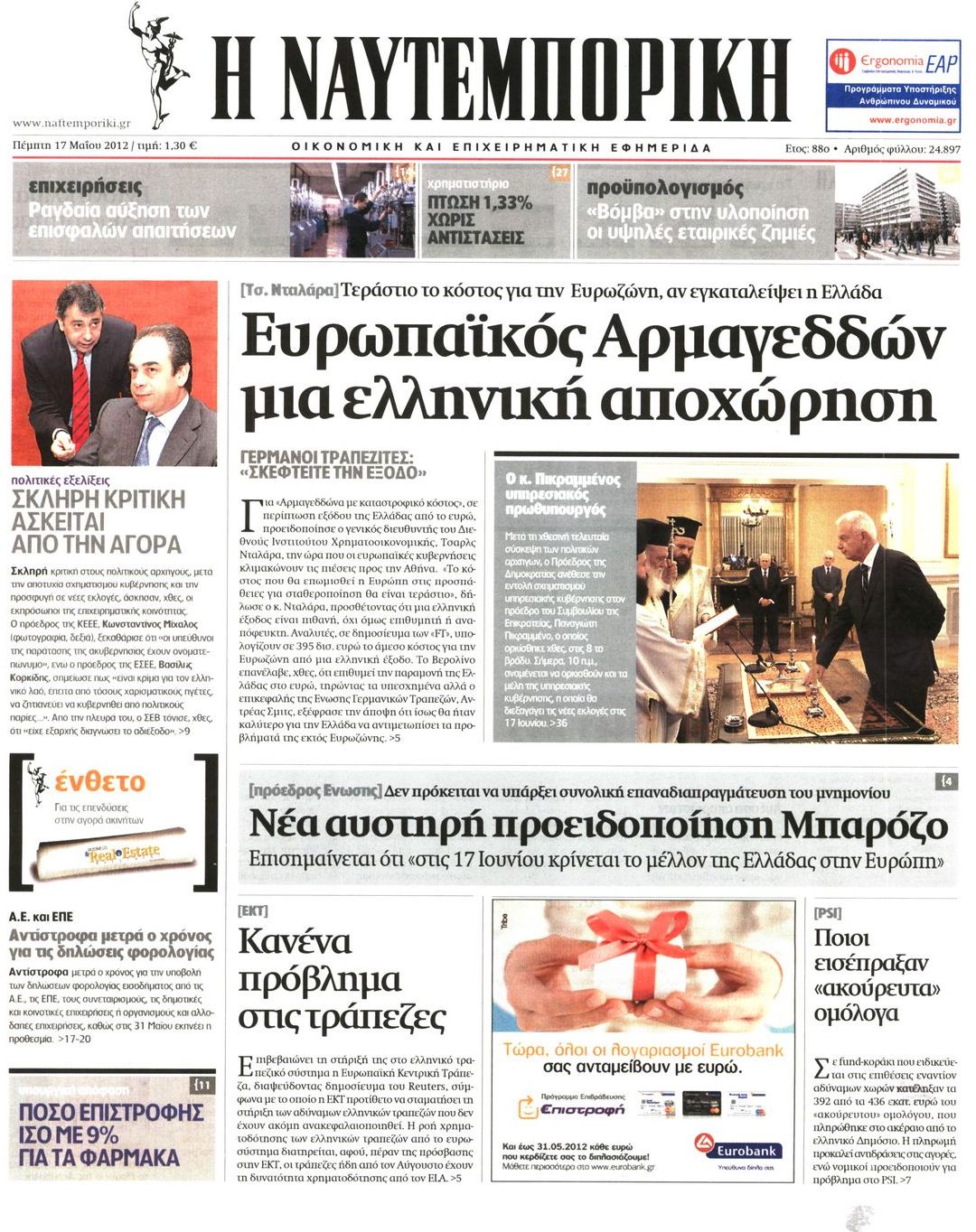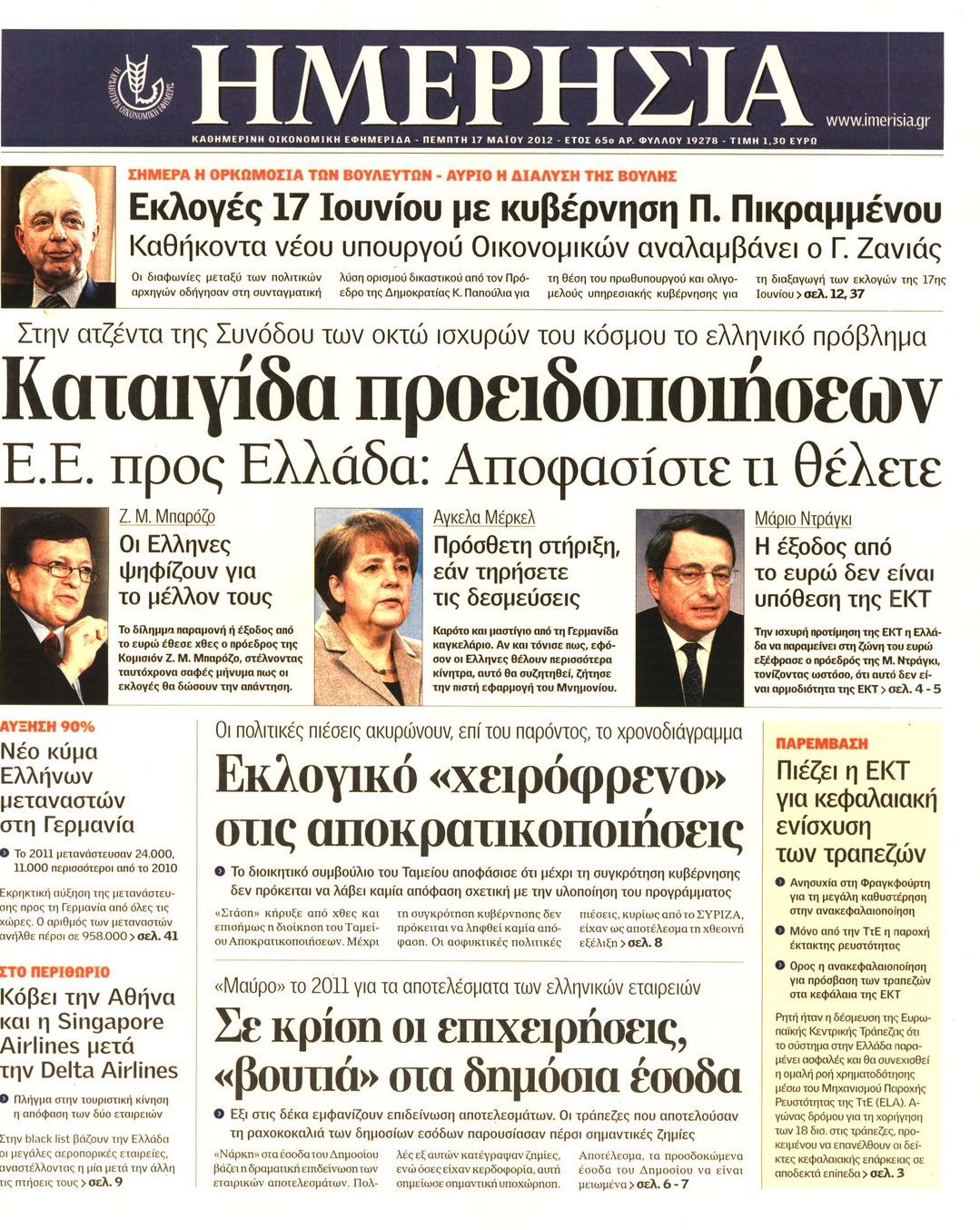 Τα οικονομικά πρωτοσέλιδα Enikos Newsroom 07:32, Πέμπτη 17 Μαΐου 2012 Media ΕΦΗΜΕΡΙΔΕΣ ΠΡΩΤΟΣΕΛΙΔΑ Μοιράσου το: σχολίασε κι εσύ (0 σχόλια) Ακολουθήστε το enikos.gr στο Google News και μάθετε πρώτοι όλες τις ειδήσεις Δείτε όλες τις τελευταίες ειδήσεις από την Ελλάδα και τον Κόσμο στο enikos.gr Ειδήσεις Ροή Ειδήσεων 6 ώρες πριν Μητσοτάκης: Αναγκαία η μεταρρύθμιση του πρωτογενούς τομέα – Τα 6 νέα μέτρα για το στεγαστικό και οι αναφορές σε «Ιθάκη» και «πολιτικούς του καναπέ» 5 ώρες πριν Δάνεια σε ελβετικό φράγκο: Τα βασικά σημεία της ρύθμισης – ανάσας για 40.000 δανειολήπτες – Αναλυτικός οδηγός με ερωτήσεις και απαντήσεις 4 ώρες πριν Κυψέλη: Εξιτήριο πήρε η 14χρονη μαθήτρια που μαχαιρώθηκε από την 16χρονη σε σχολείο – «Θέλω να βοηθήσω το παιδί, έχει μπλέξει με κακές παρέες» 4 ώρες πριν Τραμπ: Γιατί κατέθεσε τώρα την αγωγή κατά του BBC – Πώς η κίνησή του εξυπηρετεί το νέο δόγμα του για «αντίσταση» στην Ευρώπη, υπέρ των συντηρητικών 5 ώρες πριν ΟΠΕΚΕΠΕ – Παράνομες επιδοτήσεις: Ελεύθεροι με περιοριστικούς όρους και οι 7 κατηγορούμενοι που απολογήθηκαν σήμερα 4 ώρες πριν Ανακαλύφθηκε βυθισμένη πέτρινη κατασκευή ανοιχτά της Κριμαίας – Αποτελεί μέρος αρχαίας ελληνικής αποικίας 5 ώρες πριν Ύπνος: Αυτό μπορεί να είναι το χειρότερο λάθος για το βιολογικό ρολόι σας, σύμφωνα με ειδικό 6 ώρες πριν Αριθμολογία: Οι άνθρωποι που έχουν γεννηθεί αυτές τις 3 ημερομηνίες, προσελκύουν μεγάλη τύχη πριν από το τέλος του 2025 8 ώρες πριν Οι 7 συμπεριφορές που μαρτυρούν ότι ένας άνδρας επενδύει μακροπρόθεσμα σε μια σχέση 15 λεπτά πριν Νίκος Πλακιάς: Η Μαρία Καρυστιανού πλέον θα κρίνεται ως πολιτικός και όχι ως συγγενής 30 λεπτά πριν Ντόναλντ Τραμπ: Κάλυψε απόλυτα την προσωπάρχη του Λευκού Οίκου: «Ναι, έχω προσωπικότητα αλκοολικού» 45 λεπτά πριν ΗΠΑ: Στην αγορά δύο Boeing 747-8 προχωρά η Πολεμική Αεροπορία για την υποστήριξη του προεδρικού στόλου 60 λεπτά πριν Ιταλία: Λεωφορείο έπεσε πάνω σε βιτρίνα καταστήματος στο Τορίνο – Τρεις τραυματίες 1 ώρα πριν Χαλάνδρι: Καθηγητής έπιασε με κόφτη τα δάχτυλα μαθητή σε κατάληψη – «Μου έχεις πιάσει το χέρι» ENIKOS NETWORK Αίτημα ΙΣΑ για την εξαίρεση των προσωπικών γιατρών από τις κατ’ οίκον επισκέψεις Η σκανδιναβική μέθοδος στον ύπνο που μπορεί να σώσει έναν γάμο Πιερρακάκης: Ο προϋπολογισμός συμβάλλει ουσιαστικά στην ενίσχυση της αγοραστικής δύναμης της πλειονότητας των εργαζομένων e-ΕΦΚΑ: Παρατείνεται η προθεσμία για την υποβολή ΑΠΔ – Ποιους αφορά Σύγχρονος Νοστράδαμος: Προειδοποιεί για «μεγάλο γεγονός» τους επόμενους μήνες που θα συγκλονίσει τη Βρετανία και τον κόσμο Τεστ παρατηρητικότητας: Μπορείτε να βρείτε τις 3 διαφορές στις εικόνες με έναν πιγκουίνο σε 14 δευτερόλεπτα περισσότερα 20:06 , Τρίτη 16 Δεκεμβρίου 2025 Ο ΣΚΑΙ καταγγέλλει τον ΕΚΚΟΜΕΔ Επιστολή με την οποία καταγράφει την έντονη διαμαρτυρία του προς τον διευθύνοντα σύμβουλο του... 17:40 , Τρίτη 16 Δεκεμβρίου 2025 Eurovision: Στις 4 Ιανουαρίου αποκαλύπτονται τα 28 τραγούδια του ελληνικού τελικού Η αγωνία τελειώνει, η γιορτή της Eurovision αρχίζει στην ΕΡΤ από τις πρώτες ημέρες της νέας χρ... 17:09 , Τρίτη 16 Δεκεμβρίου 2025 Alter Ego Media: Βαθύτατη θλίψη και ειλικρινή συλλυπητήρια για την απώλεια της Ειρήνης Μαρινάκη Τη βαθύτατη θλίψη και τα ειλικρινή συλλυπητήριά της εκφράζει η Alter Ego Media για τον θάνατο ... 13:00 , Τρίτη 16 Δεκεμβρίου 2025 «Στο Παρά Πέντε – 20 Χρόνια Μετά»: Κυκλοφόρησε το τρέιλερ του επετειακού επεισοδίου της θρυλικής σειράς – Πότε θα π