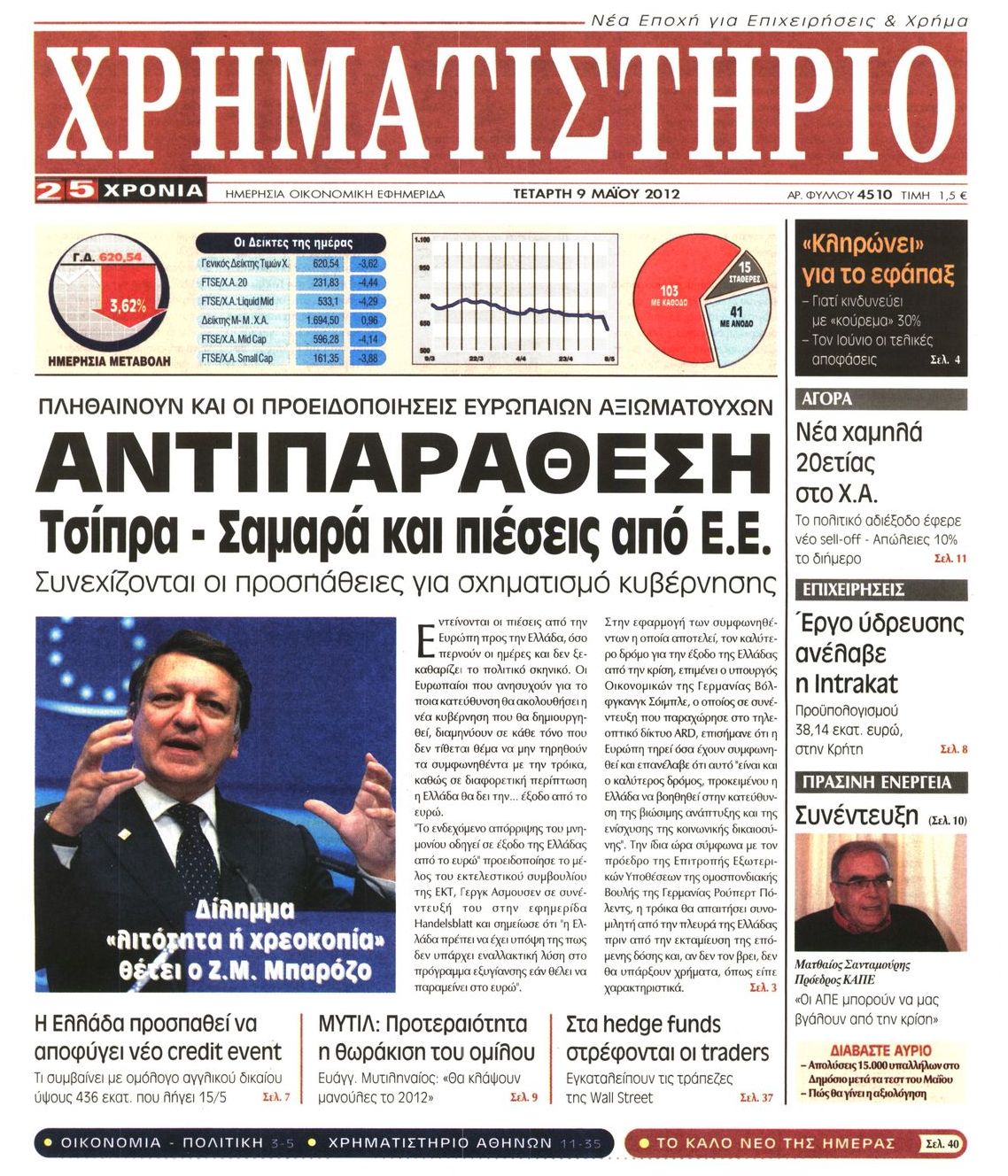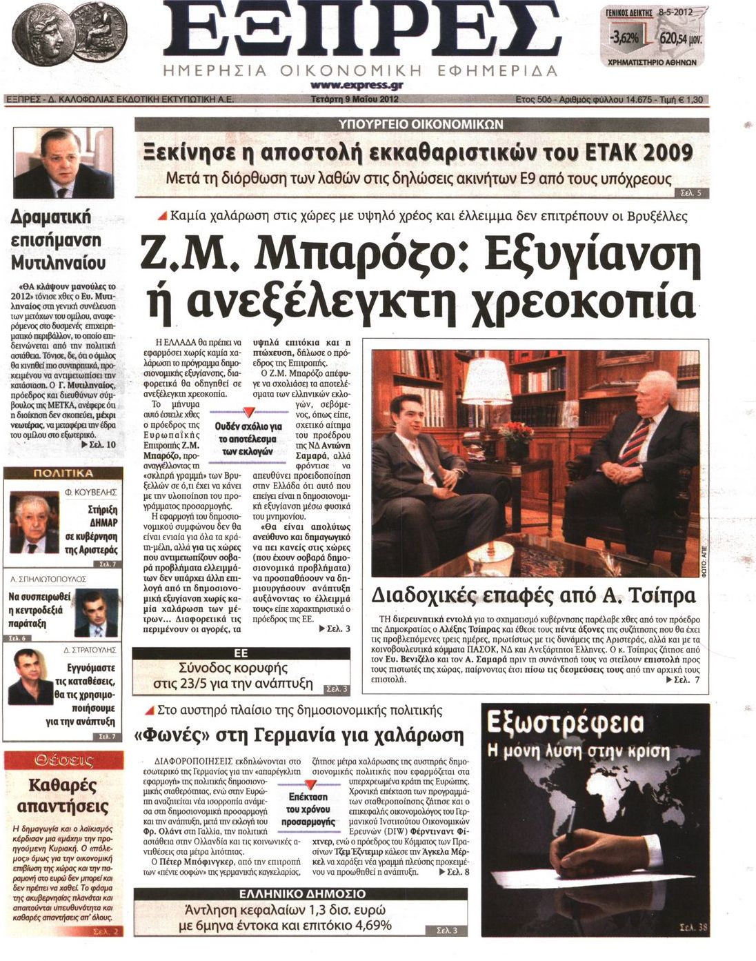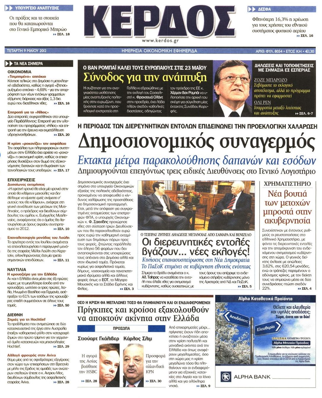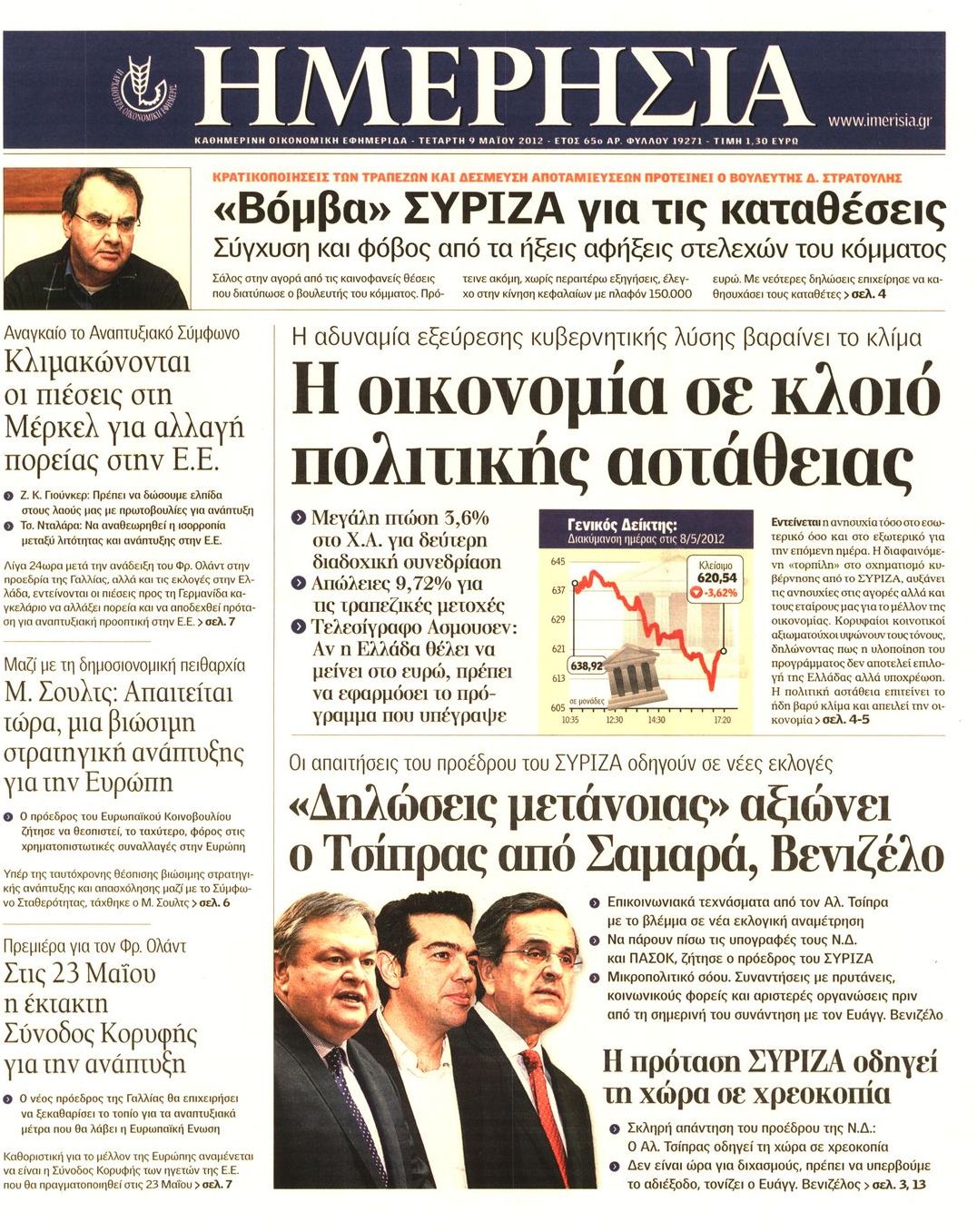 Τα οικονομικά πρωτοσέλιδα Enikos Newsroom 07:53, Τετάρτη 09 Μαΐου 2012 Media ΕΦΗΜΕΡΙΔΕΣ ΠΡΩΤΟΣΕΛΙΔΑ Μοιράσου το: σχολίασε κι εσύ (0 σχόλια) Ακολουθήστε το enikos.gr στο Google News και μάθετε πρώτοι όλες τις ειδήσεις Δείτε όλες τις τελευταίες ειδήσεις από την Ελλάδα και τον Κόσμο στο enikos.gr Ειδήσεις Ροή Ειδήσεων 3 ώρες πριν Μητσοτάκης: Αναγκαία η μεταρρύθμιση του πρωτογενούς τομέα – Τα 6 νέα μέτρα για το στεγαστικό και οι αναφορές σε «Ιθάκη» και «πολιτικούς του καναπέ» 2 ώρες πριν Δάνεια σε ελβετικό φράγκο: Τα βασικά σημεία της ρύθμισης – ανάσας για 40.000 δανειολήπτες – Αναλυτικός οδηγός με ερωτήσεις και απαντήσεις 1 ώρα πριν Κυψέλη: Εξιτήριο πήρε η 14χρονη μαθήτρια που μαχαιρώθηκε από την 16χρονη σε σχολείο – «Θέλω να βοηθήσω το παιδί, έχει μπλέξει με κακές παρέες» 1 ώρα πριν Τραμπ: Γιατί κατέθεσε τώρα την αγωγή κατά του BBC – Πώς η κίνησή του εξυπηρετεί το νέο δόγμα του για «αντίσταση» στην Ευρώπη, υπέρ των συντηρητικών 2 ώρες πριν ΟΠΕΚΕΠΕ – Παράνομες επιδοτήσεις: Ελεύθεροι με περιοριστικούς όρους και οι 7 κατηγορούμενοι που απολογήθηκαν σήμερα 1 ώρα πριν Ανακαλύφθηκε βυθισμένη πέτρινη κατασκευή ανοιχτά της Κριμαίας – Αποτελεί μέρος αρχαίας ελληνικής αποικίας 2 ώρες πριν Ύπνος: Αυτό μπορεί να είναι το χειρότερο λάθος για το βιολογικό ρολόι σας, σύμφωνα με ειδικό 3 ώρες πριν Αριθμολογία: Οι άνθρωποι που έχουν γεννηθεί αυτές τις 3 ημερομηνίες, προσελκύουν μεγάλη τύχη πριν από το τέλος του 2025 5 ώρες πριν Οι 7 συμπεριφορές που μαρτυρούν ότι ένας άνδρας επενδύει μακροπρόθεσμα σε μια σχέση 18 λεπτά πριν Ρομπ Ράινερ: Για ανθρωποκτονίες από πρόθεση κατηγορείται ο γιος του σκηνοθέτη 33 λεπτά πριν Χανιά: Συνελήφθη 22χρονος που έκρυβε 10 κιλά κάνναβης σε αποθήκη – Στη «διακίνηση» η μητέρα και η αδελφή του 44 λεπτά πριν Ολυμπιακός – Βαλένθια 92-99: Τον «δάγκωσαν» οι «νυχτερίδες» 56 λεπτά πριν Δούκισσα Νομικού: Ταξίδι στην Νέα Υόρκη για το μοντέλο – Οι φωτογραφίες στο Instagram 1 ώρα πριν Τραμπ: Γιατί κατέθεσε τώρα την αγωγή κατά του BBC – Πώς η κίνησή του εξυπηρετεί το νέο δόγμα του για «αντίσταση» στην Ευρώπη, υπέρ των συντηρητικών ENIKOS NETWORK Αίτημα ΙΣΑ για την εξαίρεση των προσωπικών γιατρών από τις κατ’ οίκον επισκέψεις Η σκανδιναβική μέθοδος στον ύπνο που μπορεί να σώσει έναν γάμο Πιερρακάκης: Ο προϋπολογισμός συμβάλλει ουσιαστικά στην ενίσχυση της αγοραστικής δύναμης της πλειονότητας των εργαζομένων e-ΕΦΚΑ: Παρατείνεται η προθεσμία για την υποβολή ΑΠΔ – Ποιους αφορά Σύγχρονος Νοστράδαμος: Προειδοποιεί για «μεγάλο γεγονός» τους επόμενους μήνες που θα συγκλονίσει τη Βρετανία και τον κόσμο Τεστ παρατηρητικότητας: Μπορείτε να βρείτε τις 3 διαφορές στις εικόνες με έναν πιγκουίνο σε 14 δευτερόλεπτα περισσότερα 20:06 , Τρίτη 16 Δεκεμβρίου 2025 Ο ΣΚΑΙ καταγγέλλει τον ΕΚΚΟΜΕΔ Επιστολή με την οποία καταγράφει την έντονη διαμαρτυρία του προς τον διευθύνοντα σύμβουλο του... 17:40 , Τρίτη 16 Δεκεμβρίου 2025 Eurovision: Στις 4 Ιανουαρίου αποκαλύπτονται τα 28 τραγούδια του ελληνικού τελικού Η αγωνία τελειώνει, η γιορτή της Eurovision αρχίζει στην ΕΡΤ από τις πρώτες ημέρες της νέας χρ... 17:09 , Τρίτη 16 Δεκεμβρίου 2025 Alter Ego Media: Βαθύτατη θλίψη και ειλικρινή συλλυπητήρια για την απώλεια της Ειρήνης Μαρινάκη Τη βαθύτατη θλίψη και τα ειλικρινή συλλυπητήριά της εκφράζει η Alter Ego Media για τον θάνατο ... 13:00 , Τρίτη 16 Δεκεμβρίου 2025 «Στο Παρά Πέντε – 20 Χρόνια Μετά»: Κυκλοφόρησε το τρέιλερ του επετειακού επεισοδίου της θρυλικής σειράς – Πότ