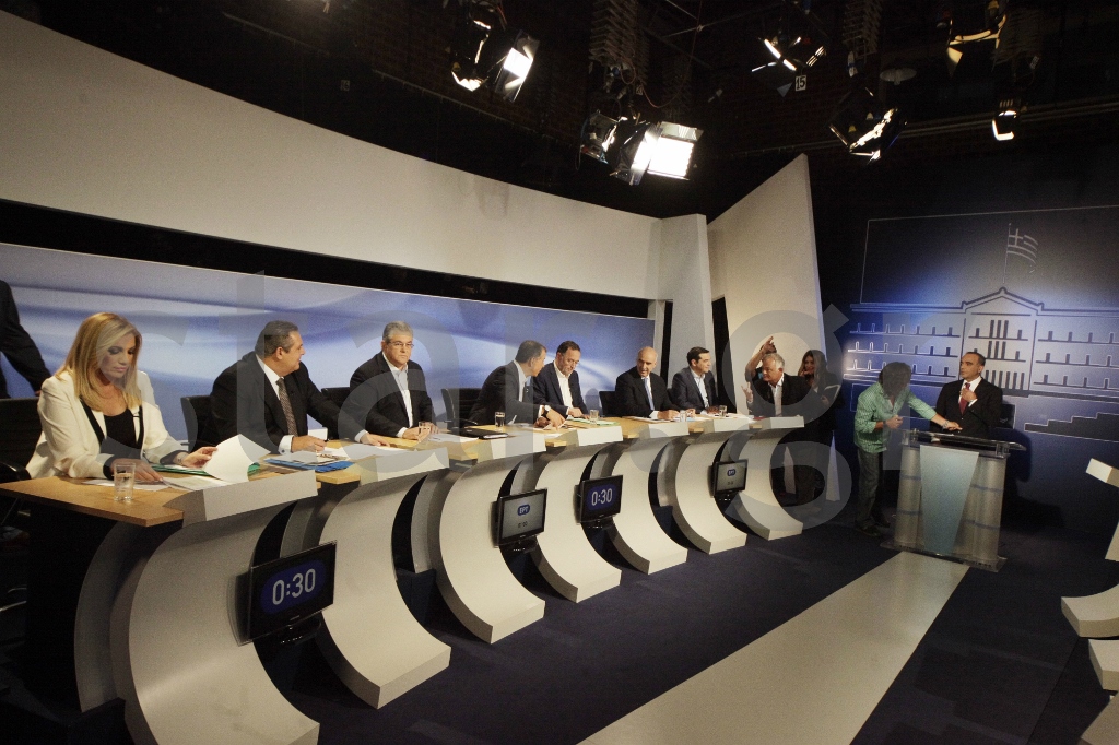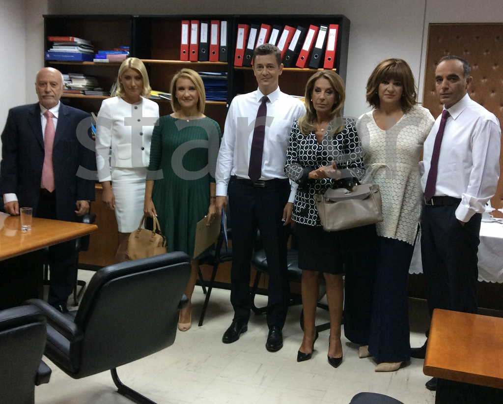 Λίγο πριν βγουν στο πλατό του debate, oι δημοσιογράφοι και ο συντονιστής, ο Πάνος Χαρίτος, ετοιμάστηκαν και βρέθηκαν όλοι μαζί στο γραφείο του γενικού διευθυντή της ΕΡΤ Κώστα Χαλβατζάκη.