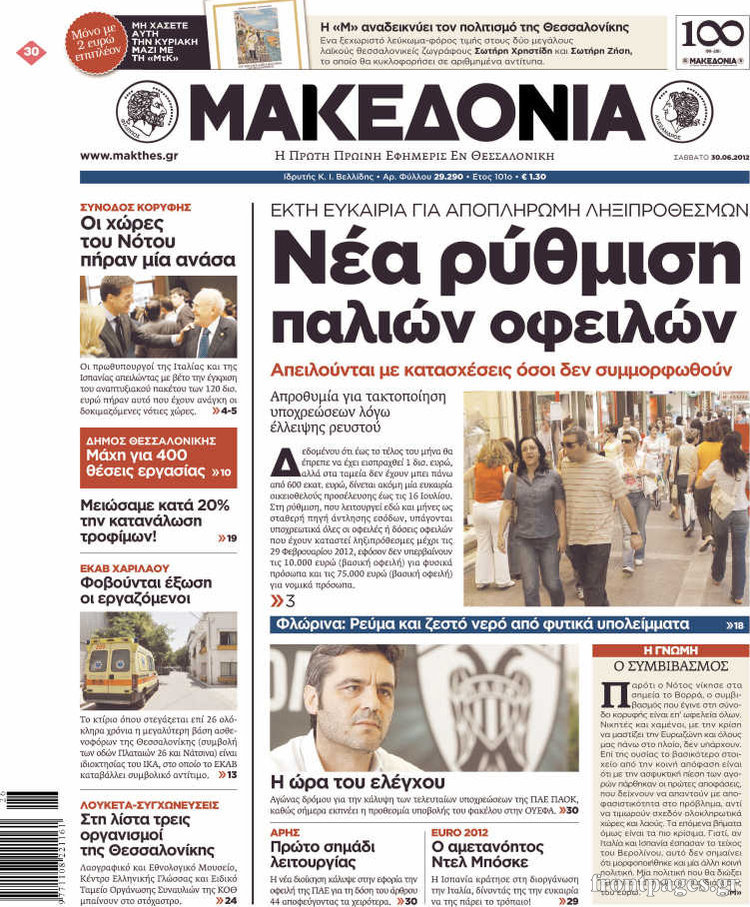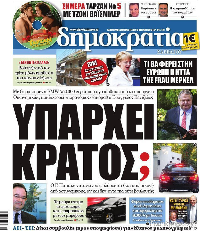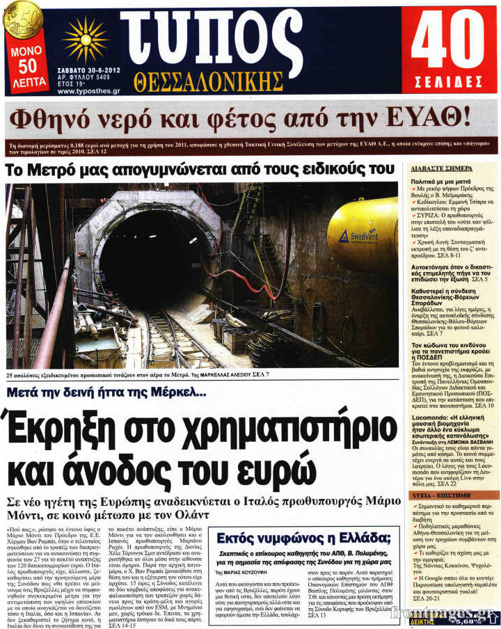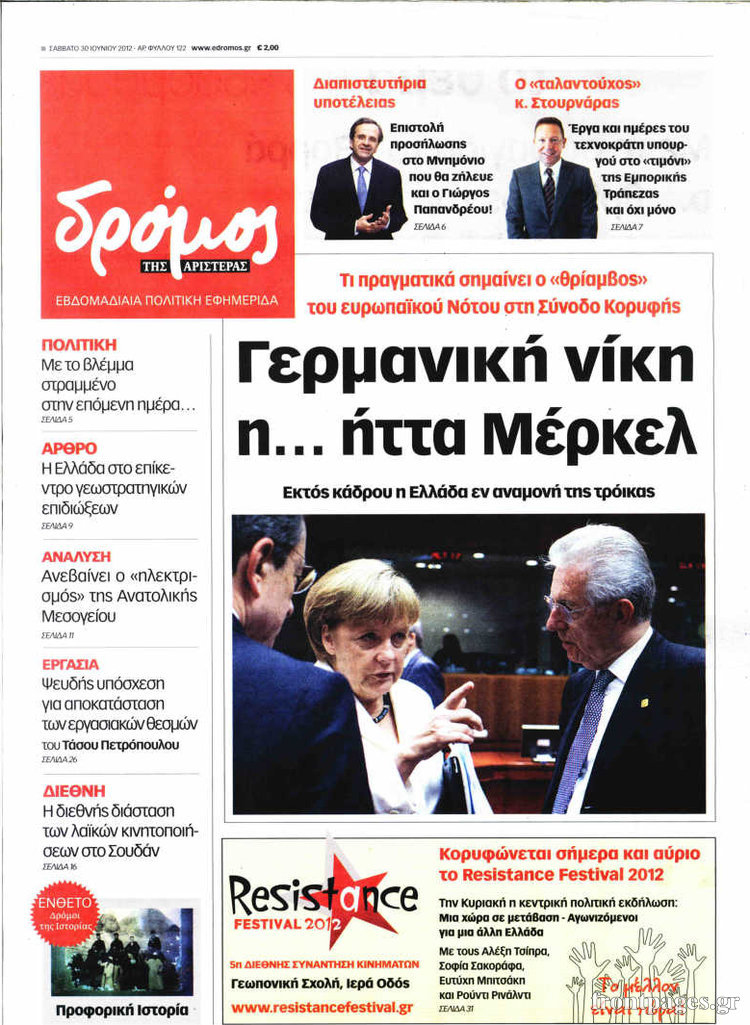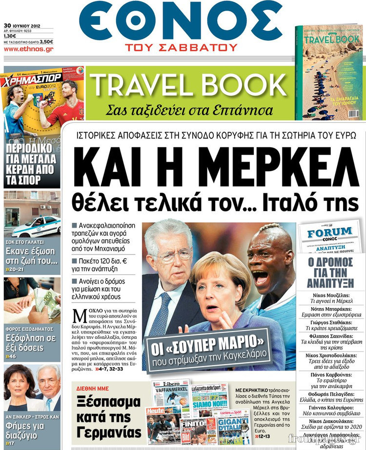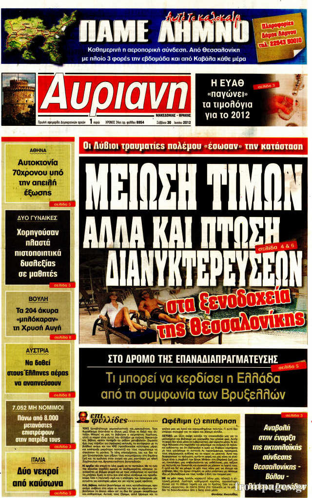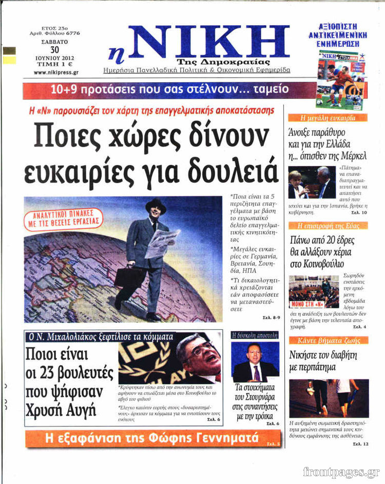 Τα πρωτοσέλιδα σήμερα Enikos Newsroom 09:17, Σάββατο 30 Ιουνίου 2012 Media ΕΦΗΜΕΡΙΔΕΣ Μοιράσου το: σχολίασε κι εσύ (0 σχόλια) Ακολουθήστε το enikos.gr στο Google News και μάθετε πρώτοι όλες τις ειδήσεις Δείτε όλες τις τελευταίες ειδήσεις από την Ελλάδα και τον Κόσμο στο enikos.gr Ειδήσεις Ροή Ειδήσεων 4 ώρες πριν Χριστούγεννα στα μπλόκα: Επιμένουν στις κινητοποιήσεις τους οι αγρότες – Ανοίγουν τα διόδια το Σαββατοκύριακο 5 ώρες πριν Ουκρανία: Η άνευ προηγουμένου επίθεση σε ρωσικό τάνκερ στη Μεσόγειο και το μήνυμα προς στον Πούτιν – Το «μακρύ χέρι» του Κιέβου 4 ώρες πριν Πούτιν: Τα μηνύματα σε Ευρώπη και ΝΑΤΟ από το μαραθώνιο «σόου» του – Η απαίτηση για «σεβασμό» και η ειρήνη «με τους όρους» της Μόσχας 5 ώρες πριν Τραμπ: Δεν αποκλείει την πιθανότητα ενός πολέμου στη Βενεζουέλα – «Ο Μαδούρο ξέρει καλύτερα από τον καθένα τι ακριβώς θέλω» 6 ώρες πριν Συνεχίζει να προκαλεί ο Μίτσκοσκι: «Για μένα το όνομα Μακεδονία είναι ιερό» 4 ώρες πριν Ανακαλύφθηκαν αρχαία χρυσά νομίσματα 2.200 ετών που απεικονίζουν τον θεό Απόλλωνα – Η άγνωστη σύνδεση με τον Φίλιππο Β΄ της Μακεδονίας 5 ώρες πριν Ύπνος: Μια κρυφή κατάσταση του εγκεφάλου πριν από τον ύπνο μπορεί να είναι το “κλειδί” για υψηλή ευφυΐα και δημιουργικότητα 6 ώρες πριν Αριθμολογία: Οι άνθρωποι που έχουν γεννηθεί αυτές τις 4 ημερομηνίες, συχνά παρεξηγούνται – «Η καλοσύνη τους κρύβει τεράστια δύναμη» 7 ώρες πριν Ξεχάστε το καθάρισμα το Σαββατοκύριακο: Ο «κανόνας των 20 λεπτών» που θα σας λύσει τα χέρια 16 λεπτά πριν GNTM: Η Ξένια Τσίρκοβα αναδείχθηκε μεγάλη νικήτρια και πήρε τις 50.000 ευρώ – Ποιος βρέθηκε σε απόσταση αναπνοής; 31 λεπτά πριν Θεσσαλονίκη: Εξαφανίστηκε 13χρονος από χώρο φιλοξενίας ασυνόδευτων ανηλίκων στο Ωραιόκαστρο 42 λεπτά πριν Ντόναλντ Τραμπ: «Πολύ βαριά αντίποινα» στη Συρία – «Πλήττουμε πολύ δυνατά οχυρά του Ισλαμικού Κράτους» 56 λεπτά πριν Εξάρχεια: Ένταση με μολότοφ, χημικά και κρότου λάμψης 1 ώρα πριν ΗΠΑ: Τραγωδία στην Αλαμπάμα – Σκότωσε την δημοσιογράφο σύζυγό του και αυτοκτόνησε μπροστά στον 3χρονο γιο τους ENIKOS NETWORK Το ΕΚΑΒ τιμήθηκε από την Ακαδημία Αθηνών για τα 40 χρόνια προσφοράς του Έχετε πραγματικά μεγάλη καρδιά; 10 χαρακτηριστικά όσων έχουν καλοσύνη Αναστολή μέτρων αναγκαστικής εκτέλεσης για κτηνοτρόφους που πλήττονται από την ευλογιά των αιγοπροβάτων Πλήρης επάρκεια προϊόντων στις λαϊκές της Αττικής, παρά τις αγροτικές κινητοποιήσεις – Τι απαντούν οι πωλητές Χαρτογραφώντας το «σημείο χωρίς επιστροφή»: Για πρώτη φορά αποκαλύπτεται με λεπτομέρεια το ακανθώδες όριο της ατμόσφαιρας τ... Η Google καταργεί τη λειτουργία «dark web report» – Πώς θα μπορούν οι χρήστες να διαγράφουν τα δεδομένα τους περισσότερα 02:50 , Σάββατο 20 Δεκεμβρίου 2025 GNTM: Η Ξένια Τσίρκοβα αναδείχθηκε μεγάλη νικήτρια και πήρε τις 50.000 ευρώ – Ποιος βρέθηκε σε απόσταση αναπνοής; Με φαντασμαγορικό τρόπο ολοκληρώθηκε το βράδυ της Παρασκευής ο μεγάλος τελικός του GNTM, μέσα ... 22:42 , Παρασκευή 19 Δεκεμβρίου 2025 Γιώργος Γιαννόπουλος για “Το σόι σου”: “Είναι ευτυχία και ευλογία αυτή η σειρά” «Είναι ευτυχία και ευλογία η συγκυρία αυτής της σειράς», θα πει ο Γιώργος Γιαννόπουλος -ο αγαπ... 20:37 , Παρασκευή 19 Δεκεμβρίου 2025 Don’t Forget The Lyrics: Η Έλλη Κοκκίνου υποδέχεται 4 παίκτες που θα κάνουν τα πάντα για να μη χάσουν ούτε… μισή λέξη από τους στίχους Το «Don’t Forget The Lyrics» επιστρέφει απόψε, Παρασκευή 19 Δεκεμβρίου, στις 21:00 με νέο επει... 19:31 , Παρασκευή 19 Δεκεμβρίου 2025 GNTM: Απόψε 