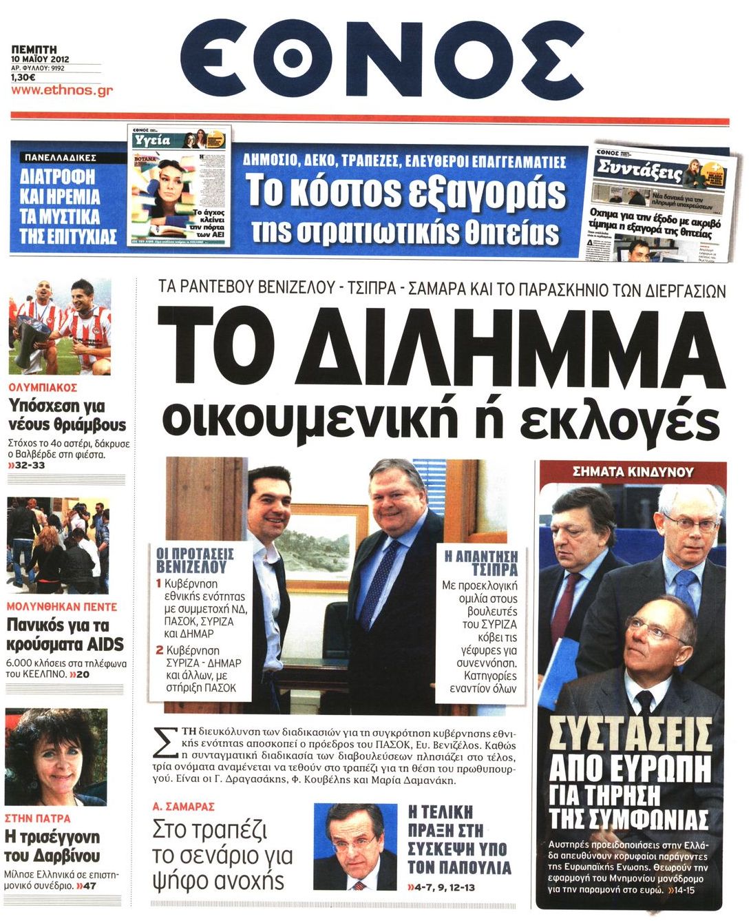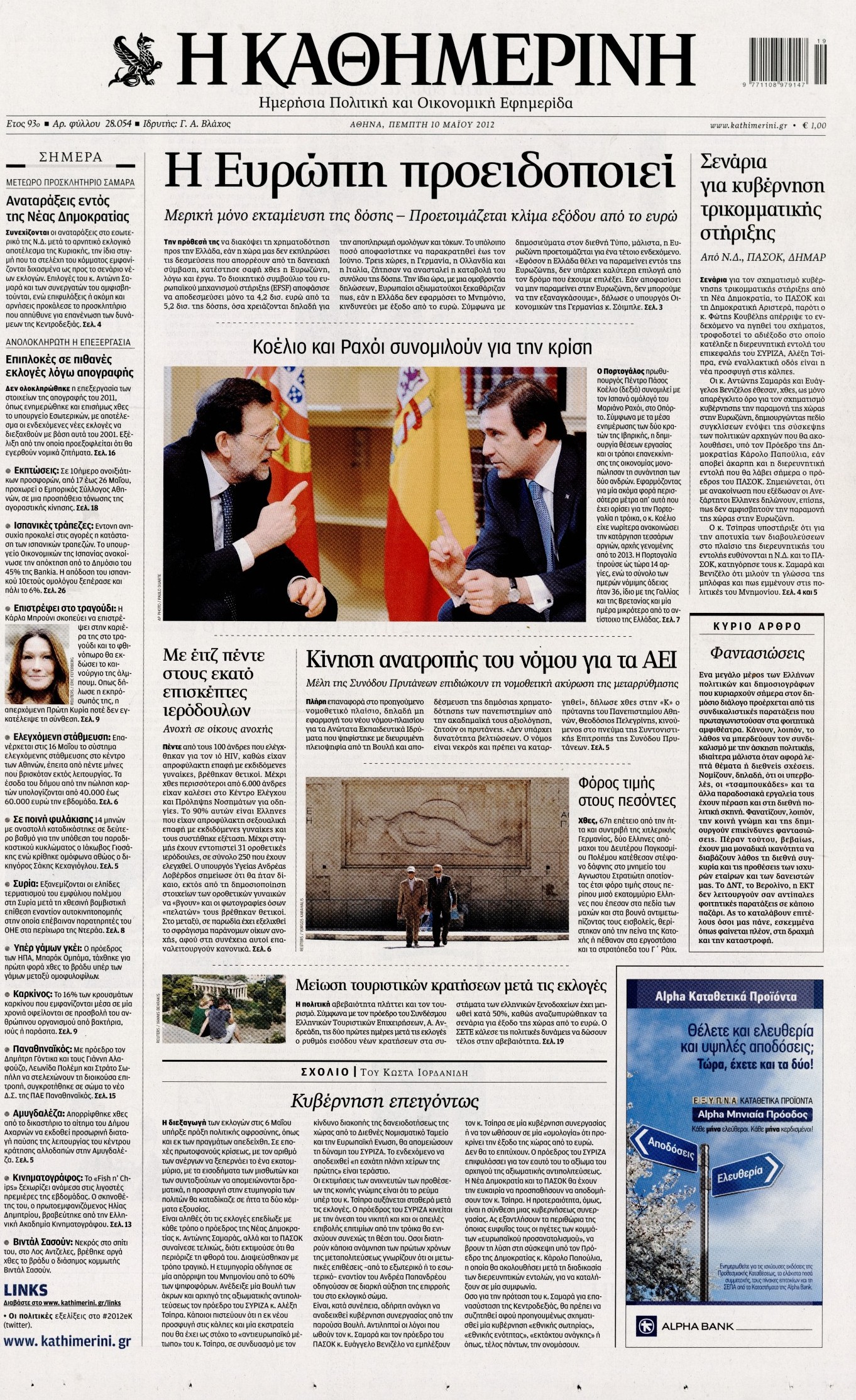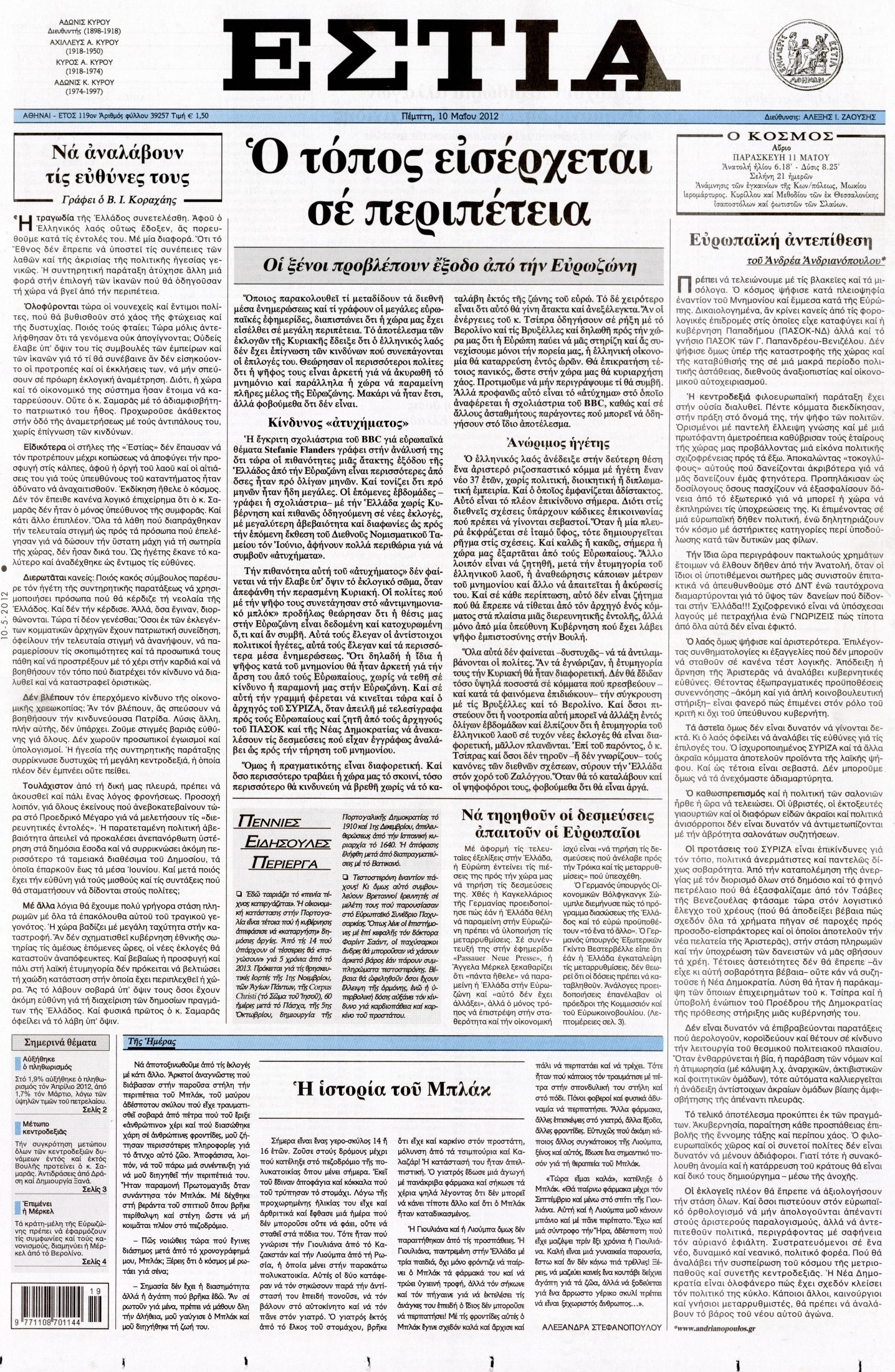 Τα πρωτοσέλιδα των εφημερίδων Enikos Newsroom 07:33, Πέμπτη 10 Μαΐου 2012 Media ΕΦΗΜΕΡΙΔΕΣ ΠΡΩΤΟΣΕΛΙΔΑ Μοιράσου το: σχολίασε κι εσύ (0 σχόλια) Ακολουθήστε το enikos.gr στο Google News και μάθετε πρώτοι όλες τις ειδήσεις Δείτε όλες τις τελευταίες ειδήσεις από την Ελλάδα και τον Κόσμο στο enikos.gr Ειδήσεις Ροή Ειδήσεων 15 λεπτά πριν ΣΥΡΙΖΑ: Διέγραψε τον ευρωβουλευτή Νίκο Παππά μετά την μήνυση δημοσιογράφου για ξυλοδαρμό 1 ώρα πριν Πώς στήθηκε η επιχείρηση «Ίπαλλος» που οδήγησε στη σύλληψη του «Έλληνα Εσκομπάρ» – «Ο πόλεμος ενάντια στους εμπόρους ναρκωτικών θα συνεχιστεί» 59 λεπτά πριν Δίκη Χρυσής Αυγής: Την ενοχή και των 42 κατηγορουμένων ζητά η εισαγγελέας 1 ώρα πριν Κυψέλη: Στη φυλακή η 16χρονη που μαχαίρωσε συμμαθήτριά της 4 ώρες πριν Αμοργός: «Θα προσπαθήσω να το κάνω κάθε μέρα» – Ποιος είναι ο αγρότης που έστησε μόνος του το πρώτο μπλόκο στο νησί 1 ώρα πριν Τα 3 ζώδια που θα δουν τη ζωή τους να αλλάζει ριζικά το 2026 – «Όλα γίνονται καλύτερα σταδιακά» 6 ώρες πριν «Δεν είχα κλάψει από τότε που διαγνώστηκα με καρκίνο, ώσπου ένα τηλεφώνημα με έκανε να λυγίσω» – Η συγκλονιστική εξομολόγηση ενός άνδρα 2 ώρες πριν Ο σπάνιος σεισμός που έλυσε τα χέρια των επιστημόνων – Αποκάλυψε ακριβώς όσα αναζητούσαν 8 ώρες πριν 20 χρόνια τα Χριστούγεννα ξεκινούν στα Public με μεγάλη ποικιλία σε δώρα! 4 λεπτά πριν Ρόδος: Ανήλικος που βρισκόταν σε σχολική εκδρομή μεταφέρθηκε μεθυσμένος στο νοσοκομείο – 2 συλλήψεις 10 λεπτά πριν Γέννησε η Ευάννα Ζουμπούρογλου: «Είμαστε και οι δύο πολύ καλά – Είναι η πιο όμορφη όλου του κόσμου» 15 λεπτά πριν ΣΥΡΙΖΑ: Διέγραψε τον ευρωβουλευτή Νίκο Παππά μετά την μήνυση δημοσιογράφου για ξυλοδαρμό 17 λεπτά πριν Απολαυστικό «Ρουκ…Σουτ» με παίκτες του Παναθηναϊκού AKTOR – ΒΙΝΤΕΟ 21 λεπτά πριν Κουίζ για την παλιά Αθήνα: Αναγνωρίζετε την οδό; Είναι από τις πιο γνωστές ENIKOS NETWORK Γιατί αναζητούμε τα Χριστούγεννα όλο και νωρίτερα; Ποιοι οι ψυχολογικοί και οι συναισθηματικοί λόγοι Σοβαροί κίνδυνοι από τη λάθος χορήγηση φαρμάκου για τις αιμορραγίες-Συστάσεις προς τους γιατρούς Δάνεια σε ελβετικό φράγκο: Αύριο η κατάθεση της τροπολογίας στη Βουλή – Όλες οι λεπτομέρειες Επίδομα παιδιού: Πότε θα δοθεί η τελευταία δόση για το 2025 από τον ΟΠΕΚΑ και τι πρέπει να γνωρίζετε Χαρτογραφώντας το «σημείο χωρίς επιστροφή»: Για πρώτη φορά αποκαλύπτεται με λεπτομέρεια το ακανθώδες όριο της ατμόσφαιρας τ... Η Google καταργεί τη λειτουργία «dark web report» – Πώς θα μπορούν οι χρήστες να διαγράφουν τα δεδομένα τους περισσότερα 12:35 , Τετάρτη 17 Δεκεμβρίου 2025 Μίρκα Παπακωνσταντίνου: «Δεν ήμουν αισιόδοξη για τα νούμερα – Είμαι ρεαλίστρια» Στα γυρίσματα του εορταστικού επεισοδίου της αγαπημένης σειράς “Το Σόι Σου”, βρέθηκε η κάμερα ... 12:12 , Τετάρτη 17 Δεκεμβρίου 2025 Ακούστε την εκπομπή του Νίκου Χατζηνικολάου 17/12/2025 Ακούστε την εκπομπή του Νίκου Χατζηνικολάου στον ραδιοφωνικό σταθμό RealFm 97,8, την Τετάρτη 1... 11:35 , Τετάρτη 17 Δεκεμβρίου 2025 Home Alone: Το σπίτι της ταινίας θα ανακαινιστεί – Επιστροφή στην αισθητική της δεκαετίας του ’90 Οι νέοι ιδιοκτήτες του πραγματικού σπιτιού που παρουσιάζεται στην κλασική ταινία του 1990 «Hom... 11:25 , Τετάρτη 17 Δεκεμβρίου 2025 Grand Hotel: Απόψε το τελευταίο επεισόδιο της χρονιάς – Όλα τα μυστικά μένουν εδώ Το τελευταίο επεισόδιο της χρονιάς της σειράς «Grand Hotel» θα προβληθεί απόψε στις 21:00. Ο Ά... ΤΕΛΕΥΤΑΙΕΣ ΕΙΔΗΣΕΙΣ 4 λεπτά πριν Ρόδος: Ανήλικος που βρισκόταν σε σχολική εκδρομή... 10 λεπτά πριν Γέννησ