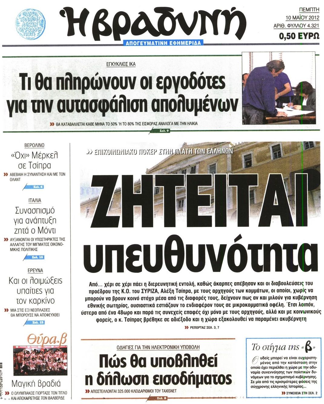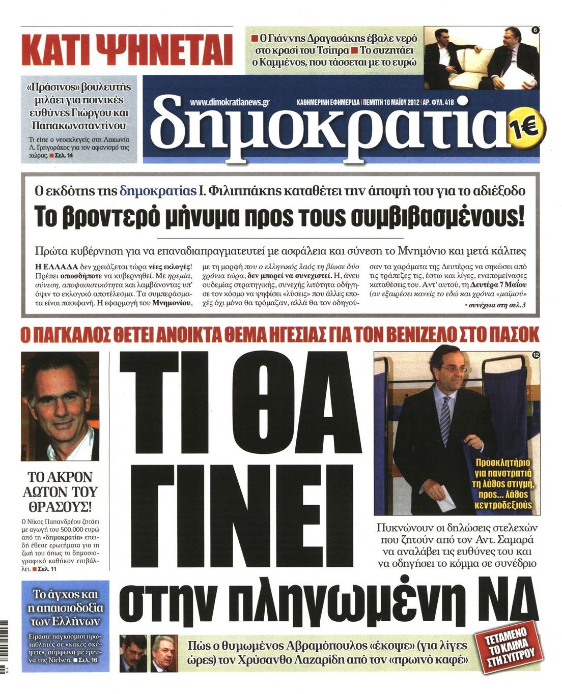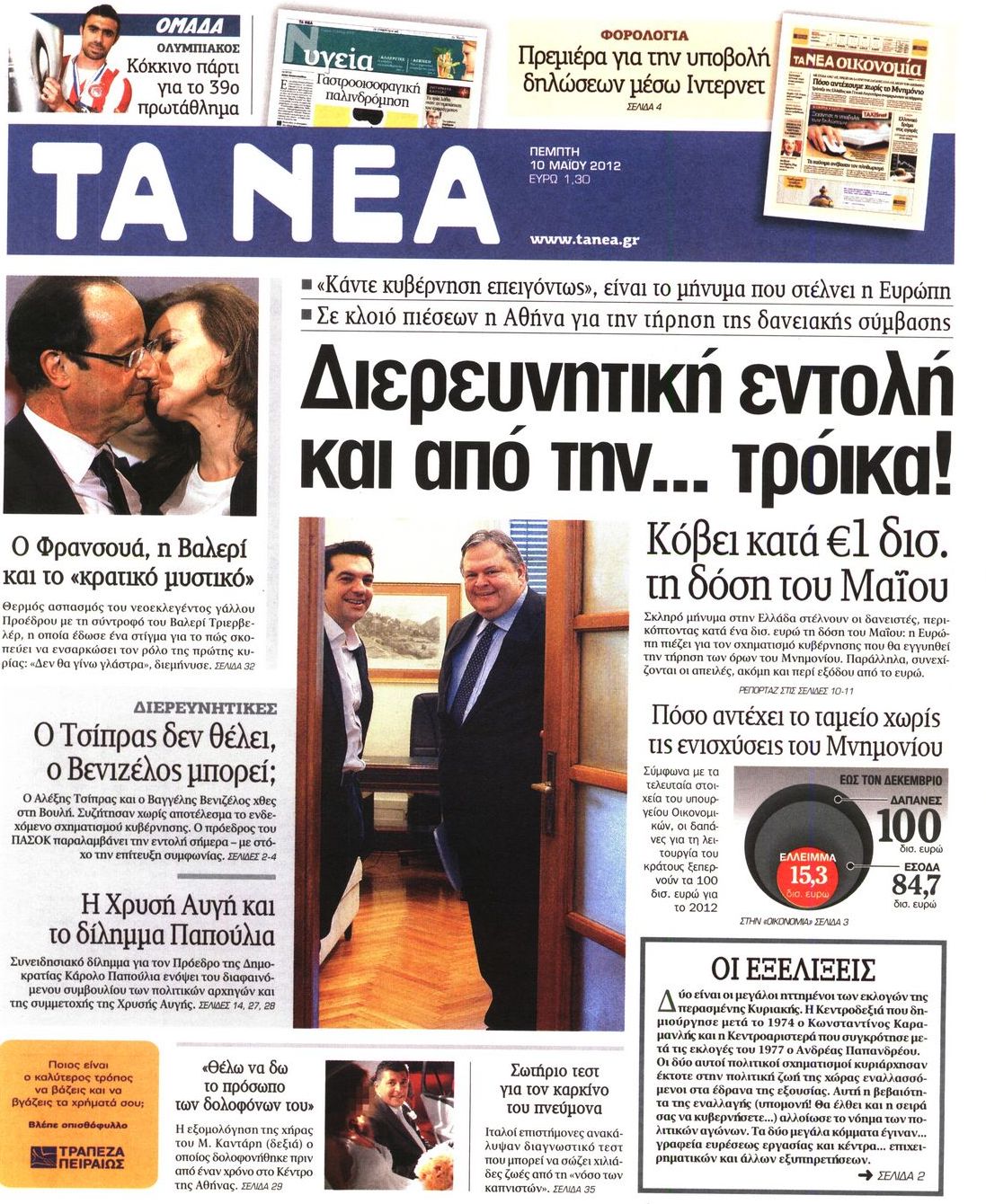 Τα πρωτοσέλιδα των εφημερίδων Enikos Newsroom 07:33, Πέμπτη 10 Μαΐου 2012 Media ΕΦΗΜΕΡΙΔΕΣ ΠΡΩΤΟΣΕΛΙΔΑ Μοιράσου το: σχολίασε κι εσύ (0 σχόλια) Ακολουθήστε το enikos.gr στο Google News και μάθετε πρώτοι όλες τις ειδήσεις Δείτε όλες τις τελευταίες ειδήσεις από την Ελλάδα και τον Κόσμο στο enikos.gr Ειδήσεις Ροή Ειδήσεων 15 λεπτά πριν ΣΥΡΙΖΑ: Διέγραψε τον ευρωβουλευτή Νίκο Παππά μετά την μήνυση δημοσιογράφου για ξυλοδαρμό 1 ώρα πριν Πώς στήθηκε η επιχείρηση «Ίπαλλος» που οδήγησε στη σύλληψη του «Έλληνα Εσκομπάρ» – «Ο πόλεμος ενάντια στους εμπόρους ναρκωτικών θα συνεχιστεί» 59 λεπτά πριν Δίκη Χρυσής Αυγής: Την ενοχή και των 42 κατηγορουμένων ζητά η εισαγγελέας 1 ώρα πριν Κυψέλη: Στη φυλακή η 16χρονη που μαχαίρωσε συμμαθήτριά της 4 ώρες πριν Αμοργός: «Θα προσπαθήσω να το κάνω κάθε μέρα» – Ποιος είναι ο αγρότης που έστησε μόνος του το πρώτο μπλόκο στο νησί 1 ώρα πριν Τα 3 ζώδια που θα δουν τη ζωή τους να αλλάζει ριζικά το 2026 – «Όλα γίνονται καλύτερα σταδιακά» 6 ώρες πριν «Δεν είχα κλάψει από τότε που διαγνώστηκα με καρκίνο, ώσπου ένα τηλεφώνημα με έκανε να λυγίσω» – Η συγκλονιστική εξομολόγηση ενός άνδρα 2 ώρες πριν Ο σπάνιος σεισμός που έλυσε τα χέρια των επιστημόνων – Αποκάλυψε ακριβώς όσα αναζητούσαν 8 ώρες πριν 20 χρόνια τα Χριστούγεννα ξεκινούν στα Public με μεγάλη ποικιλία σε δώρα! 4 λεπτά πριν Ρόδος: Ανήλικος που βρισκόταν σε σχολική εκδρομή μεταφέρθηκε μεθυσμένος στο νοσοκομείο – 2 συλλήψεις 10 λεπτά πριν Γέννησε η Ευάννα Ζουμπούρογλου: «Είμαστε και οι δύο πολύ καλά – Είναι η πιο όμορφη όλου του κόσμου» 15 λεπτά πριν ΣΥΡΙΖΑ: Διέγραψε τον ευρωβουλευτή Νίκο Παππά μετά την μήνυση δημοσιογράφου για ξυλοδαρμό 17 λεπτά πριν Απολαυστικό «Ρουκ…Σουτ» με παίκτες του Παναθηναϊκού AKTOR – ΒΙΝΤΕΟ 21 λεπτά πριν Κουίζ για την παλιά Αθήνα: Αναγνωρίζετε την οδό; Είναι από τις πιο γνωστές ENIKOS NETWORK Γιατί αναζητούμε τα Χριστούγεννα όλο και νωρίτερα; Ποιοι οι ψυχολογικοί και οι συναισθηματικοί λόγοι Σοβαροί κίνδυνοι από τη λάθος χορήγηση φαρμάκου για τις αιμορραγίες-Συστάσεις προς τους γιατρούς Δάνεια σε ελβετικό φράγκο: Αύριο η κατάθεση της τροπολογίας στη Βουλή – Όλες οι λεπτομέρειες Επίδομα παιδιού: Πότε θα δοθεί η τελευταία δόση για το 2025 από τον ΟΠΕΚΑ και τι πρέπει να γνωρίζετε Χαρτογραφώντας το «σημείο χωρίς επιστροφή»: Για πρώτη φορά αποκαλύπτεται με λεπτομέρεια το ακανθώδες όριο της ατμόσφαιρας τ... Η Google καταργεί τη λειτουργία «dark web report» – Πώς θα μπορούν οι χρήστες να διαγράφουν τα δεδομένα τους περισσότερα 12:35 , Τετάρτη 17 Δεκεμβρίου 2025 Μίρκα Παπακωνσταντίνου: «Δεν ήμουν αισιόδοξη για τα νούμερα – Είμαι ρεαλίστρια» Στα γυρίσματα του εορταστικού επεισοδίου της αγαπημένης σειράς “Το Σόι Σου”, βρέθηκε η κάμερα ... 12:12 , Τετάρτη 17 Δεκεμβρίου 2025 Ακούστε την εκπομπή του Νίκου Χατζηνικολάου 17/12/2025 Ακούστε την εκπομπή του Νίκου Χατζηνικολάου στον ραδιοφωνικό σταθμό RealFm 97,8, την Τετάρτη 1... 11:35 , Τετάρτη 17 Δεκεμβρίου 2025 Home Alone: Το σπίτι της ταινίας θα ανακαινιστεί – Επιστροφή στην αισθητική της δεκαετίας του ’90 Οι νέοι ιδιοκτήτες του πραγματικού σπιτιού που παρουσιάζεται στην κλασική ταινία του 1990 «Hom... 11:25 , Τετάρτη 17 Δεκεμβρίου 2025 Grand Hotel: Απόψε το τελευταίο επεισόδιο της χρονιάς – Όλα τα μυστικά μένουν εδώ Το τελευταίο επεισόδιο της χρονιάς της σειράς «Grand Hotel» θα προβληθεί απόψε στις 21:00. Ο Ά... ΤΕΛΕΥΤΑΙΕΣ ΕΙΔΗΣΕΙΣ 4 λεπτά πριν Ρόδος: Ανήλικος που βρισκόταν σε σχολική εκδρομή... 10 λεπτά πριν Γέννησ