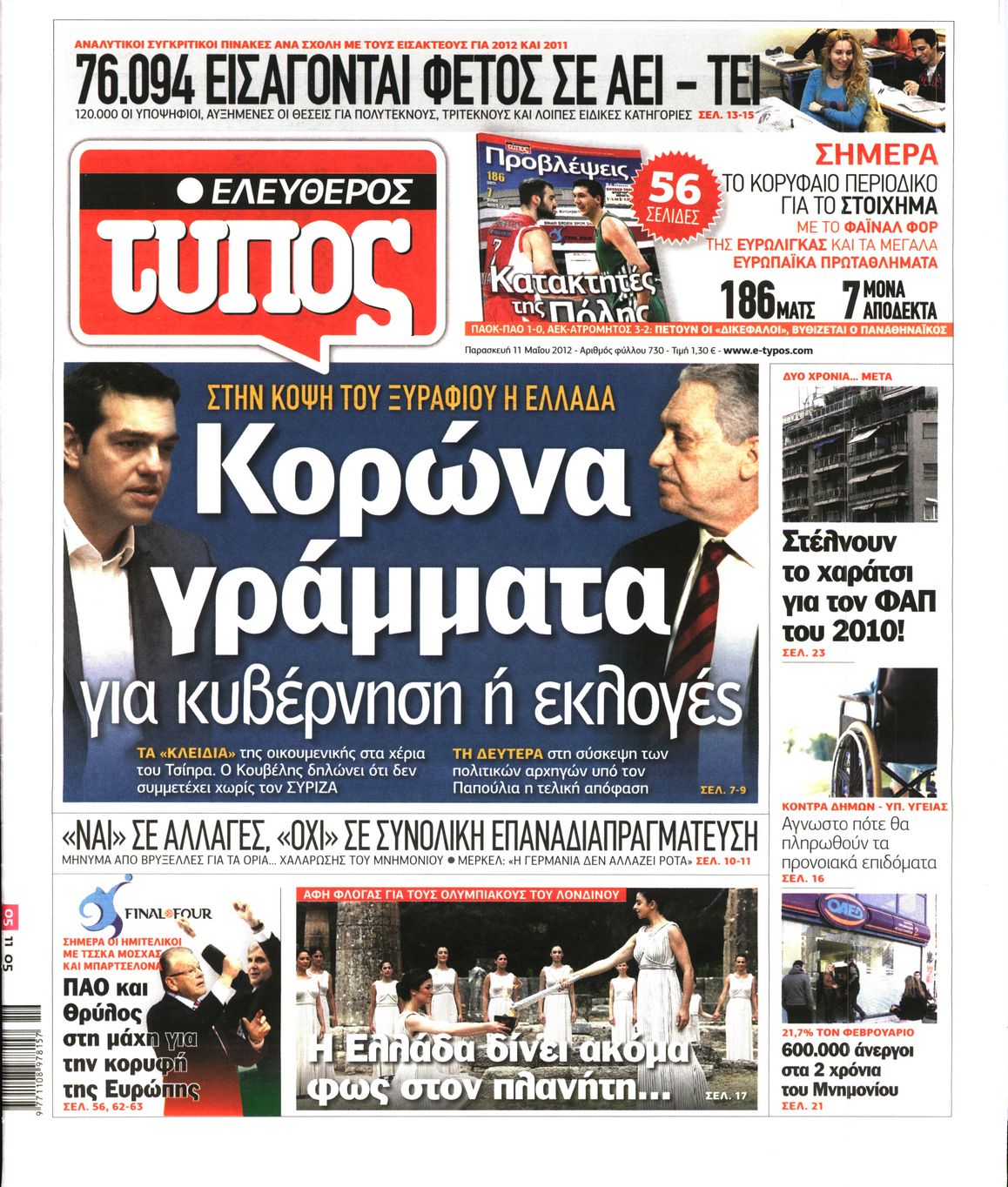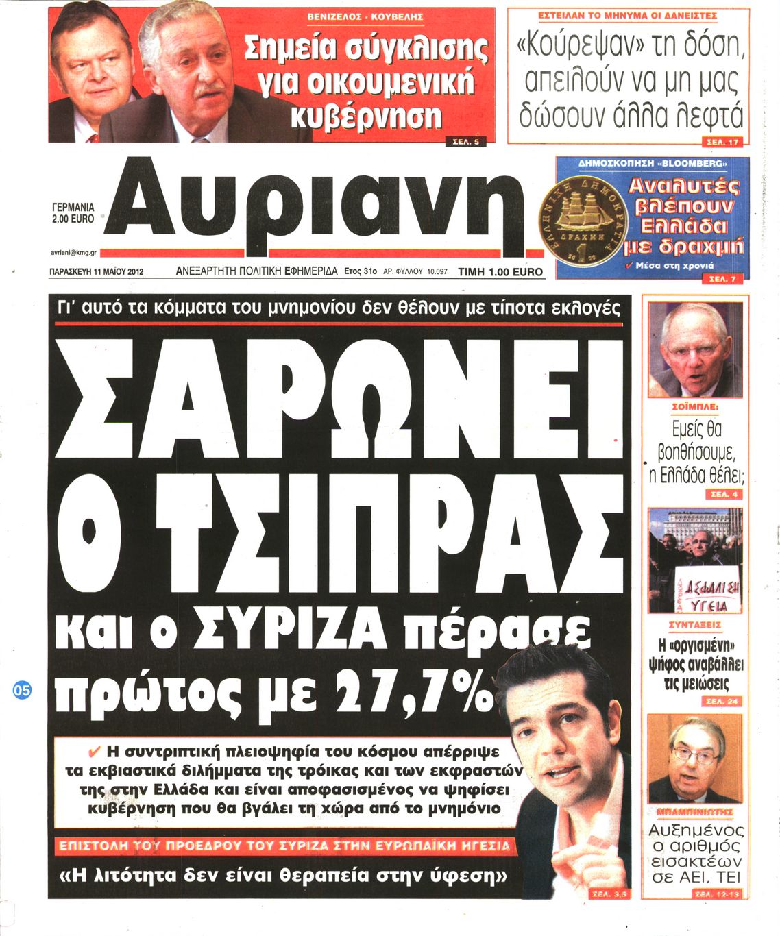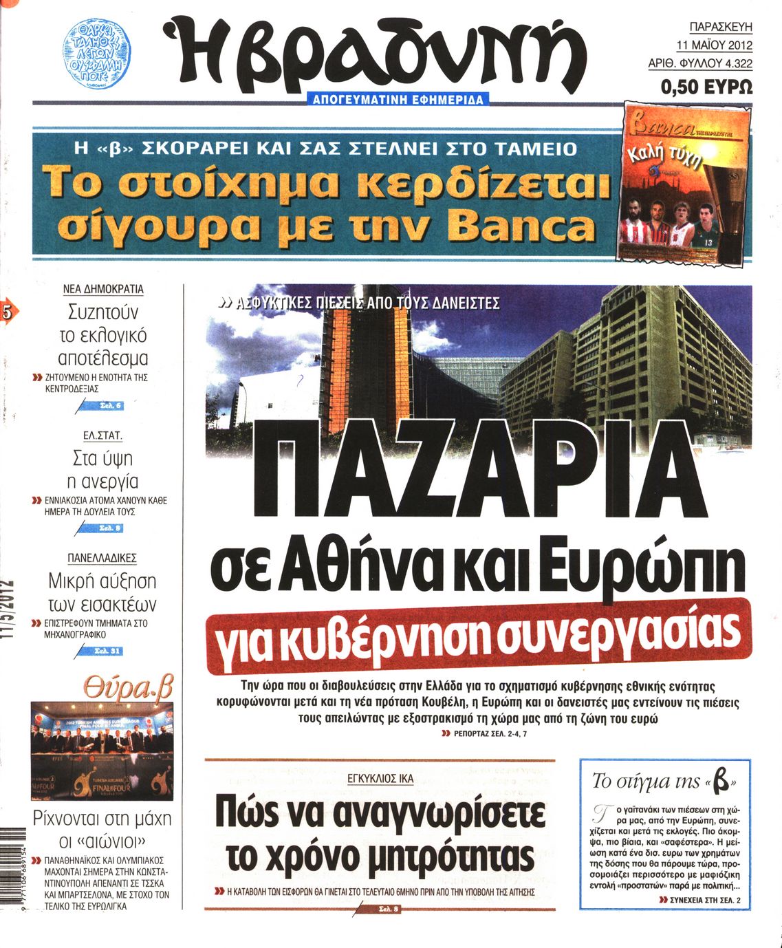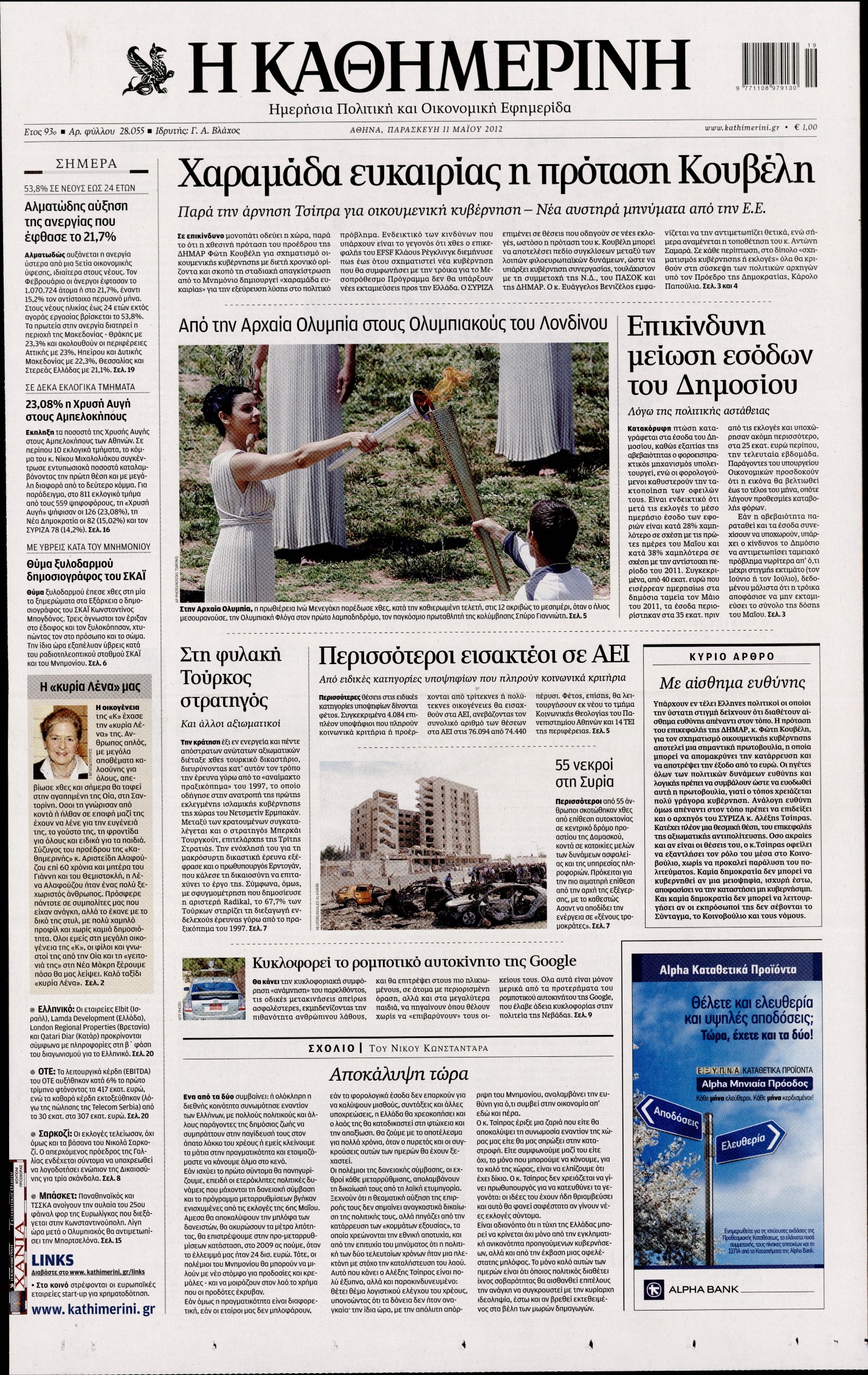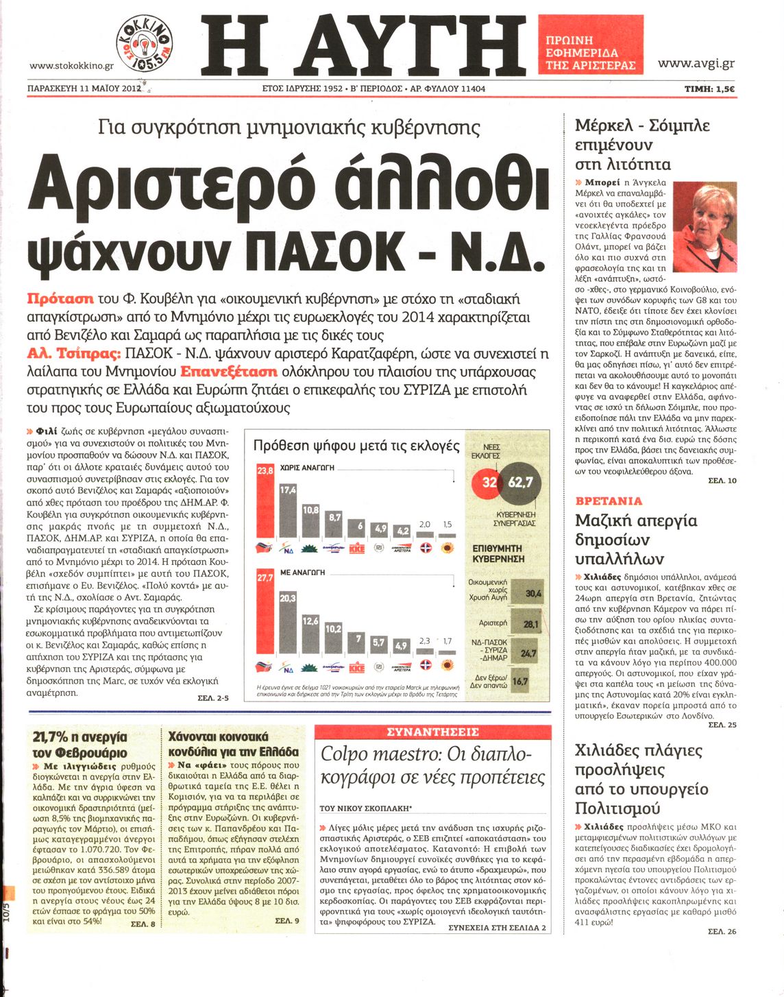 Τα πρωτοσέλιδα των εφημερίδων Enikos Newsroom 08:56, Παρασκευή 11 Μαΐου 2012 Media ΕΦΗΜΕΡΙΔΕΣ ΠΡΩΤΟΣΕΛΙΔΑ Μοιράσου το: σχολίασε κι εσύ (0 σχόλια) Ακολουθήστε το enikos.gr στο Google News και μάθετε πρώτοι όλες τις ειδήσεις Δείτε όλες τις τελευταίες ειδήσεις από την Ελλάδα και τον Κόσμο στο enikos.gr Ειδήσεις Ροή Ειδήσεων 2 ώρες πριν Μητσοτάκης για αγρότες: Ελπίζω πως θα απομακρυνθούν σύντομα από τα μπλόκα 4 ώρες πριν Έρευνα MRB: Η πρόθεση ψήφου και τα σημαντικότερα προβλήματα – Οι «λέξεις» που εκφράζουν τους πολίτες 34 λεπτά πριν Αμοργός: «Θα προσπαθήσω να το κάνω κάθε μέρα» – Ποιος είναι ο αγρότης που έστησε μόνος του το πρώτο μπλόκο στο νησί 1 ώρα πριν Μισέλ Ομπάμα: Εμφανώς αδυνατισμένη στην εκπομπή του Τζίμι Κίμελ – Οι φήμες για τη χρήση Ozempic και η «φιλία» της με τον Ρομπ Ράινερ 1 ώρα πριν Αγρότες: Επ’ αόριστον μπλόκο στον σταθμό στον Προμαχώνα για τα φορτηγά – Κλείνει το ρεύμα εισόδου στα Μάλγαρα 3 ώρες πριν Τα 4 ζώδια που ξαναβρίσκουν τον εαυτό τους – «Μπαίνετε επιτέλους στην ουσία των πραγμάτων» 4 ώρες πριν 20 χρόνια τα Χριστούγεννα ξεκινούν στα Public με μεγάλη ποικιλία σε δώρα! 3 ώρες πριν «Δεν είχα κλάψει από τότε που διαγνώστηκα με καρκίνο, ώσπου ένα τηλεφώνημα με έκανε να λυγίσω» – Η συγκλονιστική εξομολόγηση ενός άνδρα 2 ώρες πριν Τα 7 σπάνια χαρακτηριστικά που κάνουν κάποιους ανθρώπους ακαταμάχητους 6 λεπτά πριν Κρεμλίνο: «Η θέση μας είναι σαφής» για τα ευρωπαϊκά στρατεύματα στην Ουκρανία – «Είναι θέμα προς συζήτηση» 11 λεπτά πριν Μαρία Σολωμού: Έχω σκεφτεί να παντρευτώ στα 70, επειδή δεν το έχω κάνει 16 λεπτά πριν Παρίσι: Παρατείνεται η απεργία στο Λούβρο – To μουσείο παραμένει κλειστό «μέχρι νεωτέρας» 21 λεπτά πριν Λάκης Γαβαλάς, Σουζάνα Κεγγίτση και Έλενα Γαλύφα μας περιμένουν σήμερα στο πιο stylish Χριστουγεννιάτικο ραντεβού στο Athens Metro Mall – Το Madwalk Gifting Lounge by ΣΚΡΑΤΣ επιστρέφει σήμερα από τις 14:00 έως τις 18:30 26 λεπτά πριν Αγρίνιο: Συνελήφθη μαθητής που απείλησε τον διευθυντή και εκπαιδευτικούς – Χειροπέδες και στη μητέρα του ENIKOS NETWORK Ανησυχητική αύξηση της υπέρτασης στα παιδιά – Πώς θα τα προστατέψουμε; Αδενώματα Υπόφυσης: Μια πάθηση καλοήθης, αλλά όχι αθώα Διεθνής Οργανισμός Ενέργειας (ΔΟΕ, IEA): Τι δείχνουν τα νέα στοιχεία για την παγκόσμια κατανάλωση άνθρακα Διευκρινίσεις από το ΥΠΑΑΤ και τον ΟΠΕΚΕΠΕ για την εξόφληση της βασικής ενίσχυσης στους αγρότες Σύγχρονος Νοστράδαμος: Προειδοποιεί για «μεγάλο γεγονός» τους επόμενους μήνες που θα συγκλονίσει τη Βρετανία και τον κόσμο Τεστ παρατηρητικότητας: Μπορείτε να βρείτε τις 3 διαφορές στις εικόνες με έναν πιγκουίνο σε 14 δευτερόλεπτα περισσότερα 12:35 , Τετάρτη 17 Δεκεμβρίου 2025 Μίρκα Παπακωνσταντίνου: «Δεν ήμουν αισιόδοξη για τα νούμερα – Είμαι ρεαλίστρια» Στα γυρίσματα του εορταστικού επεισοδίου της αγαπημένης σειράς “Το Σόι Σου”, βρέθηκε η κάμερα ... 12:12 , Τετάρτη 17 Δεκεμβρίου 2025 Ακούστε την εκπομπή του Νίκου Χατζηνικολάου 17/12/2025 Ακούστε την εκπομπή του Νίκου Χατζηνικολάου στον ραδιοφωνικό σταθμό RealFm 97,8, την Τετάρτη 1... 11:35 , Τετάρτη 17 Δεκεμβρίου 2025 Home Alone: Το σπίτι της ταινίας θα ανακαινιστεί – Επιστροφή στην αισθητική της δεκαετίας του ’90 Οι νέοι ιδιοκτήτες του πραγματικού σπιτιού που παρουσιάζεται στην κλασική ταινία του 1990 «Hom... 11:25 , Τετάρτη 17 Δεκεμβρίου 2025 Grand Hotel: Απόψε το τελευταίο επεισόδιο της χρονιάς – Όλα τα μυστικά μένουν εδώ Το τελευταίο επεισόδιο της χρονιάς της σειράς «Grand Hotel» θα προβληθεί απόψε στις 21:00. Ο 