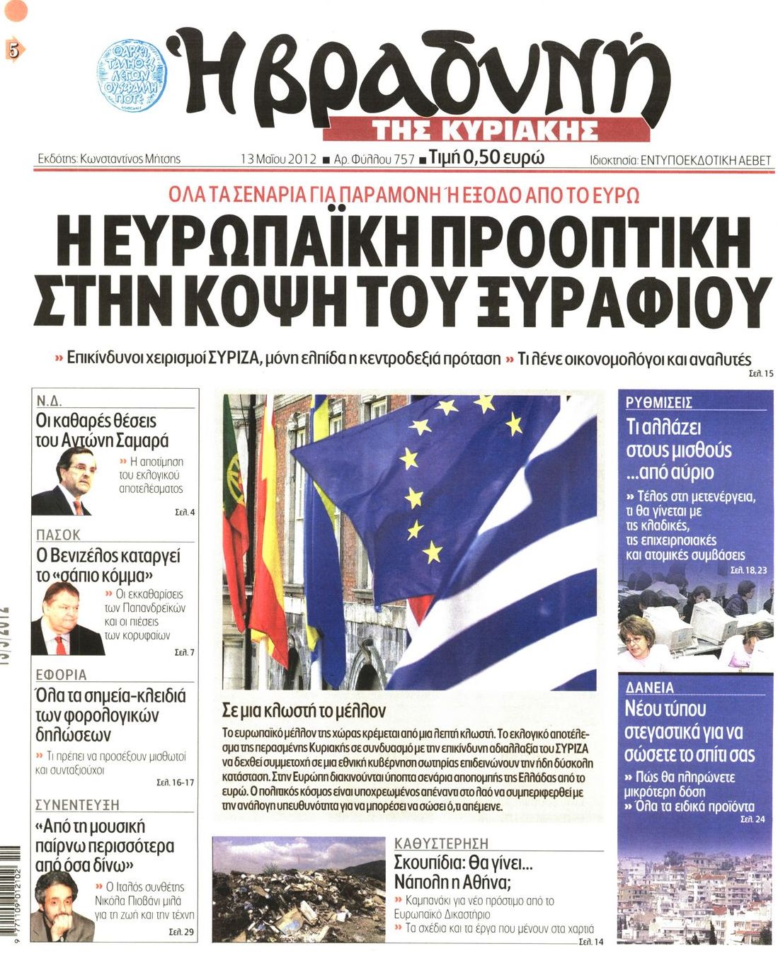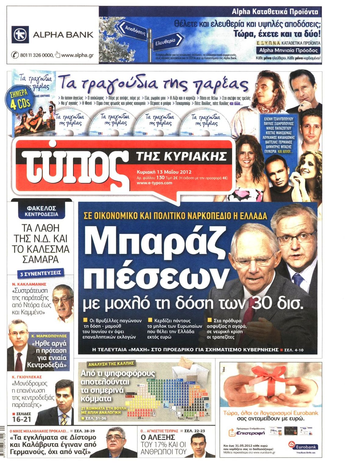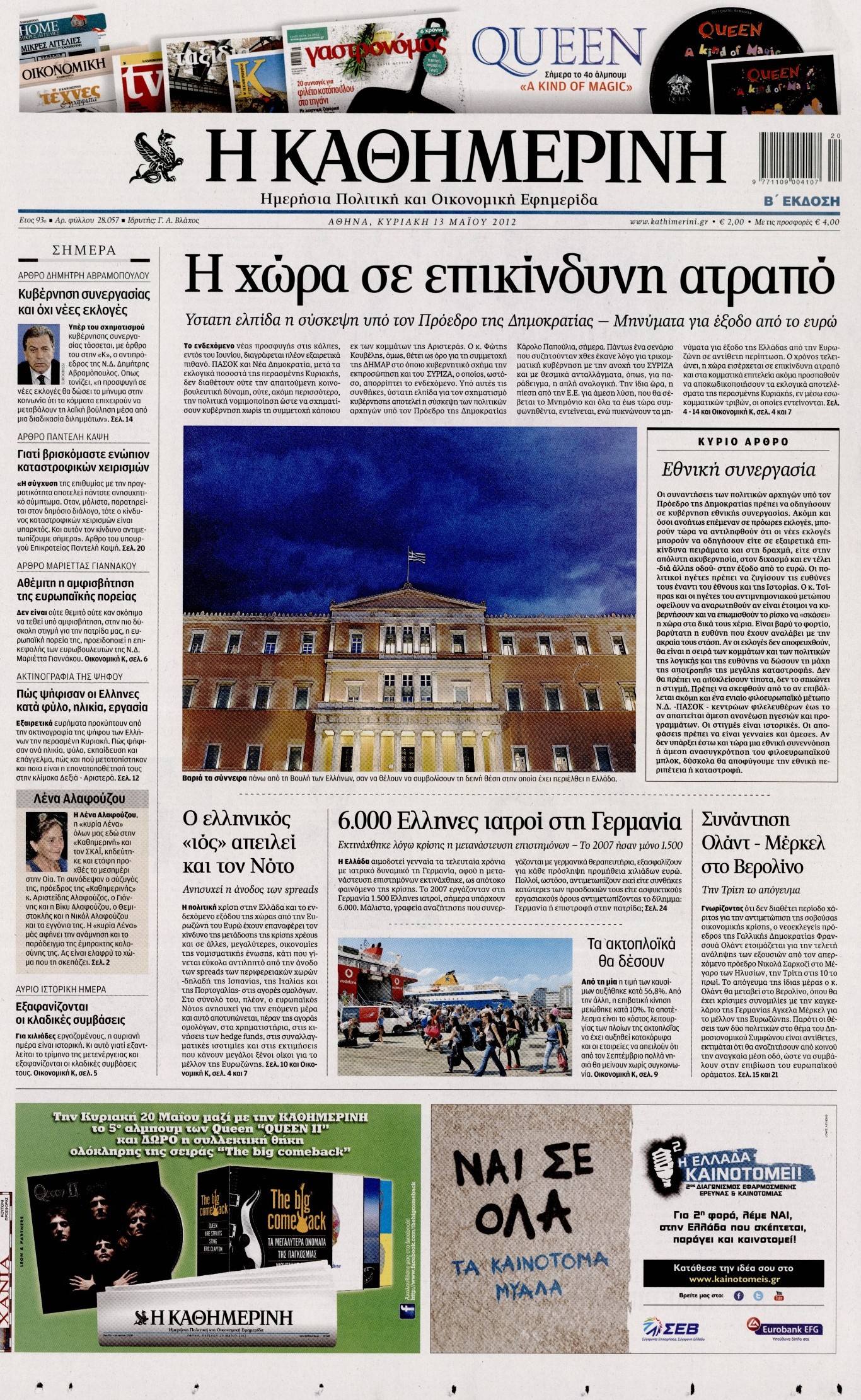 Τα πρωτοσέλιδα των εφημερίδων Enikos Newsroom 07:17, Κυριακή 13 Μαΐου 2012 Media ΕΦΗΜΕΡΙΔΕΣ ΠΡΩΤΟΣΕΛΙΔΑ Μοιράσου το: σχολίασε κι εσύ (0 σχόλια) Ακολουθήστε το enikos.gr στο Google News και μάθετε πρώτοι όλες τις ειδήσεις Δείτε όλες τις τελευταίες ειδήσεις από την Ελλάδα και τον Κόσμο στο enikos.gr Ειδήσεις Ροή Ειδήσεων 5 ώρες πριν Μητσοτάκης: Αναγκαία η μεταρρύθμιση του πρωτογενούς τομέα – Τα 6 νέα μέτρα για το στεγαστικό και οι αναφορές σε «Ιθάκη» και «πολιτικούς του καναπέ» 4 ώρες πριν Δάνεια σε ελβετικό φράγκο: Τα βασικά σημεία της ρύθμισης – ανάσας για 40.000 δανειολήπτες – Αναλυτικός οδηγός με ερωτήσεις και απαντήσεις 4 ώρες πριν Κυψέλη: Εξιτήριο πήρε η 14χρονη μαθήτρια που μαχαιρώθηκε από την 16χρονη σε σχολείο – «Θέλω να βοηθήσω το παιδί, έχει μπλέξει με κακές παρέες» 4 ώρες πριν Τραμπ: Γιατί κατέθεσε τώρα την αγωγή κατά του BBC – Πώς η κίνησή του εξυπηρετεί το νέο δόγμα του για «αντίσταση» στην Ευρώπη, υπέρ των συντηρητικών 5 ώρες πριν ΟΠΕΚΕΠΕ – Παράνομες επιδοτήσεις: Ελεύθεροι με περιοριστικούς όρους και οι 7 κατηγορούμενοι που απολογήθηκαν σήμερα 4 ώρες πριν Ανακαλύφθηκε βυθισμένη πέτρινη κατασκευή ανοιχτά της Κριμαίας – Αποτελεί μέρος αρχαίας ελληνικής αποικίας 5 ώρες πριν Ύπνος: Αυτό μπορεί να είναι το χειρότερο λάθος για το βιολογικό ρολόι σας, σύμφωνα με ειδικό 6 ώρες πριν Αριθμολογία: Οι άνθρωποι που έχουν γεννηθεί αυτές τις 3 ημερομηνίες, προσελκύουν μεγάλη τύχη πριν από το τέλος του 2025 8 ώρες πριν Οι 7 συμπεριφορές που μαρτυρούν ότι ένας άνδρας επενδύει μακροπρόθεσμα σε μια σχέση 9 λεπτά πριν Ντόναλντ Τραμπ: Κάλυψε απόλυτα την προσωπάρχη του Λευκού Οίκου: «Ναι, έχω προσωπικότητα αλκοολικού» 24 λεπτά πριν ΗΠΑ: Στην αγορά δύο Boeing 747-8 προχωρά η Πολεμική Αεροπορία για την υποστήριξη του προεδρικού στόλου 39 λεπτά πριν Ιταλία: Λεωφορείο έπεσε πάνω σε βιτρίνα καταστήματος στο Τορίνο – Τρεις τραυματίες 54 λεπτά πριν Χαλάνδρι: Καθηγητής έπιασε με κόφτη τα δάχτυλα μαθητή σε κατάληψη – «Μου έχεις πιάσει το χέρι» 1 ώρα πριν Ουκρανία: Εκρήξεις στο Κίεβο ύστερα από προειδοποίηση για επιδρομή drones ENIKOS NETWORK Αίτημα ΙΣΑ για την εξαίρεση των προσωπικών γιατρών από τις κατ’ οίκον επισκέψεις Η σκανδιναβική μέθοδος στον ύπνο που μπορεί να σώσει έναν γάμο Πιερρακάκης: Ο προϋπολογισμός συμβάλλει ουσιαστικά στην ενίσχυση της αγοραστικής δύναμης της πλειονότητας των εργαζομένων e-ΕΦΚΑ: Παρατείνεται η προθεσμία για την υποβολή ΑΠΔ – Ποιους αφορά Σύγχρονος Νοστράδαμος: Προειδοποιεί για «μεγάλο γεγονός» τους επόμενους μήνες που θα συγκλονίσει τη Βρετανία και τον κόσμο Τεστ παρατηρητικότητας: Μπορείτε να βρείτε τις 3 διαφορές στις εικόνες με έναν πιγκουίνο σε 14 δευτερόλεπτα περισσότερα 20:06 , Τρίτη 16 Δεκεμβρίου 2025 Ο ΣΚΑΙ καταγγέλλει τον ΕΚΚΟΜΕΔ Επιστολή με την οποία καταγράφει την έντονη διαμαρτυρία του προς τον διευθύνοντα σύμβουλο του... 17:40 , Τρίτη 16 Δεκεμβρίου 2025 Eurovision: Στις 4 Ιανουαρίου αποκαλύπτονται τα 28 τραγούδια του ελληνικού τελικού Η αγωνία τελειώνει, η γιορτή της Eurovision αρχίζει στην ΕΡΤ από τις πρώτες ημέρες της νέας χρ... 17:09 , Τρίτη 16 Δεκεμβρίου 2025 Alter Ego Media: Βαθύτατη θλίψη και ειλικρινή συλλυπητήρια για την απώλεια της Ειρήνης Μαρινάκη Τη βαθύτατη θλίψη και τα ειλικρινή συλλυπητήριά της εκφράζει η Alter Ego Media για τον θάνατο ... 13:00 , Τρίτη 16 Δεκεμβρίου 2025 «Στο Παρά Πέντε – 20 Χρόνια Μετά»: Κυκλοφόρησε το τρέιλερ του επετειακού επεισοδίου της θρυλικής σειράς – Πότε θα προβληθεί 