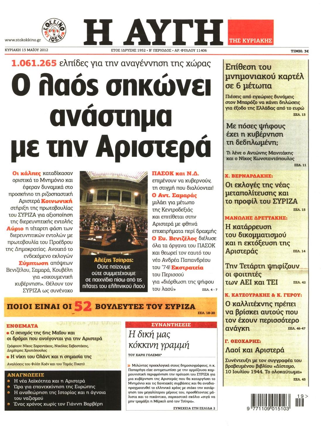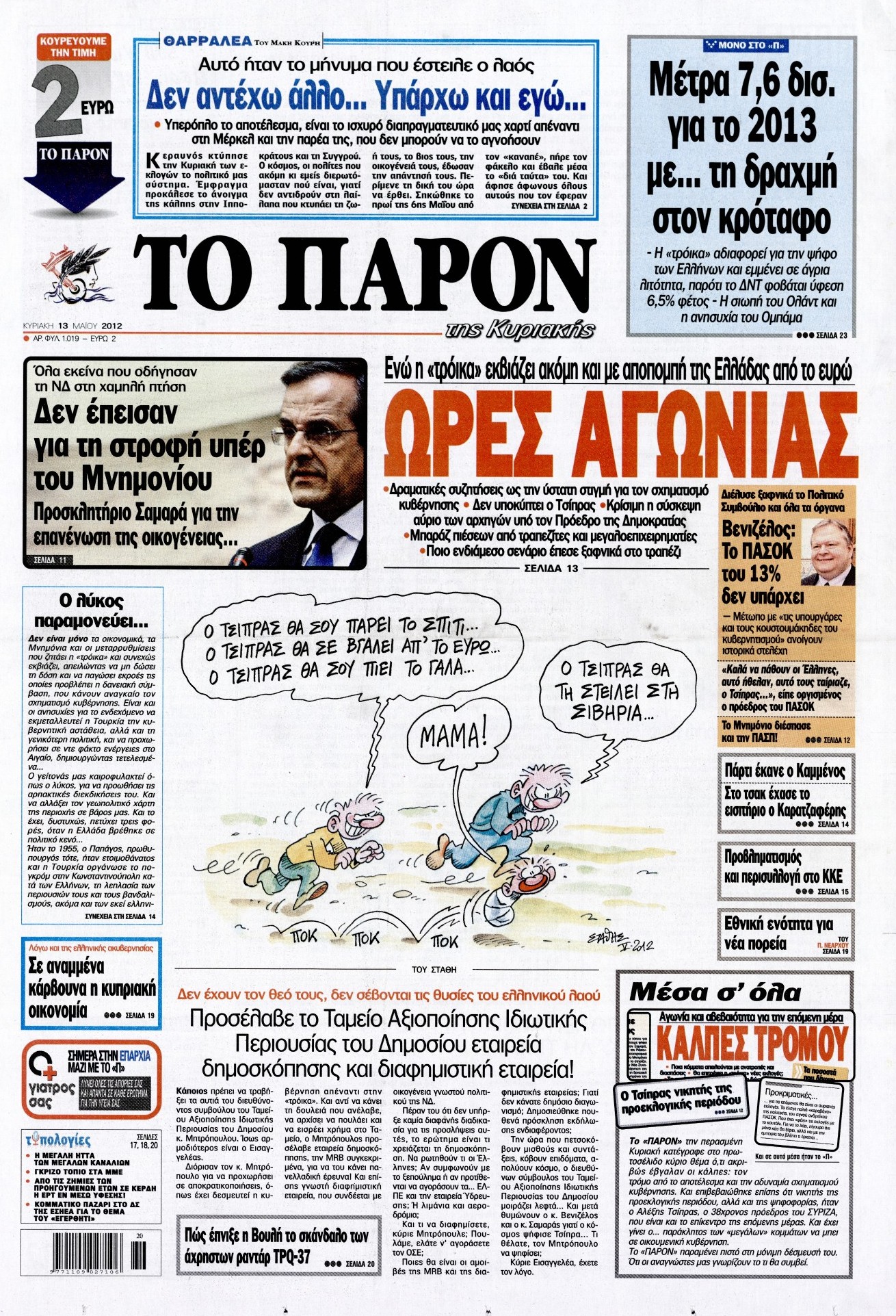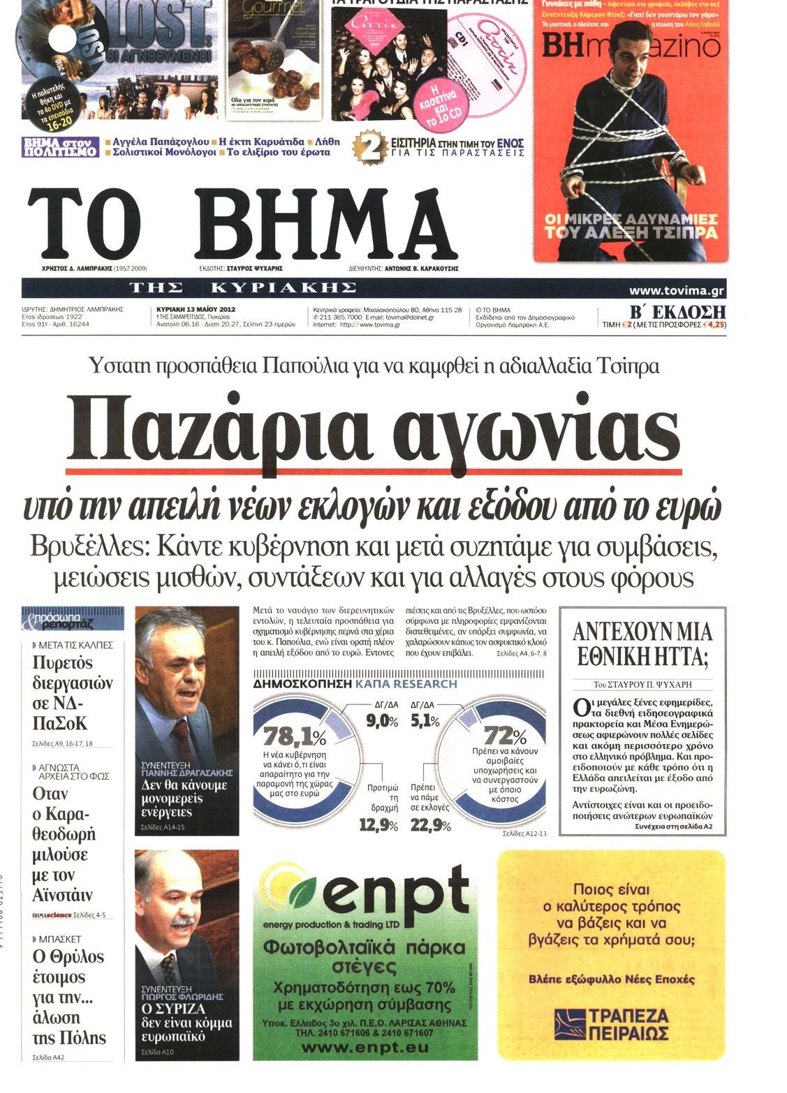 Τα πρωτοσέλιδα των εφημερίδων Enikos Newsroom 07:17, Κυριακή 13 Μαΐου 2012 Media ΕΦΗΜΕΡΙΔΕΣ ΠΡΩΤΟΣΕΛΙΔΑ Μοιράσου το: σχολίασε κι εσύ (0 σχόλια) Ακολουθήστε το enikos.gr στο Google News και μάθετε πρώτοι όλες τις ειδήσεις Δείτε όλες τις τελευταίες ειδήσεις από την Ελλάδα και τον Κόσμο στο enikos.gr Ειδήσεις Ροή Ειδήσεων 5 ώρες πριν Μητσοτάκης: Αναγκαία η μεταρρύθμιση του πρωτογενούς τομέα – Τα 6 νέα μέτρα για το στεγαστικό και οι αναφορές σε «Ιθάκη» και «πολιτικούς του καναπέ» 4 ώρες πριν Δάνεια σε ελβετικό φράγκο: Τα βασικά σημεία της ρύθμισης – ανάσας για 40.000 δανειολήπτες – Αναλυτικός οδηγός με ερωτήσεις και απαντήσεις 4 ώρες πριν Κυψέλη: Εξιτήριο πήρε η 14χρονη μαθήτρια που μαχαιρώθηκε από την 16χρονη σε σχολείο – «Θέλω να βοηθήσω το παιδί, έχει μπλέξει με κακές παρέες» 4 ώρες πριν Τραμπ: Γιατί κατέθεσε τώρα την αγωγή κατά του BBC – Πώς η κίνησή του εξυπηρετεί το νέο δόγμα του για «αντίσταση» στην Ευρώπη, υπέρ των συντηρητικών 5 ώρες πριν ΟΠΕΚΕΠΕ – Παράνομες επιδοτήσεις: Ελεύθεροι με περιοριστικούς όρους και οι 7 κατηγορούμενοι που απολογήθηκαν σήμερα 4 ώρες πριν Ανακαλύφθηκε βυθισμένη πέτρινη κατασκευή ανοιχτά της Κριμαίας – Αποτελεί μέρος αρχαίας ελληνικής αποικίας 5 ώρες πριν Ύπνος: Αυτό μπορεί να είναι το χειρότερο λάθος για το βιολογικό ρολόι σας, σύμφωνα με ειδικό 6 ώρες πριν Αριθμολογία: Οι άνθρωποι που έχουν γεννηθεί αυτές τις 3 ημερομηνίες, προσελκύουν μεγάλη τύχη πριν από το τέλος του 2025 8 ώρες πριν Οι 7 συμπεριφορές που μαρτυρούν ότι ένας άνδρας επενδύει μακροπρόθεσμα σε μια σχέση 9 λεπτά πριν Ντόναλντ Τραμπ: Κάλυψε απόλυτα την προσωπάρχη του Λευκού Οίκου: «Ναι, έχω προσωπικότητα αλκοολικού» 24 λεπτά πριν ΗΠΑ: Στην αγορά δύο Boeing 747-8 προχωρά η Πολεμική Αεροπορία για την υποστήριξη του προεδρικού στόλου 39 λεπτά πριν Ιταλία: Λεωφορείο έπεσε πάνω σε βιτρίνα καταστήματος στο Τορίνο – Τρεις τραυματίες 54 λεπτά πριν Χαλάνδρι: Καθηγητής έπιασε με κόφτη τα δάχτυλα μαθητή σε κατάληψη – «Μου έχεις πιάσει το χέρι» 1 ώρα πριν Ουκρανία: Εκρήξεις στο Κίεβο ύστερα από προειδοποίηση για επιδρομή drones ENIKOS NETWORK Αίτημα ΙΣΑ για την εξαίρεση των προσωπικών γιατρών από τις κατ’ οίκον επισκέψεις Η σκανδιναβική μέθοδος στον ύπνο που μπορεί να σώσει έναν γάμο Πιερρακάκης: Ο προϋπολογισμός συμβάλλει ουσιαστικά στην ενίσχυση της αγοραστικής δύναμης της πλειονότητας των εργαζομένων e-ΕΦΚΑ: Παρατείνεται η προθεσμία για την υποβολή ΑΠΔ – Ποιους αφορά Σύγχρονος Νοστράδαμος: Προειδοποιεί για «μεγάλο γεγονός» τους επόμενους μήνες που θα συγκλονίσει τη Βρετανία και τον κόσμο Τεστ παρατηρητικότητας: Μπορείτε να βρείτε τις 3 διαφορές στις εικόνες με έναν πιγκουίνο σε 14 δευτερόλεπτα περισσότερα 20:06 , Τρίτη 16 Δεκεμβρίου 2025 Ο ΣΚΑΙ καταγγέλλει τον ΕΚΚΟΜΕΔ Επιστολή με την οποία καταγράφει την έντονη διαμαρτυρία του προς τον διευθύνοντα σύμβουλο του... 17:40 , Τρίτη 16 Δεκεμβρίου 2025 Eurovision: Στις 4 Ιανουαρίου αποκαλύπτονται τα 28 τραγούδια του ελληνικού τελικού Η αγωνία τελειώνει, η γιορτή της Eurovision αρχίζει στην ΕΡΤ από τις πρώτες ημέρες της νέας χρ... 17:09 , Τρίτη 16 Δεκεμβρίου 2025 Alter Ego Media: Βαθύτατη θλίψη και ειλικρινή συλλυπητήρια για την απώλεια της Ειρήνης Μαρινάκη Τη βαθύτατη θλίψη και τα ειλικρινή συλλυπητήριά της εκφράζει η Alter Ego Media για τον θάνατο ... 13:00 , Τρίτη 16 Δεκεμβρίου 2025 «Στο Παρά Πέντε – 20 Χρόνια Μετά»: Κυκλοφόρησε το τρέιλερ του επετειακού επεισοδίου της θρυλικής σειράς – Πότε θα προβληθεί 