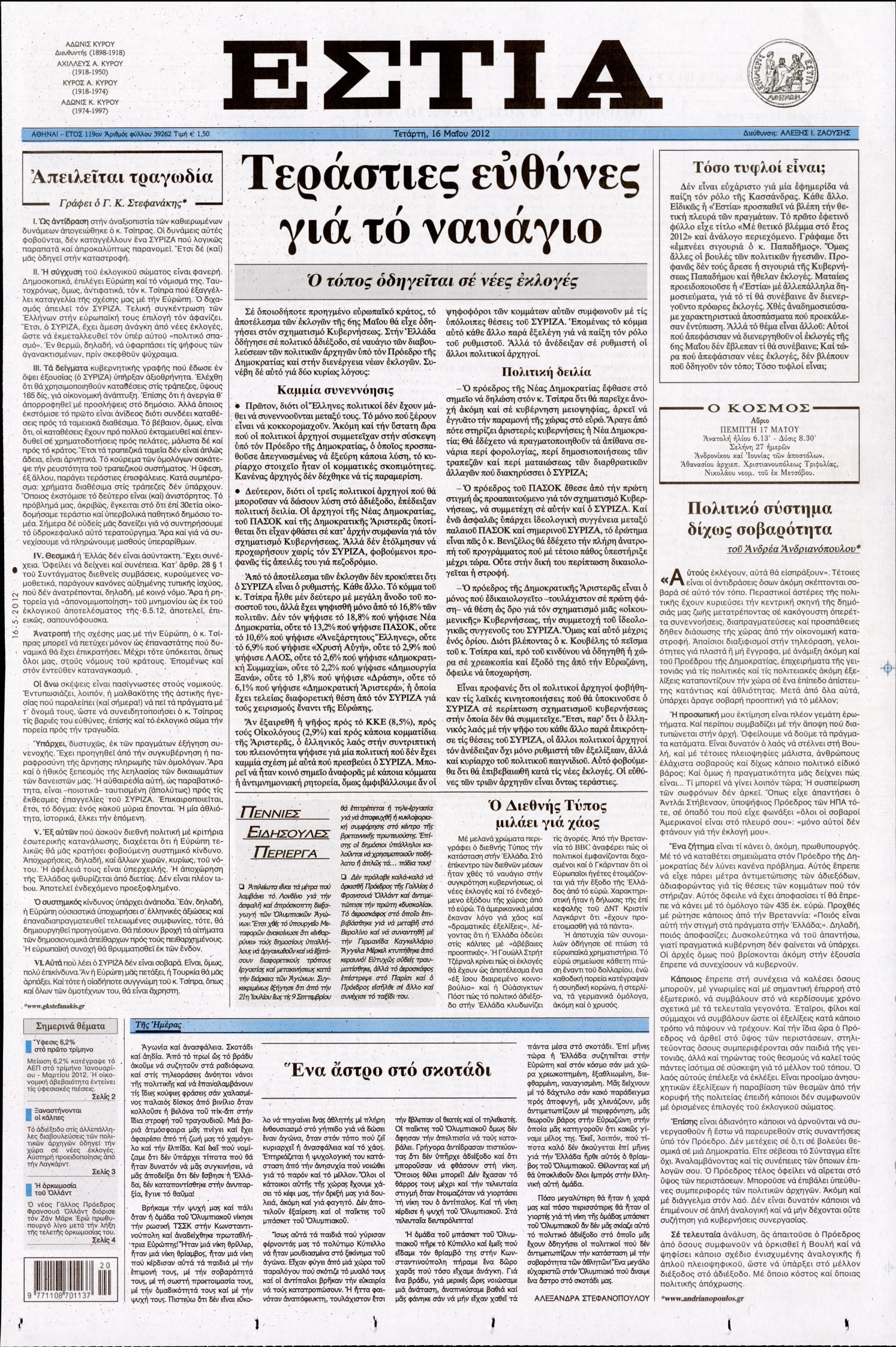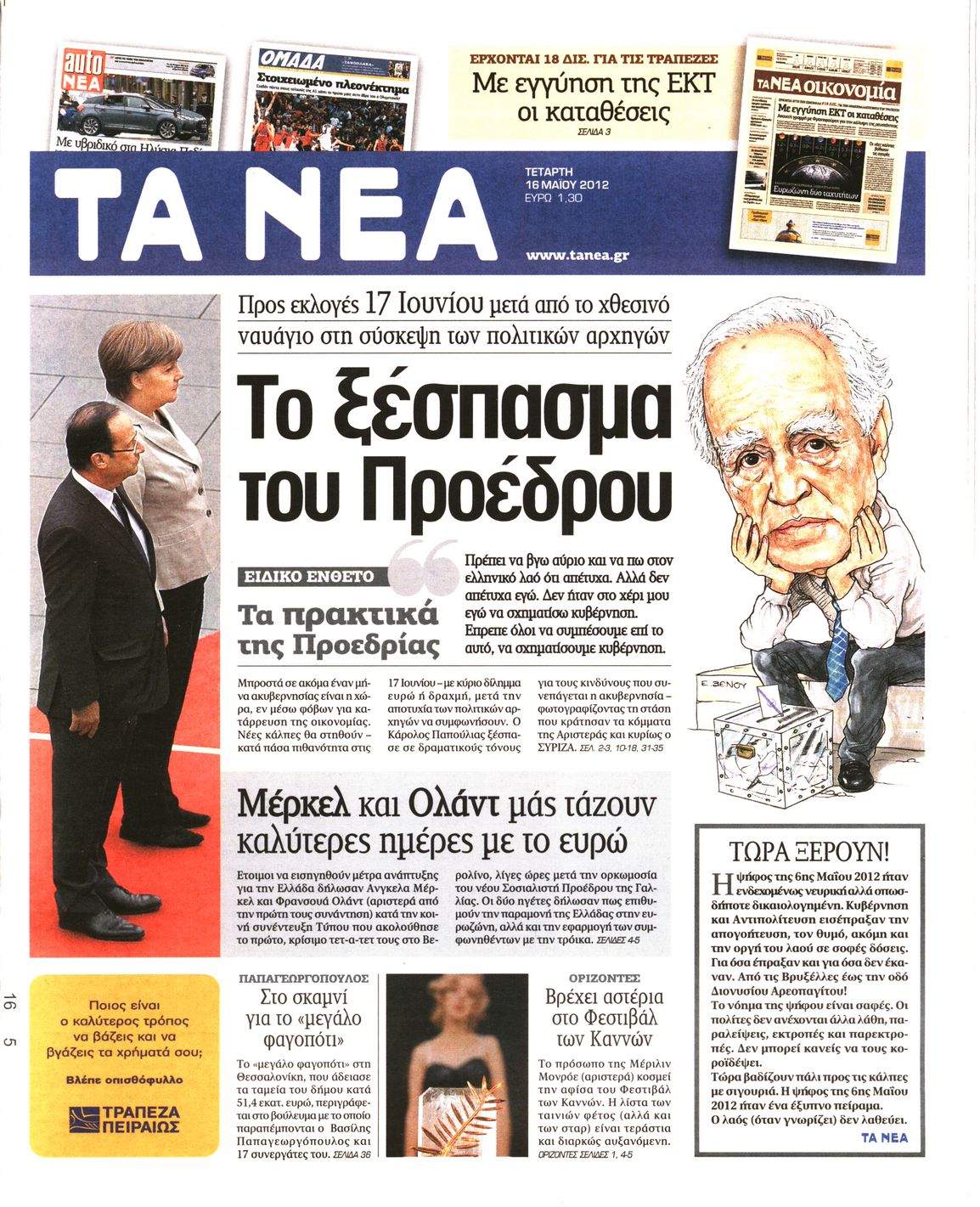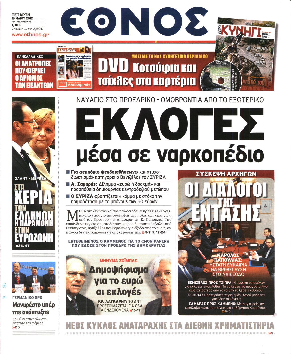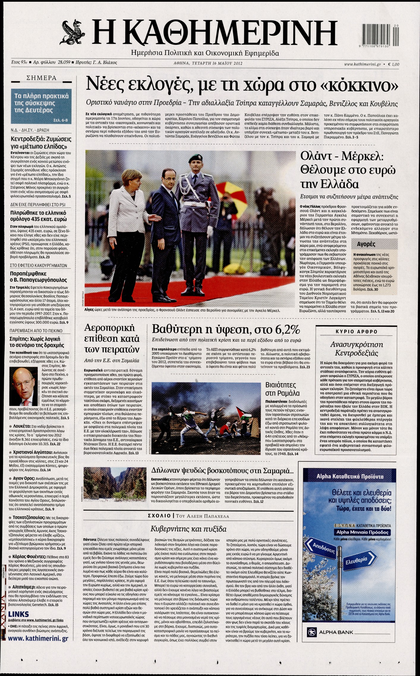 Τα πρωτοσέλιδα των εφημερίδων Enikos Newsroom 07:40, Τετάρτη 16 Μαΐου 2012 Media ΕΦΗΜΕΡΙΔΕΣ ΠΡΩΤΟΣΕΛΙΔΑ Μοιράσου το: σχολίασε κι εσύ (0 σχόλια) Ακολουθήστε το enikos.gr στο Google News και μάθετε πρώτοι όλες τις ειδήσεις Δείτε όλες τις τελευταίες ειδήσεις από την Ελλάδα και τον Κόσμο στο enikos.gr Ειδήσεις Ροή Ειδήσεων 3 ώρες πριν Αγρότες: «Όχι στον διάλογο, μας εμπαίζει η κυβέρνηση» – Αποφάσισαν κλιμάκωση των κινητοποιήσεων, τι θα γίνει τα Χριστούγεννα 4 ώρες πριν Την πρώτη Belharra παρέλαβε η χώρα μας, υψώθηκε η ελληνική σημαία στη φρεγάτα «Κίμων» – Δένδιας: «Το ισχυρότερο Πολεμικό Ναυτικό που είχε ποτέ ο ελληνισμός» 2 ώρες πριν Γιώργος Μαζωνάκης: «Έχει υποστεί ένα σωρό εκβιαστικές πρακτικές – Του είπαν ότι θα του βάλουν τον συγκεκριμένο άνθρωπο να τον καταγγείλει» 3 ώρες πριν Μιχάλης Χουρδάκης: «Είμαι διαθέσιμος να συμβάλω στην προσωρινή κάλυψη του ιατρείου της Ψερίμου» – Η επιστολή στον Άδωνι Γεωργιάδη 3 ώρες πριν Εξώδικο Γεωργιάδη στην Κωνσταντοπούλου – «Με κατηγόρησε ότι έχω καταδικαστεί για παιδεραστία» 1 ώρα πριν Γάμος: 11 ψυχρές αλλά ευγενικές φράσεις, που λέει ένας άνδρας όταν σκέφτεται τον χωρισμό 4 ώρες πριν Τα 5 ζώδια που θα ευνοηθούν στα οικονομικά τους το 2026 – «Τραβούν το χρήμα σαν μαγνήτες» 5 ώρες πριν Αυτό που κρύβεται κάτω από τη Γροιλανδία θα μπορούσε να ανατρέψει όσα γνωρίζουμε για την άνοδο της στάθμης των θαλασσών 1 ημέρα πριν 20 χρόνια τα Χριστούγεννα ξεκινούν στα Public με μεγάλη ποικιλία σε δώρα! 7 λεπτά πριν Σφουγγάρισμα: Η συνήθεια που θα σας βοηθήσει να διατηρήσετε το σπίτι σας καθαρό και τακτοποιημένο 12 λεπτά πριν Αθήνα: Εξαρθρώθηκε εγκληματική οργάνωση που διακινούσε ναρκωτικά σε μορφή σοκολάτας – Δύο τράπερ ανάμεσα στους 4 συλληφθέντες – ΒΙΝΤΕΟ 21 λεπτά πριν Στη φυλακή ο «Έλληνας Εσκομπάρ» και τρεις συνεργοί του για το φορτίο με την κοκαΐνη – Τι υποστήριξε στην απολογία του 26 λεπτά πριν ΕΕ: Καλεί τα Σκόπια να σέβονται τις δεσμεύσεις από τη διαδικασία ένταξης και το Διεθνές Δίκαιο – Η χρηματοδότηση του Διαδρόμου Χ 32 λεπτά πριν Σοκ στη Σουηδία: 12χρονος πληρωμένος δολοφόνος σκότωσε λάθος άτομο ENIKOS NETWORK Σκέφτεστε συνέχεια συζητήσεις που έχετε κάνει; Τι σημαίνει αυτό, σύμφωνα με ειδικό Ξεκίνησε η «επέλαση» της γρίπης στην Ελλάδα-Ποιοι κινδυνεύουν Κλιμάκωση των κινητοποιήσεων αποφάσισαν οι αγρότες, κλείνουν παρακαμπτήριους την Παρασκευή – Τι απαντά η κυβέρνηση Ευλογιά αιγοπροβάτων: Νέες αποζημιώσεις ύψους 26,02 εκατ. ευρώ σε κτηνοτρόφους – Η κατανομή ανά Περιφέρεια Χαρτογραφώντας το «σημείο χωρίς επιστροφή»: Για πρώτη φορά αποκαλύπτεται με λεπτομέρεια το ακανθώδες όριο της ατμόσφαιρας τ... Η Google καταργεί τη λειτουργία «dark web report» – Πώς θα μπορούν οι χρήστες να διαγράφουν τα δεδομένα τους περισσότερα 17:45 , Πέμπτη 18 Δεκεμβρίου 2025 ROUK ZOUK: Εορταστικό επεισόδιο με καλεσμένους τους πρωταγωνιστές του «Γιατί ρε πατέρα» Το Σάββατο 20 Δεκεμβρίου στις 21:00, η Ζέτα Μακρυπούλια υποδέχεται εκλεκτούς ηθοποιούς που όλο... 17:20 , Πέμπτη 18 Δεκεμβρίου 2025 Άγιος έρωτας: Η Χριστίνα εξομολογείται στον πατέρα Νικόλαο, απόψε στις 21:00 στον Alpha Η Νότα αποφασίζει να εκδικηθεί τον Πέτρο και τον Στέφανο, για χάρη του Λούη, όμως τα πράγματα ... 16:50 , Πέμπτη 18 Δεκεμβρίου 2025 Να μ’ αγαπάς: Ζωή και Φωτεινή συμφιλιώνονται ως μάνα με κόρη, απόψε στις 20:00 Η ταυτότητα του Άγγελου αποκαλύπτεται στο νέο επεισόδιο της σειράς “Να μ’ αγαπάς... 15:52 , Πέμπτη 18 Δεκεμβρίου 2025 Το Σπίτι Δίπλα Στο Ποτάμι: Τ