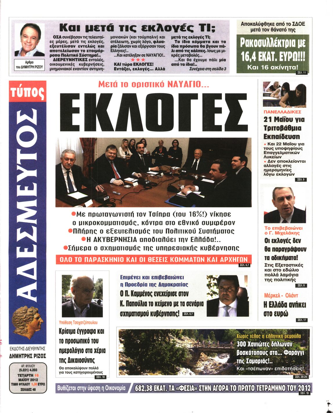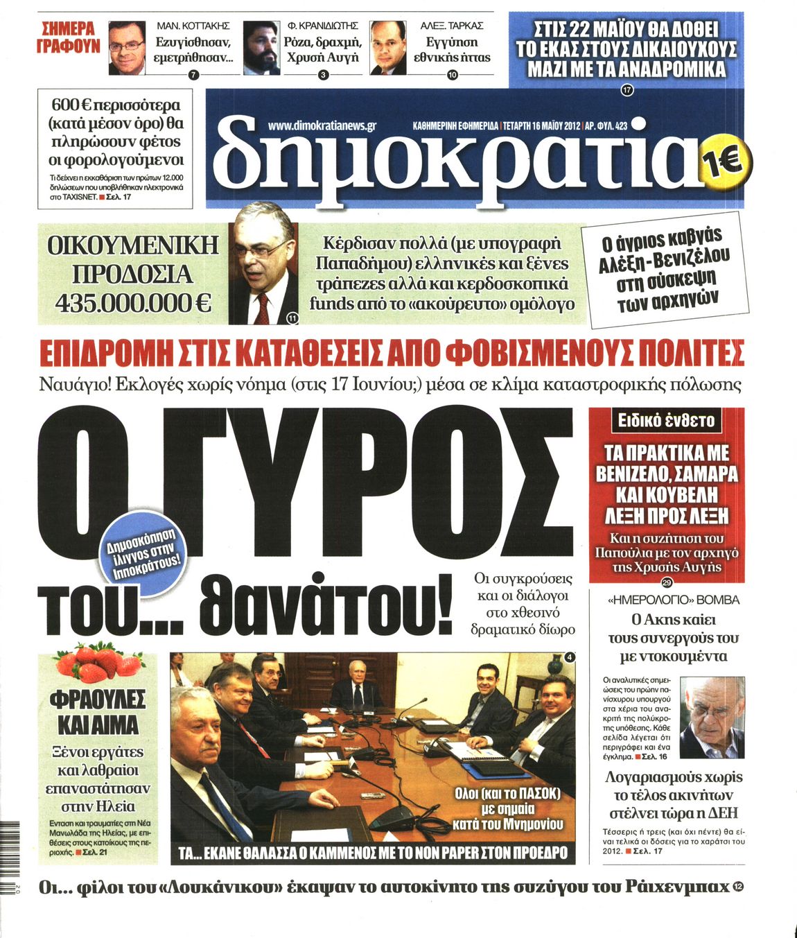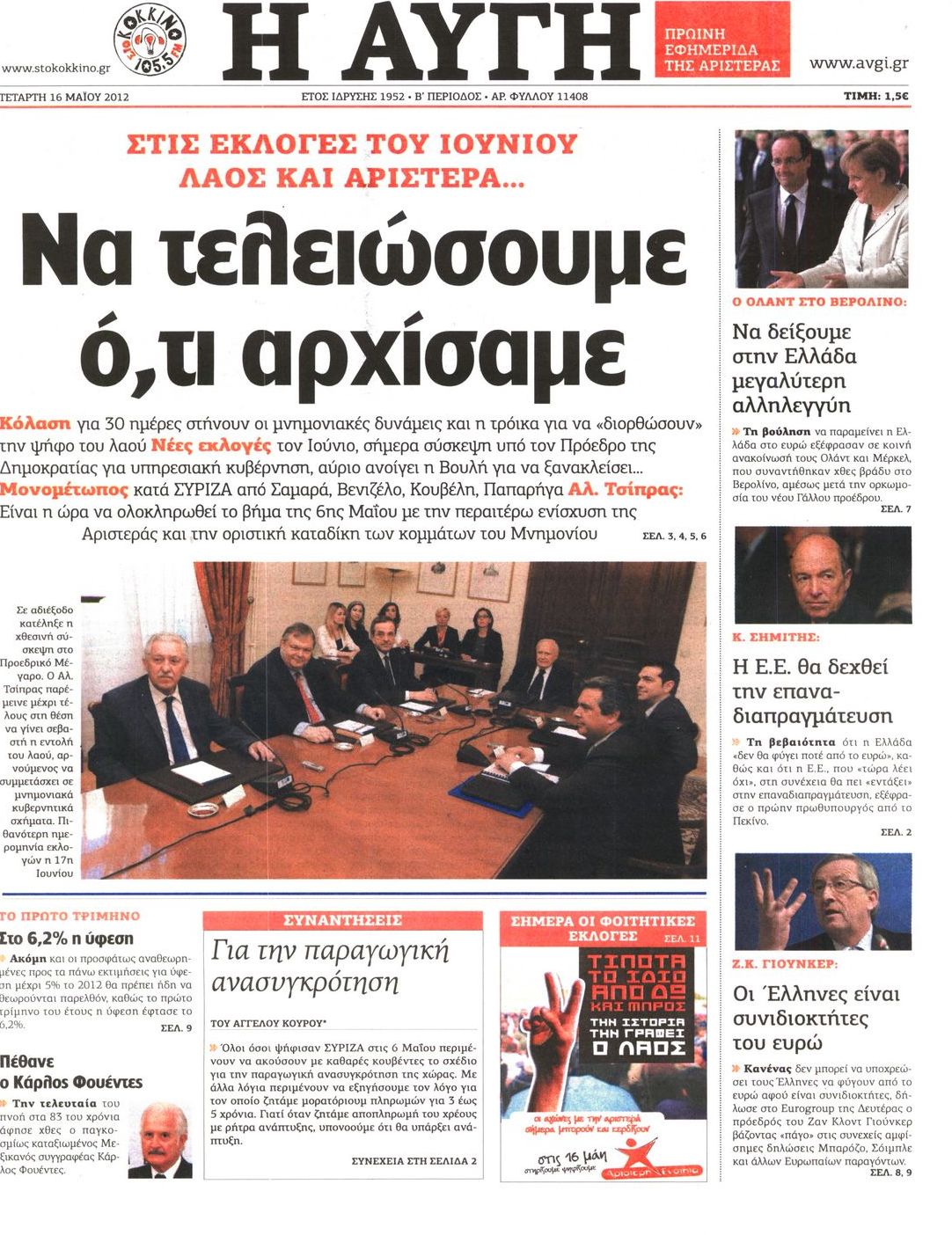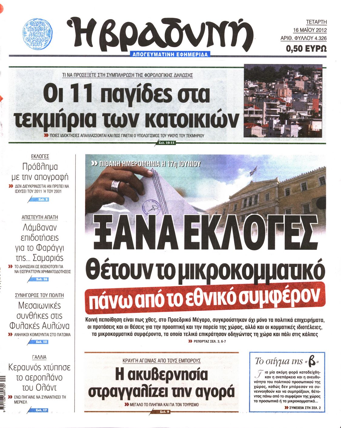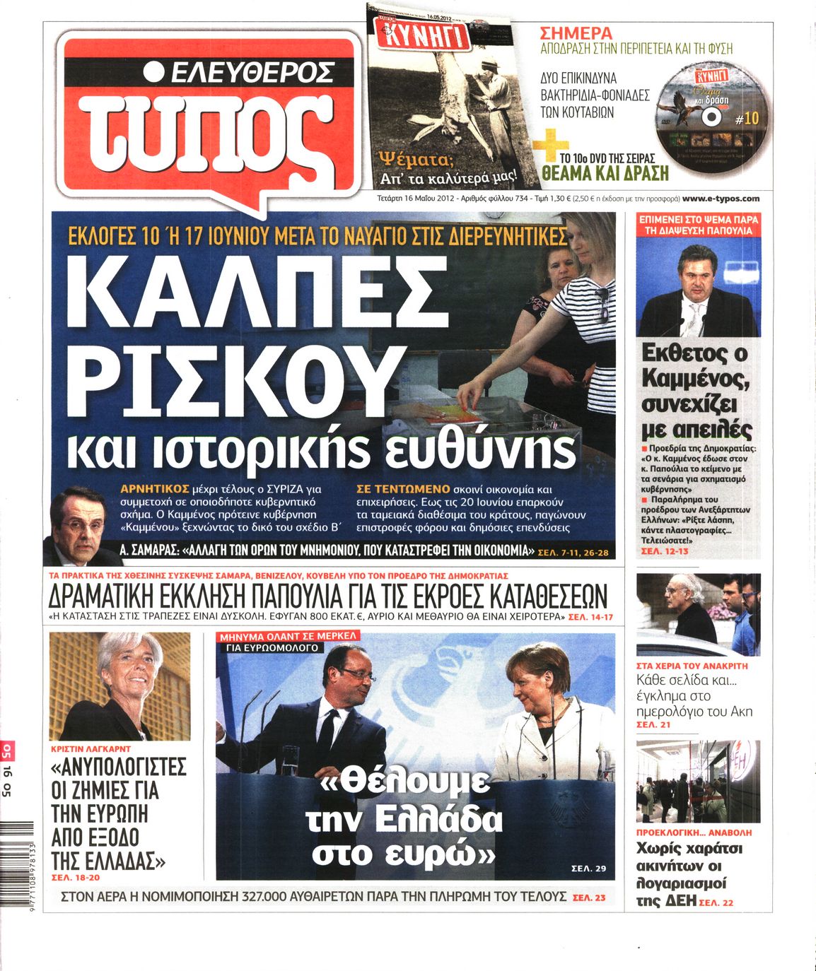 Τα πρωτοσέλιδα των εφημερίδων Enikos Newsroom 07:40, Τετάρτη 16 Μαΐου 2012 Media ΕΦΗΜΕΡΙΔΕΣ ΠΡΩΤΟΣΕΛΙΔΑ Μοιράσου το: σχολίασε κι εσύ (0 σχόλια) Ακολουθήστε το enikos.gr στο Google News και μάθετε πρώτοι όλες τις ειδήσεις Δείτε όλες τις τελευταίες ειδήσεις από την Ελλάδα και τον Κόσμο στο enikos.gr Ειδήσεις Ροή Ειδήσεων 3 ώρες πριν Αγρότες: «Όχι στον διάλογο, μας εμπαίζει η κυβέρνηση» – Αποφάσισαν κλιμάκωση των κινητοποιήσεων, τι θα γίνει τα Χριστούγεννα 4 ώρες πριν Την πρώτη Belharra παρέλαβε η χώρα μας, υψώθηκε η ελληνική σημαία στη φρεγάτα «Κίμων» – Δένδιας: «Το ισχυρότερο Πολεμικό Ναυτικό που είχε ποτέ ο ελληνισμός» 2 ώρες πριν Γιώργος Μαζωνάκης: «Έχει υποστεί ένα σωρό εκβιαστικές πρακτικές – Του είπαν ότι θα του βάλουν τον συγκεκριμένο άνθρωπο να τον καταγγείλει» 3 ώρες πριν Μιχάλης Χουρδάκης: «Είμαι διαθέσιμος να συμβάλω στην προσωρινή κάλυψη του ιατρείου της Ψερίμου» – Η επιστολή στον Άδωνι Γεωργιάδη 3 ώρες πριν Εξώδικο Γεωργιάδη στην Κωνσταντοπούλου – «Με κατηγόρησε ότι έχω καταδικαστεί για παιδεραστία» 1 ώρα πριν Γάμος: 11 ψυχρές αλλά ευγενικές φράσεις, που λέει ένας άνδρας όταν σκέφτεται τον χωρισμό 4 ώρες πριν Τα 5 ζώδια που θα ευνοηθούν στα οικονομικά τους το 2026 – «Τραβούν το χρήμα σαν μαγνήτες» 5 ώρες πριν Αυτό που κρύβεται κάτω από τη Γροιλανδία θα μπορούσε να ανατρέψει όσα γνωρίζουμε για την άνοδο της στάθμης των θαλασσών 1 ημέρα πριν 20 χρόνια τα Χριστούγεννα ξεκινούν στα Public με μεγάλη ποικιλία σε δώρα! 7 λεπτά πριν Σφουγγάρισμα: Η συνήθεια που θα σας βοηθήσει να διατηρήσετε το σπίτι σας καθαρό και τακτοποιημένο 12 λεπτά πριν Αθήνα: Εξαρθρώθηκε εγκληματική οργάνωση που διακινούσε ναρκωτικά σε μορφή σοκολάτας – Δύο τράπερ ανάμεσα στους 4 συλληφθέντες – ΒΙΝΤΕΟ 21 λεπτά πριν Στη φυλακή ο «Έλληνας Εσκομπάρ» και τρεις συνεργοί του για το φορτίο με την κοκαΐνη – Τι υποστήριξε στην απολογία του 26 λεπτά πριν ΕΕ: Καλεί τα Σκόπια να σέβονται τις δεσμεύσεις από τη διαδικασία ένταξης και το Διεθνές Δίκαιο – Η χρηματοδότηση του Διαδρόμου Χ 32 λεπτά πριν Σοκ στη Σουηδία: 12χρονος πληρωμένος δολοφόνος σκότωσε λάθος άτομο ENIKOS NETWORK Σκέφτεστε συνέχεια συζητήσεις που έχετε κάνει; Τι σημαίνει αυτό, σύμφωνα με ειδικό Ξεκίνησε η «επέλαση» της γρίπης στην Ελλάδα-Ποιοι κινδυνεύουν Κλιμάκωση των κινητοποιήσεων αποφάσισαν οι αγρότες, κλείνουν παρακαμπτήριους την Παρασκευή – Τι απαντά η κυβέρνηση Ευλογιά αιγοπροβάτων: Νέες αποζημιώσεις ύψους 26,02 εκατ. ευρώ σε κτηνοτρόφους – Η κατανομή ανά Περιφέρεια Χαρτογραφώντας το «σημείο χωρίς επιστροφή»: Για πρώτη φορά αποκαλύπτεται με λεπτομέρεια το ακανθώδες όριο της ατμόσφαιρας τ... Η Google καταργεί τη λειτουργία «dark web report» – Πώς θα μπορούν οι χρήστες να διαγράφουν τα δεδομένα τους περισσότερα 17:45 , Πέμπτη 18 Δεκεμβρίου 2025 ROUK ZOUK: Εορταστικό επεισόδιο με καλεσμένους τους πρωταγωνιστές του «Γιατί ρε πατέρα» Το Σάββατο 20 Δεκεμβρίου στις 21:00, η Ζέτα Μακρυπούλια υποδέχεται εκλεκτούς ηθοποιούς που όλο... 17:20 , Πέμπτη 18 Δεκεμβρίου 2025 Άγιος έρωτας: Η Χριστίνα εξομολογείται στον πατέρα Νικόλαο, απόψε στις 21:00 στον Alpha Η Νότα αποφασίζει να εκδικηθεί τον Πέτρο και τον Στέφανο, για χάρη του Λούη, όμως τα πράγματα ... 16:50 , Πέμπτη 18 Δεκεμβρίου 2025 Να μ’ αγαπάς: Ζωή και Φωτεινή συμφιλιώνονται ως μάνα με κόρη, απόψε στις 20:00 Η ταυτότητα του Άγγελου αποκαλύπτεται στο νέο επεισόδιο της σειράς “Να μ’ αγαπάς... 15:52 , Πέμπτη 18 Δεκεμβρίου 2025 Το Σπίτι Δίπλα Στο Ποτάμι: Τ