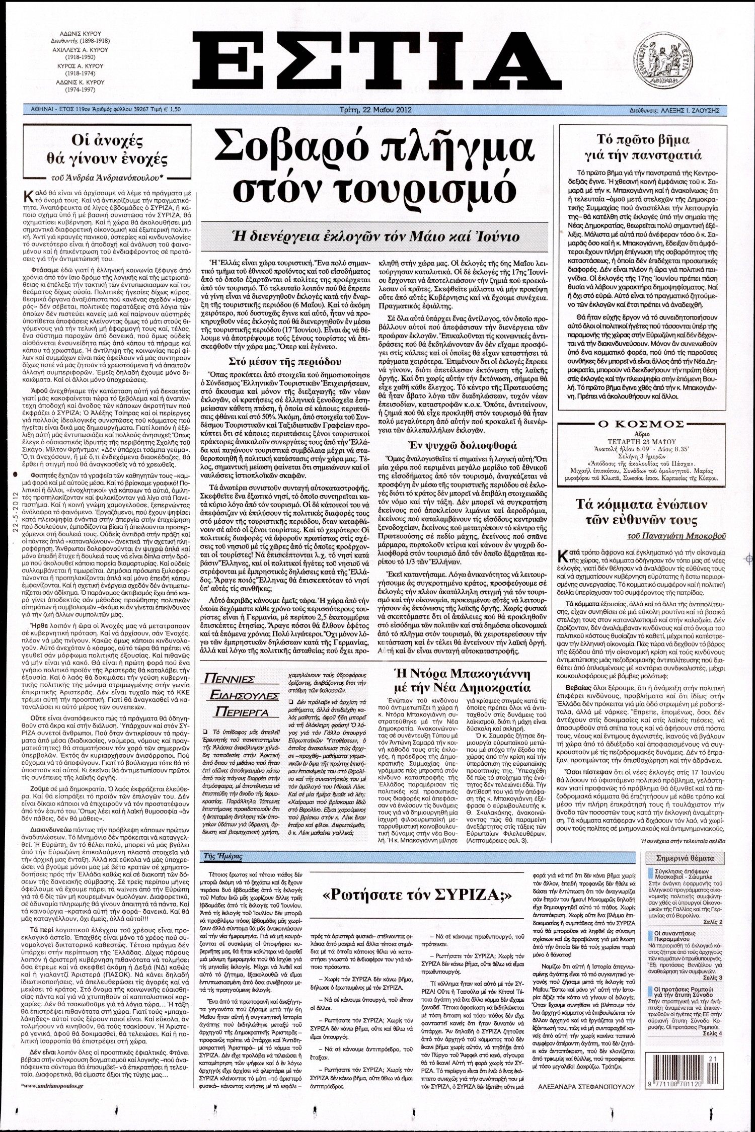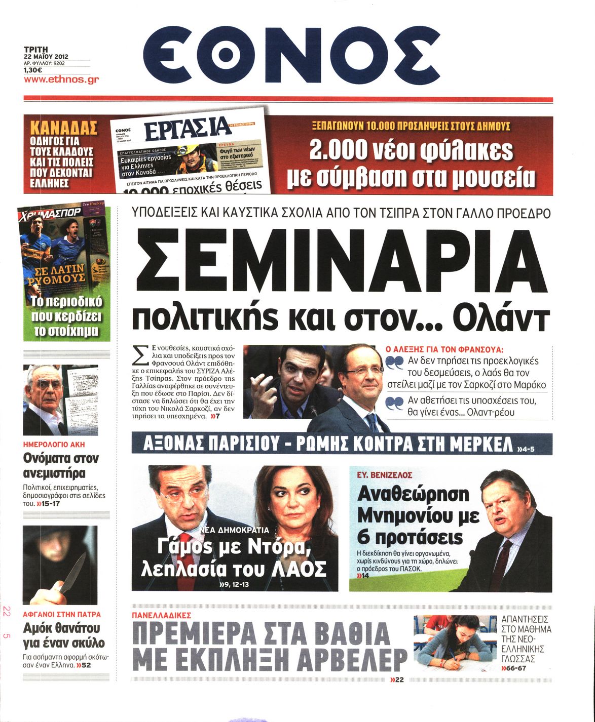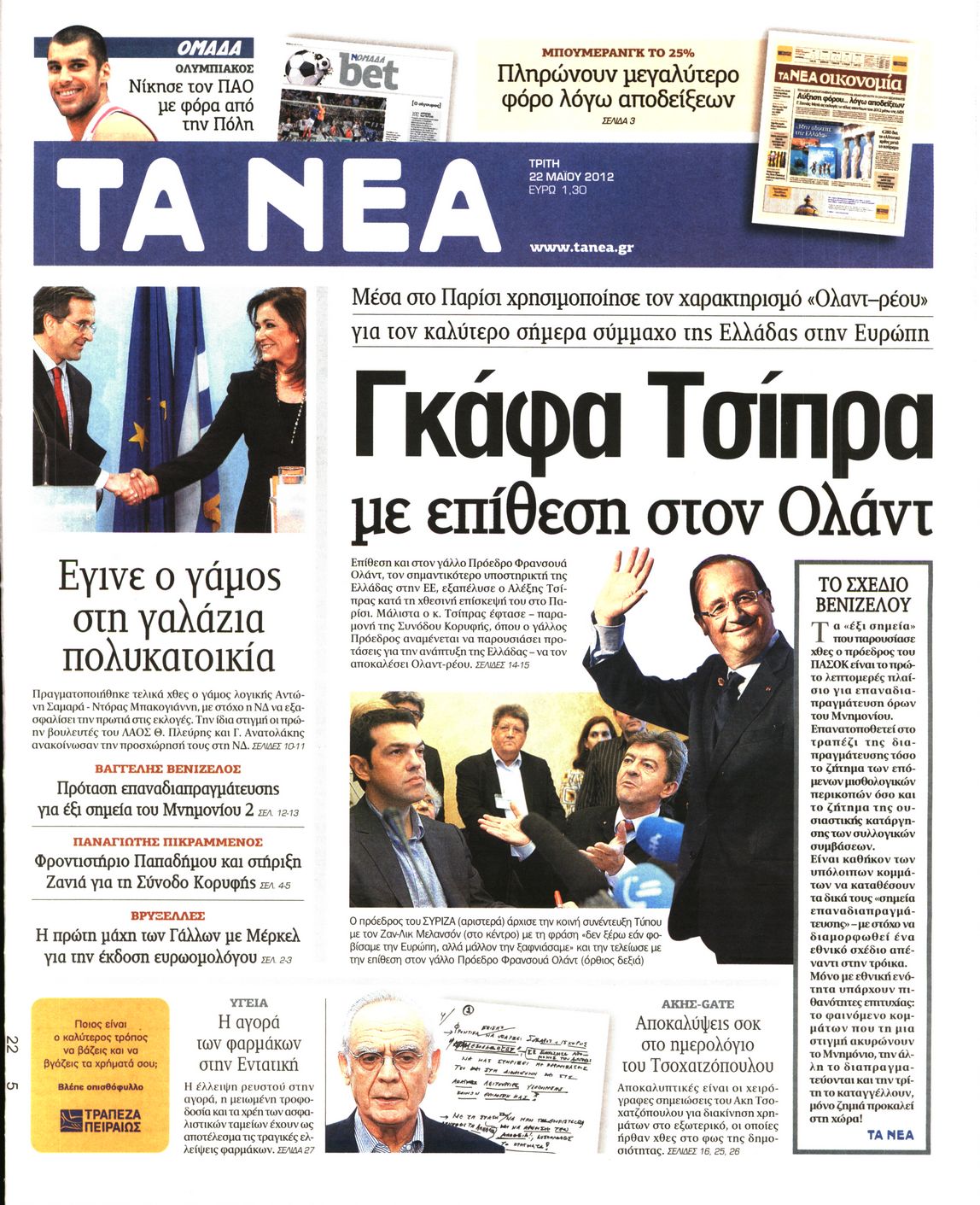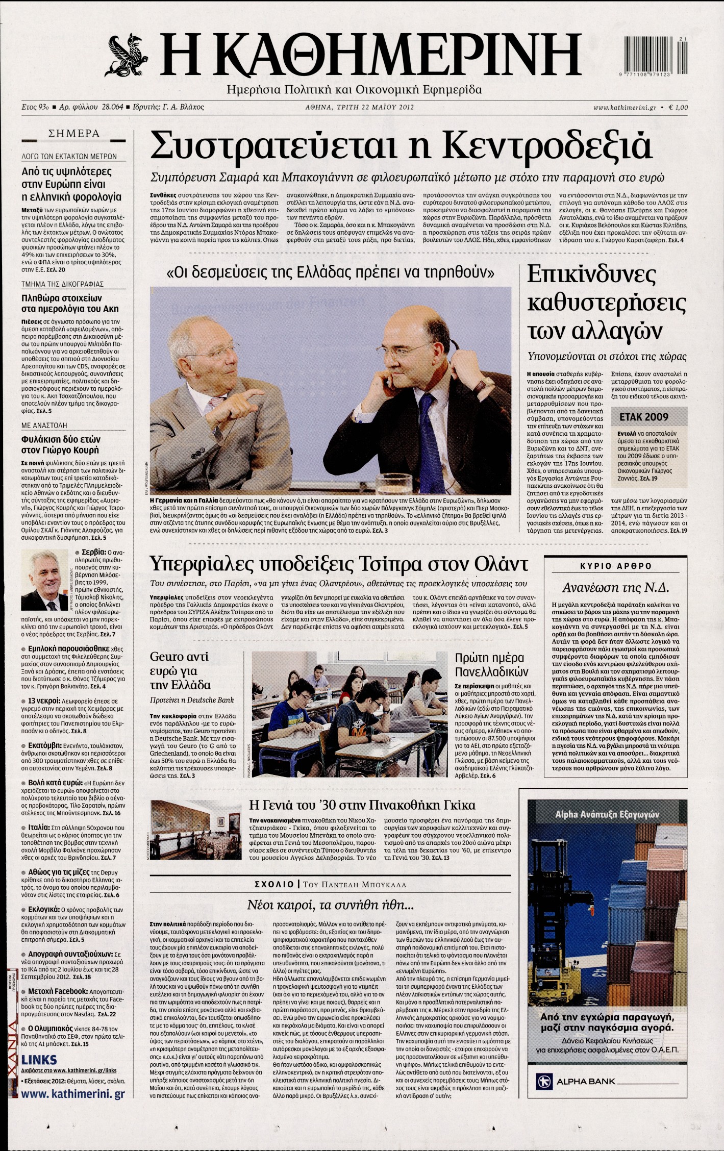 Τα πρωτοσέλιδα των εφημερίδων Enikos Newsroom 07:28, Τρίτη 22 Μαΐου 2012 Media ΕΦΗΜΕΡΙΔΕΣ ΠΡΩΤΟΣΕΛΙΔΑ Μοιράσου το: σχολίασε κι εσύ (0 σχόλια) Ακολουθήστε το enikos.gr στο Google News και μάθετε πρώτοι όλες τις ειδήσεις Δείτε όλες τις τελευταίες ειδήσεις από την Ελλάδα και τον Κόσμο στο enikos.gr Ειδήσεις Ροή Ειδήσεων 10 λεπτά πριν Κλιμακώνουν από σήμερα τις κινητοποιήσεις οι αγρότες: Νέα μπλόκα, κλείσιμο παρακαμπτηρίων και άνοιγμα διοδίων – Το νέο μήνυμα Μητσοτάκη 37 λεπτά πριν Συντάξεις: Οι κερδισμένοι και οι χαμένοι από τις αυξήσεις – Αναλυτικός οδηγός και παραδείγματα 4 ώρες πριν Ευρωπαϊκή Ένωση: Συμφωνία για δάνειο 90 δισ. ευρώ στην Ουκρανία τη διετία 2026-2027 – Μητσοτάκης: Η λύση που προκρίθηκε είναι η ενδεδειγμένη 56 λεπτά πριν Θανατηφόρο τροχαίο στη Νέα Φιλαδέλφεια: Νεκρός 27χρονος οδηγός μηχανής ύστερα από σύγκρουση με τρόλεϊ 8 ώρες πριν ΟΠΕΚΕΠΕ: Προφυλακιστέος ο φερόμενος αρχηγός και ο λογιστής της εγκληματικής οργάνωσης 2 ώρες πριν Οπτική ψευδαίσθηση: Μόνο αν έχεις αετίσια ματιά θα βρεις τον παπαγάλο σε 12 δευτερόλεπτα 2 ώρες πριν Κρύα χέρια και πόδια: Γιατρός εξηγεί ποια είναι η αίτια και πότε πρέπει να ανησυχήσετε 2 ώρες πριν Τα ζώδια σήμερα, Παρασκευή 19 Δεκεμβρίου: Τοξότες, με τη Νέα Σελήνη έρχεται η προσωπική ανανέωσή σας 2 ημέρες πριν 20 χρόνια τα Χριστούγεννα ξεκινούν στα Public με μεγάλη ποικιλία σε δώρα! 3 λεπτά πριν Την Κυριακή με τη Realnews: Δωροεπιταγή 10€ 3 λεπτά πριν Πανεπιστήμιο Μπράουν: Νεκρός ο ύποπτος για την επίθεση 9 λεπτά πριν Τέμπη: Συνεχίζεται σήμερα η δίκη για τη διαχείριση του βιντεοληπτικού υλικού 10 λεπτά πριν Κλιμακώνουν από σήμερα τις κινητοποιήσεις οι αγρότες: Νέα μπλόκα, κλείσιμο παρακαμπτηρίων και άνοιγμα διοδίων – Το νέο μήνυμα Μητσοτάκη 18 λεπτά πριν e-ΕΦΚΑ και ΔΥΠΑ: Τελευταία ημέρα πληρωμών σήμερα ENIKOS NETWORK Άνοια: Ειδικοί προειδοποιούν για 5 κοινές συνήθειες που μπορεί να αυξήσουν τον κίνδυνο 6 Χριστουγεννιάτικα δώρα για όσους τα έχουν όλα – Θα τους εκπλήξουν Συντάξεις: Οι κερδισμένοι και οι χαμένοι από τις αυξήσεις – Αναλυτικός οδηγός Στεγαστικό: Τι λέει η ΠΟΜΙΔΑ για τα νέα μέτρα που ανακοίνωσε ο Κυριάκος Μητσοτάκης Χαρτογραφώντας το «σημείο χωρίς επιστροφή»: Για πρώτη φορά αποκαλύπτεται με λεπτομέρεια το ακανθώδες όριο της ατμόσφαιρας τ... Η Google καταργεί τη λειτουργία «dark web report» – Πώς θα μπορούν οι χρήστες να διαγράφουν τα δεδομένα τους περισσότερα 05:48 , Παρασκευή 19 Δεκεμβρίου 2025 Οι οικονομικές εφημερίδες 19/12/2025 Διαβάστε τα πρωτοσέλιδα από τις οικονομικές εφημερίδες, σήμερα 19/12/2025. 05:43 , Παρασκευή 19 Δεκεμβρίου 2025 Οι αθλητικές εφημερίδες 19/12/2025 Διαβάστε τα πρωτοσέλιδα από τις αθλητικές εφημερίδες, σήμερα 19/12/2025. 05:38 , Παρασκευή 19 Δεκεμβρίου 2025 Οι πολιτικές εφημερίδες 19/12/2025 Διαβάστε τα πρωτοσέλιδα από τις πολιτικές εφημερίδες, σήμερα 19/12/2025. 02:50 , Παρασκευή 19 Δεκεμβρίου 2025 GNTM: «Κλείδωσαν» οι τέσσερις φιναλίστ – Μεγάλη ανατροπή στις τελευταίες αποχωρήσεις Για προτελευταία φορά εμφανίστηκαν στο πλατό του GNTM οι φιναλίστ του φετινού κύκλου, το βράδυ... ΤΕΛΕΥΤΑΙΕΣ ΕΙΔΗΣΕΙΣ 3 λεπτά πριν Πανεπιστήμιο Μπράουν: Νεκρός ο ύποπτος για την επίθεση 9 λεπτά πριν Τέμπη: Συνεχίζεται σήμερα η δίκη για τη διαχείριση του... 10 λεπτά πριν Κλιμακώνουν από σήμερα τις κινητοποιήσεις οι αγρότες:... 18 λεπτά πριν e-ΕΦΚΑ και ΔΥΠΑ: Τελευταία ημέρα πληρωμών σήμερα 25 λεπτά πριν Καιρός: Ηλιοφάνεια σήμερα – Έρχονται κρύο, βροχές... 32 λεπτά πριν Ελλάδα – Γαλλία προς υπογραφή νέας αν