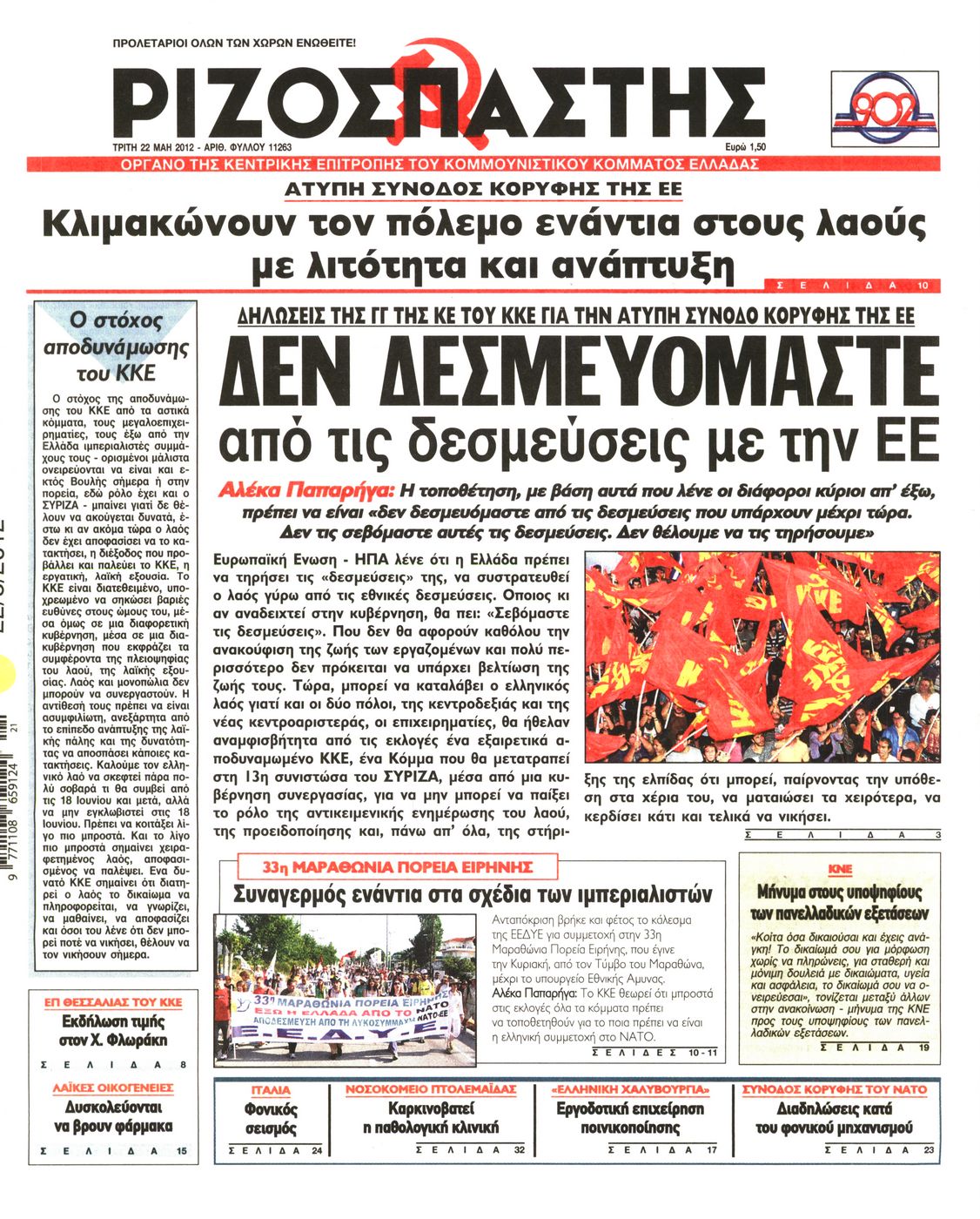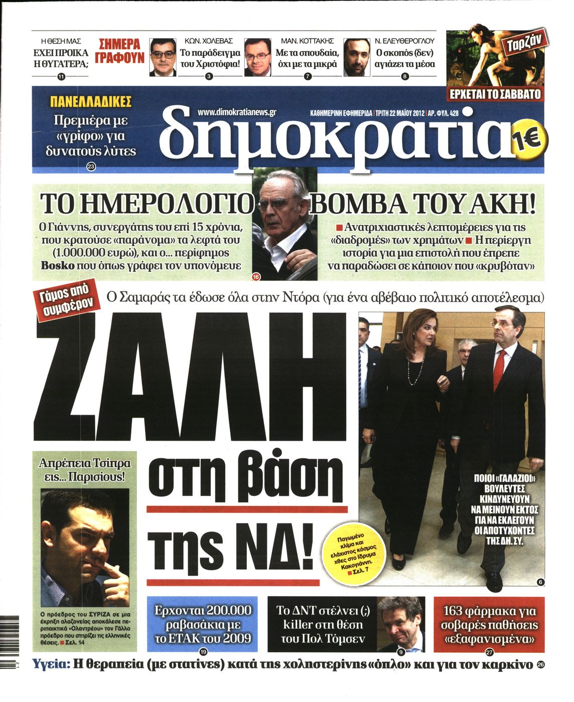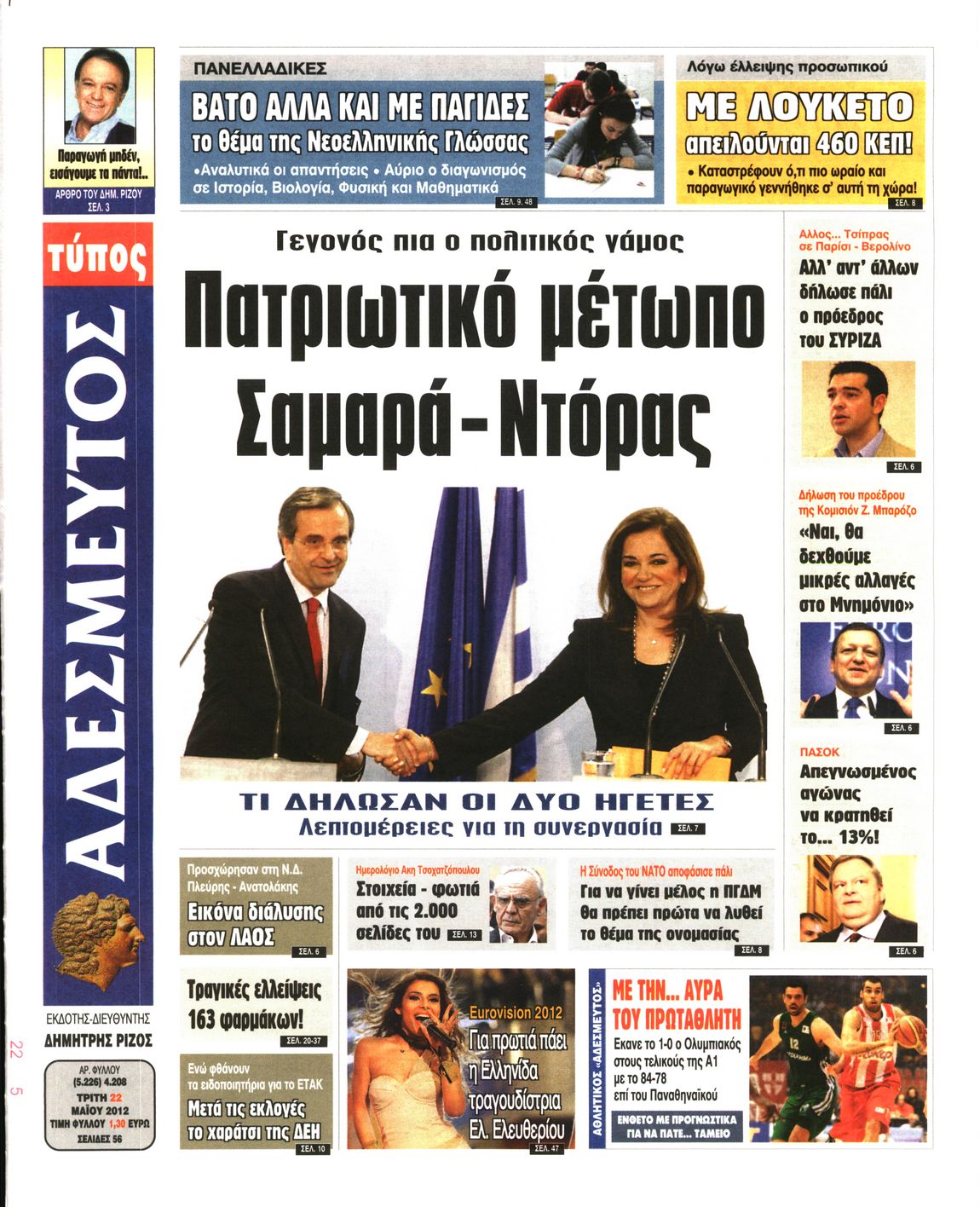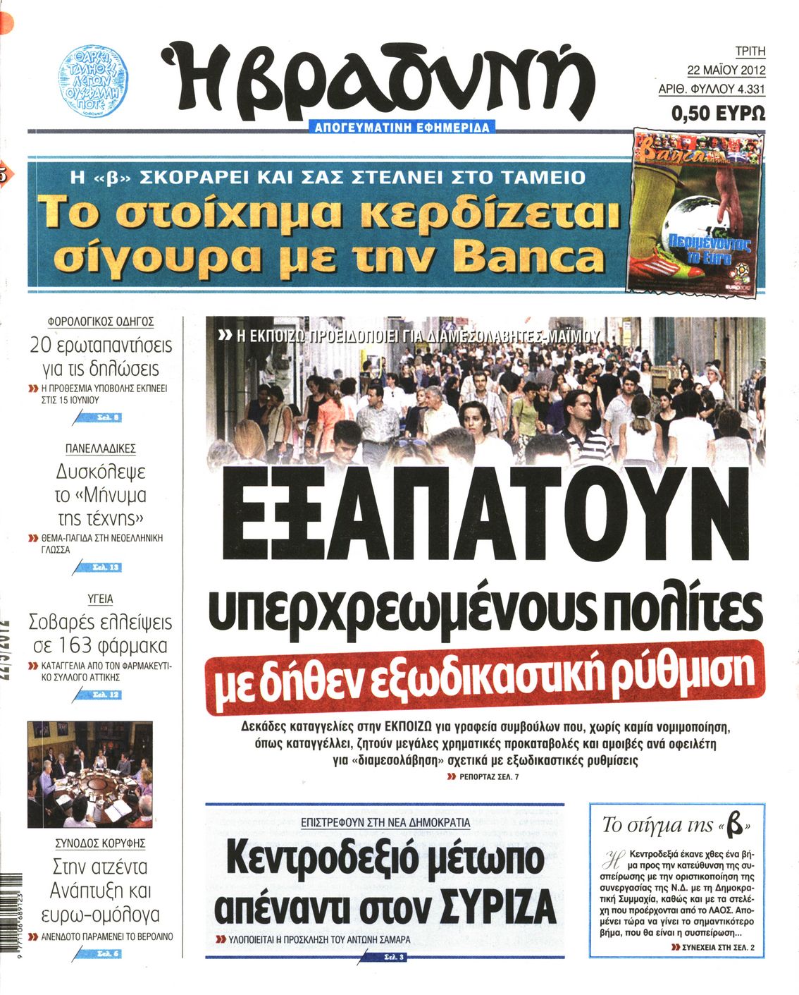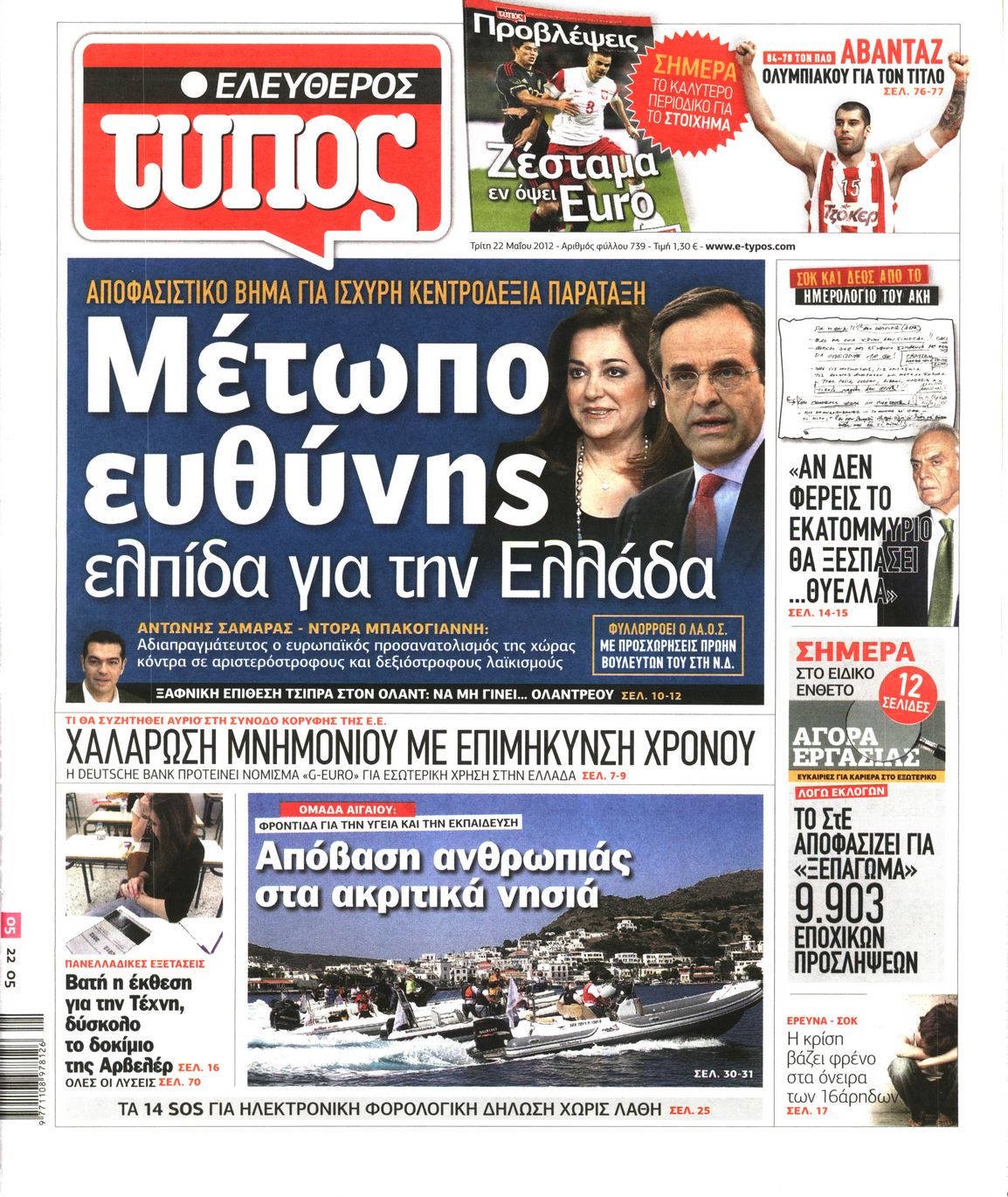 Τα πρωτοσέλιδα των εφημερίδων Enikos Newsroom 07:28, Τρίτη 22 Μαΐου 2012 Media ΕΦΗΜΕΡΙΔΕΣ ΠΡΩΤΟΣΕΛΙΔΑ Μοιράσου το: σχολίασε κι εσύ (0 σχόλια) Ακολουθήστε το enikos.gr στο Google News και μάθετε πρώτοι όλες τις ειδήσεις Δείτε όλες τις τελευταίες ειδήσεις από την Ελλάδα και τον Κόσμο στο enikos.gr Ειδήσεις Ροή Ειδήσεων 10 λεπτά πριν Κλιμακώνουν από σήμερα τις κινητοποιήσεις οι αγρότες: Νέα μπλόκα, κλείσιμο παρακαμπτηρίων και άνοιγμα διοδίων – Το νέο μήνυμα Μητσοτάκη 37 λεπτά πριν Συντάξεις: Οι κερδισμένοι και οι χαμένοι από τις αυξήσεις – Αναλυτικός οδηγός και παραδείγματα 4 ώρες πριν Ευρωπαϊκή Ένωση: Συμφωνία για δάνειο 90 δισ. ευρώ στην Ουκρανία τη διετία 2026-2027 – Μητσοτάκης: Η λύση που προκρίθηκε είναι η ενδεδειγμένη 56 λεπτά πριν Θανατηφόρο τροχαίο στη Νέα Φιλαδέλφεια: Νεκρός 27χρονος οδηγός μηχανής ύστερα από σύγκρουση με τρόλεϊ 8 ώρες πριν ΟΠΕΚΕΠΕ: Προφυλακιστέος ο φερόμενος αρχηγός και ο λογιστής της εγκληματικής οργάνωσης 2 ώρες πριν Οπτική ψευδαίσθηση: Μόνο αν έχεις αετίσια ματιά θα βρεις τον παπαγάλο σε 12 δευτερόλεπτα 2 ώρες πριν Κρύα χέρια και πόδια: Γιατρός εξηγεί ποια είναι η αίτια και πότε πρέπει να ανησυχήσετε 2 ώρες πριν Τα ζώδια σήμερα, Παρασκευή 19 Δεκεμβρίου: Τοξότες, με τη Νέα Σελήνη έρχεται η προσωπική ανανέωσή σας 2 ημέρες πριν 20 χρόνια τα Χριστούγεννα ξεκινούν στα Public με μεγάλη ποικιλία σε δώρα! 3 λεπτά πριν Την Κυριακή με τη Realnews: Δωροεπιταγή 10€ 3 λεπτά πριν Πανεπιστήμιο Μπράουν: Νεκρός ο ύποπτος για την επίθεση 9 λεπτά πριν Τέμπη: Συνεχίζεται σήμερα η δίκη για τη διαχείριση του βιντεοληπτικού υλικού 10 λεπτά πριν Κλιμακώνουν από σήμερα τις κινητοποιήσεις οι αγρότες: Νέα μπλόκα, κλείσιμο παρακαμπτηρίων και άνοιγμα διοδίων – Το νέο μήνυμα Μητσοτάκη 18 λεπτά πριν e-ΕΦΚΑ και ΔΥΠΑ: Τελευταία ημέρα πληρωμών σήμερα ENIKOS NETWORK Άνοια: Ειδικοί προειδοποιούν για 5 κοινές συνήθειες που μπορεί να αυξήσουν τον κίνδυνο 6 Χριστουγεννιάτικα δώρα για όσους τα έχουν όλα – Θα τους εκπλήξουν Συντάξεις: Οι κερδισμένοι και οι χαμένοι από τις αυξήσεις – Αναλυτικός οδηγός Στεγαστικό: Τι λέει η ΠΟΜΙΔΑ για τα νέα μέτρα που ανακοίνωσε ο Κυριάκος Μητσοτάκης Χαρτογραφώντας το «σημείο χωρίς επιστροφή»: Για πρώτη φορά αποκαλύπτεται με λεπτομέρεια το ακανθώδες όριο της ατμόσφαιρας τ... Η Google καταργεί τη λειτουργία «dark web report» – Πώς θα μπορούν οι χρήστες να διαγράφουν τα δεδομένα τους περισσότερα 05:48 , Παρασκευή 19 Δεκεμβρίου 2025 Οι οικονομικές εφημερίδες 19/12/2025 Διαβάστε τα πρωτοσέλιδα από τις οικονομικές εφημερίδες, σήμερα 19/12/2025. 05:43 , Παρασκευή 19 Δεκεμβρίου 2025 Οι αθλητικές εφημερίδες 19/12/2025 Διαβάστε τα πρωτοσέλιδα από τις αθλητικές εφημερίδες, σήμερα 19/12/2025. 05:38 , Παρασκευή 19 Δεκεμβρίου 2025 Οι πολιτικές εφημερίδες 19/12/2025 Διαβάστε τα πρωτοσέλιδα από τις πολιτικές εφημερίδες, σήμερα 19/12/2025. 02:50 , Παρασκευή 19 Δεκεμβρίου 2025 GNTM: «Κλείδωσαν» οι τέσσερις φιναλίστ – Μεγάλη ανατροπή στις τελευταίες αποχωρήσεις Για προτελευταία φορά εμφανίστηκαν στο πλατό του GNTM οι φιναλίστ του φετινού κύκλου, το βράδυ... ΤΕΛΕΥΤΑΙΕΣ ΕΙΔΗΣΕΙΣ 3 λεπτά πριν Πανεπιστήμιο Μπράουν: Νεκρός ο ύποπτος για την επίθεση 9 λεπτά πριν Τέμπη: Συνεχίζεται σήμερα η δίκη για τη διαχείριση του... 10 λεπτά πριν Κλιμακώνουν από σήμερα τις κινητοποιήσεις οι αγρότες:... 18 λεπτά πριν e-ΕΦΚΑ και ΔΥΠΑ: Τελευταία ημέρα πληρωμών σήμερα 25 λεπτά πριν Καιρός: Ηλιοφάνεια σήμερα – Έρχονται κρύο, βροχές... 32 λεπτά πριν Ελλάδα – Γαλλία προς υπογραφή νέας αν