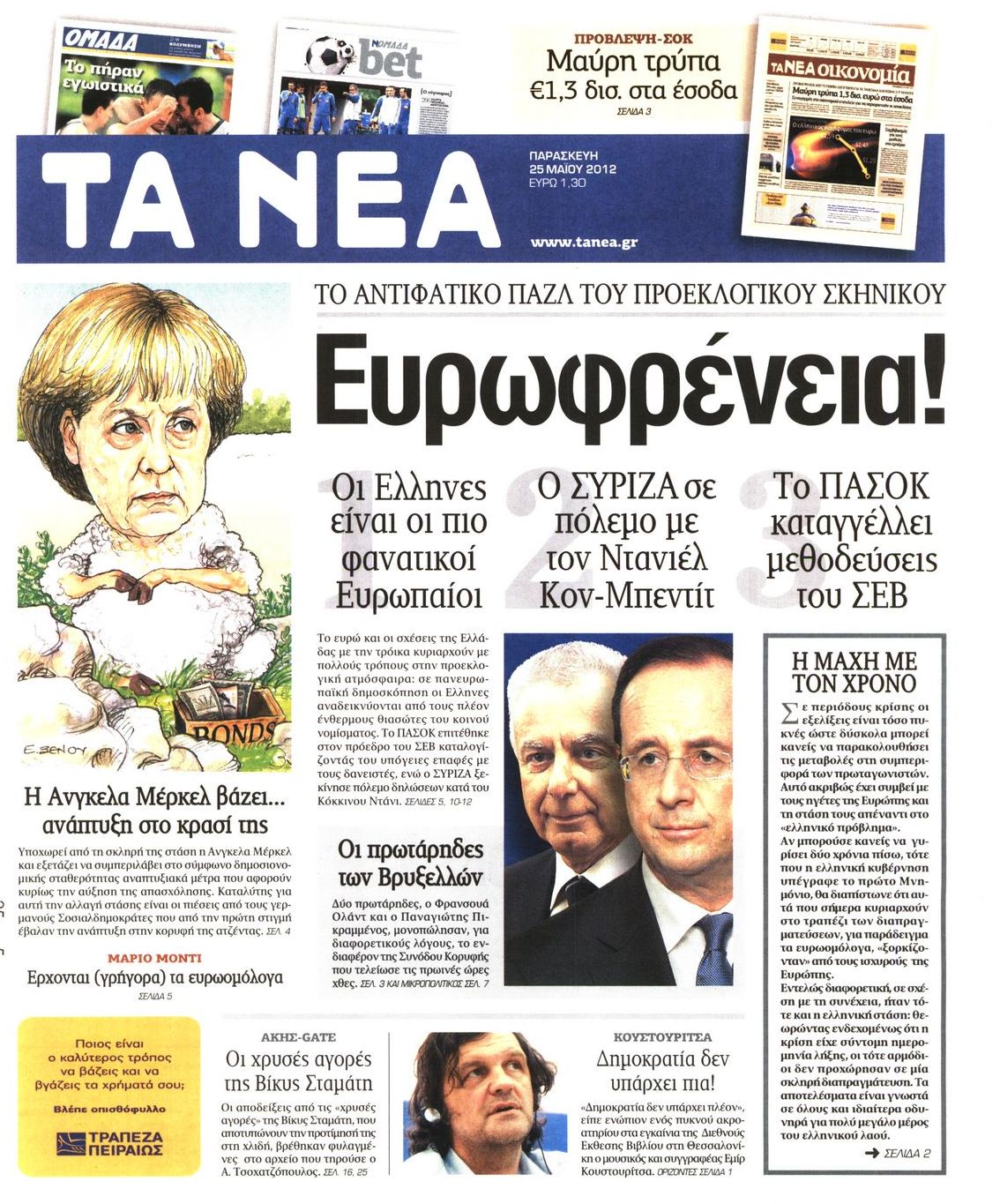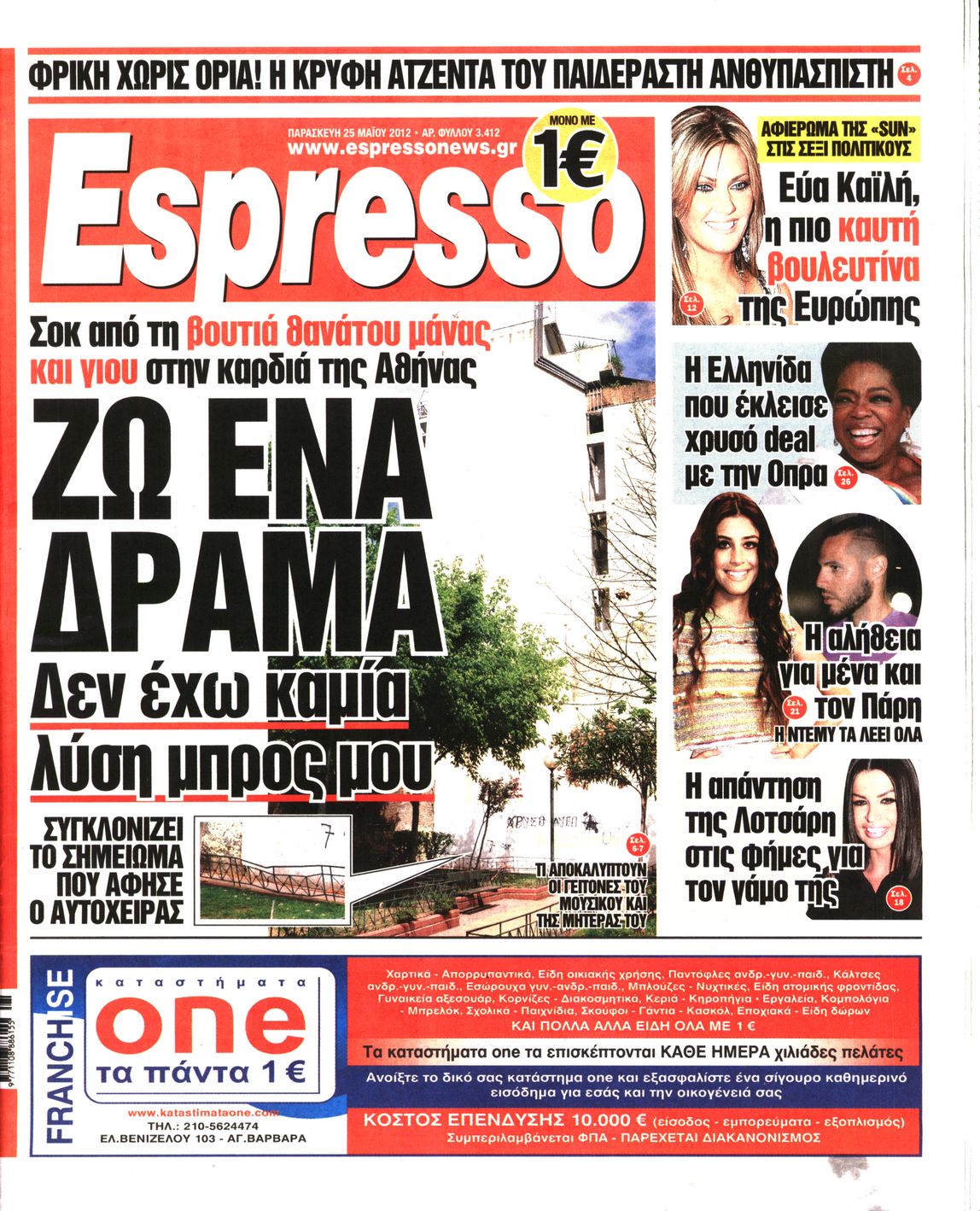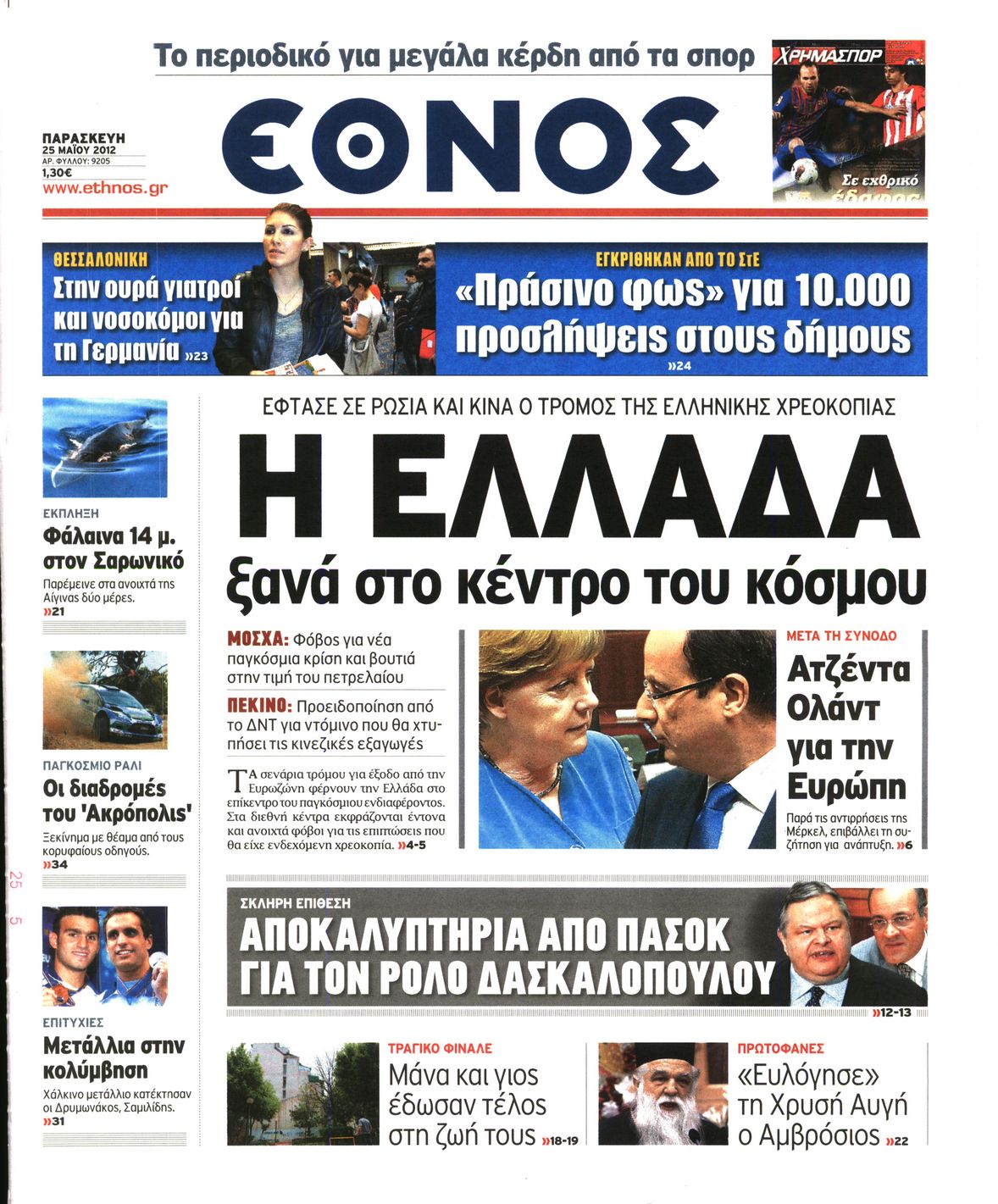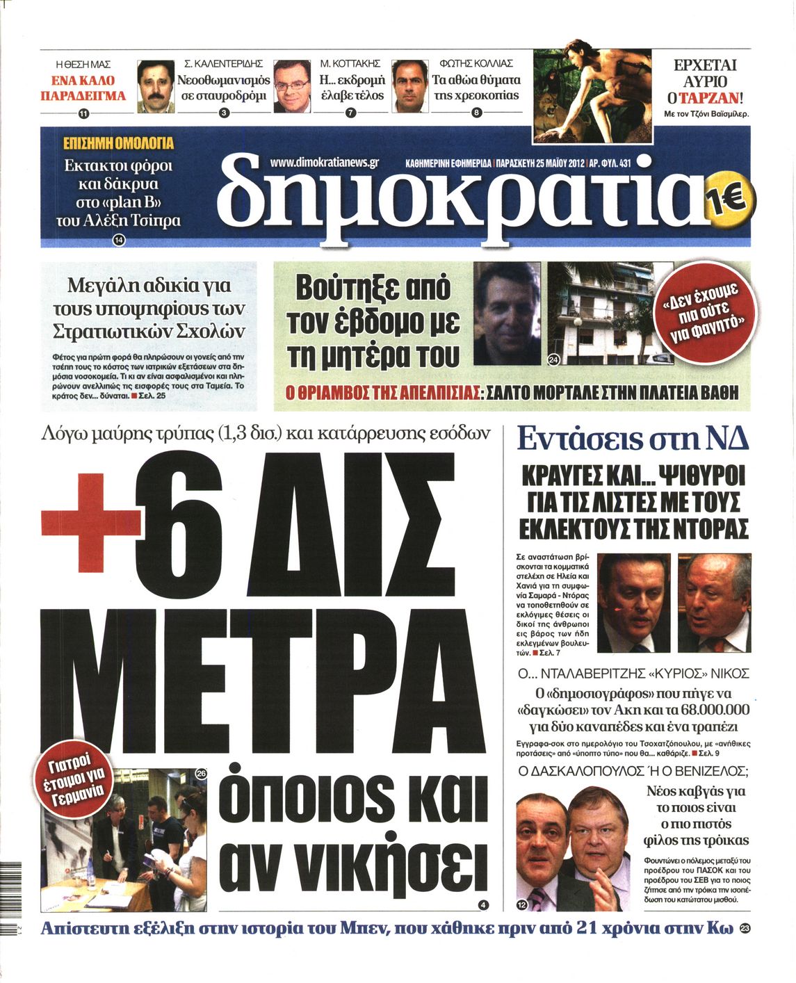 Τα πρωτοσέλιδα των εφημερίδων Enikos Newsroom 07:29, Παρασκευή 25 Μαΐου 2012 Media ΕΦΗΜΕΡΙΔΕΣ ΠΡΩΤΟΣΕΛΙΔΑ Μοιράσου το: σχολίασε κι εσύ (0 σχόλια) Ακολουθήστε το enikos.gr στο Google News και μάθετε πρώτοι όλες τις ειδήσεις Δείτε όλες τις τελευταίες ειδήσεις από την Ελλάδα και τον Κόσμο στο enikos.gr Ειδήσεις Ροή Ειδήσεων 8 ώρες πριν Μητσοτάκης: Αναγκαία η μεταρρύθμιση του πρωτογενούς τομέα – Τα 6 νέα μέτρα για το στεγαστικό και οι αναφορές σε «Ιθάκη» και «πολιτικούς του καναπέ» 7 ώρες πριν Δάνεια σε ελβετικό φράγκο: Τα βασικά σημεία της ρύθμισης – ανάσας για 40.000 δανειολήπτες – Αναλυτικός οδηγός με ερωτήσεις και απαντήσεις 7 ώρες πριν Κυψέλη: Εξιτήριο πήρε η 14χρονη μαθήτρια που μαχαιρώθηκε από την 16χρονη σε σχολείο – «Θέλω να βοηθήσω το παιδί, έχει μπλέξει με κακές παρέες» 6 ώρες πριν Τραμπ: Γιατί κατέθεσε τώρα την αγωγή κατά του BBC – Πώς η κίνησή του εξυπηρετεί το νέο δόγμα του για «αντίσταση» στην Ευρώπη, υπέρ των συντηρητικών 7 ώρες πριν ΟΠΕΚΕΠΕ – Παράνομες επιδοτήσεις: Ελεύθεροι με περιοριστικούς όρους και οι 7 κατηγορούμενοι που απολογήθηκαν σήμερα 6 ώρες πριν Ανακαλύφθηκε βυθισμένη πέτρινη κατασκευή ανοιχτά της Κριμαίας – Αποτελεί μέρος αρχαίας ελληνικής αποικίας 7 ώρες πριν Ύπνος: Αυτό μπορεί να είναι το χειρότερο λάθος για το βιολογικό ρολόι σας, σύμφωνα με ειδικό 8 ώρες πριν Αριθμολογία: Οι άνθρωποι που έχουν γεννηθεί αυτές τις 3 ημερομηνίες, προσελκύουν μεγάλη τύχη πριν από το τέλος του 2025 10 ώρες πριν Οι 7 συμπεριφορές που μαρτυρούν ότι ένας άνδρας επενδύει μακροπρόθεσμα σε μια σχέση 5 λεπτά πριν Κόστα Ρίκα: Το Κογκρέσο απέρριψε το αίτημα για άρση της ασυλίας του προέδρου Τσάβες 13 λεπτά πριν Κολομβία: Νεκροί τέσσερις αστυνομικοί σε βομβιστικές επιθέσεις ανταρτών 21 λεπτά πριν Στάση εργασίας 11:00 – 17:00 σήμερα στα λεωφορεία του ΟΑΣΑ – Ποιες γραμμές θα λειτουργήσουν 37 λεπτά πριν Παλαιστινιακό: «Η λύση των δύο κρατών είναι ο μόνος βιώσιμος δρόμος», τόνισε η Ελλάδα στο Συμβούλιο Ασφαλείας του ΟΗΕ 44 λεπτά πριν Ελένη Καρακάση: «Ένιωθα πολύ αδικημένη, δεν μπορούσα να ελέγξω τον εαυτό μου σε δύσκολες στιγμές» ENIKOS NETWORK Αίτημα ΙΣΑ για την εξαίρεση των προσωπικών γιατρών από τις κατ’ οίκον επισκέψεις Η σκανδιναβική μέθοδος στον ύπνο που μπορεί να σώσει έναν γάμο Πιερρακάκης: Ο προϋπολογισμός συμβάλλει ουσιαστικά στην ενίσχυση της αγοραστικής δύναμης της πλειονότητας των εργαζομένων e-ΕΦΚΑ: Παρατείνεται η προθεσμία για την υποβολή ΑΠΔ – Ποιους αφορά Σύγχρονος Νοστράδαμος: Προειδοποιεί για «μεγάλο γεγονός» τους επόμενους μήνες που θα συγκλονίσει τη Βρετανία και τον κόσμο Τεστ παρατηρητικότητας: Μπορείτε να βρείτε τις 3 διαφορές στις εικόνες με έναν πιγκουίνο σε 14 δευτερόλεπτα περισσότερα 20:06 , Τρίτη 16 Δεκεμβρίου 2025 Ο ΣΚΑΙ καταγγέλλει τον ΕΚΚΟΜΕΔ Επιστολή με την οποία καταγράφει την έντονη διαμαρτυρία του προς τον διευθύνοντα σύμβουλο του... 17:40 , Τρίτη 16 Δεκεμβρίου 2025 Eurovision: Στις 4 Ιανουαρίου αποκαλύπτονται τα 28 τραγούδια του ελληνικού τελικού Η αγωνία τελειώνει, η γιορτή της Eurovision αρχίζει στην ΕΡΤ από τις πρώτες ημέρες της νέας χρ... 17:09 , Τρίτη 16 Δεκεμβρίου 2025 Alter Ego Media: Βαθύτατη θλίψη και ειλικρινή συλλυπητήρια για την απώλεια της Ειρήνης Μαρινάκη Τη βαθύτατη θλίψη και τα ειλικρινή συλλυπητήριά της εκφράζει η Alter Ego Media για τον θάνατο ... 13:00 , Τρίτη 16 Δεκεμβρίου 2025 «Στο Παρά Πέντε – 20 Χρόνια Μετά»: Κυκλοφόρησε το τρέιλερ του επετειακού επεισοδίου της θρυλικής σειράς – Π