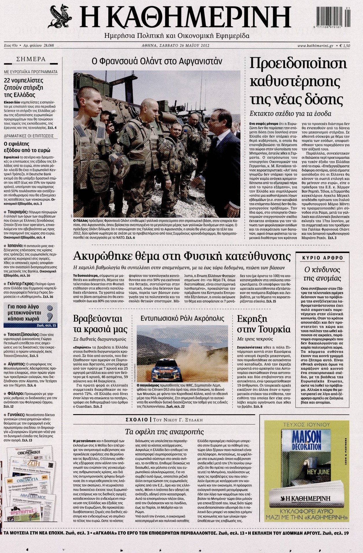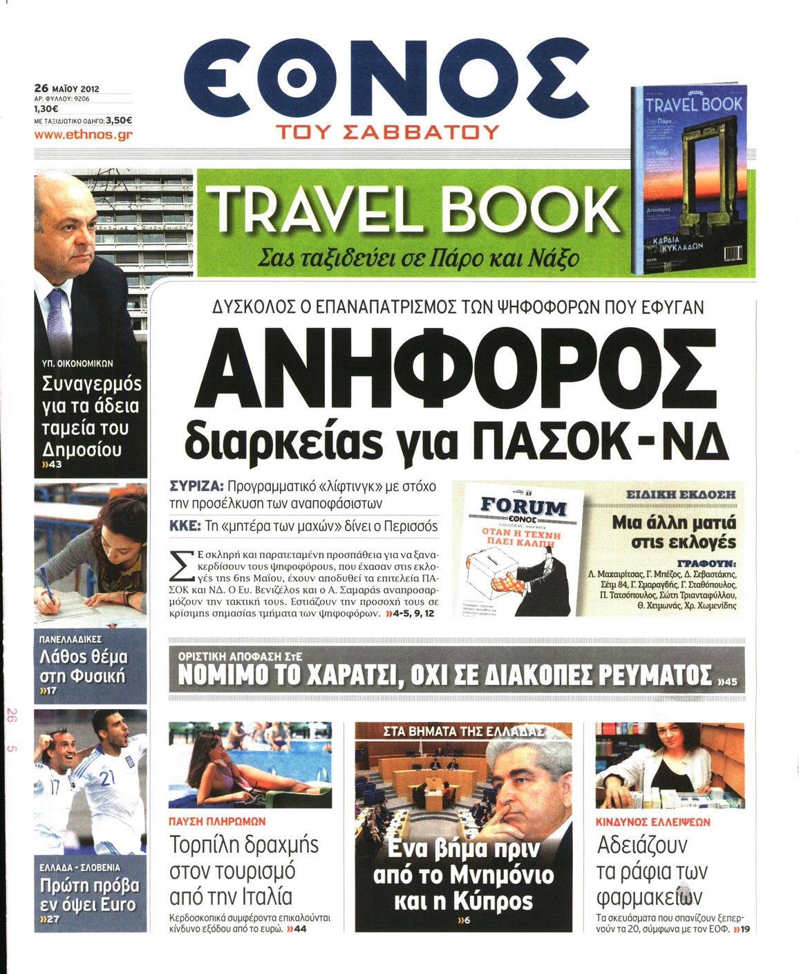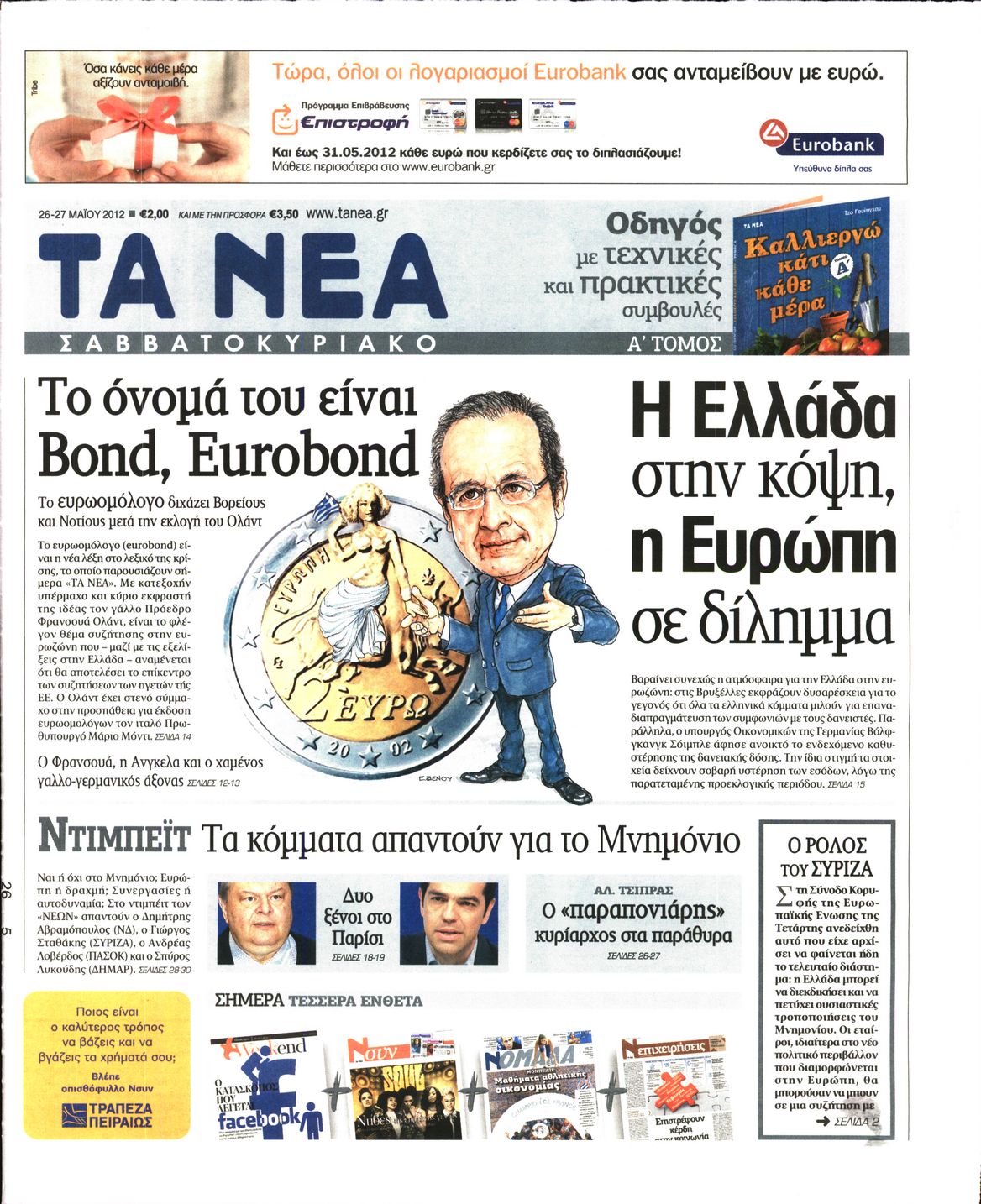 Τα πρωτοσέλιδα των εφημερίδων Enikos Newsroom 07:25, Σάββατο 26 Μαΐου 2012 Media ΕΦΗΜΕΡΙΔΕΣ ΠΡΩΤΟΣΕΛΙΔΑ Μοιράσου το: σχολίασε κι εσύ (0 σχόλια) Ακολουθήστε το enikos.gr στο Google News και μάθετε πρώτοι όλες τις ειδήσεις Δείτε όλες τις τελευταίες ειδήσεις από την Ελλάδα και τον Κόσμο στο enikos.gr Ειδήσεις Ροή Ειδήσεων 9 ώρες πριν Reuters: Οι ΗΠΑ προετοιμάζονται στρατιωτικά για επιχειρήσεις εβδομάδων κατά του Ιράν σε περίπτωση που δεν επιτευχθεί συμφωνία 3 ώρες πριν Η Τουρκία πλασάρει το μαχητικό της ΚΑΑΝ ως εναλλακτικό μαχητικό 5ης γενιάς – Αποκλειστικές εικόνες 2 ώρες πριν Ζιζέλ Πελικό: Ένιωσα συντετριμμένη από τον τρόμο, αλλά δεν νιώθω θυμό – Η συνέντευξη στο BBC 3 ώρες πριν Συντάξεις Μαρτίου 2026: Αυτή είναι η απόφαση του e-ΕΦΚΑ για τις πληρωμές – Όλες οι ημερομηνίες 2 ώρες πριν Λίντσεϊ Βον: Ο χειρουργός της μιλάει εν μέσω φόβων για ακρωτηριασμό – Η κατάστασή της μετά το τρομακτικό ατύχημα στους Χειμερινούς Ολυμπιακούς Αγώνες 4 ώρες πριν Οπτική ψευδαίσθηση: Μόνο το 1% των ανθρώπων θα βρει το φίδι σε 15 δευτερόλεπτα 2 ώρες πριν Ανακαλύφθηκε το αρχαίο μυστικό της Τραπεζούντας – Το άγνωστο λιμάνι κάτω από τη σύγχρονη αγορά 1 ώρα πριν Η μητέρα της πρέπει να κάνει μεταμόσχευση νεφρού και δεν θέλει να γίνει δότρια – «Μου φέρθηκε απαίσια, ποτέ δεν νοιάστηκε για μένα» 34 λεπτά πριν Τα 3 ζώδια που θα ζήσουν τον απόλυτο έρωτα την Ημέρα του Αγίου Βαλεντίνου – «Μην αφήσετε αυτή τη στιγμή να πάει χαμένη» 3 λεπτά πριν Αποχωρούν από την Αθήνα οι αγρότες μετά την «ολονυχτία» στο Σύνταγμα – «Θα συνεχίσουμε τον αγώνα μας γιατί δεν έχουμε άλλη επιλογή» 4 λεπτά πριν Αγίου Βαλεντίνου: Ποιος ήταν ο Άγιος των ερωτευμένων και πώς ξεκίνησε ο εορτασμός της ημέρας 16 λεπτά πριν Χειμερινοί Ολυμπιακοί Αγώνες: Ο βουδιστής μοναχός του… σνόουμπορντ στο προσκήνιο μετά τα 3 μετάλλια της Νότιας Κορέας 24 λεπτά πριν Την Κυριακή με τη Realnews: Ό,τι και αν αγοράσεις, σκανάρεις και κερδίζεις! 34 λεπτά πριν Τα 3 ζώδια που θα ζήσουν τον απόλυτο έρωτα την Ημέρα του Αγίου Βαλεντίνου – «Μην αφήσετε αυτή τη στιγμή να πάει χαμένη» ENIKOS NETWORK Ένα στα 100 παιδιά γεννιέται με κάποια μορφή συγγενούς καρδιοπάθειας Επίμονη καούρα: Η κοινή ενόχληση που μπορεί να είναι σύμπτωμα σοβαρής νόσου – Πότε να ανησυχήσετε Άγιος Βαλεντίνος 2026: Πόσο κοστίζουν φέτος τα τριαντάφυλλα – Πού κυμαίνεται η τιμή του «βασιλιά των λουλουδιών» Αντίστροφη μέτρηση για τις φορολογικές δηλώσεις – Τι πρέπει να ελέγξουν οι φορολογούμενοι στα προσυμπληρωμένα στοιχεία Ευπάθεια στο moltbook ai αποκαλύπτει email, tokens σύνδεσης και api keys Αυτός είναι ο ρόλος της μικρής τρύπας στους νυχοκόπτες – «Είμαι ο μόνος που δεν το ήξερε;»» περισσότερα 10:00 , Σάββατο 14 Φεβρουαρίου 2026 Grand Hotel: Ο Ρήγας συγκρούεται έντονα με την Κυβέλη – Η Αλίκη λυγίζει στην αγκαλιά του Πέτρου Καθηλώνουν οι εξελίξεις στα νέα επεισόδια της σειράς «Grand Hotel» που θα προβληθούν από Δευτέ... 08:45 , Σάββατο 14 Φεβρουαρίου 2026 Άγιος έρωτας: Η Χριστίνα αποφυλακίζεται – Καταιγιστικές εξελίξεις στα επόμενα επεισόδια Ο Χάρης είναι επιτέλους ελεύθερος να συνεχίσει τη ζωή του με την Αναστασία στα νέα επεισόδια τ... 05:48 , Σάββατο 14 Φεβρουαρίου 2026 Οι οικονομικές εφημερίδες 14/2/2026 Διαβάστε τα πρωτοσέλιδα από τις οικονομικές εφημερίδες, σήμερα 14/2/2026. 02:10 , Σάββατο 14 Φεβρουαρίου 2026 Sing for Greece – Eurovision 2026: H σειρά εμφάνισης των 14 φιναλίστ στον τελικό Αυλαία έπεσε λίγο πριν από τα μεσάνυχτα της Παρασκευής για τον Β’ Ημιτελικό Sing For Greece τη... Τ