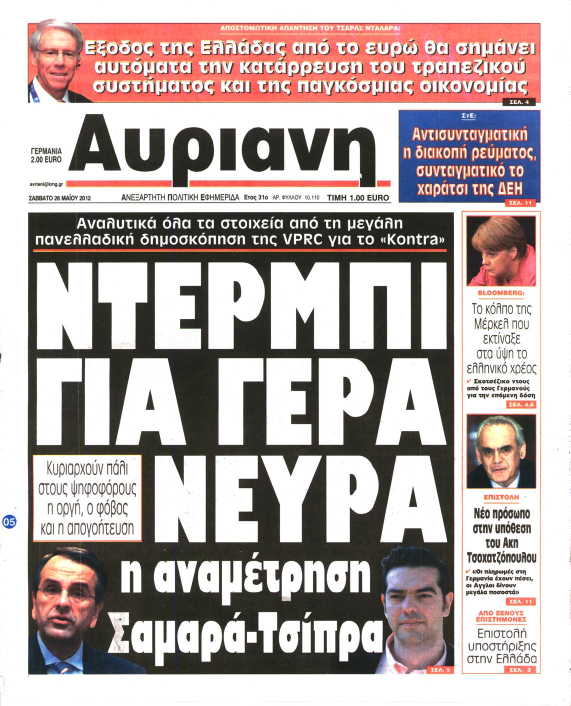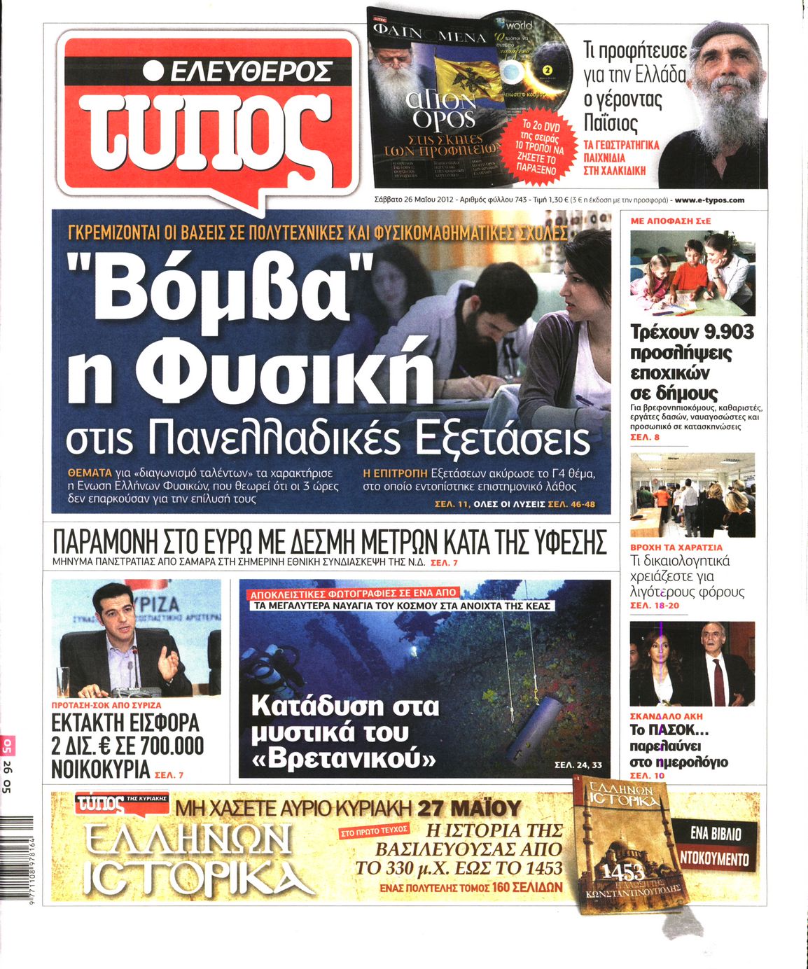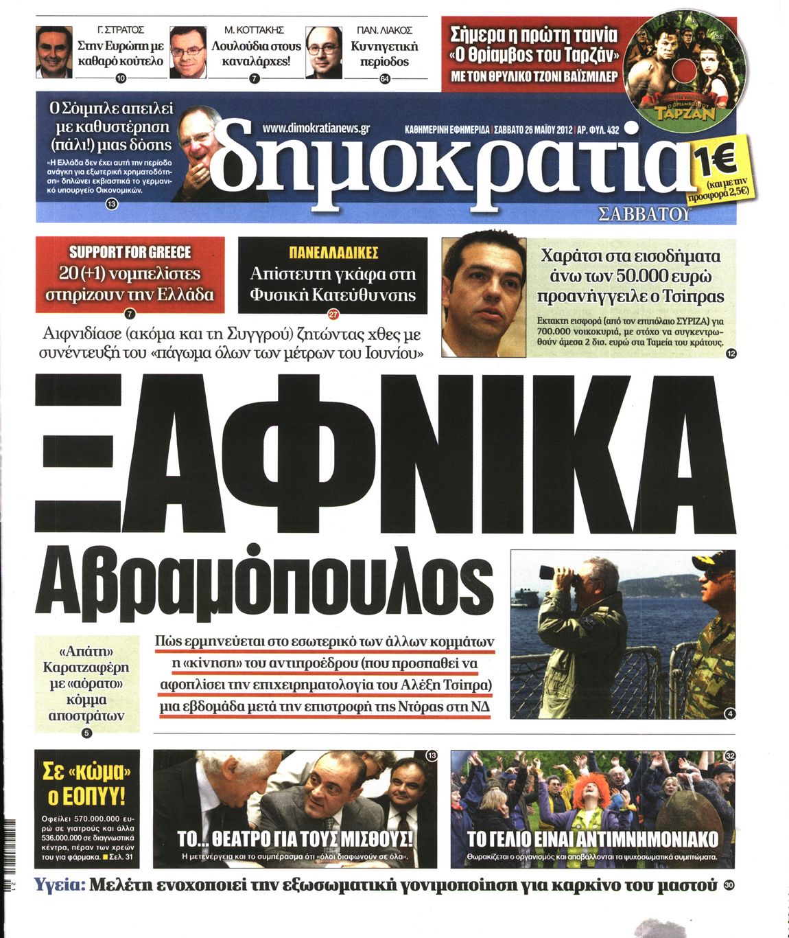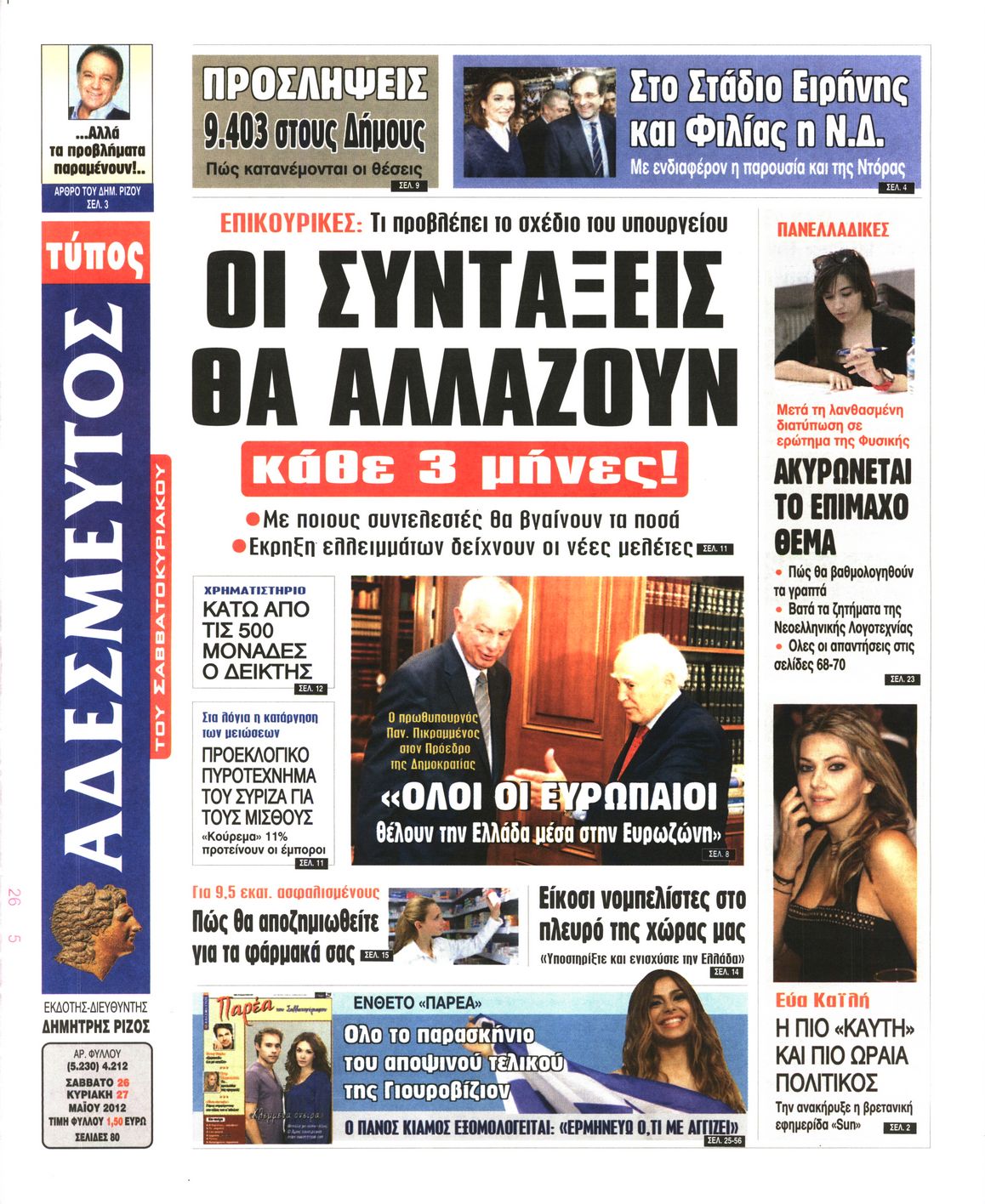 Τα πρωτοσέλιδα των εφημερίδων Enikos Newsroom 07:25, Σάββατο 26 Μαΐου 2012 Media ΕΦΗΜΕΡΙΔΕΣ ΠΡΩΤΟΣΕΛΙΔΑ Μοιράσου το: σχολίασε κι εσύ (0 σχόλια) Ακολουθήστε το enikos.gr στο Google News και μάθετε πρώτοι όλες τις ειδήσεις Δείτε όλες τις τελευταίες ειδήσεις από την Ελλάδα και τον Κόσμο στο enikos.gr Ειδήσεις Ροή Ειδήσεων 9 ώρες πριν Reuters: Οι ΗΠΑ προετοιμάζονται στρατιωτικά για επιχειρήσεις εβδομάδων κατά του Ιράν σε περίπτωση που δεν επιτευχθεί συμφωνία 3 ώρες πριν Η Τουρκία πλασάρει το μαχητικό της ΚΑΑΝ ως εναλλακτικό μαχητικό 5ης γενιάς – Αποκλειστικές εικόνες 2 ώρες πριν Ζιζέλ Πελικό: Ένιωσα συντετριμμένη από τον τρόμο, αλλά δεν νιώθω θυμό – Η συνέντευξη στο BBC 3 ώρες πριν Συντάξεις Μαρτίου 2026: Αυτή είναι η απόφαση του e-ΕΦΚΑ για τις πληρωμές – Όλες οι ημερομηνίες 2 ώρες πριν Λίντσεϊ Βον: Ο χειρουργός της μιλάει εν μέσω φόβων για ακρωτηριασμό – Η κατάστασή της μετά το τρομακτικό ατύχημα στους Χειμερινούς Ολυμπιακούς Αγώνες 4 ώρες πριν Οπτική ψευδαίσθηση: Μόνο το 1% των ανθρώπων θα βρει το φίδι σε 15 δευτερόλεπτα 2 ώρες πριν Ανακαλύφθηκε το αρχαίο μυστικό της Τραπεζούντας – Το άγνωστο λιμάνι κάτω από τη σύγχρονη αγορά 1 ώρα πριν Η μητέρα της πρέπει να κάνει μεταμόσχευση νεφρού και δεν θέλει να γίνει δότρια – «Μου φέρθηκε απαίσια, ποτέ δεν νοιάστηκε για μένα» 34 λεπτά πριν Τα 3 ζώδια που θα ζήσουν τον απόλυτο έρωτα την Ημέρα του Αγίου Βαλεντίνου – «Μην αφήσετε αυτή τη στιγμή να πάει χαμένη» 3 λεπτά πριν Αποχωρούν από την Αθήνα οι αγρότες μετά την «ολονυχτία» στο Σύνταγμα – «Θα συνεχίσουμε τον αγώνα μας γιατί δεν έχουμε άλλη επιλογή» 4 λεπτά πριν Αγίου Βαλεντίνου: Ποιος ήταν ο Άγιος των ερωτευμένων και πώς ξεκίνησε ο εορτασμός της ημέρας 16 λεπτά πριν Χειμερινοί Ολυμπιακοί Αγώνες: Ο βουδιστής μοναχός του… σνόουμπορντ στο προσκήνιο μετά τα 3 μετάλλια της Νότιας Κορέας 24 λεπτά πριν Την Κυριακή με τη Realnews: Ό,τι και αν αγοράσεις, σκανάρεις και κερδίζεις! 34 λεπτά πριν Τα 3 ζώδια που θα ζήσουν τον απόλυτο έρωτα την Ημέρα του Αγίου Βαλεντίνου – «Μην αφήσετε αυτή τη στιγμή να πάει χαμένη» ENIKOS NETWORK Ένα στα 100 παιδιά γεννιέται με κάποια μορφή συγγενούς καρδιοπάθειας Επίμονη καούρα: Η κοινή ενόχληση που μπορεί να είναι σύμπτωμα σοβαρής νόσου – Πότε να ανησυχήσετε Άγιος Βαλεντίνος 2026: Πόσο κοστίζουν φέτος τα τριαντάφυλλα – Πού κυμαίνεται η τιμή του «βασιλιά των λουλουδιών» Αντίστροφη μέτρηση για τις φορολογικές δηλώσεις – Τι πρέπει να ελέγξουν οι φορολογούμενοι στα προσυμπληρωμένα στοιχεία Ευπάθεια στο moltbook ai αποκαλύπτει email, tokens σύνδεσης και api keys Αυτός είναι ο ρόλος της μικρής τρύπας στους νυχοκόπτες – «Είμαι ο μόνος που δεν το ήξερε;»» περισσότερα 10:00 , Σάββατο 14 Φεβρουαρίου 2026 Grand Hotel: Ο Ρήγας συγκρούεται έντονα με την Κυβέλη – Η Αλίκη λυγίζει στην αγκαλιά του Πέτρου Καθηλώνουν οι εξελίξεις στα νέα επεισόδια της σειράς «Grand Hotel» που θα προβληθούν από Δευτέ... 08:45 , Σάββατο 14 Φεβρουαρίου 2026 Άγιος έρωτας: Η Χριστίνα αποφυλακίζεται – Καταιγιστικές εξελίξεις στα επόμενα επεισόδια Ο Χάρης είναι επιτέλους ελεύθερος να συνεχίσει τη ζωή του με την Αναστασία στα νέα επεισόδια τ... 05:48 , Σάββατο 14 Φεβρουαρίου 2026 Οι οικονομικές εφημερίδες 14/2/2026 Διαβάστε τα πρωτοσέλιδα από τις οικονομικές εφημερίδες, σήμερα 14/2/2026. 02:10 , Σάββατο 14 Φεβρουαρίου 2026 Sing for Greece – Eurovision 2026: H σειρά εμφάνισης των 14 φιναλίστ στον τελικό Αυλαία έπεσε λίγο πριν από τα μεσάνυχτα της Παρασκευής για τον Β’ Ημιτελικό Sing For Greece τη... Τ
