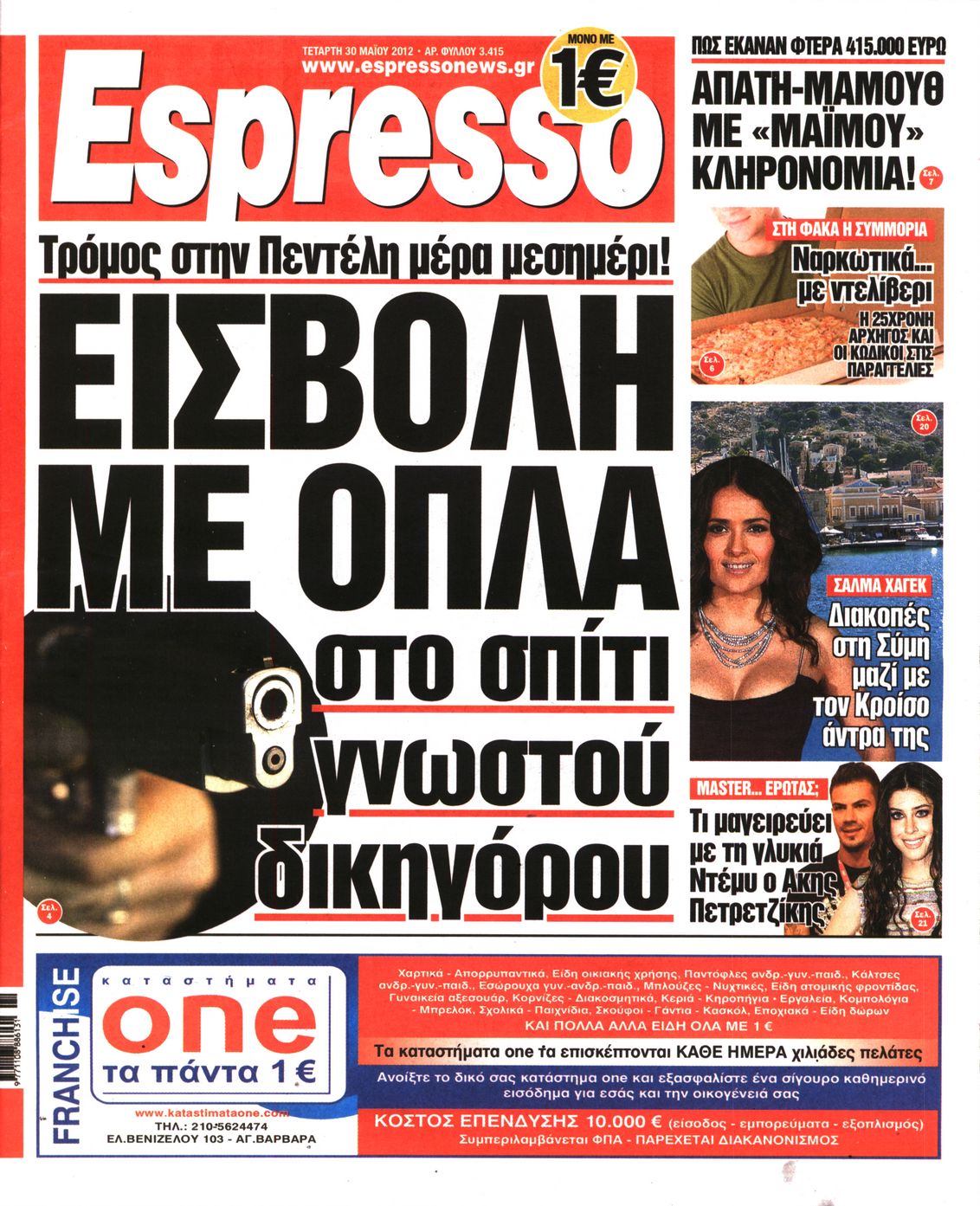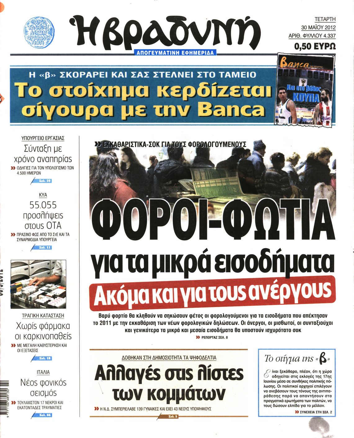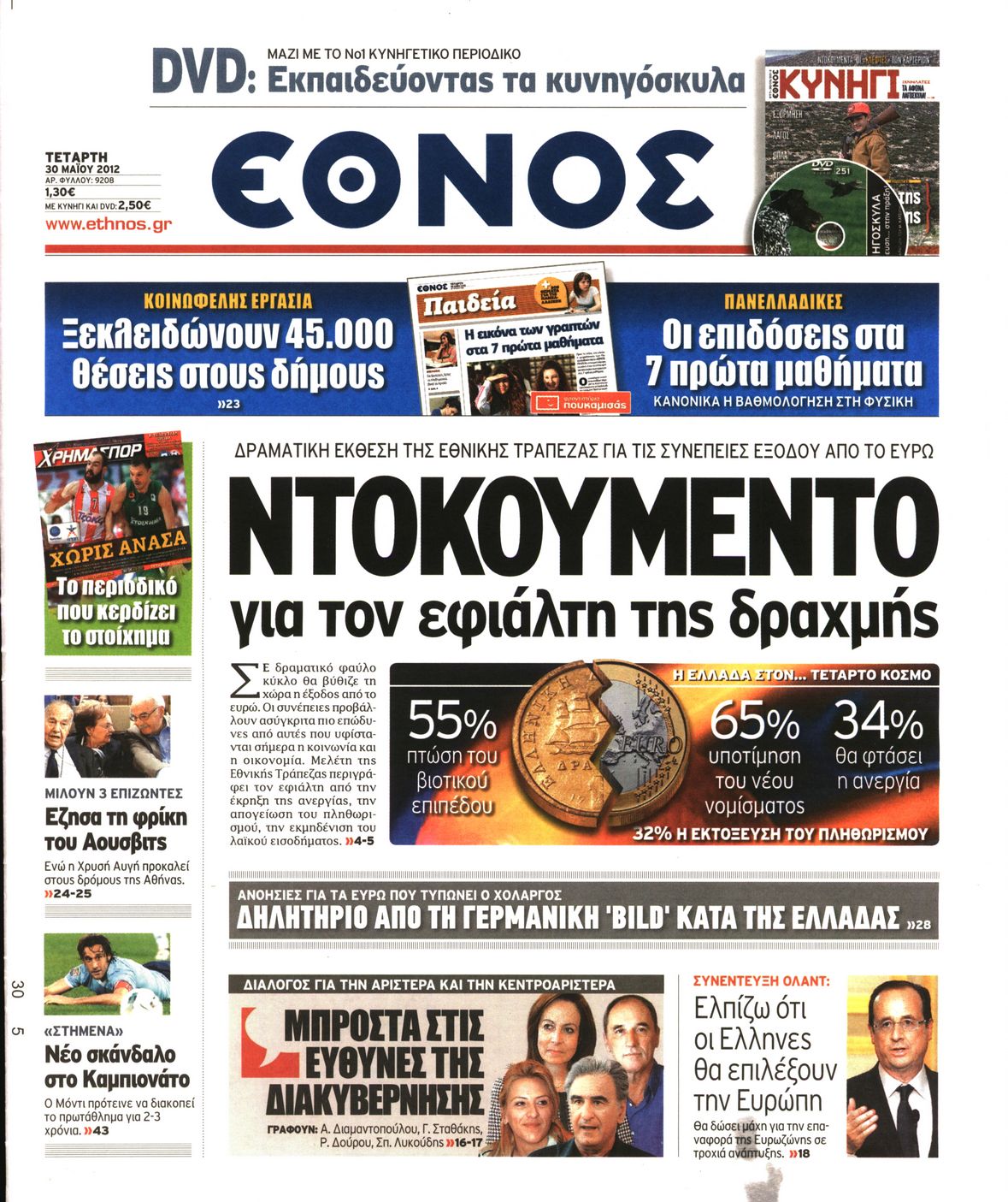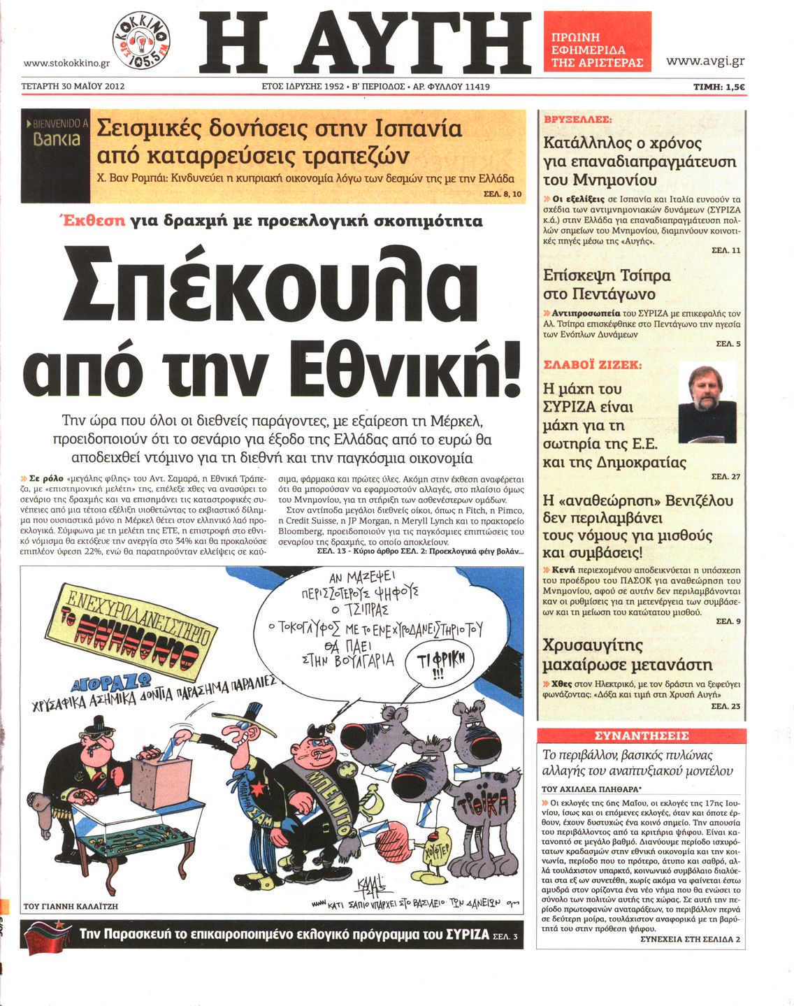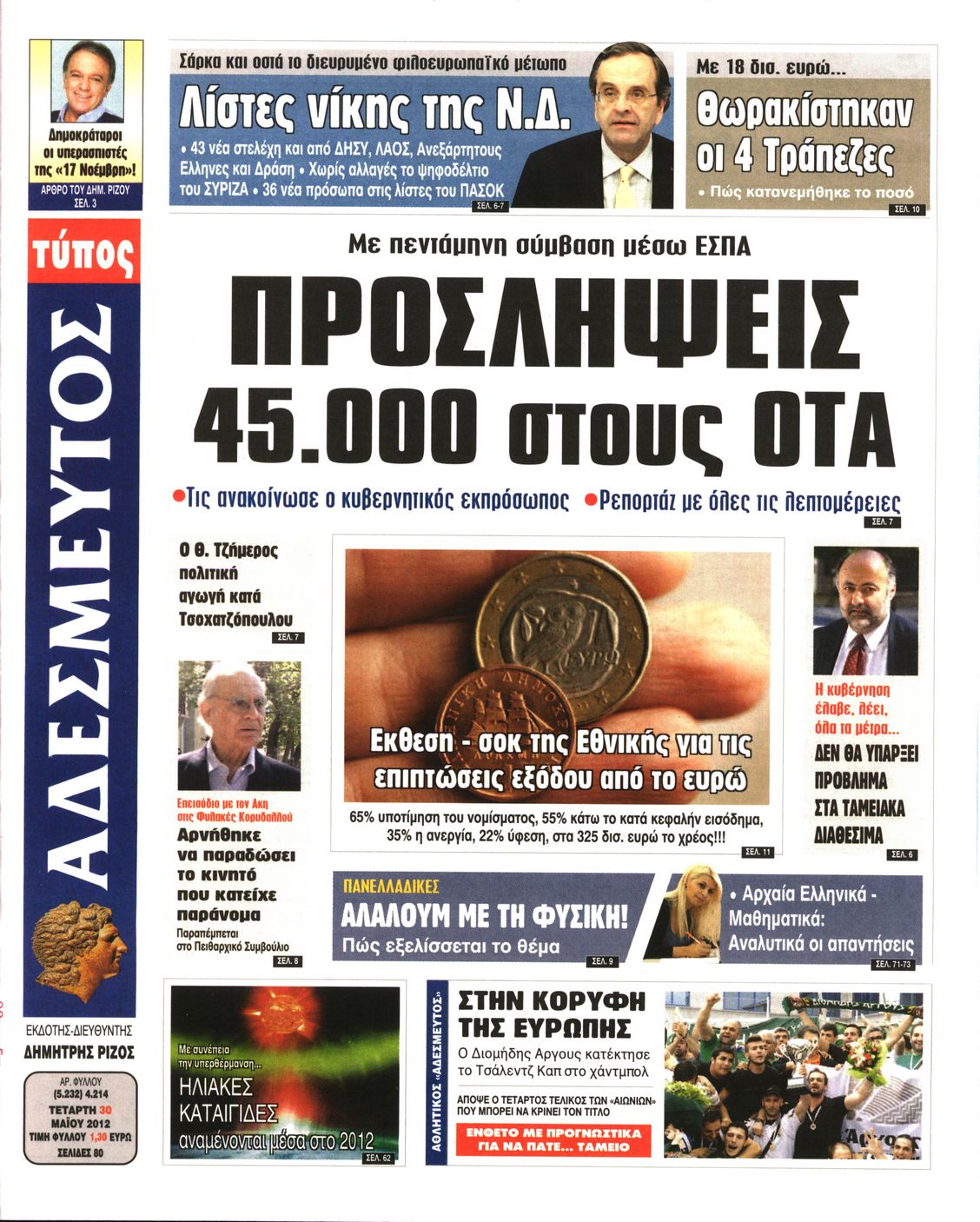 Τα πρωτοσέλιδα των εφημερίδων Enikos Newsroom 07:31, Τετάρτη 30 Μαΐου 2012 Media ΕΦΗΜΕΡΙΔΕΣ ΠΡΩΤΟΣΕΛΙΔΑ Μοιράσου το: σχολίασε κι εσύ (0 σχόλια) Ακολουθήστε το enikos.gr στο Google News και μάθετε πρώτοι όλες τις ειδήσεις Δείτε όλες τις τελευταίες ειδήσεις από την Ελλάδα και τον Κόσμο στο enikos.gr Ειδήσεις Ροή Ειδήσεων 7 ώρες πριν Μητσοτάκης: Αναγκαία η μεταρρύθμιση του πρωτογενούς τομέα – Τα 6 νέα μέτρα για το στεγαστικό και οι αναφορές σε «Ιθάκη» και «πολιτικούς του καναπέ» 6 ώρες πριν Δάνεια σε ελβετικό φράγκο: Τα βασικά σημεία της ρύθμισης – ανάσας για 40.000 δανειολήπτες – Αναλυτικός οδηγός με ερωτήσεις και απαντήσεις 6 ώρες πριν Κυψέλη: Εξιτήριο πήρε η 14χρονη μαθήτρια που μαχαιρώθηκε από την 16χρονη σε σχολείο – «Θέλω να βοηθήσω το παιδί, έχει μπλέξει με κακές παρέες» 6 ώρες πριν Τραμπ: Γιατί κατέθεσε τώρα την αγωγή κατά του BBC – Πώς η κίνησή του εξυπηρετεί το νέο δόγμα του για «αντίσταση» στην Ευρώπη, υπέρ των συντηρητικών 7 ώρες πριν ΟΠΕΚΕΠΕ – Παράνομες επιδοτήσεις: Ελεύθεροι με περιοριστικούς όρους και οι 7 κατηγορούμενοι που απολογήθηκαν σήμερα 6 ώρες πριν Ανακαλύφθηκε βυθισμένη πέτρινη κατασκευή ανοιχτά της Κριμαίας – Αποτελεί μέρος αρχαίας ελληνικής αποικίας 7 ώρες πριν Ύπνος: Αυτό μπορεί να είναι το χειρότερο λάθος για το βιολογικό ρολόι σας, σύμφωνα με ειδικό 8 ώρες πριν Αριθμολογία: Οι άνθρωποι που έχουν γεννηθεί αυτές τις 3 ημερομηνίες, προσελκύουν μεγάλη τύχη πριν από το τέλος του 2025 10 ώρες πριν Οι 7 συμπεριφορές που μαρτυρούν ότι ένας άνδρας επενδύει μακροπρόθεσμα σε μια σχέση 9 λεπτά πριν Παλαιστινιακό: «Η λύση των δύο κρατών είναι ο μόνος βιώσιμος δρόμος», τόνισε η Ελλάδα στο Συμβούλιο Ασφαλείας του ΟΗΕ 16 λεπτά πριν Ελένη Καρακάση: «Ένιωθα πολύ αδικημένη, δεν μπορούσα να ελέγξω τον εαυτό μου σε δύσκολες στιγμές» 24 λεπτά πριν Κλαούδια Σέινμπαουμ προς Ντόναλντ Τραμπ για φαιντανύλη: Να επιτεθούμε στα αίτια κατανάλωσης αντί να την κατατάσσουμε στα «όπλα μαζικής καταστροφής» 32 λεπτά πριν Ρωσία: Ουκρανική επίθεση με drones στο Κρασνοντάρ – Δύο τραυματίες, ζημιές σε σπίτια και διακοπή ρεύματος 41 λεπτά πριν Αντόνιο Ταγιάνι: Νομικά εμπόδια για τη χρήση των ρωσικών κεφαλαίων υπέρ της Ουκρανίας ENIKOS NETWORK Αίτημα ΙΣΑ για την εξαίρεση των προσωπικών γιατρών από τις κατ’ οίκον επισκέψεις Η σκανδιναβική μέθοδος στον ύπνο που μπορεί να σώσει έναν γάμο Πιερρακάκης: Ο προϋπολογισμός συμβάλλει ουσιαστικά στην ενίσχυση της αγοραστικής δύναμης της πλειονότητας των εργαζομένων e-ΕΦΚΑ: Παρατείνεται η προθεσμία για την υποβολή ΑΠΔ – Ποιους αφορά Σύγχρονος Νοστράδαμος: Προειδοποιεί για «μεγάλο γεγονός» τους επόμενους μήνες που θα συγκλονίσει τη Βρετανία και τον κόσμο Τεστ παρατηρητικότητας: Μπορείτε να βρείτε τις 3 διαφορές στις εικόνες με έναν πιγκουίνο σε 14 δευτερόλεπτα περισσότερα 20:06 , Τρίτη 16 Δεκεμβρίου 2025 Ο ΣΚΑΙ καταγγέλλει τον ΕΚΚΟΜΕΔ Επιστολή με την οποία καταγράφει την έντονη διαμαρτυρία του προς τον διευθύνοντα σύμβουλο του... 17:40 , Τρίτη 16 Δεκεμβρίου 2025 Eurovision: Στις 4 Ιανουαρίου αποκαλύπτονται τα 28 τραγούδια του ελληνικού τελικού Η αγωνία τελειώνει, η γιορτή της Eurovision αρχίζει στην ΕΡΤ από τις πρώτες ημέρες της νέας χρ... 17:09 , Τρίτη 16 Δεκεμβρίου 2025 Alter Ego Media: Βαθύτατη θλίψη και ειλικρινή συλλυπητήρια για την απώλεια της Ειρήνης Μαρινάκη Τη βαθύτατη θλίψη και τα ειλικρινή συλλυπητήριά της εκφράζει η Alter Ego Media για τον θάνατο ... 13:00 , Τρίτη 16 Δεκεμβρίου 2025 «Στο Παρά Πέντ