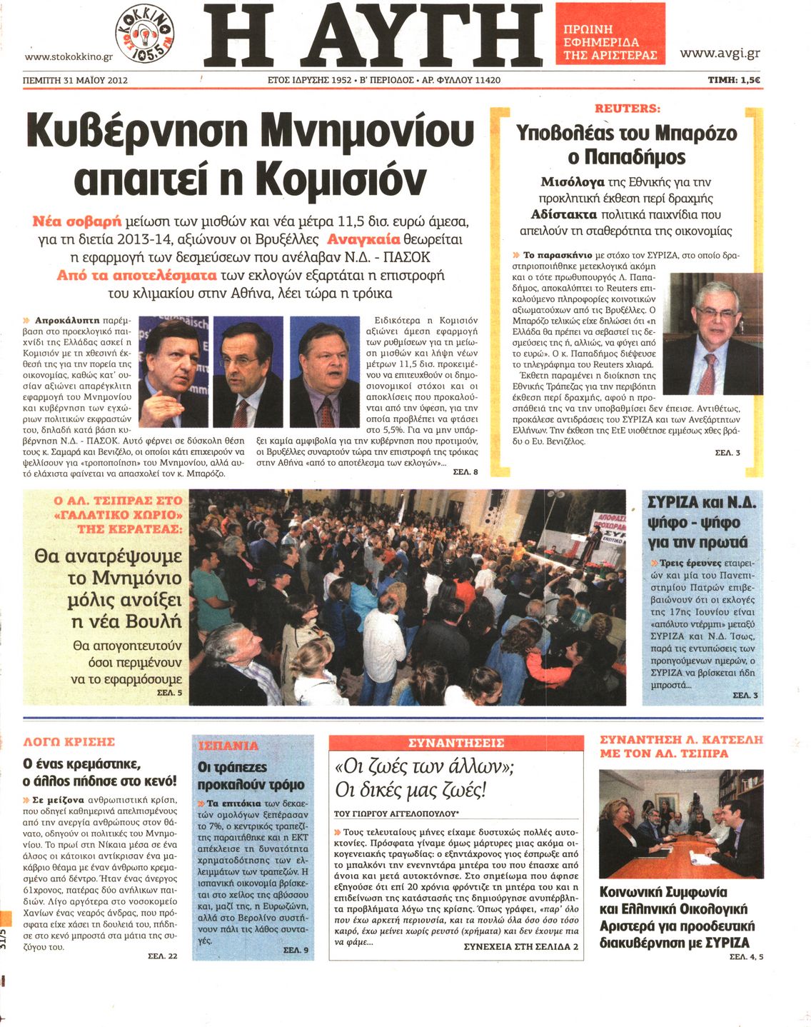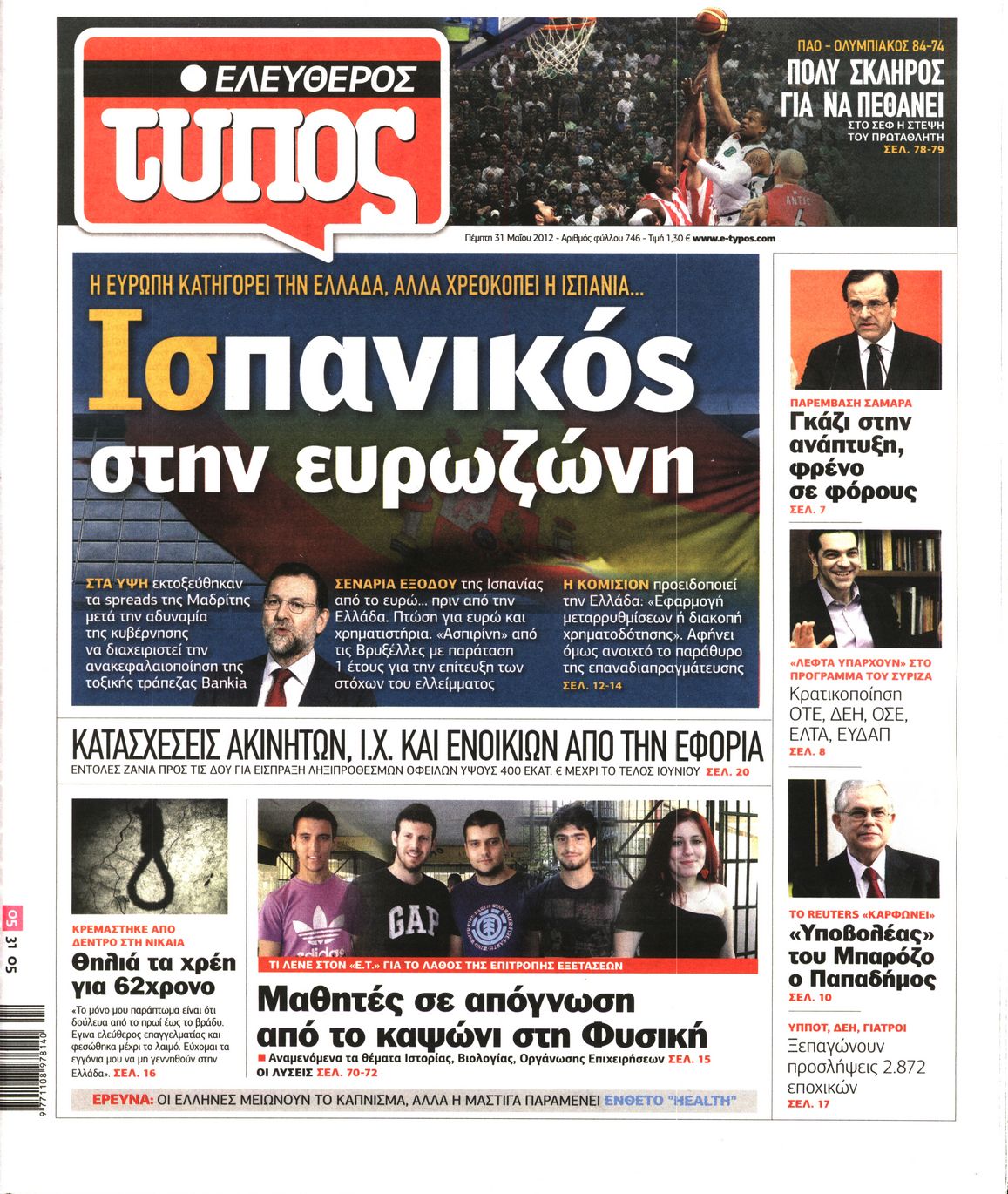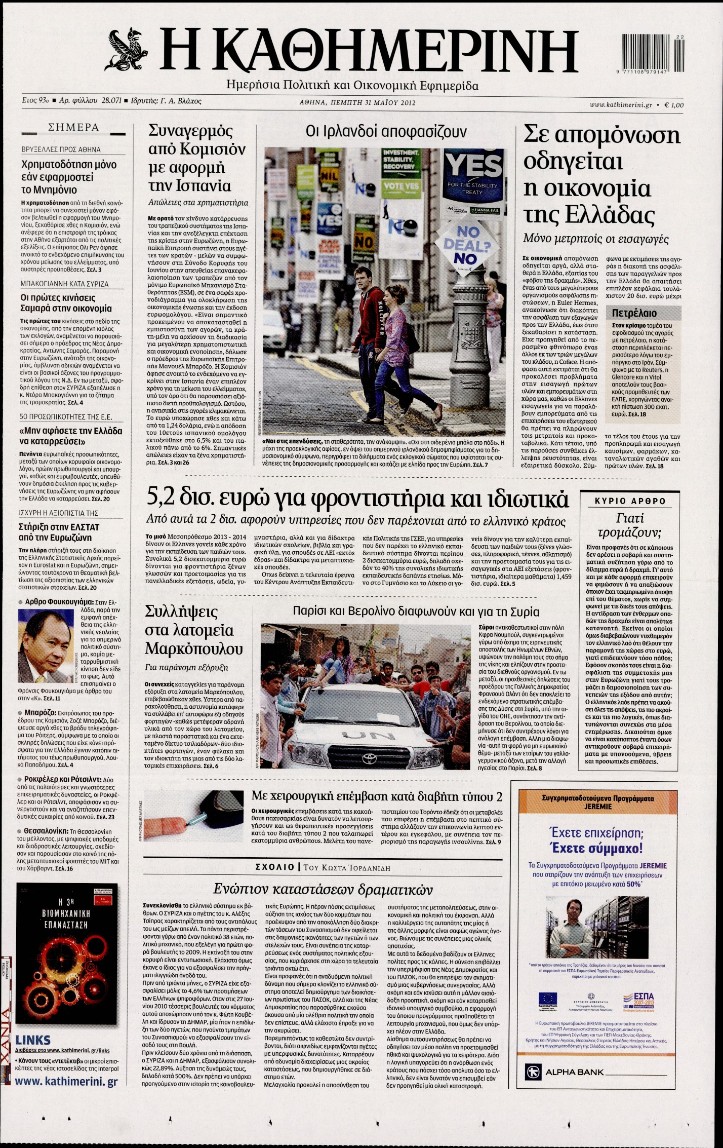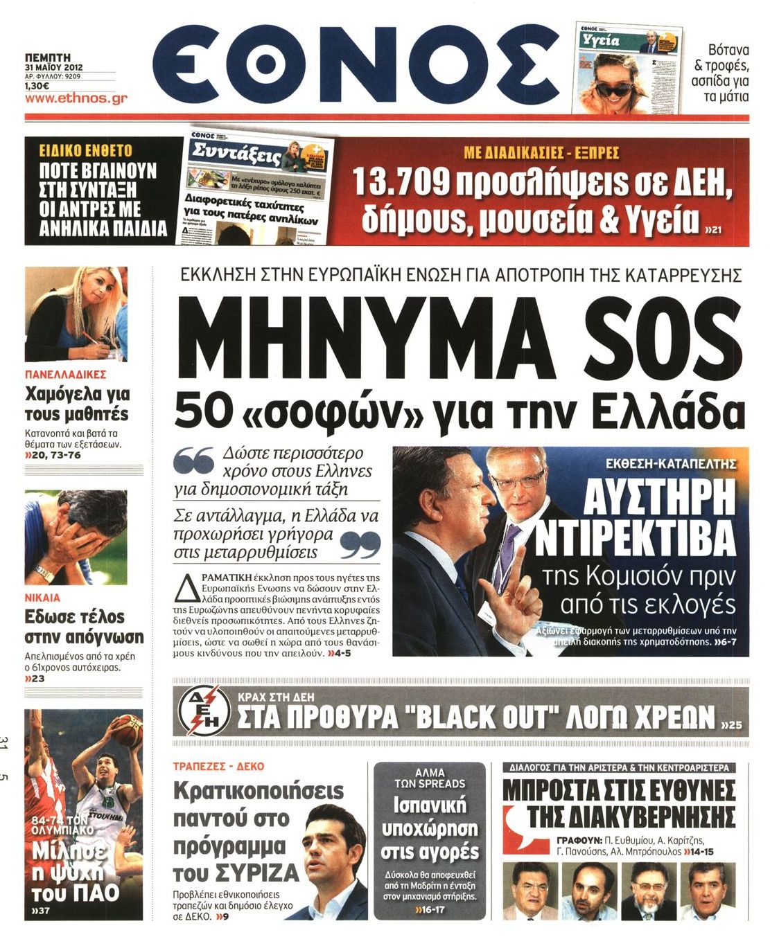 Τα πρωτοσέλιδα των εφημερίδων Enikos Newsroom 07:38, Πέμπτη 31 Μαΐου 2012 Media ΕΦΗΜΕΡΙΔΕΣ ΠΡΩΤΟΣΕΛΙΔΑ Μοιράσου το: σχολίασε κι εσύ (0 σχόλια) Ακολουθήστε το enikos.gr στο Google News και μάθετε πρώτοι όλες τις ειδήσεις Δείτε όλες τις τελευταίες ειδήσεις από την Ελλάδα και τον Κόσμο στο enikos.gr Ειδήσεις Ροή Ειδήσεων 6 λεπτά πριν Ευρωπαϊκή Ένωση: Συμφωνία για δάνειο 90 δισ. ευρώ στην Ουκρανία τη διετία 2026-2027 5 ώρες πριν ΟΠΕΚΕΠΕ: Προφυλακιστέος ο φερόμενος αρχηγός και ο λογιστής της εγκληματικής οργάνωσης 6 ώρες πριν Αυξάνουν την πίεση προς την κυβέρνηση οι αγρότες: Κλείνουν παρακαμπτήριους και ανοίγουν διόδια – Τι θα γίνει τις γιορτές 6 ώρες πριν Φοινικούντα: Το Σάββατο απολογείται ο 30χρονος γιος γνωστού επιχειρηματία της Πλάκας που παραδόθηκε – Όσα είπε στους αστυνομικούς και ο ρόλος του στο έγκλημα 4 ώρες πριν ΑΕΚ – Κραϊόβα 3-2: Επική ανατροπή και πρόκριση στους «16» του Conference League η Ένωση 5 ώρες πριν Αρχαιολόγοι ανακάλυψαν ρωμαϊκά τεχνουργήματα από μια πόλη που δεν υπήρξε ποτέ – Τα τρία εντυπωσιακά κτίρια και ο αμφορέας με τις… σαρδέλες 6 ώρες πριν Ύπνος: Η απλή βραδινή ρουτίνα για να προστατεύσετε τα μαλλιά σας από το κρύο κατά τη διάρκεια του χειμώνα 7 ώρες πριν Manifesting: Πώς να συναντήσετε τον σύντροφο της ζωής σας, ανάλογα με τον μήνα γέννησής σας 2 ημέρες πριν 20 χρόνια τα Χριστούγεννα ξεκινούν στα Public με μεγάλη ποικιλία σε δώρα! 6 λεπτά πριν Ευρωπαϊκή Ένωση: Συμφωνία για δάνειο 90 δισ. ευρώ στην Ουκρανία τη διετία 2026-2027 29 λεπτά πριν Αιματηρή βομβιστική επίθεση στην Υεμένη: Τουλάχιστον τρεις νεκροί και 13 τραυματίες 32 λεπτά πριν Στη Φλόριντα σήμερα οι διαβουλεύσεις σχετικά με τα επόμενα στάδια για τη Λωρίδα της Γάζας 36 λεπτά πριν Σίσσυ Τουμάση: «Είμαι ασθενοφοβική πάρα πολύ και με πιάνει μια παράνοια μ’ αυτό» 1 ώρα πριν Ντόναλντ Τραμπ: Δεν χρειάζομαι την έγκριση του Κογκρέσου για να διατάξω στρατιωτικά πλήγματα στη Βενεζουέλα ENIKOS NETWORK Σε περίοδο αυξημένης δραστηριότητας η γρίπη στην Ελλάδα-Μέτρα προστασίας από τον ΕΟΔΥ Σκέφτεστε συνέχεια συζητήσεις που έχετε κάνει; Τι σημαίνει αυτό, σύμφωνα με ειδικό Στεγαστικό: Τι λέει η ΠΟΜΙΔΑ για τα νέα μέτρα που ανακοίνωσε ο Κυριάκος Μητσοτάκης Λαγκάρντ: Αισιόδοξη για την ανάπτυξη της Ευρωζώνης, αβέβαιη για τον πληθωρισμό Χαρτογραφώντας το «σημείο χωρίς επιστροφή»: Για πρώτη φορά αποκαλύπτεται με λεπτομέρεια το ακανθώδες όριο της ατμόσφαιρας τ... Η Google καταργεί τη λειτουργία «dark web report» – Πώς θα μπορούν οι χρήστες να διαγράφουν τα δεδομένα τους περισσότερα 02:50 , Παρασκευή 19 Δεκεμβρίου 2025 GNTM: «Κλείδωσαν» οι τέσσερις φιναλίστ – Μεγάλη ανατροπή στις τελευταίες αποχωρήσεις Για προτελευταία φορά εμφανίστηκαν στο πλατό του GNTM οι φιναλίστ του φετινού κύκλου, το βράδυ... 17:45 , Πέμπτη 18 Δεκεμβρίου 2025 ROUK ZOUK: Εορταστικό επεισόδιο με καλεσμένους τους πρωταγωνιστές του «Γιατί ρε πατέρα» Το Σάββατο 20 Δεκεμβρίου στις 21:00, η Ζέτα Μακρυπούλια υποδέχεται εκλεκτούς ηθοποιούς που όλο... 17:20 , Πέμπτη 18 Δεκεμβρίου 2025 Άγιος έρωτας: Η Χριστίνα εξομολογείται στον πατέρα Νικόλαο, απόψε στις 21:00 στον Alpha Η Νότα αποφασίζει να εκδικηθεί τον Πέτρο και τον Στέφανο, για χάρη του Λούη, όμως τα πράγματα ... 16:50 , Πέμπτη 18 Δεκεμβρίου 2025 Να μ’ αγαπάς: Ζωή και Φωτεινή συμφιλιώνονται ως μάνα με κόρη, απόψε στις 20:00 Η ταυτότητα του Άγγελου αποκαλύπτεται στο νέο επεισόδιο της σειράς “Να μ’ αγαπάς... ΤΕΛΕΥΤΑΙΕΣ ΕΙΔΗΣΕΙΣ 6 λεπτά πριν Ευρωπαϊκή Ένωση: Συμφωνία για δάνειο 90 δισ. ευ
