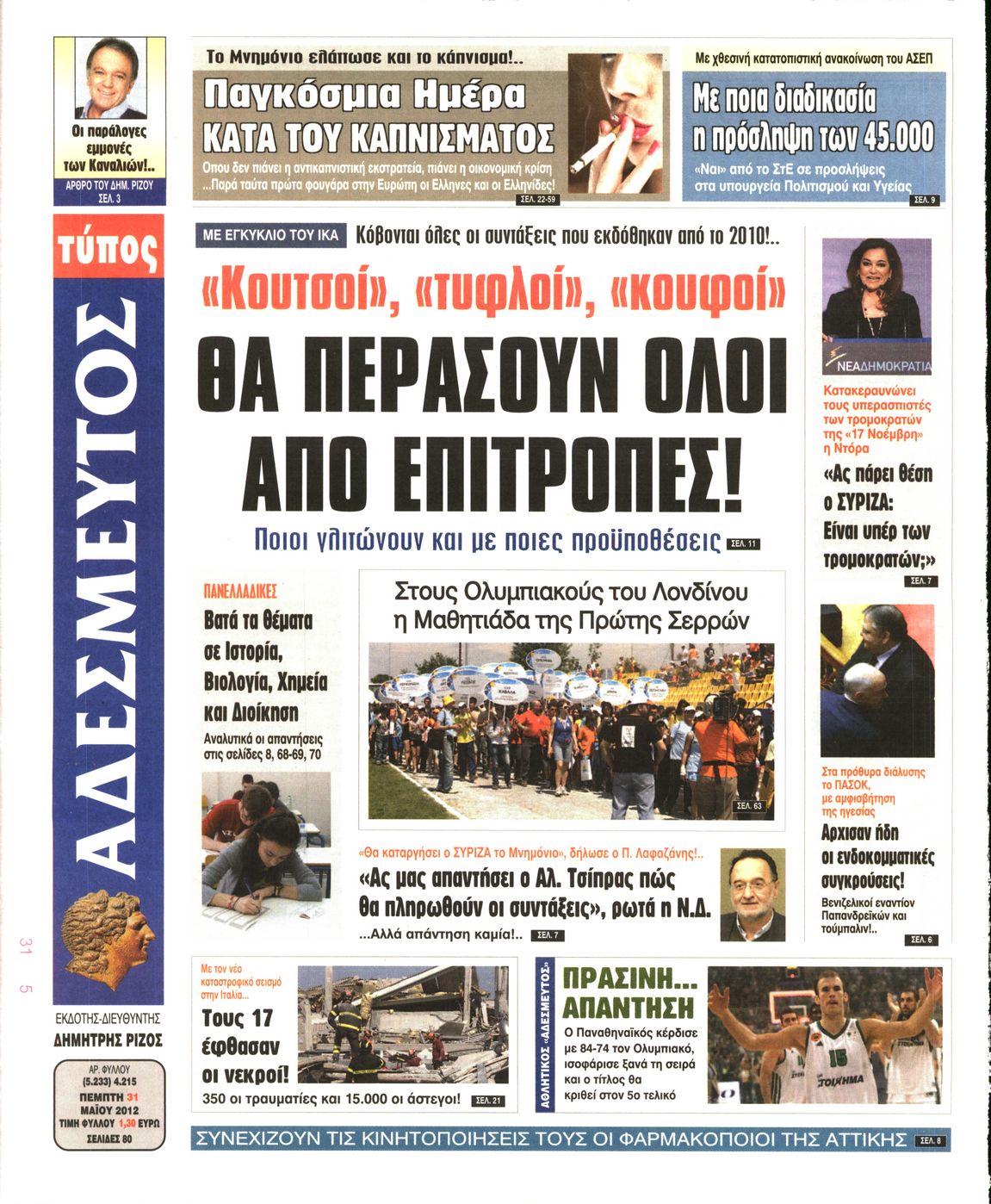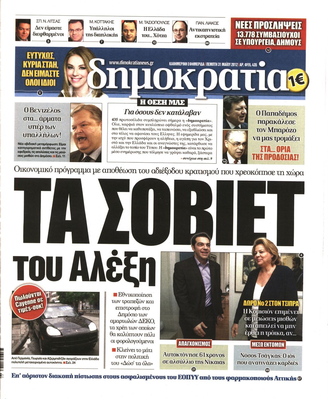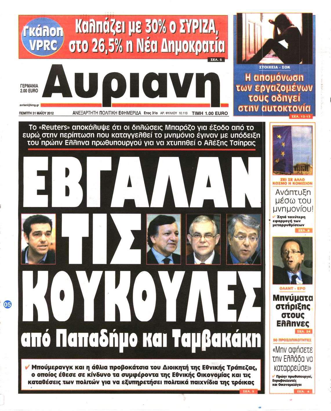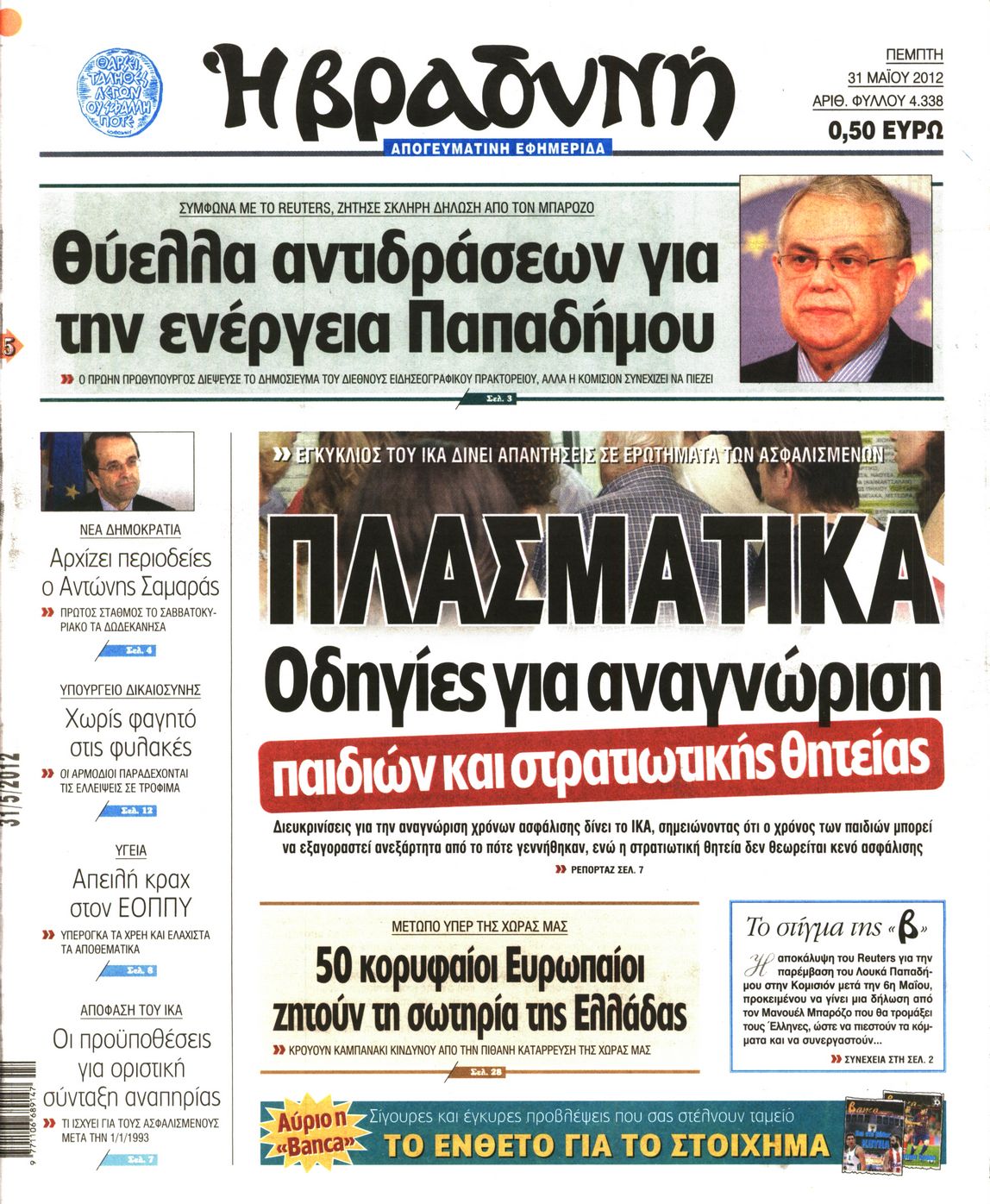 Τα πρωτοσέλιδα των εφημερίδων Enikos Newsroom 07:38, Πέμπτη 31 Μαΐου 2012 Media ΕΦΗΜΕΡΙΔΕΣ ΠΡΩΤΟΣΕΛΙΔΑ Μοιράσου το: σχολίασε κι εσύ (0 σχόλια) Ακολουθήστε το enikos.gr στο Google News και μάθετε πρώτοι όλες τις ειδήσεις Δείτε όλες τις τελευταίες ειδήσεις από την Ελλάδα και τον Κόσμο στο enikos.gr Ειδήσεις Ροή Ειδήσεων 6 λεπτά πριν Ευρωπαϊκή Ένωση: Συμφωνία για δάνειο 90 δισ. ευρώ στην Ουκρανία τη διετία 2026-2027 5 ώρες πριν ΟΠΕΚΕΠΕ: Προφυλακιστέος ο φερόμενος αρχηγός και ο λογιστής της εγκληματικής οργάνωσης 6 ώρες πριν Αυξάνουν την πίεση προς την κυβέρνηση οι αγρότες: Κλείνουν παρακαμπτήριους και ανοίγουν διόδια – Τι θα γίνει τις γιορτές 6 ώρες πριν Φοινικούντα: Το Σάββατο απολογείται ο 30χρονος γιος γνωστού επιχειρηματία της Πλάκας που παραδόθηκε – Όσα είπε στους αστυνομικούς και ο ρόλος του στο έγκλημα 4 ώρες πριν ΑΕΚ – Κραϊόβα 3-2: Επική ανατροπή και πρόκριση στους «16» του Conference League η Ένωση 5 ώρες πριν Αρχαιολόγοι ανακάλυψαν ρωμαϊκά τεχνουργήματα από μια πόλη που δεν υπήρξε ποτέ – Τα τρία εντυπωσιακά κτίρια και ο αμφορέας με τις… σαρδέλες 6 ώρες πριν Ύπνος: Η απλή βραδινή ρουτίνα για να προστατεύσετε τα μαλλιά σας από το κρύο κατά τη διάρκεια του χειμώνα 7 ώρες πριν Manifesting: Πώς να συναντήσετε τον σύντροφο της ζωής σας, ανάλογα με τον μήνα γέννησής σας 2 ημέρες πριν 20 χρόνια τα Χριστούγεννα ξεκινούν στα Public με μεγάλη ποικιλία σε δώρα! 6 λεπτά πριν Ευρωπαϊκή Ένωση: Συμφωνία για δάνειο 90 δισ. ευρώ στην Ουκρανία τη διετία 2026-2027 29 λεπτά πριν Αιματηρή βομβιστική επίθεση στην Υεμένη: Τουλάχιστον τρεις νεκροί και 13 τραυματίες 32 λεπτά πριν Στη Φλόριντα σήμερα οι διαβουλεύσεις σχετικά με τα επόμενα στάδια για τη Λωρίδα της Γάζας 36 λεπτά πριν Σίσσυ Τουμάση: «Είμαι ασθενοφοβική πάρα πολύ και με πιάνει μια παράνοια μ’ αυτό» 1 ώρα πριν Ντόναλντ Τραμπ: Δεν χρειάζομαι την έγκριση του Κογκρέσου για να διατάξω στρατιωτικά πλήγματα στη Βενεζουέλα ENIKOS NETWORK Σε περίοδο αυξημένης δραστηριότητας η γρίπη στην Ελλάδα-Μέτρα προστασίας από τον ΕΟΔΥ Σκέφτεστε συνέχεια συζητήσεις που έχετε κάνει; Τι σημαίνει αυτό, σύμφωνα με ειδικό Στεγαστικό: Τι λέει η ΠΟΜΙΔΑ για τα νέα μέτρα που ανακοίνωσε ο Κυριάκος Μητσοτάκης Λαγκάρντ: Αισιόδοξη για την ανάπτυξη της Ευρωζώνης, αβέβαιη για τον πληθωρισμό Χαρτογραφώντας το «σημείο χωρίς επιστροφή»: Για πρώτη φορά αποκαλύπτεται με λεπτομέρεια το ακανθώδες όριο της ατμόσφαιρας τ... Η Google καταργεί τη λειτουργία «dark web report» – Πώς θα μπορούν οι χρήστες να διαγράφουν τα δεδομένα τους περισσότερα 02:50 , Παρασκευή 19 Δεκεμβρίου 2025 GNTM: «Κλείδωσαν» οι τέσσερις φιναλίστ – Μεγάλη ανατροπή στις τελευταίες αποχωρήσεις Για προτελευταία φορά εμφανίστηκαν στο πλατό του GNTM οι φιναλίστ του φετινού κύκλου, το βράδυ... 17:45 , Πέμπτη 18 Δεκεμβρίου 2025 ROUK ZOUK: Εορταστικό επεισόδιο με καλεσμένους τους πρωταγωνιστές του «Γιατί ρε πατέρα» Το Σάββατο 20 Δεκεμβρίου στις 21:00, η Ζέτα Μακρυπούλια υποδέχεται εκλεκτούς ηθοποιούς που όλο... 17:20 , Πέμπτη 18 Δεκεμβρίου 2025 Άγιος έρωτας: Η Χριστίνα εξομολογείται στον πατέρα Νικόλαο, απόψε στις 21:00 στον Alpha Η Νότα αποφασίζει να εκδικηθεί τον Πέτρο και τον Στέφανο, για χάρη του Λούη, όμως τα πράγματα ... 16:50 , Πέμπτη 18 Δεκεμβρίου 2025 Να μ’ αγαπάς: Ζωή και Φωτεινή συμφιλιώνονται ως μάνα με κόρη, απόψε στις 20:00 Η ταυτότητα του Άγγελου αποκαλύπτεται στο νέο επεισόδιο της σειράς “Να μ’ αγαπάς... ΤΕΛΕΥΤΑΙΕΣ ΕΙΔΗΣΕΙΣ 6 λεπτά πριν Ευρωπαϊκή Ένωση: Συμφωνία για δάνειο 90 δισ. ευ