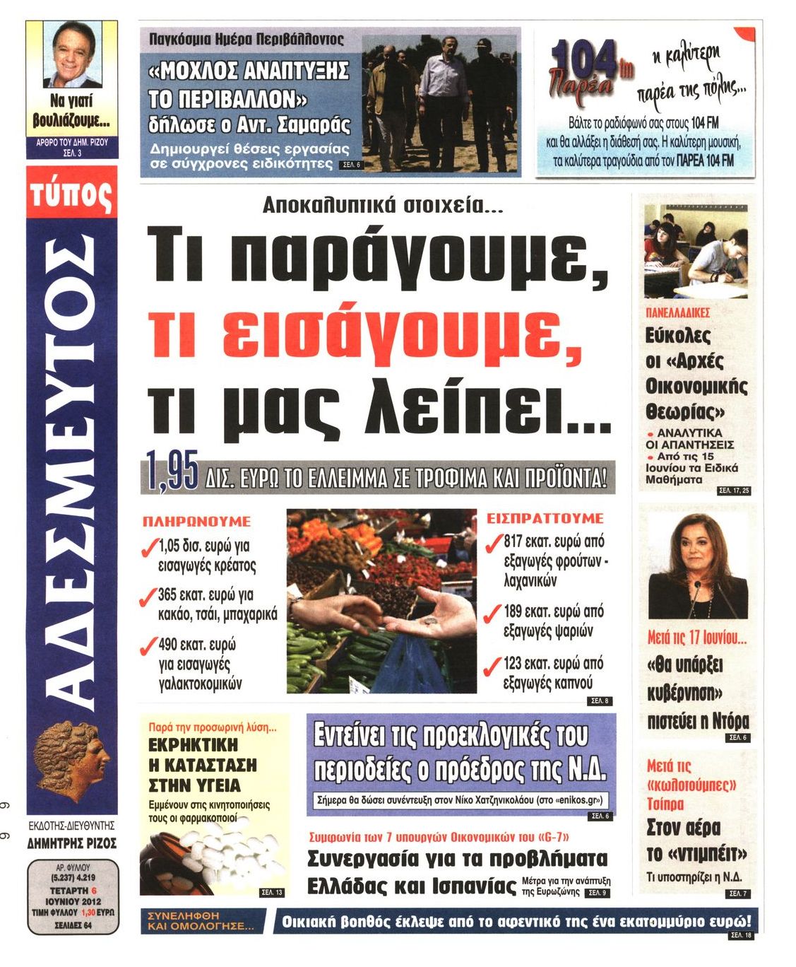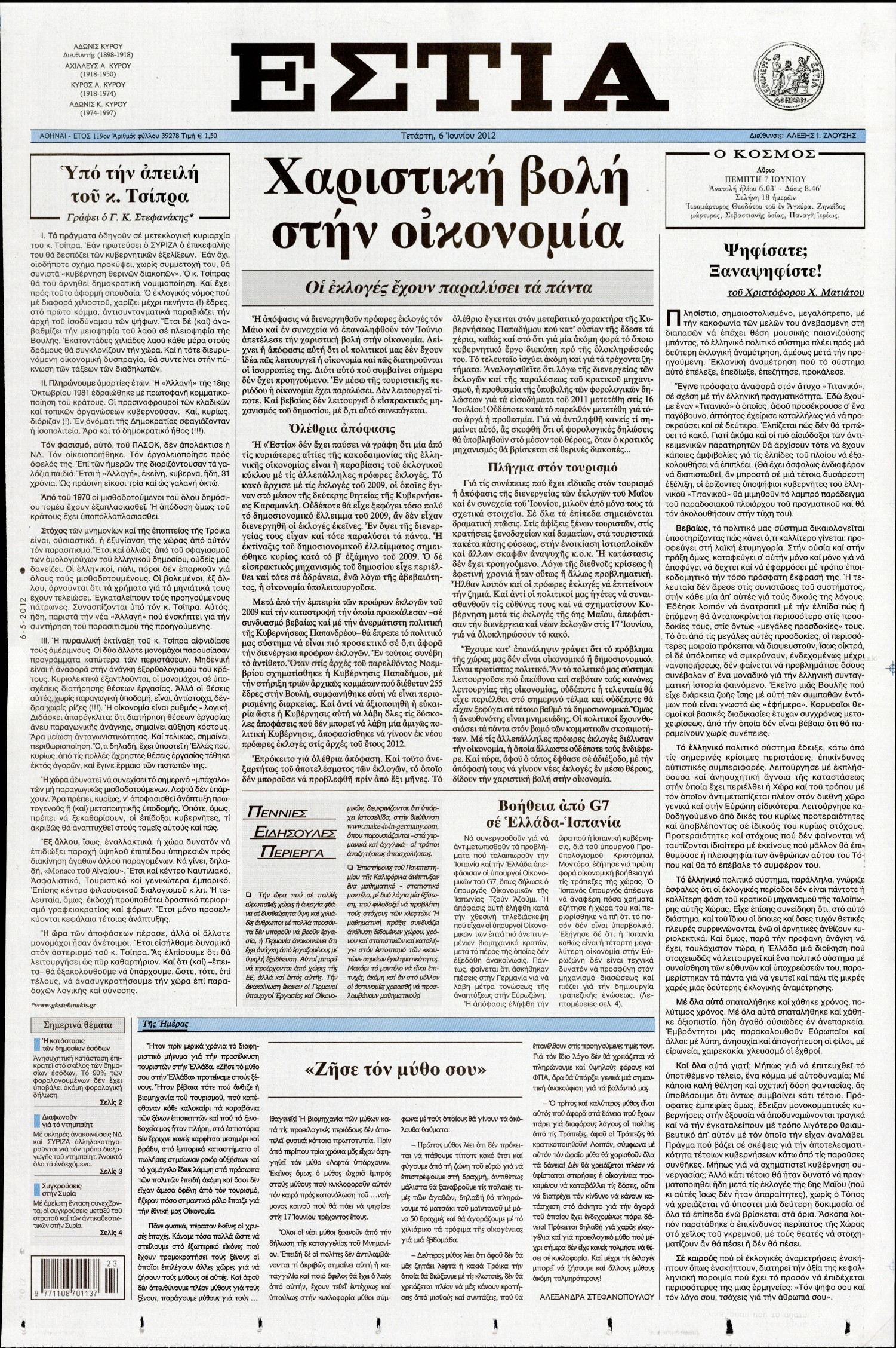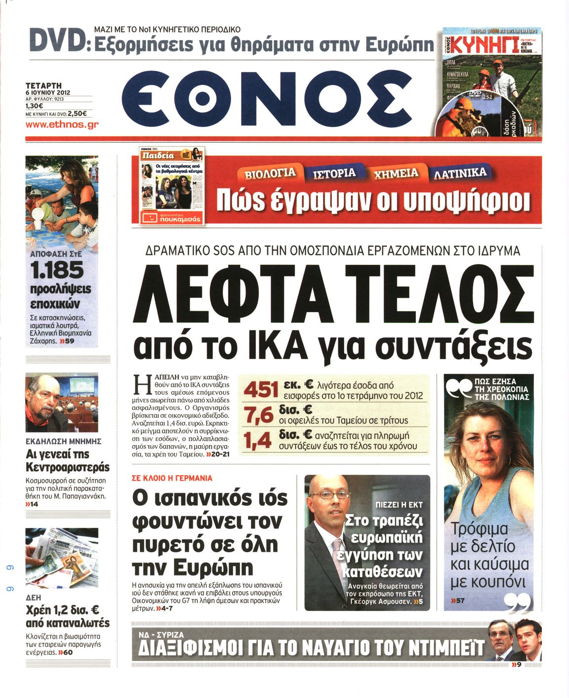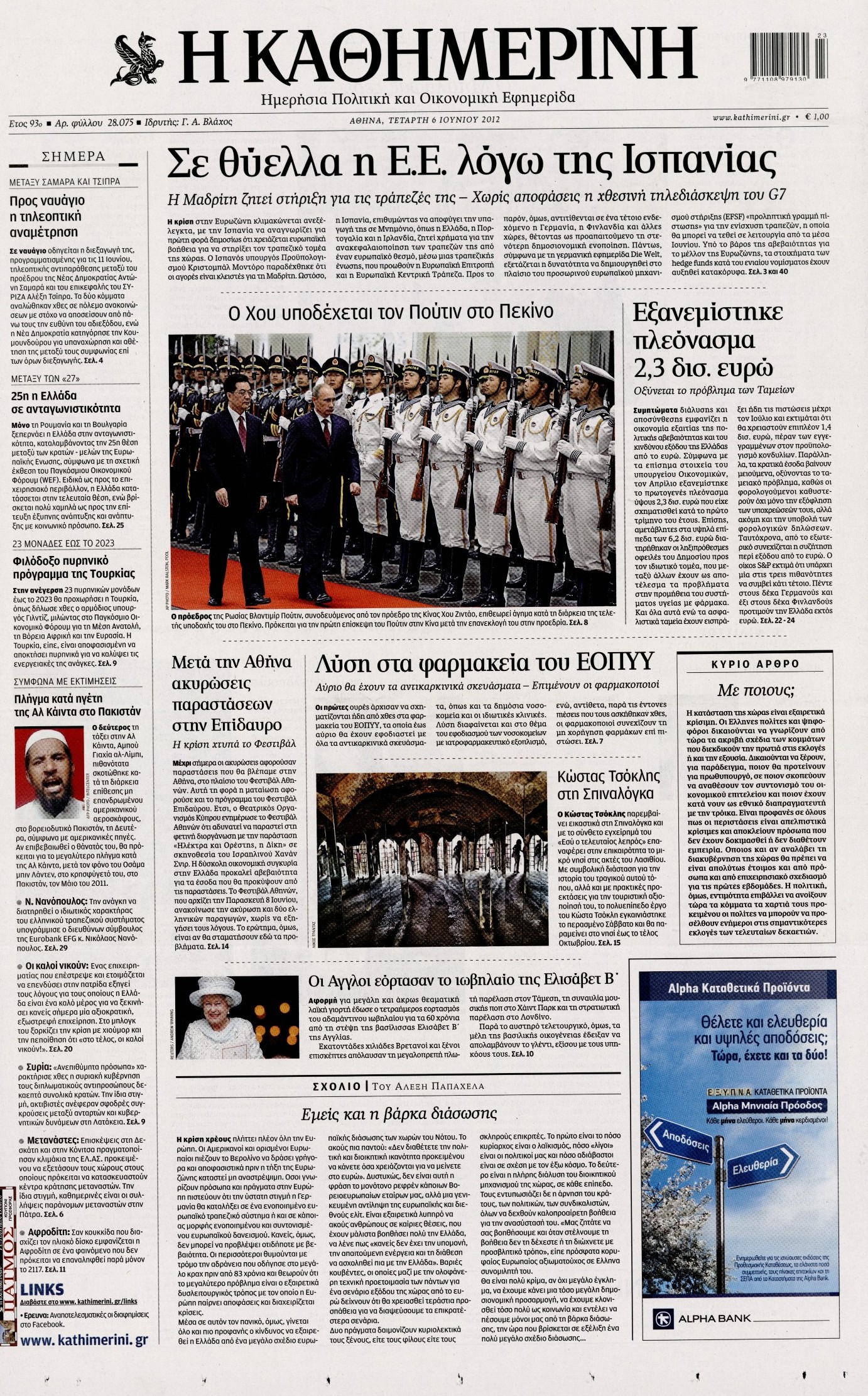 Τα πρωτοσέλιδα των εφημερίδων Enikos Newsroom 07:36, Τετάρτη 06 Ιουνίου 2012 Media ΕΦΗΜΕΡΙΔΕΣ ΠΡΩΤΟΣΕΛΙΔΑ Μοιράσου το: σχολίασε κι εσύ (0 σχόλια) Ακολουθήστε το enikos.gr στο Google News και μάθετε πρώτοι όλες τις ειδήσεις Δείτε όλες τις τελευταίες ειδήσεις από την Ελλάδα και τον Κόσμο στο enikos.gr Ειδήσεις Ροή Ειδήσεων 4 ώρες πριν Εκτός ευρωομάδας ΣΥΡΙΖΑ ο Νίκος Παππάς μετά την επίθεση στον δημοσιογράφο Νίκο Γιαννόπουλο – Η μήνυση και οι νέες δηλώσεις 4 ώρες πριν «Αγριεύουν» οι αγρότες: «Δεν συντρέχει λόγος συνάντησης με τον πρωθυπουργό» – Ώρα αποφάσεων στη σύσκεψη της Πέμπτης 4 ώρες πριν Κυψέλη: Χωρίς την οικογένειά της δίπλα της απολογήθηκε η 16χρονη – «Της είχε επιτεθεί κάποιος για να την βιάσει, φοβήθηκε και κυκλοφορούσε με μαχαίρι» 4 ώρες πριν Politico: Το πρόβλημα της Ευρώπης δεν είναι το Βέλγιο αλλά ο Ντόναλντ Τραμπ 5 ώρες πριν Αλεξανδρούπολη: Πολυοργανική ανεπάρκεια λόγω υποσιτισμού η αιτία θανάτου του 3χρονου αγοριού 4 ώρες πριν Μυστήριο με τεράστιες κυκλικές πέτρες 200 κιλών – Ανακαλύφθηκαν τυχαία κατά τη διάρκεια οδικών έργων και κανείς δεν ξέρει από πού προέρχονται 5 ώρες πριν Ύπνος: Ειδικός εξηγεί τον πραγματικό λόγο που ξυπνάτε στις 4 τα ξημερώματα – Ο ρόλος των ορμονών και του κιρκάδιου ρυθμού 6 ώρες πριν Αριθμολογία: Οι άνθρωποι που έχουν γεννηθεί αυτές τις 4 ημερομηνίες, είναι τρυφεροί και αγαπούν ανιδιοτελώς 18 ώρες πριν 20 χρόνια τα Χριστούγεννα ξεκινούν στα Public με μεγάλη ποικιλία σε δώρα! 9 λεπτά πριν Σουδάν: Επιδρομή drone σε χωριό του Νότιου Κορντοφάν – Οκτώ νεκροί 25 λεπτά πριν Αλ Τσαντίρι Νιουζ: Η κόρη της Πάολα στο κοινό – Η ατάκα Λαζόπουλου που την έκανε να «κοκκινήσει» 39 λεπτά πριν Ρωσία: Ουκρανικές δυνάμεις έπληξαν πλοίο στο λιμάνι του Ροστόφ – Αναφορές για θύματα 55 λεπτά πριν Βρυξέλλες: Νυχτερινό… μπλόκο αγροτών μπροστά από το κτίριο της Ευρωπαϊκής Επιτροπής – Πάνω από 100 τρακτέρ απέκλεισαν την λεωφόρο 1 ώρα πριν Euroleague: Απρόσμενη ήττα για την Μονακό του Βασίλη Σπανούλη – Η βαθμολογία μετά το τέλος της 16ης αγωνιστικής ENIKOS NETWORK Αϋπνία: Το κόλπο που θα σας βοηθήσει να κοιμηθείτε απόψε – Είναι απλό και έχει αποτέλεσμα 2,6 εκατομμύρια πολίτες έχουν ήδη εμβολιαστεί κατά της γρίπης ΕΛΣΤΑΤ: Τι δείχνουν τα νέα στοιχεία για τις ηλεκτρονικές παραγγελίες των επιχειρήσεων ΚΕΠΕ: Οι 3 διακριτές συμβολές των ΜμΕ και της μεταποίησης στην ελληνική οικονομία Χαρτογραφώντας το «σημείο χωρίς επιστροφή»: Για πρώτη φορά αποκαλύπτεται με λεπτομέρεια το ακανθώδες όριο της ατμόσφαιρας τ... Η Google καταργεί τη λειτουργία «dark web report» – Πώς θα μπορούν οι χρήστες να διαγράφουν τα δεδομένα τους περισσότερα 02:30 , Πέμπτη 18 Δεκεμβρίου 2025 Αλ Τσαντίρι Νιουζ: Η κόρη της Πάολα στο κοινό – Η ατάκα Λαζόπουλου που την έκανε να «κοκκινήσει» Γιορτινή διάθεση και ευχάριστες στιγμές γέμισε η αποψινή, τελευταία για το 2025, εκπομπή του «... 22:24 , Τετάρτη 17 Δεκεμβρίου 2025 Το Σπίτι Δίπλα Στο Ποτάμι: Σε κίνδυνο η υγεία του Απόστολου – Τι θα δούμε απόψε “Το Σπίτι Δίπλα στο Ποτάμι” ξετυλίγει το νήμα της ζωής των πέντε αδελφών με καταισ... 21:14 , Τετάρτη 17 Δεκεμβρίου 2025 Παιχνίδια Εκδίκησης: Θα καταφέρει ο Χρήστος να κλονίσει την εμπιστοσύνη της Μάγιας απέναντι στον Άγη; Τα «Παιχνίδια Εκδίκησης» έρχονται απόψε στις 22:30, στον Αντ1, με το τελευταίο επεισόδιο της χ... 20:57 , Τετάρτη 17 Δεκεμβρίου 2025 Άγιος Έρωτας: Η Χλόη καταθέτει εναντίον του πατέρα της και ο Χάρης αποκαλύπτει στον Κλεάνθη ότι δεν είναι ο βιολογικός 