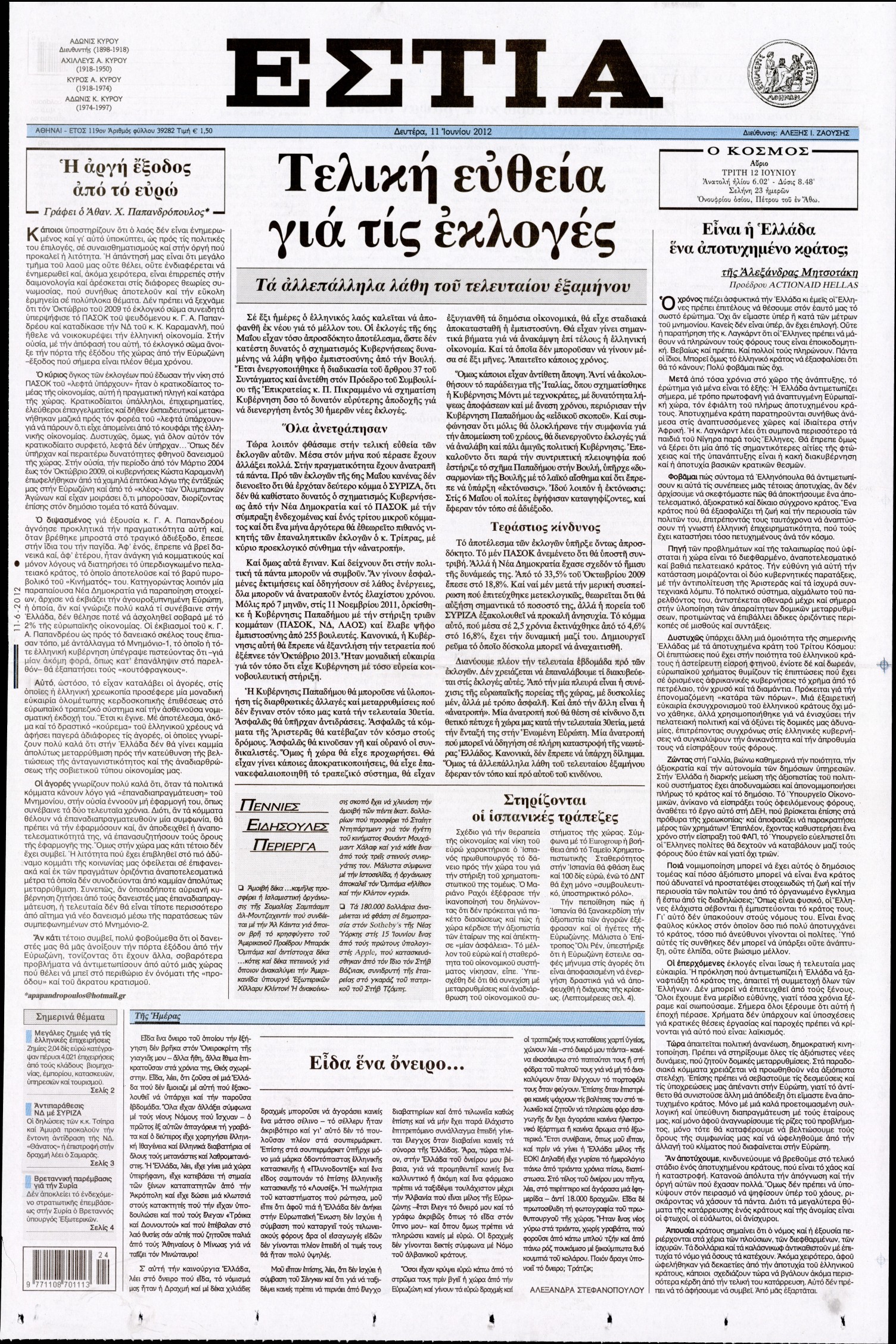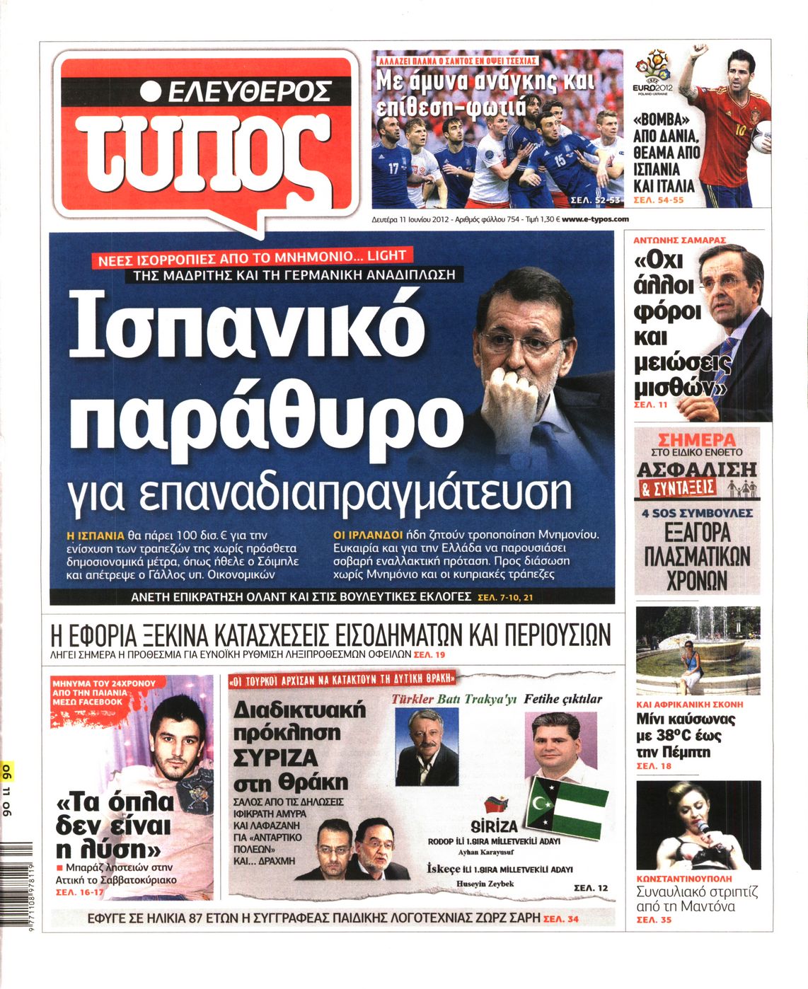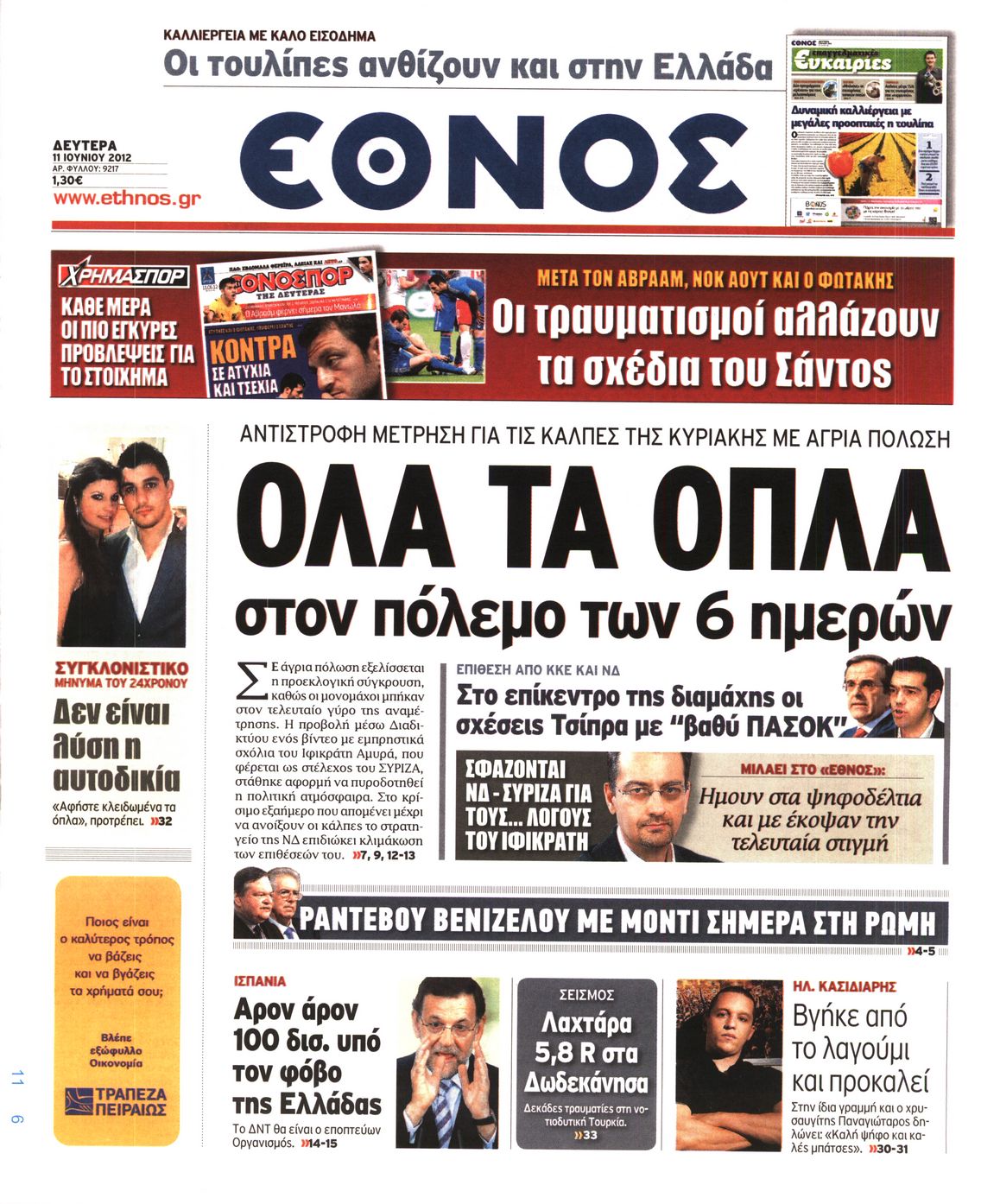 Τα πρωτοσέλιδα των εφημερίδων Enikos Newsroom 07:17, Δευτέρα 11 Ιουνίου 2012 Media ΕΦΗΜΕΡΙΔΕΣ ΠΡΩΤΟΣΕΛΙΔΑ Μοιράσου το: σχολίασε κι εσύ (0 σχόλια) Ακολουθήστε το enikos.gr στο Google News και μάθετε πρώτοι όλες τις ειδήσεις Δείτε όλες τις τελευταίες ειδήσεις από την Ελλάδα και τον Κόσμο στο enikos.gr Ειδήσεις Ροή Ειδήσεων 9 λεπτά πριν Ευρωπαϊκή Ένωση: Συμφωνία για δάνειο 90 δισ. ευρώ στην Ουκρανία τη διετία 2026-2027 5 ώρες πριν ΟΠΕΚΕΠΕ: Προφυλακιστέος ο φερόμενος αρχηγός και ο λογιστής της εγκληματικής οργάνωσης 6 ώρες πριν Αυξάνουν την πίεση προς την κυβέρνηση οι αγρότες: Κλείνουν παρακαμπτήριους και ανοίγουν διόδια – Τι θα γίνει τις γιορτές 6 ώρες πριν Φοινικούντα: Το Σάββατο απολογείται ο 30χρονος γιος γνωστού επιχειρηματία της Πλάκας που παραδόθηκε – Όσα είπε στους αστυνομικούς και ο ρόλος του στο έγκλημα 4 ώρες πριν ΑΕΚ – Κραϊόβα 3-2: Επική ανατροπή και πρόκριση στους «16» του Conference League η Ένωση 5 ώρες πριν Αρχαιολόγοι ανακάλυψαν ρωμαϊκά τεχνουργήματα από μια πόλη που δεν υπήρξε ποτέ – Τα τρία εντυπωσιακά κτίρια και ο αμφορέας με τις… σαρδέλες 6 ώρες πριν Ύπνος: Η απλή βραδινή ρουτίνα για να προστατεύσετε τα μαλλιά σας από το κρύο κατά τη διάρκεια του χειμώνα 7 ώρες πριν Manifesting: Πώς να συναντήσετε τον σύντροφο της ζωής σας, ανάλογα με τον μήνα γέννησής σας 2 ημέρες πριν 20 χρόνια τα Χριστούγεννα ξεκινούν στα Public με μεγάλη ποικιλία σε δώρα! 1 λεπτό πριν Βουλγαρία: Χιλιάδες πολίτες στους δρόμους κατά της απερχόμενης κυβέρνησης και της διαφθοράς 9 λεπτά πριν Ευρωπαϊκή Ένωση: Συμφωνία για δάνειο 90 δισ. ευρώ στην Ουκρανία τη διετία 2026-2027 32 λεπτά πριν Αιματηρή βομβιστική επίθεση στην Υεμένη: Τουλάχιστον τρεις νεκροί και 13 τραυματίες 35 λεπτά πριν Στη Φλόριντα σήμερα οι διαβουλεύσεις σχετικά με τα επόμενα στάδια για τη Λωρίδα της Γάζας 39 λεπτά πριν Σίσσυ Τουμάση: «Είμαι ασθενοφοβική πάρα πολύ και με πιάνει μια παράνοια μ’ αυτό» ENIKOS NETWORK Σε περίοδο αυξημένης δραστηριότητας η γρίπη στην Ελλάδα-Μέτρα προστασίας από τον ΕΟΔΥ Σκέφτεστε συνέχεια συζητήσεις που έχετε κάνει; Τι σημαίνει αυτό, σύμφωνα με ειδικό Στεγαστικό: Τι λέει η ΠΟΜΙΔΑ για τα νέα μέτρα που ανακοίνωσε ο Κυριάκος Μητσοτάκης Λαγκάρντ: Αισιόδοξη για την ανάπτυξη της Ευρωζώνης, αβέβαιη για τον πληθωρισμό Χαρτογραφώντας το «σημείο χωρίς επιστροφή»: Για πρώτη φορά αποκαλύπτεται με λεπτομέρεια το ακανθώδες όριο της ατμόσφαιρας τ... Η Google καταργεί τη λειτουργία «dark web report» – Πώς θα μπορούν οι χρήστες να διαγράφουν τα δεδομένα τους περισσότερα 02:50 , Παρασκευή 19 Δεκεμβρίου 2025 GNTM: «Κλείδωσαν» οι τέσσερις φιναλίστ – Μεγάλη ανατροπή στις τελευταίες αποχωρήσεις Για προτελευταία φορά εμφανίστηκαν στο πλατό του GNTM οι φιναλίστ του φετινού κύκλου, το βράδυ... 17:45 , Πέμπτη 18 Δεκεμβρίου 2025 ROUK ZOUK: Εορταστικό επεισόδιο με καλεσμένους τους πρωταγωνιστές του «Γιατί ρε πατέρα» Το Σάββατο 20 Δεκεμβρίου στις 21:00, η Ζέτα Μακρυπούλια υποδέχεται εκλεκτούς ηθοποιούς που όλο... 17:20 , Πέμπτη 18 Δεκεμβρίου 2025 Άγιος έρωτας: Η Χριστίνα εξομολογείται στον πατέρα Νικόλαο, απόψε στις 21:00 στον Alpha Η Νότα αποφασίζει να εκδικηθεί τον Πέτρο και τον Στέφανο, για χάρη του Λούη, όμως τα πράγματα ... 16:50 , Πέμπτη 18 Δεκεμβρίου 2025 Να μ’ αγαπάς: Ζωή και Φωτεινή συμφιλιώνονται ως μάνα με κόρη, απόψε στις 20:00 Η ταυτότητα του Άγγελου αποκαλύπτεται στο νέο επεισόδιο της σειράς “Να μ’ αγαπάς... ΤΕΛΕΥΤΑΙΕΣ ΕΙΔΗΣΕΙΣ 9 λεπτά πριν Ευρωπαϊκή Ένωση: Συμφωνία για δάνειο 90 δισ. ευρώ στην... 32 